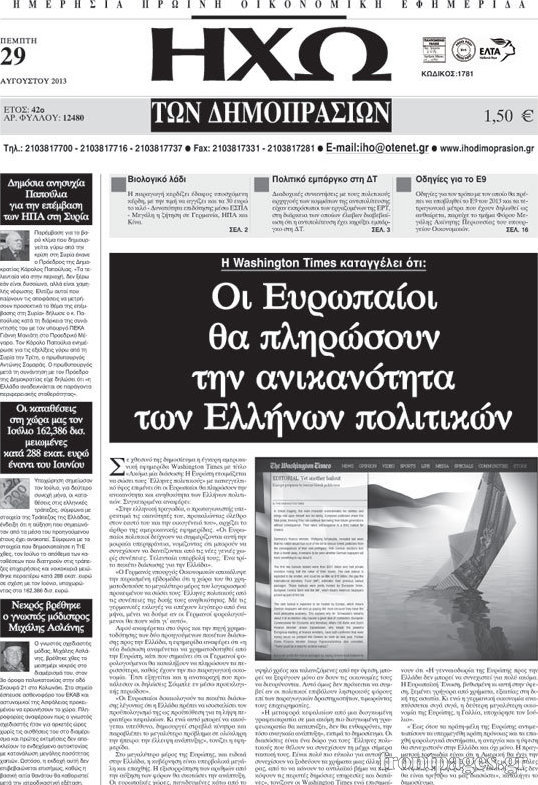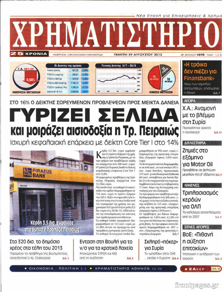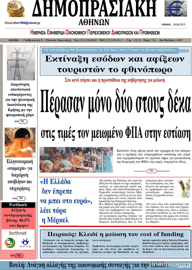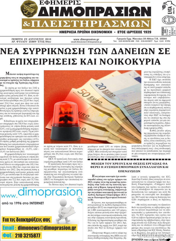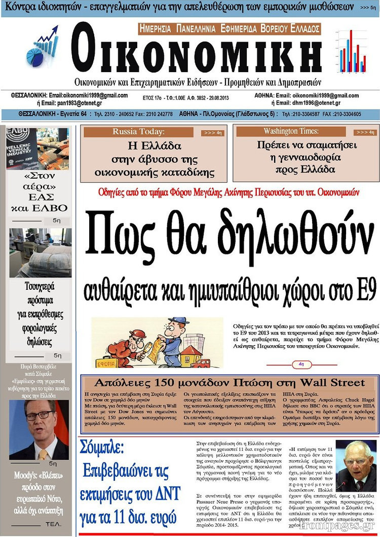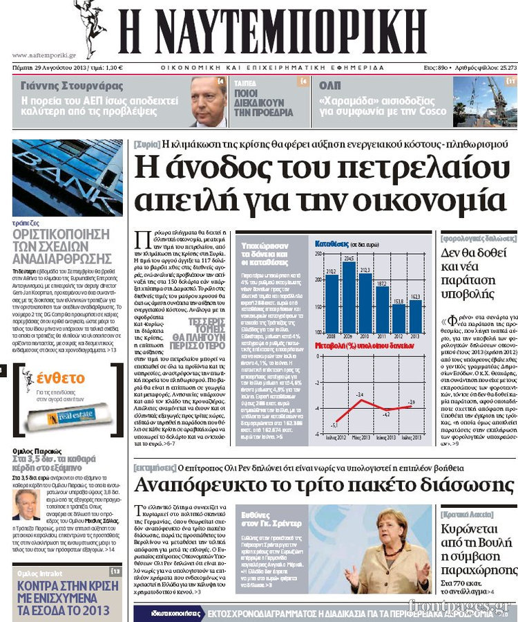 Οι oικονομικές εφημερίδες Enikos Newsroom 08:51, Πέμπτη 29 Αυγούστου 2013 Media Οι oικονομικές εφημερίδες Διαβάστε τα πρωτοσέλιδα των οικονομικών εφημερίδων: ΕΦΗΜΕΡΙΔΕΣ ΟΙΚΟΝΟΜΙΚΕΣ ΕΦΗΜΕΡΙΔΕΣ ΠΡΩΤΟΣΕΛΙΔΑ Μοιράσου το: σχολίασε κι εσύ (0 σχόλια) Ακολουθήστε το enikos.gr στο Google News και μάθετε πρώτοι όλες τις ειδήσεις Δείτε όλες τις τελευταίες ειδήσεις από την Ελλάδα και τον Κόσμο στο enikos.gr Ειδήσεις Ροή Ειδήσεων 30 λεπτά πριν Αγρότες: Πολύωροι αποκλεισμοί στα τελωνεία Προμαχώνα, Εξοχής, Ευζώνων και Νίκης – Κλείνουν τον κόμβο Φιλώτα οι παραγωγοί στη Δυτική Μακεδονία 52 δευτερόλεπτα πριν Νίκος Παππάς: Ζητώ συγγνώμη για αυτό το επεισόδιο – Δεν τον γρονθοκόπησα 2 ώρες πριν Ευρωπαϊκό Συμβούλιο: Όλες οι λεπτομέρειες για το δάνειο των 90 δισ. ευρώ στην Ουκρανία – Τα συμπεράσματα της Συνόδου Κορυφής 1 ώρα πριν Αίγιο: 22χρονη κατήγγειλε ότι έπεσε θύμα βιασμού και ληστείας από συγγενικά της πρόσωπα 1 ώρα πριν Σφοδρές βροχές και καταιγίδες πλήττουν τα Ηνωμένα Αραβικά Εμιράτα: Ακυρώσεις πτήσεων, προβλήματα στην κυκλοφορία 48 λεπτά πριν Αλλαγή σελίδας για 3 ζώδια – «Μία δύσκολη περίοδος φτάνει στο τέλος της» 3 ώρες πριν Πώς το αρχαίο DNA του κυνηγού – συλλέκτη ξεκλείδωσε τα μυστικά της μακροζωίας 2 ημέρες πριν 20 χρόνια τα Χριστούγεννα ξεκινούν στα Public με μεγάλη ποικιλία σε δώρα! 2 ώρες πριν Ο σύζυγός της συμπεριφέρεται όπως το παιδί τους – «Χρησιμοποιεί αστείες δικαιολογίες για να μην κάνει δουλειές και να ξοδεύει λεφτά» 52 δευτερόλεπτα πριν Νίκος Παππάς: Ζητώ συγγνώμη για αυτό το επεισόδιο – Δεν τον γρονθοκόπησα 2 λεπτά πριν Κολομβία: Δεκάδες τραυματίες σε επεισόδια στον τελικό κυπέλλου 8 λεπτά πριν Τρομακτικό βίντεο: Η στιγμή της έκρηξης στο τζετ που μετέφερε τον οδηγό του NASCAR, Γκρεγκ Μπιφλ και την οικογένειά του 18 λεπτά πριν Έρχονται νέες κακοκαιρίες από αύριο – «Παρέλαση» βαρομετρικών χαμηλών φέρνει βροχές τα Χριστούγεννα και χιόνια την Πρωτοχρονιά 23 λεπτά πριν Εργατικό δυστύχημα στην Ελασσόνα – Νεκρός 59χρονος που έπεσε από ύψος 20 μέτρων ENIKOS NETWORK Πότε μπορεί το χλωμό δέρμα να σχετίζεται με σοβαρή νόσο Ενίσχυση του μεταβολισμού: Η Νο1 άσκηση που πρέπει να κάνουν οι γυναίκες μετά τα 35 Απειλή για τον Προϋπολογισμό τα ληξιπρόθεσμα χρέη των ιδιωτών προς την εφορία – Τι δείχνουν τα στοιχεία Συντάξεις: Οι κερδισμένοι και οι χαμένοι από τις αυξήσεις – Αναλυτικός οδηγός Χαρτογραφώντας το «σημείο χωρίς επιστροφή»: Για πρώτη φορά αποκαλύπτεται με λεπτομέρεια το ακανθώδες όριο της ατμόσφαιρας τ... Η Google καταργεί τη λειτουργία «dark web report» – Πώς θα μπορούν οι χρήστες να διαγράφουν τα δεδομένα τους περισσότερα 08:00 , Παρασκευή 19 Δεκεμβρίου 2025 Την Κυριακή με τη Realnews: Δωροεπιταγή 10€ Δωροεπιταγή αξίας 10€ για αγορές άνω των 60€ από τα πολυκαταστήματα FactoryOutlet H προσφορά ι... 05:48 , Παρασκευή 19 Δεκεμβρίου 2025 Οι οικονομικές εφημερίδες 19/12/2025 Διαβάστε τα πρωτοσέλιδα από τις οικονομικές εφημερίδες, σήμερα 19/12/2025. 05:43 , Παρασκευή 19 Δεκεμβρίου 2025 Οι αθλητικές εφημερίδες 19/12/2025 Διαβάστε τα πρωτοσέλιδα από τις αθλητικές εφημερίδες, σήμερα 19/12/2025. 05:38 , Παρασκευή 19 Δεκεμβρίου 2025 Οι πολιτικές εφημερίδες 19/12/2025 Διαβάστε τα πρωτοσέλιδα από τις πολιτικές εφημερίδες, σήμερα 19/12/2025. ΤΕΛΕΥΤΑΙΕΣ ΕΙΔΗΣΕΙΣ 8 λεπτά πριν Τρομακτικό βίντεο: Η στιγμή της έκρηξης στο τζετ που... 18 λεπτά πριν Έρχονται νέες κακοκαιρίες από αύριο – «Παρέλαση»... 23 λεπτά πριν Εργατικό δυστύχημα στην Ελασσόνα – Νεκρός 59χρονος... 27 λεπτά πριν E