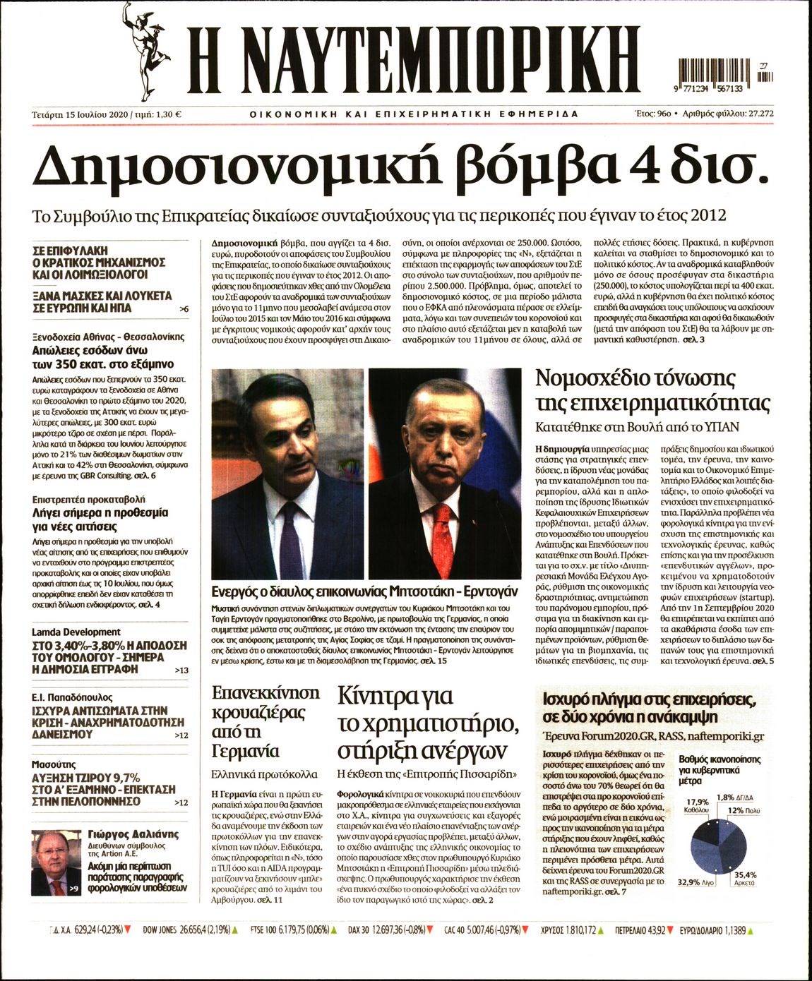 Οι οικονομικές εφημερίδες 15/7/2020 Διονύσης Νίκκας 06:44, Τετάρτη 15 Ιουλίου 2020 Media Διαβάστε τα πρωτοσέλιδα των οικονομικών εφημερίδων… ΟΙΚΟΝΟΜΙΚΕΣ ΕΦΗΜΕΡΙΔΕΣ Μοιράσου το: σχολίασε κι εσύ (0 σχόλια) Ακολουθήστε το enikos.gr στο Google News και μάθετε πρώτοι όλες τις ειδήσεις Δείτε όλες τις τελευταίες ειδήσεις από την Ελλάδα και τον Κόσμο στο enikos.gr Ειδήσεις Ροή Ειδήσεων 5 ώρες πριν Χριστούγεννα στα μπλόκα: Επιμένουν στις κινητοποιήσεις τους οι αγρότες – Ανοίγουν τα διόδια το Σαββατοκύριακο 6 ώρες πριν Ουκρανία: Η άνευ προηγουμένου επίθεση σε ρωσικό τάνκερ στη Μεσόγειο και το μήνυμα προς στον Πούτιν – Το «μακρύ χέρι» του Κιέβου 5 ώρες πριν Πούτιν: Τα μηνύματα σε Ευρώπη και ΝΑΤΟ από το μαραθώνιο «σόου» του – Η απαίτηση για «σεβασμό» και η ειρήνη «με τους όρους» της Μόσχας 6 ώρες πριν Τραμπ: Δεν αποκλείει την πιθανότητα ενός πολέμου στη Βενεζουέλα – «Ο Μαδούρο ξέρει καλύτερα από τον καθένα τι ακριβώς θέλω» 7 ώρες πριν Συνεχίζει να προκαλεί ο Μίτσκοσκι: «Για μένα το όνομα Μακεδονία είναι ιερό» 5 ώρες πριν Ανακαλύφθηκαν αρχαία χρυσά νομίσματα 2.200 ετών που απεικονίζουν τον θεό Απόλλωνα – Η άγνωστη σύνδεση με τον Φίλιππο Β΄ της Μακεδονίας 6 ώρες πριν Ύπνος: Μια κρυφή κατάσταση του εγκεφάλου πριν από τον ύπνο μπορεί να είναι το “κλειδί” για υψηλή ευφυΐα και δημιουργικότητα 7 ώρες πριν Αριθμολογία: Οι άνθρωποι που έχουν γεννηθεί αυτές τις 4 ημερομηνίες, συχνά παρεξηγούνται – «Η καλοσύνη τους κρύβει τεράστια δύναμη» 8 ώρες πριν Ξεχάστε το καθάρισμα το Σαββατοκύριακο: Ο «κανόνας των 20 λεπτών» που θα σας λύσει τα χέρια 2 λεπτά πριν Βολιβία: Μαζική διαδηλώσεις εναντίον της κατάργησης των επιδοτήσεων των τιμών των καυσίμων 17 λεπτά πριν Φως στο Τούνελ: Έφτασε η ώρα της αλήθειας για την δολοφονία της χήρας του πρώην υπουργού στο Κολωνάκι 32 λεπτά πριν Ντόναλντ Τραμπ: Προστέθηκε το όνομά του στην πρόσοψη του Κέντρου Κένεντι – Οργισμένη αντίδραση των συγγενών του JFK 47 λεπτά πριν Ταμίλα Κουλίεβα: «Δεν θέλω να είμαι κάποια που πορεύεται συνεχώς με τις ίδιες αναφορές» 1 ώρα πριν Η Ελλάδα προσχωρεί στη Διεθνή Επιτροπή Αποζημιώσεων για την Ουκρανία ENIKOS NETWORK Το ΕΚΑΒ τιμήθηκε από την Ακαδημία Αθηνών για τα 40 χρόνια προσφοράς του Έχετε πραγματικά μεγάλη καρδιά; 10 χαρακτηριστικά όσων έχουν καλοσύνη Αναστολή μέτρων αναγκαστικής εκτέλεσης για κτηνοτρόφους που πλήττονται από την ευλογιά των αιγοπροβάτων Πλήρης επάρκεια προϊόντων στις λαϊκές της Αττικής, παρά τις αγροτικές κινητοποιήσεις – Τι απαντούν οι πωλητές Χαρτογραφώντας το «σημείο χωρίς επιστροφή»: Για πρώτη φορά αποκαλύπτεται με λεπτομέρεια το ακανθώδες όριο της ατμόσφαιρας τ... Η Google καταργεί τη λειτουργία «dark web report» – Πώς θα μπορούν οι χρήστες να διαγράφουν τα δεδομένα τους περισσότερα 02:50 , Σάββατο 20 Δεκεμβρίου 2025 GNTM: Η Ξένια Τσίρκοβα αναδείχθηκε μεγάλη νικήτρια και πήρε τις 50.000 ευρώ – Ποιος βρέθηκε σε απόσταση αναπνοής; Με φαντασμαγορικό τρόπο ολοκληρώθηκε το βράδυ της Παρασκευής ο μεγάλος τελικός του GNTM, μέσα ... 22:42 , Παρασκευή 19 Δεκεμβρίου 2025 Γιώργος Γιαννόπουλος για “Το σόι σου”: “Είναι ευτυχία και ευλογία αυτή η σειρά” «Είναι ευτυχία και ευλογία η συγκυρία αυτής της σειράς», θα πει ο Γιώργος Γιαννόπουλος -ο αγαπ... 20:37 , Παρασκευή 19 Δεκεμβρίου 2025 Don’t Forget The Lyrics: Η Έλλη Κοκκίνου υποδέχεται 4 παίκτες που θα κάνουν τα πάντα για να μη χάσουν ούτε… μισή λέξη από τους στίχους Το «Don’t Forget The Lyrics» επιστρέφει απόψε, Παρασκ