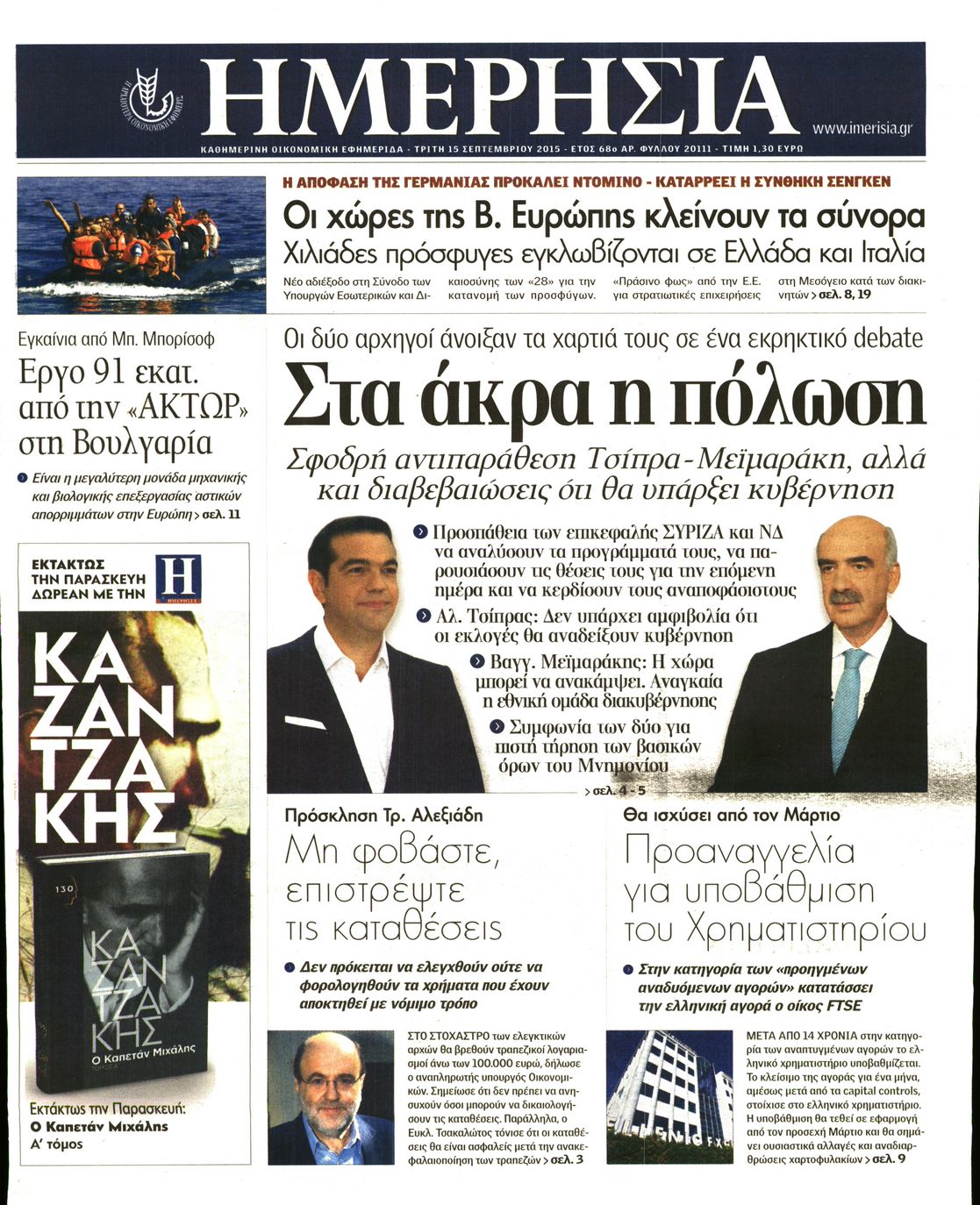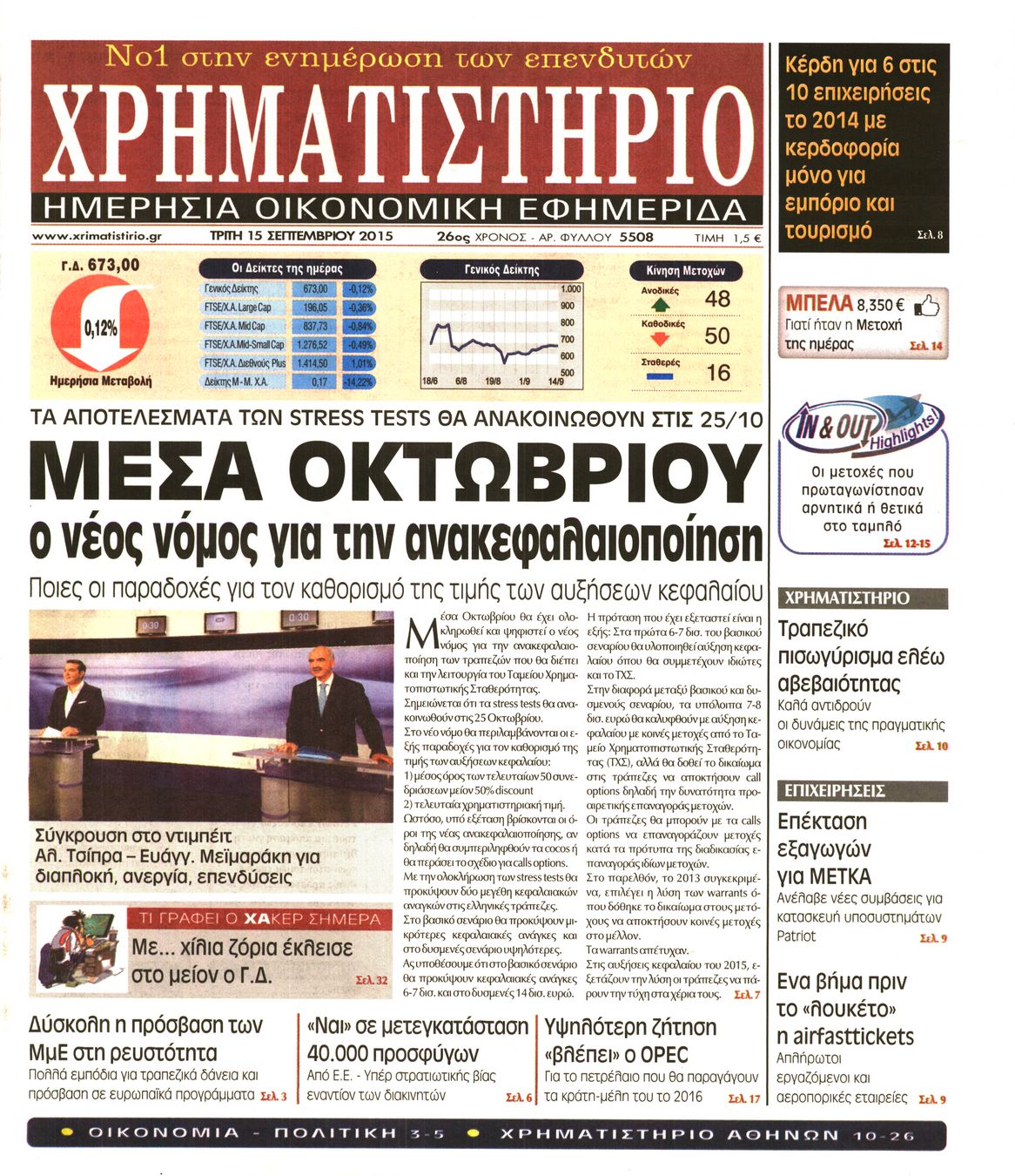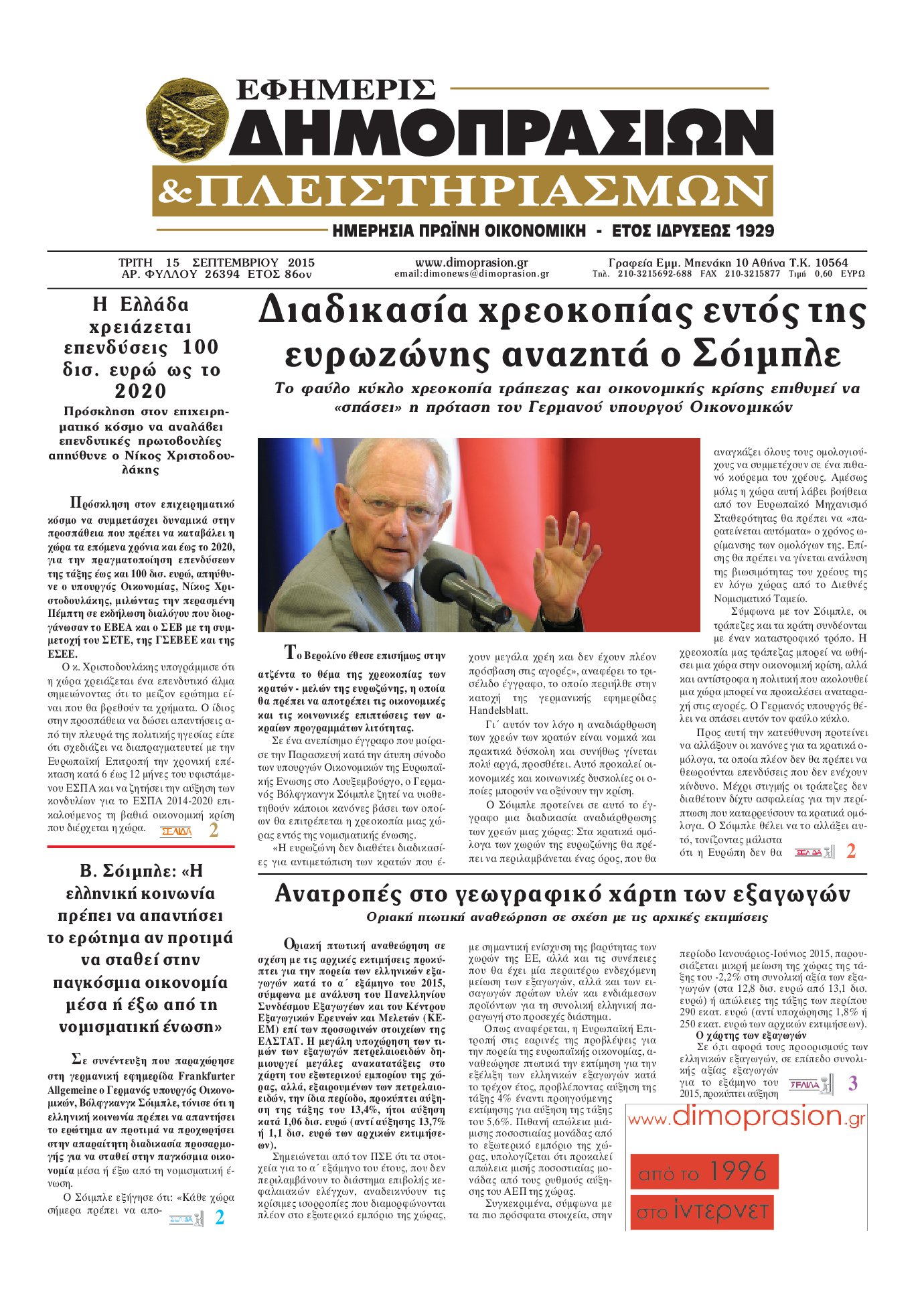 Οι οικονομικές εφημερίδες 15/9/2015 Enikos Newsroom 07:35, Τρίτη 15 Σεπτεμβρίου 2015 Media Διαβάστε τα σημερινά πρωτοσέλιδα των οικονομικών εφημερίδων: ΟΙΚΟΝΟΜΙΚΕΣ ΕΦΗΜΕΡΙΔΕΣ ΠΡΩΤΟΣΕΛΙΔΑ Μοιράσου το: σχολίασε κι εσύ (0 σχόλια) Ακολουθήστε το enikos.gr στο Google News και μάθετε πρώτοι όλες τις ειδήσεις Δείτε όλες τις τελευταίες ειδήσεις από την Ελλάδα και τον Κόσμο στο enikos.gr Ειδήσεις Ροή Ειδήσεων 2 ώρες πριν Αυξάνουν την πίεση προς την κυβέρνηση οι αγρότες: Κλείνουν παρακαμπτήριους και ανοίγουν διόδια – Τι θα γίνει τις γιορτές 1 ώρα πριν ΟΠΕΚΕΠΕ: Προφυλακιστέος ο φερόμενος αρχηγός και ο λογιστής της εγκληματικής οργάνωσης 2 ώρες πριν Φοινικούντα: Το Σάββατο απολογείται ο 30χρονος γιος γνωστού επιχειρηματία της Πλάκας που παραδόθηκε – Όσα είπε στους αστυνομικούς και ο ρόλος του στο έγκλημα 2 ώρες πριν Μπορεί ο Μαδούρο να αντέξει τον αποκλεισμό του Τραμπ; Τι θα χρειαστεί η Ουάσινγκτον για να τον ανατρέψει 3 ώρες πριν Πρίγκιπας Ουίλιαμ – Κέιτ: Η νέα οικογενειακή φωτογραφία για τις Χριστουγεννιάτικες κάρτες του 2025 3 ώρες πριν Ύπνος: Η απλή βραδινή ρουτίνα για να προστατεύσετε τα μαλλιά σας από το κρύο κατά τη διάρκεια του χειμώνα 4 ώρες πριν Manifesting: Πώς να συναντήσετε τον σύντροφο της ζωής σας, ανάλογα με τον μήνα γέννησής σας 2 ημέρες πριν 20 χρόνια τα Χριστούγεννα ξεκινούν στα Public με μεγάλη ποικιλία σε δώρα! 2 ώρες πριν Αρχαιολόγοι ανακάλυψαν ρωμαϊκά τεχνουργήματα από μια πόλη που δεν υπήρξε ποτέ – Τα τρία εντυπωσιακά κτίρια και ο αμφορέας με τις… σαρδέλες 8 λεπτά πριν Conference League: Απευθείας στους «16» η ΑΕΚ Λάρνακας και η Ρακόβ των Σβάρνα και Κωνσταντόπουλου – Τα αποτελέσματα και η βαθμολογία, 3η η ΑΕΚ 18 λεπτά πριν Σε ομάδες που συνδέονται με το ρωσικό κράτος αποδίδει η Δανία δύο κυβερνοεπιθέσεις που δέχθηκε 32 λεπτά πριν Βαθμολογία UEFA: Η Πολωνία προσπέρασε την Ελλάδα 48 λεπτά πριν Conference League: Οι ομάδες που προκρίθηκαν στους «16» και τα «ζευγαρώματα» στα νοκ άουτ 57 λεπτά πριν ΑΕΚ – Κραϊόβα 3-2: Επική ανατροπή και πρόκριση στους «16» του Conference League η Ένωση ENIKOS NETWORK Σε περίοδο αυξημένης δραστηριότητας η γρίπη στην Ελλάδα-Μέτρα προστασίας από τον ΕΟΔΥ Σκέφτεστε συνέχεια συζητήσεις που έχετε κάνει; Τι σημαίνει αυτό, σύμφωνα με ειδικό Στεγαστικό: Τι λέει η ΠΟΜΙΔΑ για τα νέα μέτρα που ανακοίνωσε ο Κυριάκος Μητσοτάκης Λαγκάρντ: Αισιόδοξη για την ανάπτυξη της Ευρωζώνης, αβέβαιη για τον πληθωρισμό Χαρτογραφώντας το «σημείο χωρίς επιστροφή»: Για πρώτη φορά αποκαλύπτεται με λεπτομέρεια το ακανθώδες όριο της ατμόσφαιρας τ... Η Google καταργεί τη λειτουργία «dark web report» – Πώς θα μπορούν οι χρήστες να διαγράφουν τα δεδομένα τους περισσότερα 17:45 , Πέμπτη 18 Δεκεμβρίου 2025 ROUK ZOUK: Εορταστικό επεισόδιο με καλεσμένους τους πρωταγωνιστές του «Γιατί ρε πατέρα» Το Σάββατο 20 Δεκεμβρίου στις 21:00, η Ζέτα Μακρυπούλια υποδέχεται εκλεκτούς ηθοποιούς που όλο... 17:20 , Πέμπτη 18 Δεκεμβρίου 2025 Άγιος έρωτας: Η Χριστίνα εξομολογείται στον πατέρα Νικόλαο, απόψε στις 21:00 στον Alpha Η Νότα αποφασίζει να εκδικηθεί τον Πέτρο και τον Στέφανο, για χάρη του Λούη, όμως τα πράγματα ... 16:50 , Πέμπτη 18 Δεκεμβρίου 2025 Να μ’ αγαπάς: Ζωή και Φωτεινή συμφιλιώνονται ως μάνα με κόρη, απόψε στις 20:00 Η ταυτότητα του Άγγελου αποκαλύπτεται στο νέο επεισόδιο της σειράς “Να μ’ αγαπάς... 15:52 , Πέμπτη 18 Δεκεμβρίου 2025 Το Σπίτι Δίπλα Στο Ποτάμι: Το καθηλωτικό τελευταίο επεισόδιο για το 2025 απόψε στις 22:30 Καθηλώνει το σημερινό επεισόδιο της σειράς “Το Σπίτι Δί