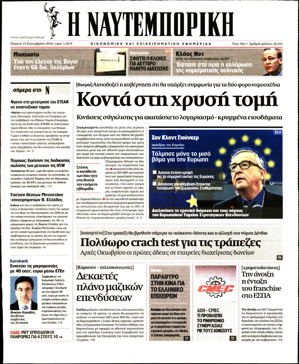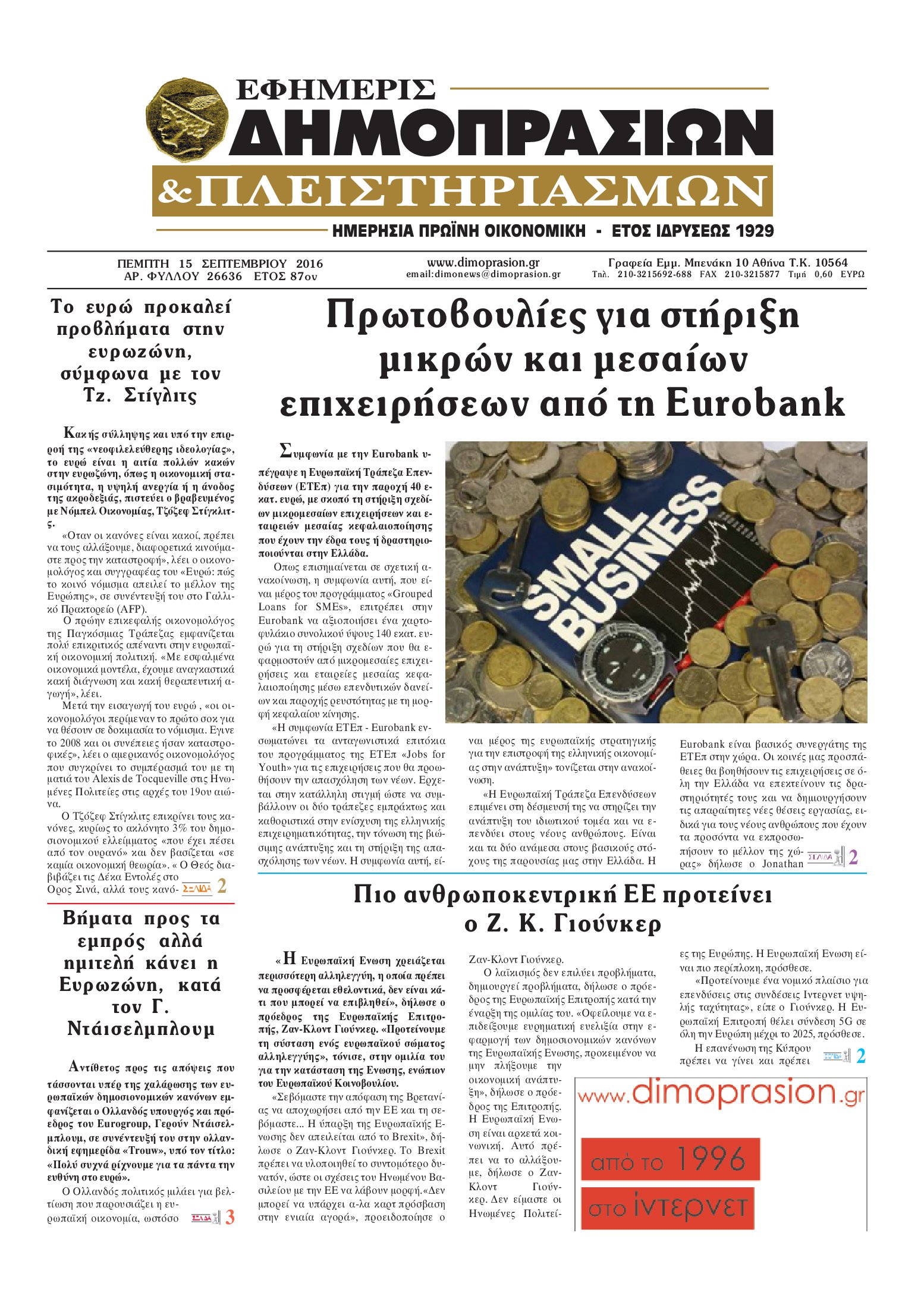 Oι οικονομικές εφημερίδες 15/9/2016 Enikos Newsroom 06:20, Πέμπτη 15 Σεπτεμβρίου 2016 Media Διαβάστε τα σημερινά πρωτοσέλιδα των οικονομικών εφημερίδων: ΟΙΚΟΝΟΜΙΚΕΣ ΕΦΗΜΕΡΙΔΕΣ ΠΡΩΤΟΣΕΛΙΔΑ Μοιράσου το: σχολίασε κι εσύ (0 σχόλια) Ακολουθήστε το enikos.gr στο Google News και μάθετε πρώτοι όλες τις ειδήσεις Δείτε όλες τις τελευταίες ειδήσεις από την Ελλάδα και τον Κόσμο στο enikos.gr Ειδήσεις Ροή Ειδήσεων 3 ώρες πριν Μητσοτάκης για αγρότες: Ελπίζω πως θα απομακρυνθούν σύντομα από τα μπλόκα 4 ώρες πριν Έρευνα MRB: Η πρόθεση ψήφου και τα σημαντικότερα προβλήματα – Οι «λέξεις» που εκφράζουν τους πολίτες 44 λεπτά πριν Κυψέλη: Στον ανακριτή η 16χρονη που μαχαίρωσε την 14χρονη – «Είχα το μαχαίρι για προστασία – Έχω θέμα με τα νεύρα μου» 1 ώρα πριν Αμοργός: «Θα προσπαθήσω να το κάνω κάθε μέρα» – Ποιος είναι ο αγρότης που έστησε μόνος του το πρώτο μπλόκο στο νησί 2 ώρες πριν Μισέλ Ομπάμα: Εμφανώς αδυνατισμένη στην εκπομπή του Τζίμι Κίμελ – Οι φήμες για τη χρήση Ozempic και η «φιλία» της με τον Ρομπ Ράινερ 4 ώρες πριν Τα 4 ζώδια που ξαναβρίσκουν τον εαυτό τους – «Μπαίνετε επιτέλους στην ουσία των πραγμάτων» 5 ώρες πριν 20 χρόνια τα Χριστούγεννα ξεκινούν στα Public με μεγάλη ποικιλία σε δώρα! 4 ώρες πριν «Δεν είχα κλάψει από τότε που διαγνώστηκα με καρκίνο, ώσπου ένα τηλεφώνημα με έκανε να λυγίσω» – Η συγκλονιστική εξομολόγηση ενός άνδρα 3 ώρες πριν Τα 7 σπάνια χαρακτηριστικά που κάνουν κάποιους ανθρώπους ακαταμάχητους 4 λεπτά πριν Live – Οι ανακοινώσεις της ΕΛΑΣ για το κύκλωμα κοκαΐνης και τον «Έλληνα Εσκομπάρ» 5 λεπτά πριν Τροχαίο έξω από το Μέγαρο Μαξίμου: Αυτοκίνητο παρέσυρε ηλικιωμένο 9 λεπτά πριν Συνάντηση Μητσοτάκη με την Κ.Ο. της ΝΔ: Οι αφίξεις των βουλευτών, τα γλυκά και τα «πηγαδάκια» 19 λεπτά πριν Πούτιν: «Ανοησίες» και «υστερίες» οι ισχυρισμοί της Ευρώπης για πιθανή σύγκρουση με τη Ρωσία – «Κάνουν πλύση εγκεφάλου» 27 λεπτά πριν ΟΠΕΚΕΠΕ – Παράνομες επιδοτήσεις: Ελεύθεροι αφέθηκαν οι δύο πρώτοι από τους κατηγορούμενους που απολογούνται σήμερα ENIKOS NETWORK 5 πράγματα που αποφεύγει γαστρεντερολόγος για να μειώσει τον κίνδυνο καρκίνου του εντέρου Ανησυχητική αύξηση της υπέρτασης στα παιδιά – Πώς θα τα προστατέψουμε; Αδειοδωρόσημο Χριστουγέννων 2025: Πότε γίνεται η καταβολή του και σε ποιους Τριπλή αύξηση στους μισθωτούς – Τι αλλάζει μετά την Πρωτοχρονιά Σύγχρονος Νοστράδαμος: Προειδοποιεί για «μεγάλο γεγονός» τους επόμενους μήνες που θα συγκλονίσει τη Βρετανία και τον κόσμο Τεστ παρατηρητικότητας: Μπορείτε να βρείτε τις 3 διαφορές στις εικόνες με έναν πιγκουίνο σε 14 δευτερόλεπτα περισσότερα 12:35 , Τετάρτη 17 Δεκεμβρίου 2025 Μίρκα Παπακωνσταντίνου: «Δεν ήμουν αισιόδοξη για τα νούμερα – Είμαι ρεαλίστρια» Στα γυρίσματα του εορταστικού επεισοδίου της αγαπημένης σειράς “Το Σόι Σου”, βρέθηκε η κάμερα ... 12:12 , Τετάρτη 17 Δεκεμβρίου 2025 Ακούστε την εκπομπή του Νίκου Χατζηνικολάου 17/12/2025 Ακούστε την εκπομπή του Νίκου Χατζηνικολάου στον ραδιοφωνικό σταθμό RealFm 97,8, την Τετάρτη 1... 11:35 , Τετάρτη 17 Δεκεμβρίου 2025 Home Alone: Το σπίτι της ταινίας θα ανακαινιστεί – Επιστροφή στην αισθητική της δεκαετίας του ’90 Οι νέοι ιδιοκτήτες του πραγματικού σπιτιού που παρουσιάζεται στην κλασική ταινία του 1990 «Hom... 11:25 , Τετάρτη 17 Δεκεμβρίου 2025 Grand Hotel: Απόψε το τελευταίο επεισόδιο της χρονιάς – Όλα τα μυστικά μένουν εδώ Το τελευταίο επεισόδιο της χρονιάς της σειράς «Grand Hotel» θα προβληθεί απόψε στις 21:00. Ο Ά... ΤΕΛΕΥΤΑΙΕΣ ΕΙΔΗΣΕΙΣ 4 λεπτ