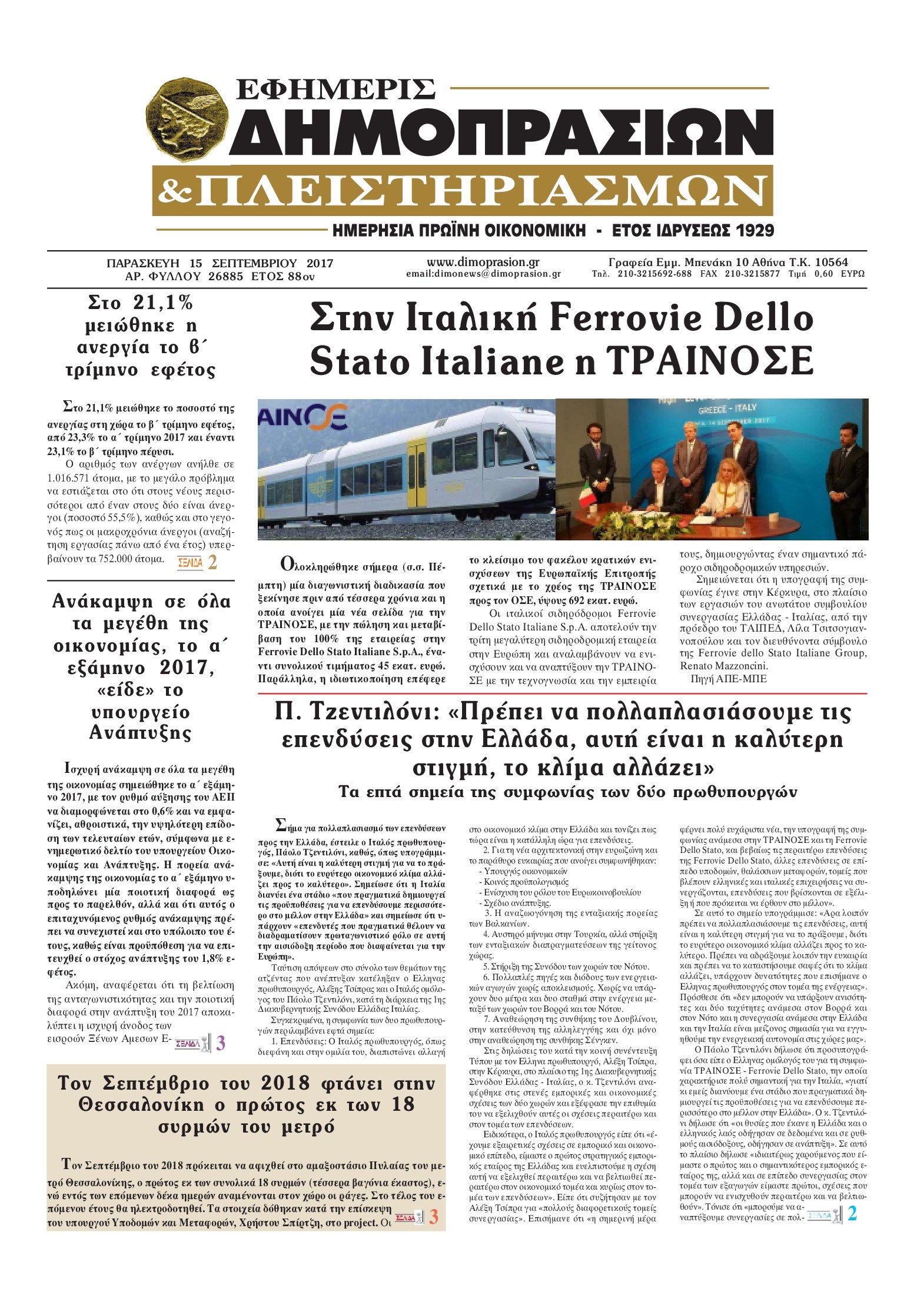 Οι οικονομικές εφημερίδες 15/9/2017 Enikos Newsroom 07:12, Παρασκευή 15 Σεπτεμβρίου 2017 Media Διαβάστε τα σημερινά πρωτοσέλιδα των οικονομικών εφημερίδων: ΟΙΚΟΝΟΜΙΚΕΣ ΕΦΗΜΕΡΙΔΕΣ ΠΡΩΤΟΣΕΛΙΔΑ Μοιράσου το: σχολίασε κι εσύ (0 σχόλια) Ακολουθήστε το enikos.gr στο Google News και μάθετε πρώτοι όλες τις ειδήσεις Δείτε όλες τις τελευταίες ειδήσεις από την Ελλάδα και τον Κόσμο στο enikos.gr Ειδήσεις Ροή Ειδήσεων 40 λεπτά πριν Ευρωπαϊκή Ένωση: Συμφωνία για δάνειο 90 δισ. ευρώ στην Ουκρανία τη διετία 2026-2027 5 ώρες πριν ΟΠΕΚΕΠΕ: Προφυλακιστέος ο φερόμενος αρχηγός και ο λογιστής της εγκληματικής οργάνωσης 6 ώρες πριν Αυξάνουν την πίεση προς την κυβέρνηση οι αγρότες: Κλείνουν παρακαμπτήριους και ανοίγουν διόδια – Τι θα γίνει τις γιορτές 6 ώρες πριν Φοινικούντα: Το Σάββατο απολογείται ο 30χρονος γιος γνωστού επιχειρηματία της Πλάκας που παραδόθηκε – Όσα είπε στους αστυνομικούς και ο ρόλος του στο έγκλημα 5 ώρες πριν ΑΕΚ – Κραϊόβα 3-2: Επική ανατροπή και πρόκριση στους «16» του Conference League η Ένωση 6 ώρες πριν Αρχαιολόγοι ανακάλυψαν ρωμαϊκά τεχνουργήματα από μια πόλη που δεν υπήρξε ποτέ – Τα τρία εντυπωσιακά κτίρια και ο αμφορέας με τις… σαρδέλες 7 ώρες πριν Ύπνος: Η απλή βραδινή ρουτίνα για να προστατεύσετε τα μαλλιά σας από το κρύο κατά τη διάρκεια του χειμώνα 8 ώρες πριν Manifesting: Πώς να συναντήσετε τον σύντροφο της ζωής σας, ανάλογα με τον μήνα γέννησής σας 2 ημέρες πριν 20 χρόνια τα Χριστούγεννα ξεκινούν στα Public με μεγάλη ποικιλία σε δώρα! 4 λεπτά πριν Αυστραλία: Κήρυξε την Κυριακή (21/12) ημέρα εθνικού πένθους για τη φονική επίθεση στην παραλία Μπόνταϊ 14 λεπτά πριν Ρόδος: Δάσκαλος καράτε καταδικάστηκε για ασέλγεια σε ανήλικες αθλήτριες – Μαρτυρίες για αγγίγματα σε ευαίσθητα σημεία 28 λεπτά πριν Γουατεμάλα: Εξαρθρώθηκε κύκλωμα διακίνησης μεταναστών προς τις ΗΠΑ – Συνελήφθησαν 14 άτομα 33 λεπτά πριν Βουλγαρία: Χιλιάδες πολίτες στους δρόμους κατά της απερχόμενης κυβέρνησης και της διαφθοράς 40 λεπτά πριν Ευρωπαϊκή Ένωση: Συμφωνία για δάνειο 90 δισ. ευρώ στην Ουκρανία τη διετία 2026-2027 ENIKOS NETWORK Σε περίοδο αυξημένης δραστηριότητας η γρίπη στην Ελλάδα-Μέτρα προστασίας από τον ΕΟΔΥ Σκέφτεστε συνέχεια συζητήσεις που έχετε κάνει; Τι σημαίνει αυτό, σύμφωνα με ειδικό Στεγαστικό: Τι λέει η ΠΟΜΙΔΑ για τα νέα μέτρα που ανακοίνωσε ο Κυριάκος Μητσοτάκης Λαγκάρντ: Αισιόδοξη για την ανάπτυξη της Ευρωζώνης, αβέβαιη για τον πληθωρισμό Χαρτογραφώντας το «σημείο χωρίς επιστροφή»: Για πρώτη φορά αποκαλύπτεται με λεπτομέρεια το ακανθώδες όριο της ατμόσφαιρας τ... Η Google καταργεί τη λειτουργία «dark web report» – Πώς θα μπορούν οι χρήστες να διαγράφουν τα δεδομένα τους περισσότερα 02:50 , Παρασκευή 19 Δεκεμβρίου 2025 GNTM: «Κλείδωσαν» οι τέσσερις φιναλίστ – Μεγάλη ανατροπή στις τελευταίες αποχωρήσεις Για προτελευταία φορά εμφανίστηκαν στο πλατό του GNTM οι φιναλίστ του φετινού κύκλου, το βράδυ... 17:45 , Πέμπτη 18 Δεκεμβρίου 2025 ROUK ZOUK: Εορταστικό επεισόδιο με καλεσμένους τους πρωταγωνιστές του «Γιατί ρε πατέρα» Το Σάββατο 20 Δεκεμβρίου στις 21:00, η Ζέτα Μακρυπούλια υποδέχεται εκλεκτούς ηθοποιούς που όλο... 17:20 , Πέμπτη 18 Δεκεμβρίου 2025 Άγιος έρωτας: Η Χριστίνα εξομολογείται στον πατέρα Νικόλαο, απόψε στις 21:00 στον Alpha Η Νότα αποφασίζει να εκδικηθεί τον Πέτρο και τον Στέφανο, για χάρη του Λούη, όμως τα πράγματα ... 16:50 , Πέμπτη 18 Δεκεμβρίου 2025 Να μ’ αγαπάς: Ζωή και Φωτεινή συμφιλιώνονται ως μάνα με κόρη, απόψε στις 20:00 Η ταυτότητα του Άγγελου αποκαλύπ