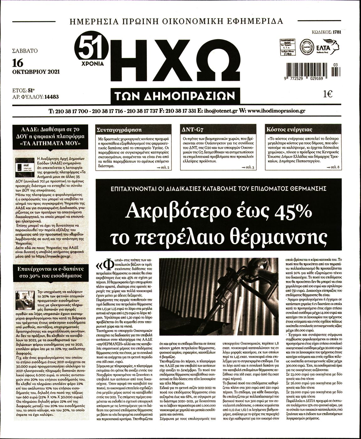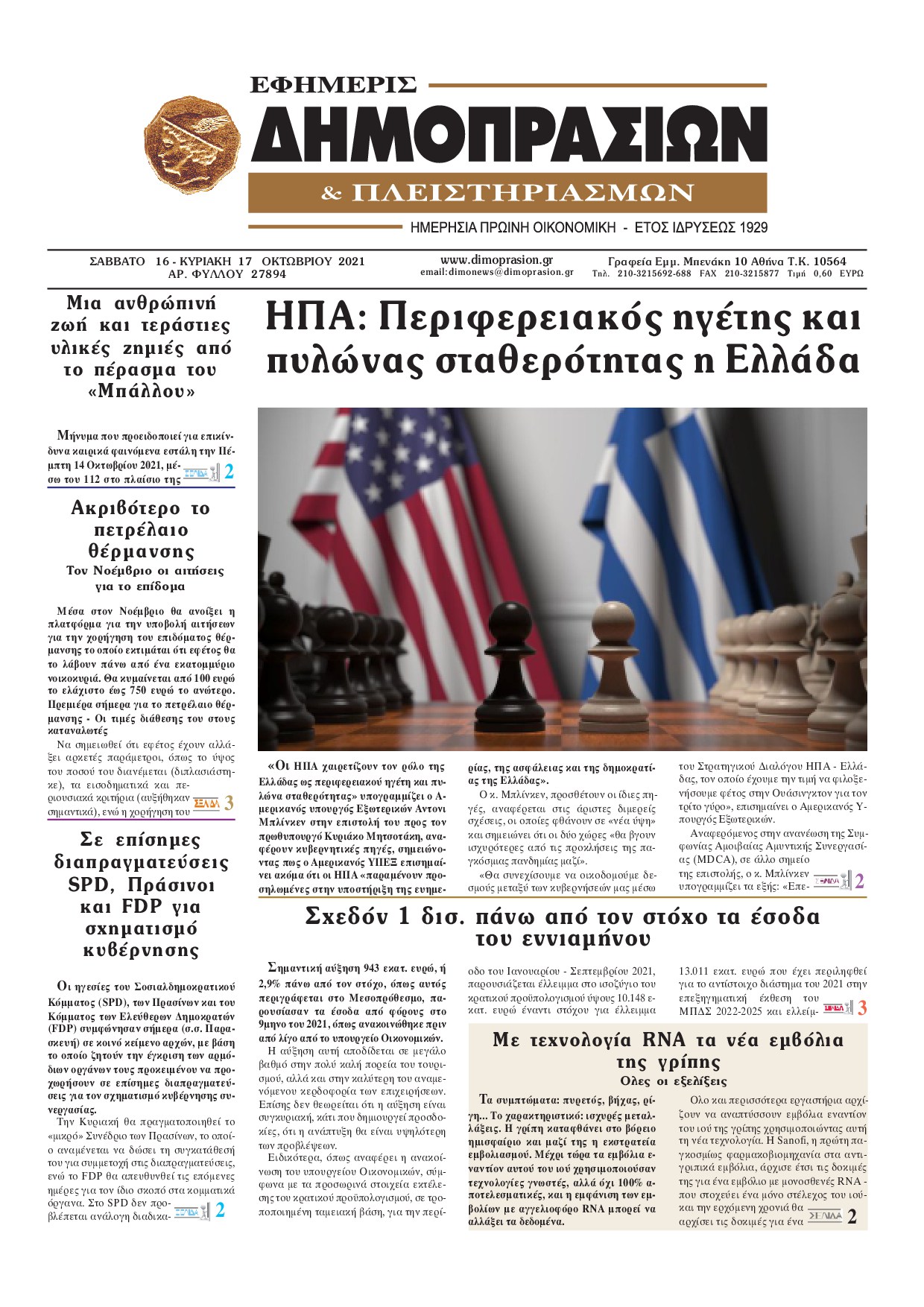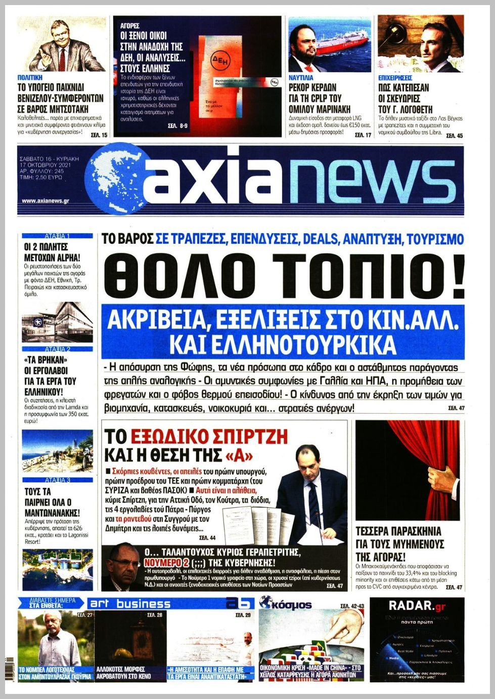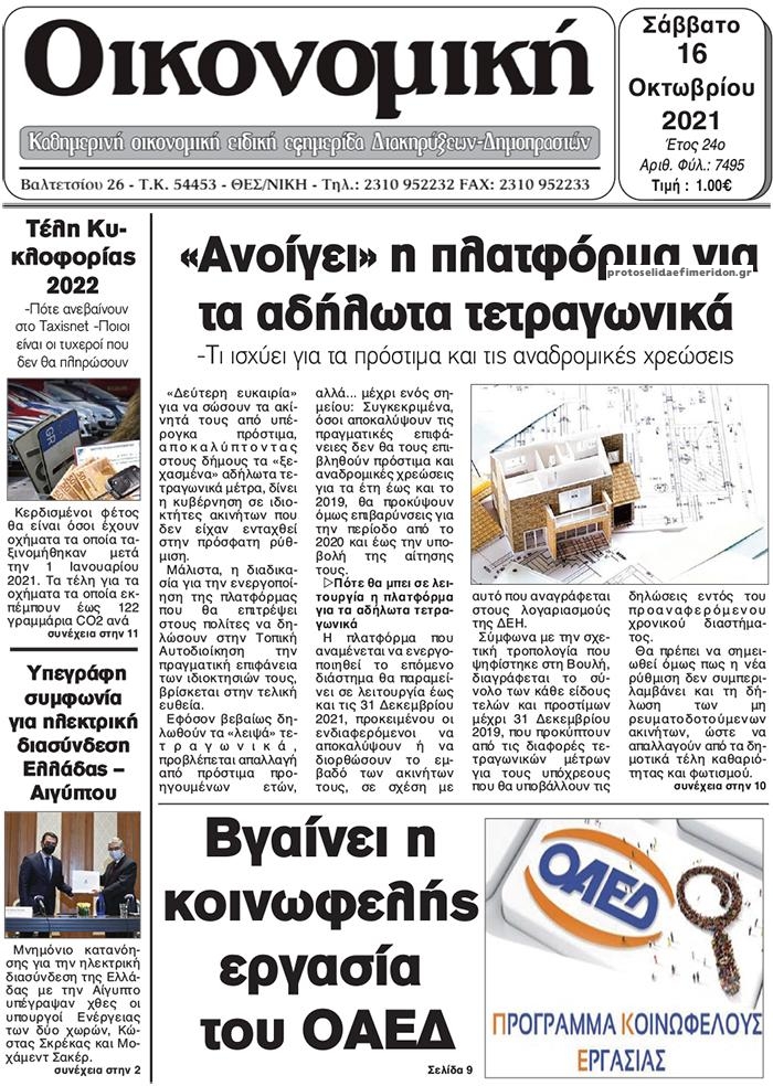 Οι οικονομικές εφημερίδες 16/10/2021 Διονύσης Νίκκας 08:02, Σάββατο 16 Οκτωβρίου 2021 Media Διαβάστε τα πρωτοσέλιδα από τις οικονομικές εφημερίδες… ΟΙΚΟΝΟΜΙΚΕΣ ΕΦΗΜΕΡΙΔΕΣ Μοιράσου το: σχολίασε κι εσύ (0 σχόλια) Ακολουθήστε το enikos.gr στο Google News και μάθετε πρώτοι όλες τις ειδήσεις Δείτε όλες τις τελευταίες ειδήσεις από την Ελλάδα και τον Κόσμο στο enikos.gr Ειδήσεις Ροή Ειδήσεων 33 λεπτά πριν Αγρότες: «Όχι στον διάλογο, μας εμπαίζει η κυβέρνηση» – Αποφάσισαν κλιμάκωση των κινητοποιήσεων 1 ώρα πριν Την πρώτη Belharra παρέλαβε η χώρα μας, υψώθηκε η ελληνική σημαία στη φρεγάτα «Κίμων» – Δένδιας: «Το ισχυρότερο Πολεμικό Ναυτικό που είχε ποτέ ο ελληνισμός» 4 ώρες πριν Γιώργος Μαζωνάκης: «Δεν ζήτησα χρήματα, παρά μόνο ηθική δικαίωση» – Οι πρώτες δηλώσεις του 21χρονου μετά την κατάθεση της μήνυσης 18 λεπτά πριν Μιχάλης Χουρδάκης: «Είμαι διαθέσιμος να συμβάλω στην προσωρινή κάλυψη του ιατρείου της Ψερίμου» – Η επιστολή στον Άδωνι Γεωργιάδη 41 λεπτά πριν Εξώδικο Γεωργιάδη στην Κωνσταντοπούλου – «Με κατηγόρησε ότι έχω καταδικαστεί για παιδεραστία» 1 ώρα πριν Τα 5 ζώδια που θα ευνοηθούν στα οικονομικά τους το 2026 – «Τραβούν το χρήμα σαν μαγνήτες» 6 ώρες πριν Αν κάνετε συνεχώς αυτά τα 8 πράγματα με τα κατοικίδιά σας, σας λείπει η ανθρώπινη επαφή 2 ώρες πριν Αυτό που κρύβεται κάτω από τη Γροιλανδία θα μπορούσε να ανατρέψει όσα γνωρίζουμε για την άνοδο της στάθμης των θαλασσών 1 ημέρα πριν 20 χρόνια τα Χριστούγεννα ξεκινούν στα Public με μεγάλη ποικιλία σε δώρα! 1 λεπτό πριν Σμαράγδα Καρύδη για την περούκα της «Ντάλιας»: «Την είχα 20 χρόνια και τώρα μπήκε ξανά σε κουτί» 6 λεπτά πριν Άγιος έρωτας: Η Χριστίνα εξομολογείται στον πατέρα Νικόλαο, απόψε στις 21:00 στον Alpha 11 λεπτά πριν ΕΛΚ – Κωστής Χατζηδάκης: Παρεμβάσεις σε 9 τομείς για την ανταγωνιστικότητα 18 λεπτά πριν Μιχάλης Χουρδάκης: «Είμαι διαθέσιμος να συμβάλω στην προσωρινή κάλυψη του ιατρείου της Ψερίμου» – Η επιστολή στον Άδωνι Γεωργιάδη 22 λεπτά πριν Κουίζ για την παλιά Αθήνα: Αναγνωρίζετε την περιοχή; Είναι από τις πιο γνωστές ENIKOS NETWORK 100 χρόνια ΠΙΣ: Ένας αιώνας προσφοράς στην Ιατρική και την κοινωνία Ένα ποτήρι την ημέρα από αυτόν τον χυμό μειώνει τη χοληστερίνη, τη φλεγμονή και την πίεση Χριστούγεννα και Πρωτοχρονιά: Δείτε πόσα χρήματα θα πάρουν ως αμοιβή όσοι εργαστούν Κρατική επιχορήγηση έως 14.500 ευρώ: Ποιοι θα λάβουν από σήμερα την προκαταβολή στον τραπεζικό λογαριασμό τους Χαρτογραφώντας το «σημείο χωρίς επιστροφή»: Για πρώτη φορά αποκαλύπτεται με λεπτομέρεια το ακανθώδες όριο της ατμόσφαιρας τ... Η Google καταργεί τη λειτουργία «dark web report» – Πώς θα μπορούν οι χρήστες να διαγράφουν τα δεδομένα τους περισσότερα 17:20 , Πέμπτη 18 Δεκεμβρίου 2025 Άγιος έρωτας: Η Χριστίνα εξομολογείται στον πατέρα Νικόλαο, απόψε στις 21:00 στον Alpha Η Νότα αποφασίζει να εκδικηθεί τον Πέτρο και τον Στέφανο, για χάρη του Λούη, όμως τα πράγματα ... 16:50 , Πέμπτη 18 Δεκεμβρίου 2025 Να μ’ αγαπάς: Ζωή και Φωτεινή συμφιλιώνονται ως μάνα με κόρη, απόψε στις 20:00 Η ταυτότητα του Άγγελου αποκαλύπτεται στο νέο επεισόδιο της σειράς “Να μ’ αγαπάς... 15:52 , Πέμπτη 18 Δεκεμβρίου 2025 Το Σπίτι Δίπλα Στο Ποτάμι: Το καθηλωτικό τελευταίο επεισόδιο για το 2025 απόψε στις 22:30 Καθηλώνει το σημερινό επεισόδιο της σειράς “Το Σπίτι Δίπλα Στο Ποτάμι” που έρχεται... 15:20 , Πέμπτη 18 Δεκεμβρίου 2025 Άγιος έρωτας – Η Ελευθερία Αρβανιτάκη τραγουδά και ο Γιάννης Τσορτέκης καθηλώνει με τον χορό του Ο Κλεάνθ