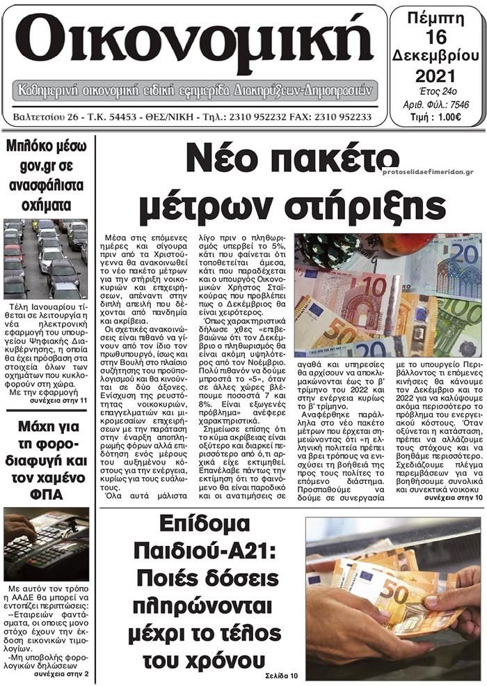 Οι οικονομικές εφημερίδες 16/12/2021 Διονύσης Νίκκας 06:37, Πέμπτη 16 Δεκεμβρίου 2021 Media Διαβάστε τα πρωτοσέλιδα από τις οικονομικές εφημερίδες… ΟΙΚΟΝΟΜΙΚΕΣ ΕΦΗΜΕΡΙΔΕΣ Μοιράσου το: σχολίασε κι εσύ (0 σχόλια) Ακολουθήστε το enikos.gr στο Google News και μάθετε πρώτοι όλες τις ειδήσεις Δείτε όλες τις τελευταίες ειδήσεις από την Ελλάδα και τον Κόσμο στο enikos.gr Ειδήσεις Ροή Ειδήσεων 1 ώρα πριν Δημοσκόπηση Metron Analysis: Στις 10 μονάδες η διαφορά ΝΔ-ΠΑΣΟΚ, στην 3η θέση η Πλεύση Ελευθερίας – 8 στους 10 στηρίζουν τον αγώνα των αγροτών 6 ώρες πριν Αγρότες: «Όχι στον διάλογο, μας εμπαίζει η κυβέρνηση» – Αποφάσισαν κλιμάκωση των κινητοποιήσεων, τι θα γίνει τα Χριστούγεννα 1 ώρα πριν Νίκος Παππάς στον ΑΝΤ1: «Δεν κρύβομαι – Μετά το συμβάν ακολούθησα κανονικά το πρόγραμμά μου» – ΒΙΝΤΕΟ 3 ώρες πριν Αθήνα: Εξαρθρώθηκε εγκληματική οργάνωση που διακινούσε ναρκωτικά σε μορφή σοκολάτας – Δύο τράπερ ανάμεσα στους 4 συλληφθέντες – ΒΙΝΤΕΟ 1 ώρα πριν Διαμαντής Καραναστάσης: Οδηγούσε υπό την επήρεια αλκοόλ – Του αφαιρέθηκε το δίπλωμα και του επιβλήθηκε πρόστιμο 350 ευρώ 2 ώρες πριν Manifesting: Πώς να συναντήσετε τον σύντροφο της ζωής σας, ανάλογα με τον μήνα γέννησής σας 4 ώρες πριν Γάμος: 11 ψυχρές αλλά ευγενικές φράσεις, που λέει ένας άνδρας όταν σκέφτεται τον χωρισμό 3 ώρες πριν Σφουγγάρισμα: Η συνήθεια που θα σας βοηθήσει να διατηρήσετε το σπίτι σας καθαρό και τακτοποιημένο 2 ημέρες πριν 20 χρόνια τα Χριστούγεννα ξεκινούν στα Public με μεγάλη ποικιλία σε δώρα! 4 λεπτά πριν Ελισάβετ Κωνσταντινίδου για τον Γεράσιμο Μιχελή και την Πόπη Χριστοδούλου: «Ξέρω ότι έχουν πάει απλώς κάπου αλλού, ότι δεν είναι ο θάνατος έτσι όπως τον έχουμε στο μυαλό μας» 8 λεπτά πριν Κρήτη: Νέες αποκαλύψεις για τον 54χρονο που κατηγορείται ότι εξαπάτησε τους γονείς του 33χρονου – Ζητούσε τρίχες αγνοουμένων 15 λεπτά πριν Τσιάρας: Δεν θα κινδυνέψουν οι πληρωμές των αγροτών – Χρειαζόμαστε μια νέα πολιτική, ένα restart 22 λεπτά πριν Δέσποινα Βανδή: Το βίντεο που δημοσίευσε με τον Γιώργο Νικολαΐδη – «Έχουμε καταστραφεί από τα μελομακάρονά σου» 27 λεπτά πριν Κλήρωση ΤΖΟΚΕΡ 18/12/2025: Αυτοί είναι οι τυχεροί αριθμοί ENIKOS NETWORK Σε περίοδο αυξημένης δραστηριότητας η γρίπη στην Ελλάδα-Μέτρα προστασίας από τον ΕΟΔΥ Σκέφτεστε συνέχεια συζητήσεις που έχετε κάνει; Τι σημαίνει αυτό, σύμφωνα με ειδικό ΑΣΕΠ 2ΓΒ/2025: Σήμερα αρχίζει η υποβολή ενστάσεων – Πότε θα βγουν τα οριστικά αποτελέσματα ΕΛΤΑ: Αυτό είναι το νέο σχέδιο μετασχηματισμού του Οργανισμού- Τι δήλωσαν Πιερρακάκης και Παπαστεργίου Χαρτογραφώντας το «σημείο χωρίς επιστροφή»: Για πρώτη φορά αποκαλύπτεται με λεπτομέρεια το ακανθώδες όριο της ατμόσφαιρας τ... Η Google καταργεί τη λειτουργία «dark web report» – Πώς θα μπορούν οι χρήστες να διαγράφουν τα δεδομένα τους περισσότερα 17:45 , Πέμπτη 18 Δεκεμβρίου 2025 ROUK ZOUK: Εορταστικό επεισόδιο με καλεσμένους τους πρωταγωνιστές του «Γιατί ρε πατέρα» Το Σάββατο 20 Δεκεμβρίου στις 21:00, η Ζέτα Μακρυπούλια υποδέχεται εκλεκτούς ηθοποιούς που όλο... 17:20 , Πέμπτη 18 Δεκεμβρίου 2025 Άγιος έρωτας: Η Χριστίνα εξομολογείται στον πατέρα Νικόλαο, απόψε στις 21:00 στον Alpha Η Νότα αποφασίζει να εκδικηθεί τον Πέτρο και τον Στέφανο, για χάρη του Λούη, όμως τα πράγματα ... 16:50 , Πέμπτη 18 Δεκεμβρίου 2025 Να μ’ αγαπάς: Ζωή και Φωτεινή συμφιλιώνονται ως μάνα με κόρη, απόψε στις 20:00 Η ταυτότητα του Άγγελου αποκαλύπτεται στο νέο επεισόδιο της σειράς “Να μ’ αγαπάς... 15:52 , Πέμπτη 18 Δεκεμβρίου 2025 Το Σπίτι 