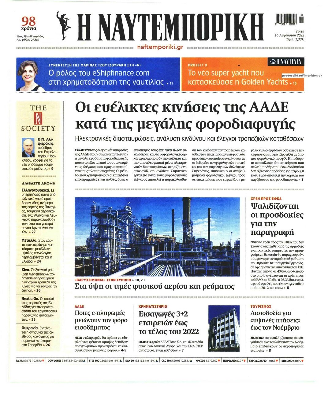 Οι οικονομικές εφημερίδες 16/8/2022 Σήφης Γαρυφαλάκης 06:29, Τρίτη 16 Αυγούστου 2022 Media Διαβάστε τα πρωτοσέλιδα από τις οικονομικές εφημερίδες, σήμερα 16/08/2022. ΕΦΗΜΕΡΙΔΕΣ ΟΙΚΟΝΟΜΙΚΕΣ ΕΦΗΜΕΡΙΔΕΣ ΠΡΩΤΟΣΕΛΙΔΑ Μοιράσου το: Οι οικονομικές εφημερίδες 13/8/2022 Οι οικονομικές εφημερίδες 12/8/2022 Οι οικονομικές εφημερίδες 11/8/2022 σχολίασε κι εσύ (0 σχόλια) Ακολουθήστε το enikos.gr στο Google News και μάθετε πρώτοι όλες τις ειδήσεις Δείτε όλες τις τελευταίες ειδήσεις από την Ελλάδα και τον Κόσμο στο enikos.gr Ειδήσεις Ροή Ειδήσεων 6 ώρες πριν Μητσοτάκης: Αναγκαία η μεταρρύθμιση του πρωτογενούς τομέα – Τα 6 νέα μέτρα για το στεγαστικό και οι αναφορές σε «Ιθάκη» και «πολιτικούς του καναπέ» 5 ώρες πριν Δάνεια σε ελβετικό φράγκο: Τα βασικά σημεία της ρύθμισης – ανάσας για 40.000 δανειολήπτες – Αναλυτικός οδηγός με ερωτήσεις και απαντήσεις 5 ώρες πριν Κυψέλη: Εξιτήριο πήρε η 14χρονη μαθήτρια που μαχαιρώθηκε από την 16χρονη σε σχολείο – «Θέλω να βοηθήσω το παιδί, έχει μπλέξει με κακές παρέες» 4 ώρες πριν Τραμπ: Γιατί κατέθεσε τώρα την αγωγή κατά του BBC – Πώς η κίνησή του εξυπηρετεί το νέο δόγμα του για «αντίσταση» στην Ευρώπη, υπέρ των συντηρητικών 5 ώρες πριν ΟΠΕΚΕΠΕ – Παράνομες επιδοτήσεις: Ελεύθεροι με περιοριστικούς όρους και οι 7 κατηγορούμενοι που απολογήθηκαν σήμερα 5 ώρες πριν Ανακαλύφθηκε βυθισμένη πέτρινη κατασκευή ανοιχτά της Κριμαίας – Αποτελεί μέρος αρχαίας ελληνικής αποικίας 6 ώρες πριν Ύπνος: Αυτό μπορεί να είναι το χειρότερο λάθος για το βιολογικό ρολόι σας, σύμφωνα με ειδικό 7 ώρες πριν Αριθμολογία: Οι άνθρωποι που έχουν γεννηθεί αυτές τις 3 ημερομηνίες, προσελκύουν μεγάλη τύχη πριν από το τέλος του 2025 9 ώρες πριν Οι 7 συμπεριφορές που μαρτυρούν ότι ένας άνδρας επενδύει μακροπρόθεσμα σε μια σχέση 10 λεπτά πριν Παναγιώτης Μπουγιούρης: «Έχω μια αφέλεια σε σχέση με τη δουλειά μου» 25 λεπτά πριν Παναθηναϊκός: Η έντονη επιθυμία του Ματίας Λεσόρ να επιστρέψει στα γήπεδα – «Μου λείπει πολύ το γ@@@@». 40 λεπτά πριν Νίκος Πλακιάς: Η Μαρία Καρυστιανού πλέον θα κρίνεται ως πολιτικός και όχι ως συγγενής 56 λεπτά πριν Ντόναλντ Τραμπ: Κάλυψε απόλυτα την προσωπάρχη του Λευκού Οίκου: «Ναι, έχω προσωπικότητα αλκοολικού» 1 ώρα πριν ΗΠΑ: Στην αγορά δύο Boeing 747-8 προχωρά η Πολεμική Αεροπορία για την υποστήριξη του προεδρικού στόλου ENIKOS NETWORK Αίτημα ΙΣΑ για την εξαίρεση των προσωπικών γιατρών από τις κατ’ οίκον επισκέψεις Η σκανδιναβική μέθοδος στον ύπνο που μπορεί να σώσει έναν γάμο Πιερρακάκης: Ο προϋπολογισμός συμβάλλει ουσιαστικά στην ενίσχυση της αγοραστικής δύναμης της πλειονότητας των εργαζομένων e-ΕΦΚΑ: Παρατείνεται η προθεσμία για την υποβολή ΑΠΔ – Ποιους αφορά Σύγχρονος Νοστράδαμος: Προειδοποιεί για «μεγάλο γεγονός» τους επόμενους μήνες που θα συγκλονίσει τη Βρετανία και τον κόσμο Τεστ παρατηρητικότητας: Μπορείτε να βρείτε τις 3 διαφορές στις εικόνες με έναν πιγκουίνο σε 14 δευτερόλεπτα περισσότερα 20:06 , Τρίτη 16 Δεκεμβρίου 2025 Ο ΣΚΑΙ καταγγέλλει τον ΕΚΚΟΜΕΔ Επιστολή με την οποία καταγράφει την έντονη διαμαρτυρία του προς τον διευθύνοντα σύμβουλο του... 17:40 , Τρίτη 16 Δεκεμβρίου 2025 Eurovision: Στις 4 Ιανουαρίου αποκαλύπτονται τα 28 τραγούδια του ελληνικού τελικού Η αγωνία τελειώνει, η γιορτή της Eurovision αρχίζει στην ΕΡΤ από τις πρώτες ημέρες της νέας χρ... 17:09 , Τρίτη 16 Δεκεμβρίου 2025 Alter Ego Media: Βαθύτατη θλίψη και ειλικρινή συλλυπητήρια για την απώλεια της Ειρήνης Μαρινάκη Τη βαθύτατη θλίψη και τα ειλι