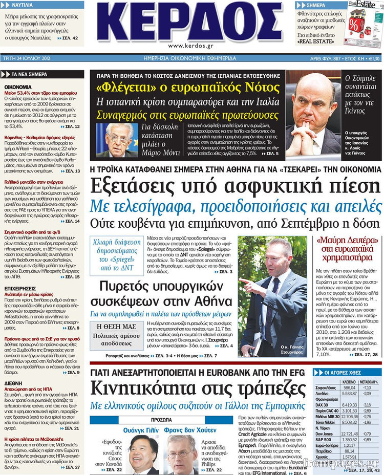 Δείτε τα σημερινά πρωτοσέλιδα των οικονομικών εφημερίδων.