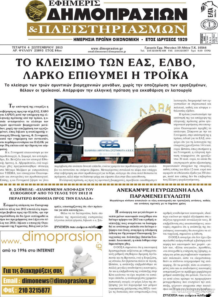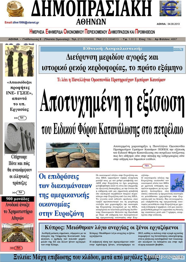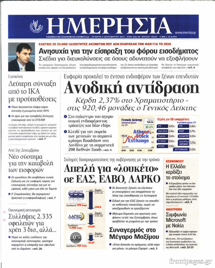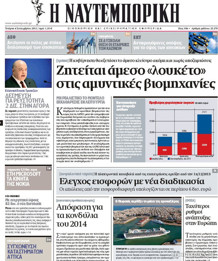 Οι oικονομικές εφημερίδες Enikos Newsroom 09:12, Τετάρτη 04 Σεπτεμβρίου 2013 Media Οι oικονομικές εφημερίδες Διαβάστε τα πρωτοσέλιδα των οικονομικών εφημερίδων: ΕΦΗΜΕΡΙΔΕΣ ΟΙΚΟΝΟΜΙΚΕΣ ΕΦΗΜΕΡΙΔΕΣ ΠΡΩΤΟΣΕΛΙΔΑ Μοιράσου το: σχολίασε κι εσύ (0 σχόλια) Ακολουθήστε το enikos.gr στο Google News και μάθετε πρώτοι όλες τις ειδήσεις Δείτε όλες τις τελευταίες ειδήσεις από την Ελλάδα και τον Κόσμο στο enikos.gr Ειδήσεις Ροή Ειδήσεων 3 ώρες πριν Εκτός ευρωομάδας ΣΥΡΙΖΑ ο Νίκος Παππάς μετά την επίθεση στον δημοσιογράφο Νίκο Γιαννόπουλο – Η μήνυση και οι νέες δηλώσεις 3 ώρες πριν «Αγριεύουν» οι αγρότες: «Δεν συντρέχει λόγος συνάντησης με τον πρωθυπουργό» – Ώρα αποφάσεων στη σύσκεψη της Πέμπτης 3 ώρες πριν Κυψέλη: Χωρίς την οικογένειά της δίπλα της απολογήθηκε η 16χρονη – «Της είχε επιτεθεί κάποιος για να την βιάσει, φοβήθηκε και κυκλοφορούσε με μαχαίρι» 3 ώρες πριν Politico: Το πρόβλημα της Ευρώπης δεν είναι το Βέλγιο αλλά ο Ντόναλντ Τραμπ 5 ώρες πριν Αλεξανδρούπολη: Πολυοργανική ανεπάρκεια λόγω υποσιτισμού η αιτία θανάτου του 3χρονου αγοριού 3 ώρες πριν Μυστήριο με τεράστιες κυκλικές πέτρες 200 κιλών – Ανακαλύφθηκαν τυχαία κατά τη διάρκεια οδικών έργων και κανείς δεν ξέρει από πού προέρχονται 4 ώρες πριν Ύπνος: Ειδικός εξηγεί τον πραγματικό λόγο που ξυπνάτε στις 4 τα ξημερώματα – Ο ρόλος των ορμονών και του κιρκάδιου ρυθμού 5 ώρες πριν Αριθμολογία: Οι άνθρωποι που έχουν γεννηθεί αυτές τις 4 ημερομηνίες, είναι τρυφεροί και αγαπούν ανιδιοτελώς 17 ώρες πριν 20 χρόνια τα Χριστούγεννα ξεκινούν στα Public με μεγάλη ποικιλία σε δώρα! 8 λεπτά πριν Βρυξέλλες: Νυχτερινό… μπλόκο αγροτών μπροστά από το κτίριο της Ευρωπαϊκής Επιτροπής – Πάνω από 100 τρακτέρ απέκλεισαν την λεωφόρο 23 λεπτά πριν Euroleague: Απρόσμενη ήττα για την Μονακό του Βασίλη Σπανούλη – Η βαθμολογία μετά το τέλος της 16ης αγωνιστικής 39 λεπτά πριν Μουντιάλ 2026: Η νέα ταξιδιωτική απαγόρευση του Ντόναλντ Τραμπ πλήττει (και) τους οπαδούς Σενεγάλης – Ακτής Ελεφαντοστού 50 λεπτά πριν Κυριάκος Μητσοτάκης: Στις Βρυξέλλες για την Σύνοδο Κορυφής ΕΕ και Δυτικών Βαλκανίων – Δείτε φωτογραφίες 1 ώρα πριν Σάρα Εσκενάζυ: Η πρώτη ανάρτηση για το θάνατο του πατέρα της, Αλμπέρτο Εσκενάζυ και η επιθυμία της οικογένειας ENIKOS NETWORK Αϋπνία: Το κόλπο που θα σας βοηθήσει να κοιμηθείτε απόψε – Είναι απλό και έχει αποτέλεσμα 2,6 εκατομμύρια πολίτες έχουν ήδη εμβολιαστεί κατά της γρίπης ΕΛΣΤΑΤ: Τι δείχνουν τα νέα στοιχεία για τις ηλεκτρονικές παραγγελίες των επιχειρήσεων ΚΕΠΕ: Οι 3 διακριτές συμβολές των ΜμΕ και της μεταποίησης στην ελληνική οικονομία Χαρτογραφώντας το «σημείο χωρίς επιστροφή»: Για πρώτη φορά αποκαλύπτεται με λεπτομέρεια το ακανθώδες όριο της ατμόσφαιρας τ... Η Google καταργεί τη λειτουργία «dark web report» – Πώς θα μπορούν οι χρήστες να διαγράφουν τα δεδομένα τους περισσότερα 22:24 , Τετάρτη 17 Δεκεμβρίου 2025 Το Σπίτι Δίπλα Στο Ποτάμι: Σε κίνδυνο η υγεία του Απόστολου – Τι θα δούμε απόψε “Το Σπίτι Δίπλα στο Ποτάμι” ξετυλίγει το νήμα της ζωής των πέντε αδελφών με καταισ... 21:14 , Τετάρτη 17 Δεκεμβρίου 2025 Παιχνίδια Εκδίκησης: Θα καταφέρει ο Χρήστος να κλονίσει την εμπιστοσύνη της Μάγιας απέναντι στον Άγη; Τα «Παιχνίδια Εκδίκησης» έρχονται απόψε στις 22:30, στον Αντ1, με το τελευταίο επεισόδιο της χ... 20:57 , Τετάρτη 17 Δεκεμβρίου 2025 Άγιος Έρωτας: Η Χλόη καταθέτει εναντίον του πατέρα της και ο Χάρης αποκαλύπτει στον Κλεάνθη ότι δεν είναι ο βιολογικός του πατέρας. Γεμάτο αποκα