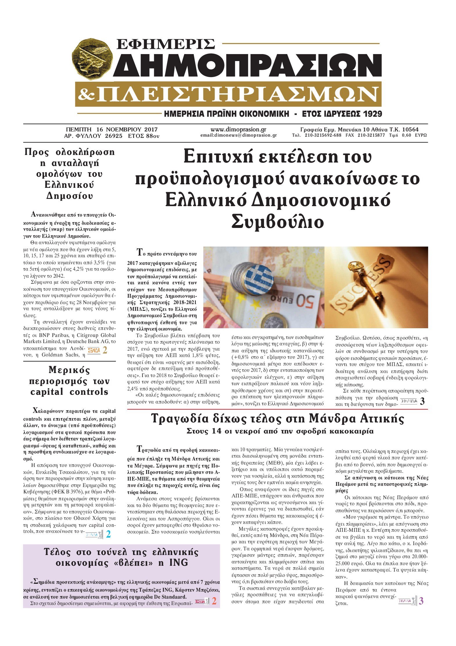 Οι οικονομικές εφημερίδες 16/11/2017 Enikos Newsroom 06:55, Πέμπτη 16 Νοεμβρίου 2017 Media Διαβάστε τα σημερινά πρωτοσέλιδα των οικονομικών εφημερίδων: ΟΙΚΟΝΟΜΙΚΕΣ ΕΦΗΜΕΡΙΔΕΣ ΠΡΩΤΟΣΕΛΙΔΑ Μοιράσου το: σχολίασε κι εσύ (0 σχόλια) Ακολουθήστε το enikos.gr στο Google News και μάθετε πρώτοι όλες τις ειδήσεις Δείτε όλες τις τελευταίες ειδήσεις από την Ελλάδα και τον Κόσμο στο enikos.gr Ειδήσεις Ροή Ειδήσεων 4 ώρες πριν Αγρότες: «Όχι στον διάλογο, μας εμπαίζει η κυβέρνηση» – Αποφάσισαν κλιμάκωση των κινητοποιήσεων, τι θα γίνει τα Χριστούγεννα 1 ώρα πριν Αθήνα: Εξαρθρώθηκε εγκληματική οργάνωση που διακινούσε ναρκωτικά σε μορφή σοκολάτας – Δύο τράπερ ανάμεσα στους 4 συλληφθέντες – ΒΙΝΤΕΟ 1 ώρα πριν Στη φυλακή ο «Έλληνας Εσκομπάρ» και τρεις συνεργοί του για το φορτίο με την κοκαΐνη – Τι υποστήριξε στην απολογία του 3 ώρες πριν Γιώργος Μαζωνάκης: «Έχει υποστεί ένα σωρό εκβιαστικές πρακτικές – Του είπαν ότι θα του βάλουν τον συγκεκριμένο άνθρωπο να τον καταγγείλει» 1 ώρα πριν Γεωργιάδης για Κωνσταντοπούλου: «Έχει καταφέρει να ξεπεράσει ακόμη και τον εαυτό της – Το ερώτημα είναι “γιατί τώρα;”» 5 ώρες πριν Τα 5 ζώδια που θα ευνοηθούν στα οικονομικά τους το 2026 – «Τραβούν το χρήμα σαν μαγνήτες» 2 ώρες πριν Γάμος: 11 ψυχρές αλλά ευγενικές φράσεις, που λέει ένας άνδρας όταν σκέφτεται τον χωρισμό 1 ώρα πριν Σφουγγάρισμα: Η συνήθεια που θα σας βοηθήσει να διατηρήσετε το σπίτι σας καθαρό και τακτοποιημένο 1 ημέρα πριν 20 χρόνια τα Χριστούγεννα ξεκινούν στα Public με μεγάλη ποικιλία σε δώρα! 3 λεπτά πριν Δημοσκόπηση Metron Analysis: Στις 10 μονάδες η διαφορά ΝΔ-ΠΑΣΟΚ, στην 3η θέση η Πλεύση Ελευθερίας – 8 στους 10 στηρίζουν τον αγώνα των αγροτών 8 λεπτά πριν Ολυμπιακός: Τι ζήτησε από τον Άγιο Βασίλη ο Χοσέ Λουίς Μεντιλίμπαρ 14 λεπτά πριν Manifesting: Πώς να συναντήσετε τον σύντροφο της ζωής σας, ανάλογα με τον μήνα γέννησής σας 23 λεπτά πριν Hellenic Train: Καθυστερήσεις στον Προαστιακό λόγω φωτιάς κοντά στη σιδηροδρομική γραμμή 35 λεπτά πριν ΗΠΑ: Νέες φωτογραφίες από τον φάκελο Επστάιν έδωσαν στην δημοσιότητα οι Δημοκρατικοί ENIKOS NETWORK Σε περίοδο αυξημένης δραστηριότητας η γρίπη στην Ελλάδα-Μέτρα προστασίας από τον ΕΟΔΥ Σκέφτεστε συνέχεια συζητήσεις που έχετε κάνει; Τι σημαίνει αυτό, σύμφωνα με ειδικό Servicers: Μικρή μείωση στα κόκκινα δάνεια που διαχειρίζονται – Αναλυτικά τα στοιχεία ΑΑΔΕ: “Αλλάζει πρόσωπο” το Φορολογικό Μητρώο για πολίτες και επιχειρήσεις – Όλες οι λεπτομέρειες Χαρτογραφώντας το «σημείο χωρίς επιστροφή»: Για πρώτη φορά αποκαλύπτεται με λεπτομέρεια το ακανθώδες όριο της ατμόσφαιρας τ... Η Google καταργεί τη λειτουργία «dark web report» – Πώς θα μπορούν οι χρήστες να διαγράφουν τα δεδομένα τους περισσότερα 17:45 , Πέμπτη 18 Δεκεμβρίου 2025 ROUK ZOUK: Εορταστικό επεισόδιο με καλεσμένους τους πρωταγωνιστές του «Γιατί ρε πατέρα» Το Σάββατο 20 Δεκεμβρίου στις 21:00, η Ζέτα Μακρυπούλια υποδέχεται εκλεκτούς ηθοποιούς που όλο... 17:20 , Πέμπτη 18 Δεκεμβρίου 2025 Άγιος έρωτας: Η Χριστίνα εξομολογείται στον πατέρα Νικόλαο, απόψε στις 21:00 στον Alpha Η Νότα αποφασίζει να εκδικηθεί τον Πέτρο και τον Στέφανο, για χάρη του Λούη, όμως τα πράγματα ... 16:50 , Πέμπτη 18 Δεκεμβρίου 2025 Να μ’ αγαπάς: Ζωή και Φωτεινή συμφιλιώνονται ως μάνα με κόρη, απόψε στις 20:00 Η ταυτότητα του Άγγελου αποκαλύπτεται στο νέο επεισόδιο της σειράς “Να μ’ αγαπάς... 15:52 , Πέμπτη 18 Δεκεμβρίου 2025 Το Σπίτι Δίπλα Στο Ποτάμι: Το καθηλωτικό τελευταίο επεισόδιο για το 2025 απόψε στις 22:30 Καθηλών