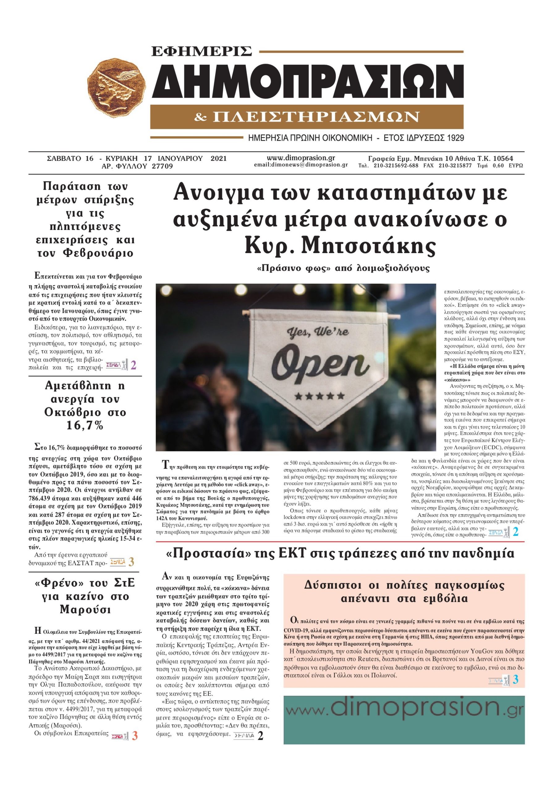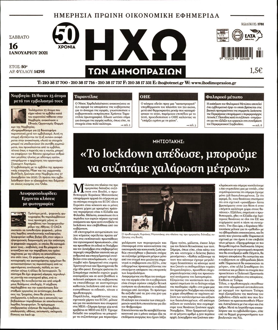 Οι οικονομικές εφημερίδες 16/1/2021 Διονύσης Νίκκας 07:44, Σάββατο 16 Ιανουαρίου 2021 Media Διαβάστε τα πρωτοσέλιδα των οικονομικών εφημερίδων… ΟΙΚΟΝΟΜΙΚΕΣ ΕΦΗΜΕΡΙΔΕΣ Μοιράσου το: σχολίασε κι εσύ (0 σχόλια) Ακολουθήστε το enikos.gr στο Google News και μάθετε πρώτοι όλες τις ειδήσεις Δείτε όλες τις τελευταίες ειδήσεις από την Ελλάδα και τον Κόσμο στο enikos.gr Ειδήσεις Ροή Ειδήσεων 2 ώρες πριν Αγρότες: Πολύωροι αποκλεισμοί στα τελωνεία Προμαχώνα, Εξοχής, Ευζώνων και Νίκης – Κλείνουν τον κόμβο Φιλώτα οι παραγωγοί στη Δυτική Μακεδονία 2 ώρες πριν Νίκος Παππάς: Ζητώ συγγνώμη για αυτό το επεισόδιο – Δεν τον γρονθοκόπησα 1 ώρα πριν Πούτιν: Η Ουκρανία δεν είναι έτοιμη για ειρηνευτικές συνομιλίες – ο ρωσικός στρατός προελαύνει σε όλα τα μέτωπα 42 λεπτά πριν Κρήτη: Στο Ρέθυμνο μεταφέρονται οι εκατοντάδες μετανάστες που διασώθηκαν ανοιχτά της Γαύδου 2 ώρες πριν Τρομακτικό βίντεο: Η στιγμή της έκρηξης στο τζετ που μετέφερε τον οδηγό του NASCAR, Γκρεγκ Μπιφλ και την οικογένειά του 3 ώρες πριν Αλλαγή σελίδας για 3 ζώδια – «Μία δύσκολη περίοδος φτάνει στο τέλος της» 2 ημέρες πριν 20 χρόνια τα Χριστούγεννα ξεκινούν στα Public με μεγάλη ποικιλία σε δώρα! 2 ώρες πριν Γεμάτος νεροχύτης; 5 σοβαρές ευθύνες που «φοβίζουν» όσους αφήνουν άπλυτα πιάτα 47 λεπτά πριν Ειδικός μοιράζεται 6 κόλπα για να διατηρείστε σε φόρμα με πάνω από 40 ώρες εργασίας την εβδομάδα: «Προπονηθείτε πριν από τη δουλειά, όχι μετά» 6 λεπτά πριν Αγρότες: Παραμένουν στα μπλόκα και ενισχύουν τις δράσεις τους σε Ημαθία, Πέλλα, Πιερία και Καβάλα 12 λεπτά πριν Γιώργος Μαζωνάκης: «Φοβόταν, θεώρησα ότι έπρεπε να τον προστατεύσω» – Τι λέει η τραγουδίστρια, Νωαίνα για τον Στέφανο Παπαδόπουλο 17 λεπτά πριν Βελόπουλος: Ό,τι και να κάνουν στην κυβέρνηση, όλοι οι υπαίτιοι του εγκλήματος των Τεμπών θα μπουν στην φυλακή 23 λεπτά πριν ΕΥΔΑΠ: 17 ερωτήσεις και απαντήσεις για τις αλλαγές στα τιμολόγια του νερού 30 λεπτά πριν Οδοντιατρικός Σύλλογος Αττικής: Προσοχή στις παραπλανητικές διαφημίσεις οδοντικών εμφυτευμάτων ENIKOS NETWORK Κίνδυνος παραπλάνησης από διαφημίσεις οδοντικών εμφυτευμάτων Καρκίνος του πνεύμονα: Έως 8.000 ζωές μπορούν να σωθούν με την έγκαιρη διάγνωση Αγορά πολυτελών κατοικιών: Αυτές είναι οι προτεραιότητες των αγοραστών – Σε ποιες περιοχές στρέφονται και τι επιλέγουν ΕΥΔΑΠ: Στο τραπέζι αλλαγές στους λογαριασμούς του νερού – Τι θα ισχύσει για ευάλωτα νοικοκυριά και επιχειρήσεις Χαρτογραφώντας το «σημείο χωρίς επιστροφή»: Για πρώτη φορά αποκαλύπτεται με λεπτομέρεια το ακανθώδες όριο της ατμόσφαιρας τ... Η Google καταργεί τη λειτουργία «dark web report» – Πώς θα μπορούν οι χρήστες να διαγράφουν τα δεδομένα τους περισσότερα 08:00 , Παρασκευή 19 Δεκεμβρίου 2025 Την Κυριακή με τη Realnews: Δωροεπιταγή 10€ Δωροεπιταγή αξίας 10€ για αγορές άνω των 60€ από τα πολυκαταστήματα FactoryOutlet H προσφορά ι... 05:48 , Παρασκευή 19 Δεκεμβρίου 2025 Οι οικονομικές εφημερίδες 19/12/2025 Διαβάστε τα πρωτοσέλιδα από τις οικονομικές εφημερίδες, σήμερα 19/12/2025. 05:43 , Παρασκευή 19 Δεκεμβρίου 2025 Οι αθλητικές εφημερίδες 19/12/2025 Διαβάστε τα πρωτοσέλιδα από τις αθλητικές εφημερίδες, σήμερα 19/12/2025. 05:38 , Παρασκευή 19 Δεκεμβρίου 2025 Οι πολιτικές εφημερίδες 19/12/2025 Διαβάστε τα πρωτοσέλιδα από τις πολιτικές εφημερίδες, σήμερα 19/12/2025. ΤΕΛΕΥΤΑΙΕΣ ΕΙΔΗΣΕΙΣ 6 λεπτά πριν Αγρότες: Παραμένουν στα μπλόκα και ενισχύουν τις... 12 λεπτά πριν Γιώργος Μαζωνάκης: «Φοβόταν, θεώρησα ότι έπρεπε να τον... 17 λεπτά πριν Βελόπου