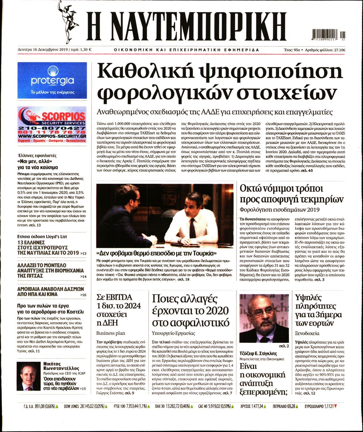 Οι οικονομικές εφημερίδες 16/12/19 Διονύσης Νίκκας 06:42, Δευτέρα 16 Δεκεμβρίου 2019 Media Διαβάστε τα πρωτοσέλιδα των οικονομικών εφημερίδων… ΕΦΗΜΕΡΙΔΕΣ ΟΙΚΟΝΟΜΙΚΕΣ ΠΡΩΤΟΣΕΛΙΔΑ Μοιράσου το: σχολίασε κι εσύ (0 σχόλια) Ακολουθήστε το enikos.gr στο Google News και μάθετε πρώτοι όλες τις ειδήσεις Δείτε όλες τις τελευταίες ειδήσεις από την Ελλάδα και τον Κόσμο στο enikos.gr Ειδήσεις Ροή Ειδήσεων 8 ώρες πριν Μητσοτάκης: Αναγκαία η μεταρρύθμιση του πρωτογενούς τομέα – Τα 6 νέα μέτρα για το στεγαστικό και οι αναφορές σε «Ιθάκη» και «πολιτικούς του καναπέ» 7 ώρες πριν Δάνεια σε ελβετικό φράγκο: Τα βασικά σημεία της ρύθμισης – ανάσας για 40.000 δανειολήπτες – Αναλυτικός οδηγός με ερωτήσεις και απαντήσεις 7 ώρες πριν Κυψέλη: Εξιτήριο πήρε η 14χρονη μαθήτρια που μαχαιρώθηκε από την 16χρονη σε σχολείο – «Θέλω να βοηθήσω το παιδί, έχει μπλέξει με κακές παρέες» 6 ώρες πριν Τραμπ: Γιατί κατέθεσε τώρα την αγωγή κατά του BBC – Πώς η κίνησή του εξυπηρετεί το νέο δόγμα του για «αντίσταση» στην Ευρώπη, υπέρ των συντηρητικών 7 ώρες πριν ΟΠΕΚΕΠΕ – Παράνομες επιδοτήσεις: Ελεύθεροι με περιοριστικούς όρους και οι 7 κατηγορούμενοι που απολογήθηκαν σήμερα 6 ώρες πριν Ανακαλύφθηκε βυθισμένη πέτρινη κατασκευή ανοιχτά της Κριμαίας – Αποτελεί μέρος αρχαίας ελληνικής αποικίας 7 ώρες πριν Ύπνος: Αυτό μπορεί να είναι το χειρότερο λάθος για το βιολογικό ρολόι σας, σύμφωνα με ειδικό 8 ώρες πριν Αριθμολογία: Οι άνθρωποι που έχουν γεννηθεί αυτές τις 3 ημερομηνίες, προσελκύουν μεγάλη τύχη πριν από το τέλος του 2025 10 ώρες πριν Οι 7 συμπεριφορές που μαρτυρούν ότι ένας άνδρας επενδύει μακροπρόθεσμα σε μια σχέση 7 λεπτά πριν Εφημερεύοντα φαρμακεία σε Αθήνα και Θεσσαλονίκη (17/12) 13 λεπτά πριν Κόστα Ρίκα: Το Κογκρέσο απέρριψε το αίτημα για άρση της ασυλίας του προέδρου Τσάβες 21 λεπτά πριν Κολομβία: Νεκροί τέσσερις αστυνομικοί σε βομβιστικές επιθέσεις ανταρτών 29 λεπτά πριν Στάση εργασίας 11:00 – 17:00 σήμερα στα λεωφορεία του ΟΑΣΑ – Ποιες γραμμές θα λειτουργήσουν 45 λεπτά πριν Παλαιστινιακό: «Η λύση των δύο κρατών είναι ο μόνος βιώσιμος δρόμος», τόνισε η Ελλάδα στο Συμβούλιο Ασφαλείας του ΟΗΕ ENIKOS NETWORK Αίτημα ΙΣΑ για την εξαίρεση των προσωπικών γιατρών από τις κατ’ οίκον επισκέψεις Η σκανδιναβική μέθοδος στον ύπνο που μπορεί να σώσει έναν γάμο Πιερρακάκης: Ο προϋπολογισμός συμβάλλει ουσιαστικά στην ενίσχυση της αγοραστικής δύναμης της πλειονότητας των εργαζομένων e-ΕΦΚΑ: Παρατείνεται η προθεσμία για την υποβολή ΑΠΔ – Ποιους αφορά Σύγχρονος Νοστράδαμος: Προειδοποιεί για «μεγάλο γεγονός» τους επόμενους μήνες που θα συγκλονίσει τη Βρετανία και τον κόσμο Τεστ παρατηρητικότητας: Μπορείτε να βρείτε τις 3 διαφορές στις εικόνες με έναν πιγκουίνο σε 14 δευτερόλεπτα περισσότερα 20:06 , Τρίτη 16 Δεκεμβρίου 2025 Ο ΣΚΑΙ καταγγέλλει τον ΕΚΚΟΜΕΔ Επιστολή με την οποία καταγράφει την έντονη διαμαρτυρία του προς τον διευθύνοντα σύμβουλο του... 17:40 , Τρίτη 16 Δεκεμβρίου 2025 Eurovision: Στις 4 Ιανουαρίου αποκαλύπτονται τα 28 τραγούδια του ελληνικού τελικού Η αγωνία τελειώνει, η γιορτή της Eurovision αρχίζει στην ΕΡΤ από τις πρώτες ημέρες της νέας χρ... 17:09 , Τρίτη 16 Δεκεμβρίου 2025 Alter Ego Media: Βαθύτατη θλίψη και ειλικρινή συλλυπητήρια για την απώλεια της Ειρήνης Μαρινάκη Τη βαθύτατη θλίψη και τα ειλικρινή συλλυπητήριά της εκφράζει η Alter Ego Media για τον θάνατο ... 13:00 , Τρίτη 16 Δεκεμβρίου 2025 «Στο Παρά Πέντε – 20 Χρόνια Μετά»: Κυκλοφόρησε το τρέιλερ του επετειακού 