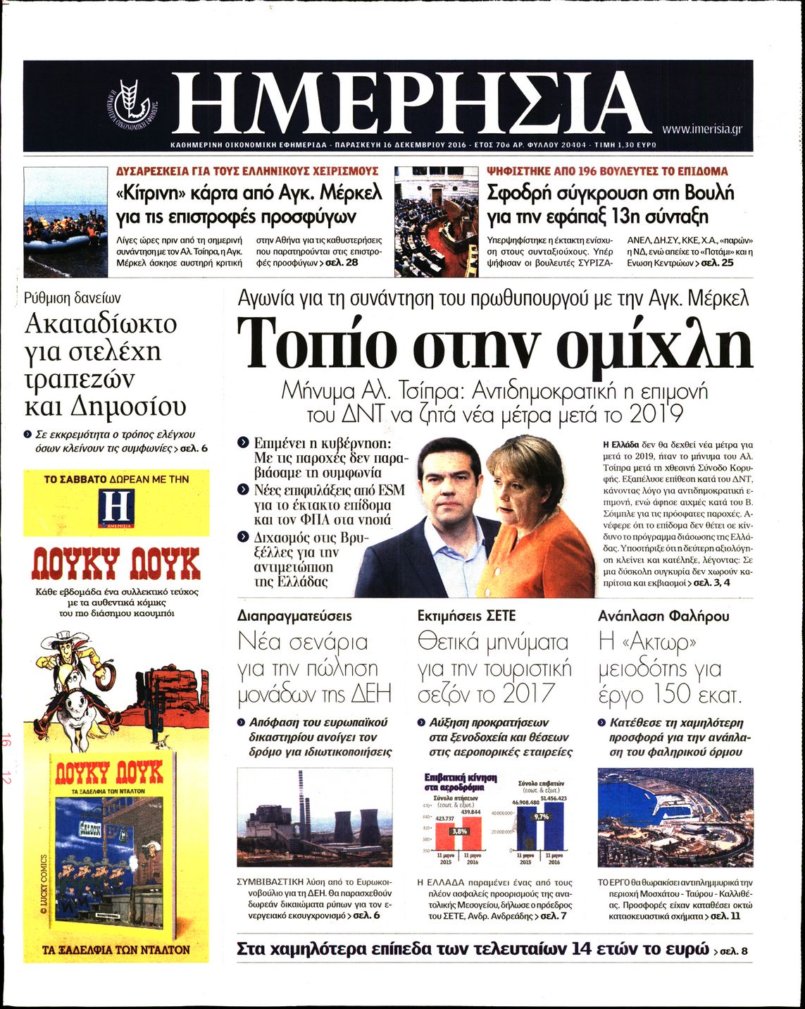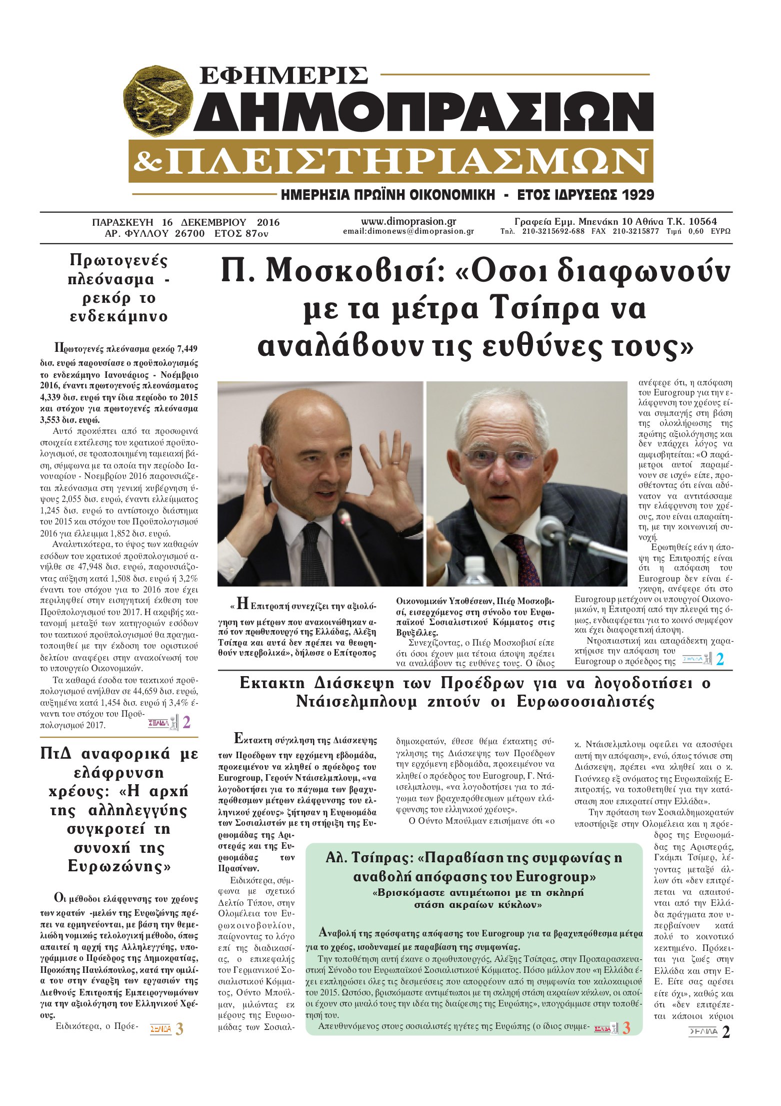 Οι οικονομικές εφημερίδες 16/12/2016 Enikos Newsroom 02:57, Παρασκευή 16 Δεκεμβρίου 2016 Media Διαβάστε τα σημερινά πρωτοσέλιδα των οικονομικών εφημερίδων: ΟΙΚΟΝΟΜΙΚΕΣ ΕΦΗΜΕΡΙΔΕΣ ΠΡΩΤΟΣΕΛΙΔΑ Μοιράσου το: σχολίασε κι εσύ (0 σχόλια) Ακολουθήστε το enikos.gr στο Google News και μάθετε πρώτοι όλες τις ειδήσεις Δείτε όλες τις τελευταίες ειδήσεις από την Ελλάδα και τον Κόσμο στο enikos.gr Ειδήσεις Ροή Ειδήσεων 2 ώρες πριν Στεγαστικό: Όλο το σχέδιο για περισσότερα και φθηνότερα ενοικιαζόμενα σπίτια 34 λεπτά πριν Προϋπολογισμός 2026: Τα μηνύματα από την ομιλία Μητσοτάκη και τα «καρφιά» με πολλαπλούς αποδέκτες 1 ώρα πριν Αγρότες: Ορισμένοι ζητούν πιο σκληρή μορφή κινητοποιήσεων – Κρίσιμη η αυριανή σύσκεψη στις Σέρρες 35 λεπτά πριν Ρομπ Ράινερ: Το δείπνο με τους Ομπάμα που δεν έγινε ποτέ και νέα στοιχεία για τον «καβγά» στο πάρτι – Βίντεο με τον γιο του να περιφέρεται κοντά στο σπίτι της τραγωδίας 2 ώρες πριν Κανόνια λέιζερ σε φρεγάτες – Το επόμενο άλμα στις ναυτικές επιχειρήσεις – Δείτε βίντεο 3 ώρες πριν Οπτική ψευδαίσθηση: Μόνο αν είσαι ο Σέρλοκ Χολμς θα βρεις τον σκύλο σε 15 δευτερόλεπτα 3 ώρες πριν Υγεία του εντέρου: Προσθέστε 1 superfood στα scrambled eggs για καλύτερη πέψη και ευεξία 4 ώρες πριν Τα ζώδια σήμερα, Τετάρτη 17 Δεκεμβρίου: Κριοί, η αυτοπεποίθησή σας ενισχύεται 55 λεπτά πριν Νεολιθικός σκύλος βρέθηκε προσεκτικά θαμμένος στον βυθό λίμνης – Δίπλα του βρέθηκε ένα στιλέτο 10 λεπτά πριν Αγγελική Ηλιάδη: «Έχω βιώσει άρρωστη και κακοποιητική ζήλεια, δεν θα ήθελα ποτέ στη ζωή μου να το ξαναπεράσω αυτό» 18 λεπτά πριν Θεσσαλονίκη: Διέρρηξαν το σπίτι του προέδρου του δημοτικού συμβουλίου, Σπύρου Βούγια 25 λεπτά πριν Καρυστιανού: Δεν θα αυτοπροταθώ ως ηγέτης, παραποιούν τα λόγια μου για να με αποδομήσουν 30 λεπτά πριν Η μοναδική συνταγή της Μάρθα Στιούαρτ για gingerbread cookies 34 λεπτά πριν Προϋπολογισμός 2026: Τα μηνύματα από την ομιλία Μητσοτάκη και τα «καρφιά» με πολλαπλούς αποδέκτες ENIKOS NETWORK Δύο συστατικά που είναι καλό να βάλετε στον πρωινό σας καφέ – Βοηθούν στην απώλεια βάρους και τη ρύθμιση του σακχάρου Πρωτοποριακή θεραπεία για το Αλτσχάιμερ: Φως και ήχος μπορεί να επιβραδύνουν την εξέλιξη της νόσου Έρχεται «νοικοκύρεμα » στα ακίνητα- Τι πρέπει να γνωρίζουν οι πολίτες Στεγαστικό: Όλο το σχέδιο για περισσότερα και φθηνότερα ενοικιαζόμενα σπίτια Σύγχρονος Νοστράδαμος: Προειδοποιεί για «μεγάλο γεγονός» τους επόμενους μήνες που θα συγκλονίσει τη Βρετανία και τον κόσμο Τεστ παρατηρητικότητας: Μπορείτε να βρείτε τις 3 διαφορές στις εικόνες με έναν πιγκουίνο σε 14 δευτερόλεπτα περισσότερα 08:00 , Τετάρτη 17 Δεκεμβρίου 2025 Την Κυριακή με τη Realnews: Δωροεπιταγή 10€ Δωροεπιταγή αξίας 10€ για αγορές άνω των 60€ από τα πολυκαταστήματα FactoryOutlet H προσφορά ι... 07:00 , Τετάρτη 17 Δεκεμβρίου 2025 Την Κυριακή με τη Realnews: Ό,τι και αν αγοράσεις, σκανάρεις και κερδίζεις! Την Κυριακή με τη Realnews: Ό,τι και αν αγοράσεις, σκανάρεις και κερδίζεις! Με το PADU app, το... 05:48 , Τετάρτη 17 Δεκεμβρίου 2025 Οι οικονομικές εφημερίδες 17/12/2025 Διαβάστε τα πρωτοσέλιδα από τις οικονομικές εφημερίδες, σήμερα 17/12/2025. 05:43 , Τετάρτη 17 Δεκεμβρίου 2025 Οι αθλητικές εφημερίδες 17/12/2025 Διαβάστε τα πρωτοσέλιδα από τις αθλητικές εφημερίδες, σήμερα 17/12/2025. ΤΕΛΕΥΤΑΙΕΣ ΕΙΔΗΣΕΙΣ 10 λεπτά πριν Αγγελική Ηλιάδη: «Έχω βιώσει άρρωστη και κακοποιητική... 18 λεπτά πριν Θεσσαλονίκη: Διέρρηξαν το σπίτι του προέδρου του... 25 λεπτά πριν Καρυστιανού: Δεν θα αυτοπροταθώ ως ηγέτις, παραποιούν.