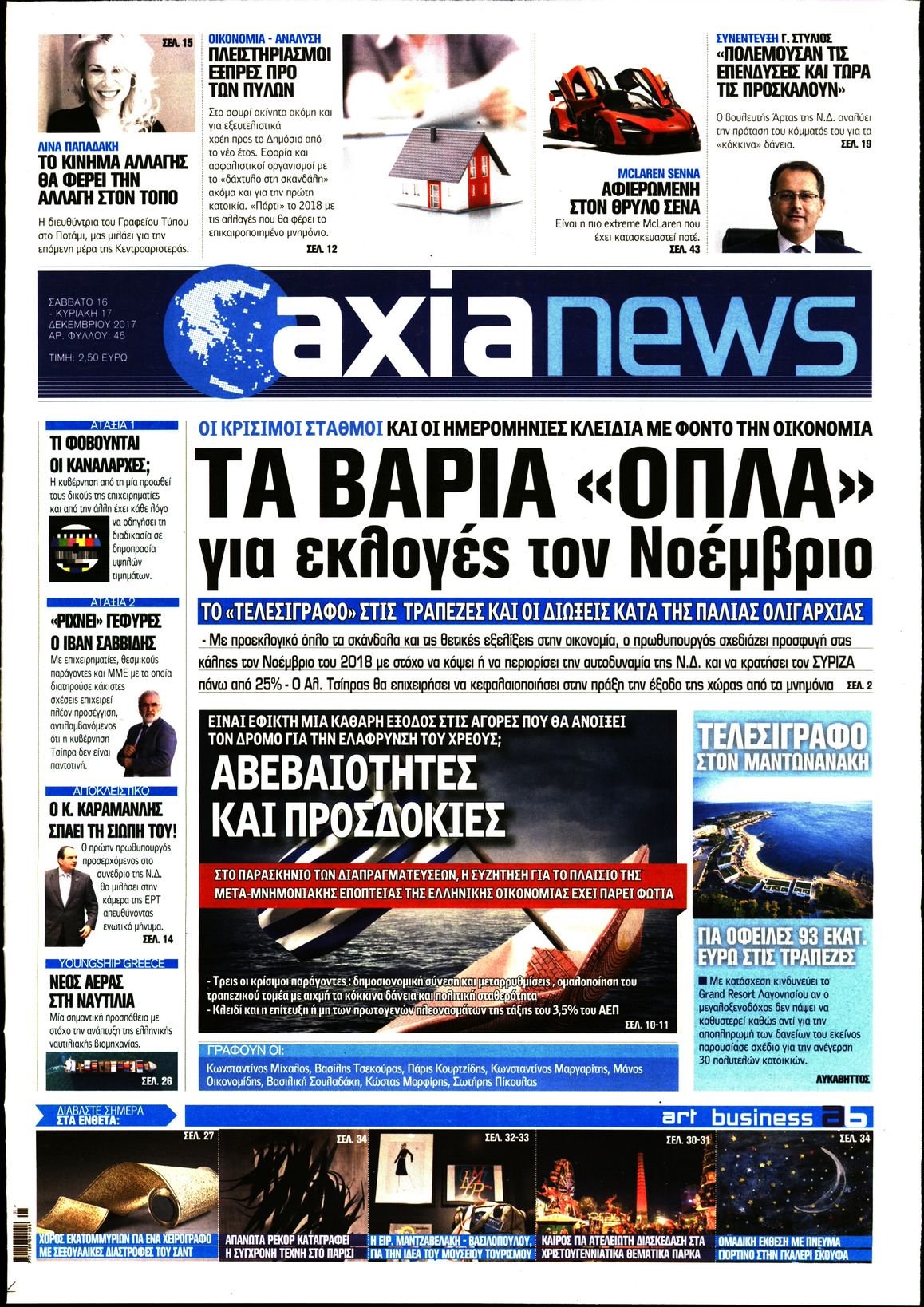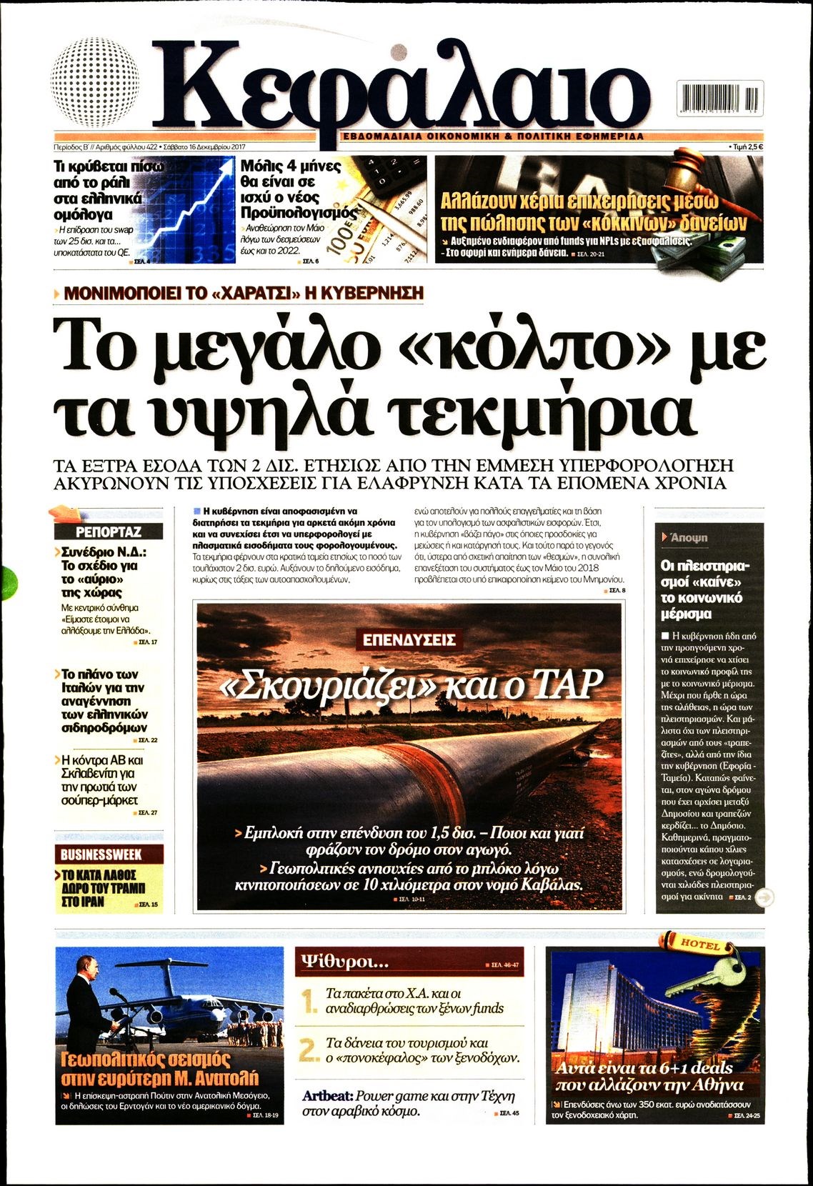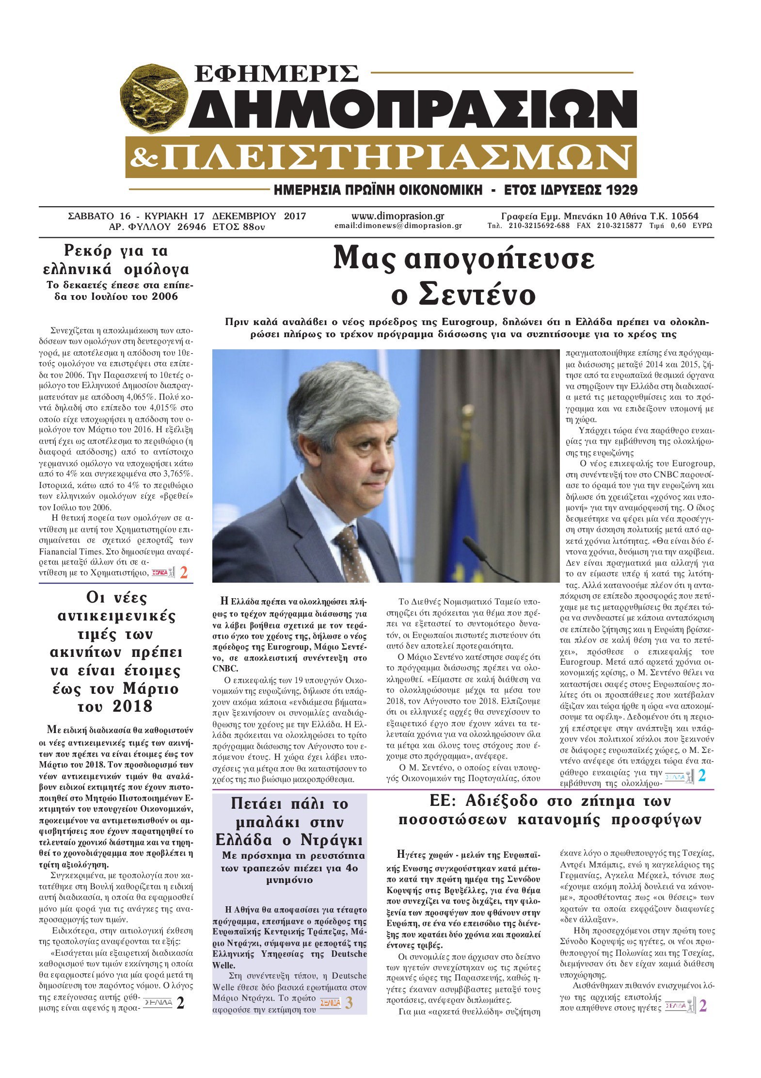Οι οικονομικές εφημερίδες 16/12/2017 Κώστας Τεό 07:26, Σάββατο 16 Δεκεμβρίου 2017 Media Διαβάστε τα σημερινά πρωτοσέλιδα των οικονομικών εφημερίδων: ΟΙΚΟΝΟΜΙΚΕΣ ΕΦΗΜΕΡΙΔΕΣ ΠΡΩΤΟΣΕΛΙΔΑ Μοιράσου το: σχολίασε κι εσύ (0 σχόλια) Ακολουθήστε το enikos.gr στο Google News και μάθετε πρώτοι όλες τις ειδήσεις Δείτε όλες τις τελευταίες ειδήσεις από την Ελλάδα και τον Κόσμο στο enikos.gr Ειδήσεις Ροή Ειδήσεων 3 ώρες πριν Αγρότες: «Όχι στον διάλογο, μας εμπαίζει η κυβέρνηση» – Αποφάσισαν κλιμάκωση των κινητοποιήσεων, τι θα γίνει τα Χριστούγεννα 4 ώρες πριν Την πρώτη Belharra παρέλαβε η χώρα μας, υψώθηκε η ελληνική σημαία στη φρεγάτα «Κίμων» – Δένδιας: «Το ισχυρότερο Πολεμικό Ναυτικό που είχε ποτέ ο ελληνισμός» 2 ώρες πριν Γιώργος Μαζωνάκης: «Έχει υποστεί ένα σωρό εκβιαστικές πρακτικές – Του είπαν ότι θα του βάλουν τον συγκεκριμένο άνθρωπο να τον καταγγείλει» 3 ώρες πριν Μιχάλης Χουρδάκης: «Είμαι διαθέσιμος να συμβάλω στην προσωρινή κάλυψη του ιατρείου της Ψερίμου» – Η επιστολή στον Άδωνι Γεωργιάδη 3 ώρες πριν Εξώδικο Γεωργιάδη στην Κωνσταντοπούλου – «Με κατηγόρησε ότι έχω καταδικαστεί για παιδεραστία» 1 ώρα πριν Γάμος: 11 ψυχρές αλλά ευγενικές φράσεις, που λέει ένας άνδρας όταν σκέφτεται τον χωρισμό 4 ώρες πριν Τα 5 ζώδια που θα ευνοηθούν στα οικονομικά τους το 2026 – «Τραβούν το χρήμα σαν μαγνήτες» 5 ώρες πριν Αυτό που κρύβεται κάτω από τη Γροιλανδία θα μπορούσε να ανατρέψει όσα γνωρίζουμε για την άνοδο της στάθμης των θαλασσών 1 ημέρα πριν 20 χρόνια τα Χριστούγεννα ξεκινούν στα Public με μεγάλη ποικιλία σε δώρα! 40 δευτερόλεπτα πριν Γεωργιάδης για Κωνσταντοπούλου: «Έχει καταφέρει να ξεπεράσει ακόμη και τον εαυτό της – Το ερώτημα είναι “γιατί τώρα;”» 9 λεπτά πριν Σφουγγάρισμα: Η συνήθεια που θα σας βοηθήσει να διατηρήσετε το σπίτι σας καθαρό και τακτοποιημένο 14 λεπτά πριν Αθήνα: Εξαρθρώθηκε εγκληματική οργάνωση που διακινούσε ναρκωτικά σε μορφή σοκολάτας – Δύο τράπερ ανάμεσα στους 4 συλληφθέντες – ΒΙΝΤΕΟ 23 λεπτά πριν Στη φυλακή ο «Έλληνας Εσκομπάρ» και τρεις συνεργοί του για το φορτίο με την κοκαΐνη – Τι υποστήριξε στην απολογία του 28 λεπτά πριν ΕΕ: Καλεί τα Σκόπια να σέβονται τις δεσμεύσεις από τη διαδικασία ένταξης και το Διεθνές Δίκαιο – Η χρηματοδότηση του Διαδρόμου Χ ENIKOS NETWORK Σκέφτεστε συνέχεια συζητήσεις που έχετε κάνει; Τι σημαίνει αυτό, σύμφωνα με ειδικό Ξεκίνησε η «επέλαση» της γρίπης στην Ελλάδα-Ποιοι κινδυνεύουν Κλιμάκωση των κινητοποιήσεων αποφάσισαν οι αγρότες, κλείνουν παρακαμπτήριους την Παρασκευή – Τι απαντά η κυβέρνηση Ευλογιά αιγοπροβάτων: Νέες αποζημιώσεις ύψους 26,02 εκατ. ευρώ σε κτηνοτρόφους – Η κατανομή ανά Περιφέρεια Χαρτογραφώντας το «σημείο χωρίς επιστροφή»: Για πρώτη φορά αποκαλύπτεται με λεπτομέρεια το ακανθώδες όριο της ατμόσφαιρας τ... Η Google καταργεί τη λειτουργία «dark web report» – Πώς θα μπορούν οι χρήστες να διαγράφουν τα δεδομένα τους περισσότερα 17:45 , Πέμπτη 18 Δεκεμβρίου 2025 ROUK ZOUK: Εορταστικό επεισόδιο με καλεσμένους τους πρωταγωνιστές του «Γιατί ρε πατέρα» Το Σάββατο 20 Δεκεμβρίου στις 21:00, η Ζέτα Μακρυπούλια υποδέχεται εκλεκτούς ηθοποιούς που όλο... 17:20 , Πέμπτη 18 Δεκεμβρίου 2025 Άγιος έρωτας: Η Χριστίνα εξομολογείται στον πατέρα Νικόλαο, απόψε στις 21:00 στον Alpha Η Νότα αποφασίζει να εκδικηθεί τον Πέτρο και τον Στέφανο, για χάρη του Λούη, όμως τα πράγματα ... 16:50 , Πέμπτη 18 Δεκεμβρίου 2025 Να μ’ αγαπάς: Ζωή και Φωτεινή συμφιλιώνονται ως μάνα με κόρη, απόψε σ