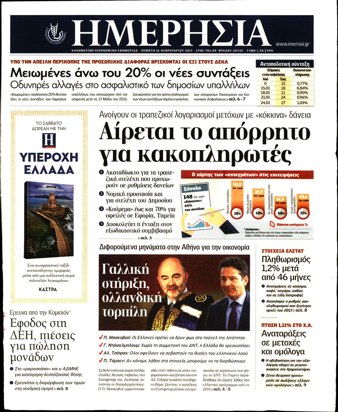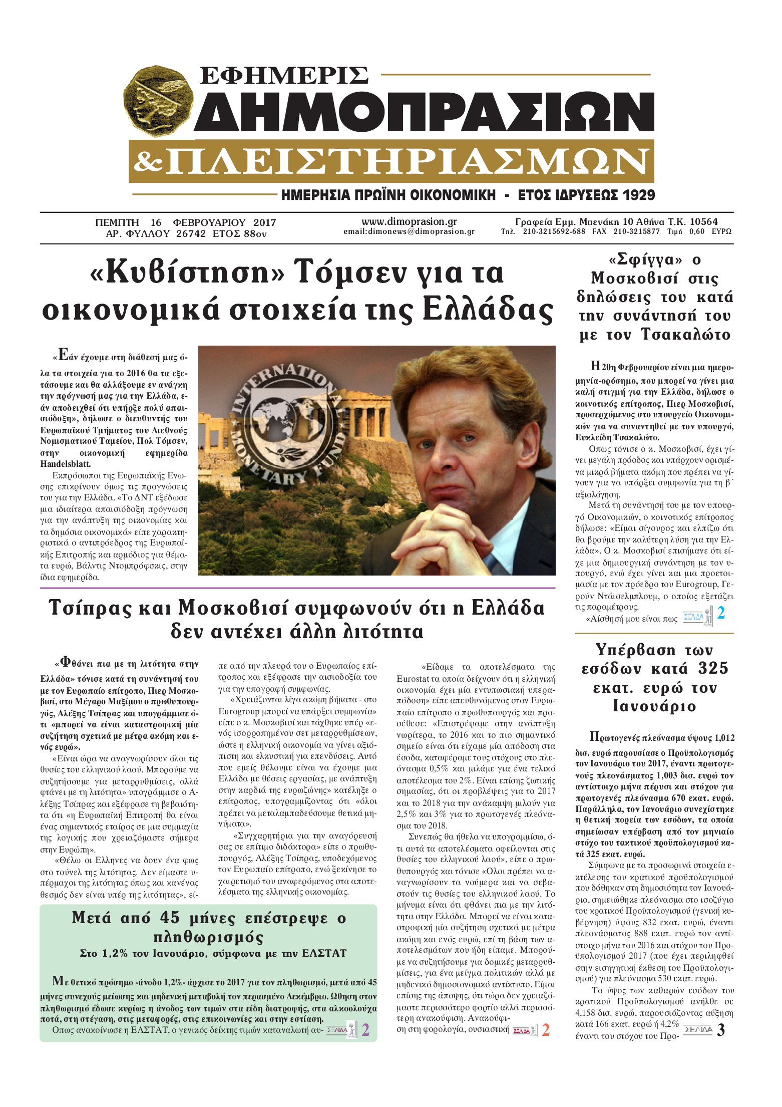 Οι οικονομικές εφημερίδες 16/2/2017 Enikos Newsroom 01:38, Πέμπτη 16 Φεβρουαρίου 2017 Media Διαβάστε τα σημερινά πρωτοσέλιδα των οικονομικών εφημερίδων: ΟΙΚΟΝΟΜΙΚΕΣ ΕΦΗΜΕΡΙΔΕΣ ΠΡΩΤΟΣΕΛΙΔΑ Μοιράσου το: σχολίασε κι εσύ (0 σχόλια) Ακολουθήστε το enikos.gr στο Google News και μάθετε πρώτοι όλες τις ειδήσεις Δείτε όλες τις τελευταίες ειδήσεις από την Ελλάδα και τον Κόσμο στο enikos.gr Ειδήσεις Ροή Ειδήσεων 3 ώρες πριν Αυξάνουν την πίεση προς την κυβέρνηση οι αγρότες: Κλείνουν παρακαμπτήριους και ανοίγουν διόδια – Τι θα γίνει τις γιορτές 2 ώρες πριν ΟΠΕΚΕΠΕ: Προφυλακιστέος ο φερόμενος αρχηγός και ο λογιστής της εγκληματικής οργάνωσης 3 ώρες πριν Φοινικούντα: Το Σάββατο απολογείται ο 30χρονος γιος γνωστού επιχειρηματία της Πλάκας που παραδόθηκε – Όσα είπε στους αστυνομικούς και ο ρόλος του στο έγκλημα 3 ώρες πριν Μπορεί ο Μαδούρο να αντέξει τον αποκλεισμό του Τραμπ; Τι θα χρειαστεί η Ουάσινγκτον για να τον ανατρέψει 4 ώρες πριν Πρίγκιπας Ουίλιαμ – Κέιτ: Η νέα οικογενειακή φωτογραφία για τις Χριστουγεννιάτικες κάρτες του 2025 4 ώρες πριν Ύπνος: Η απλή βραδινή ρουτίνα για να προστατεύσετε τα μαλλιά σας από το κρύο κατά τη διάρκεια του χειμώνα 5 ώρες πριν Manifesting: Πώς να συναντήσετε τον σύντροφο της ζωής σας, ανάλογα με τον μήνα γέννησής σας 2 ημέρες πριν 20 χρόνια τα Χριστούγεννα ξεκινούν στα Public με μεγάλη ποικιλία σε δώρα! 3 ώρες πριν Αρχαιολόγοι ανακάλυψαν ρωμαϊκά τεχνουργήματα από μια πόλη που δεν υπήρξε ποτέ – Τα τρία εντυπωσιακά κτίρια και ο αμφορέας με τις… σαρδέλες 5 λεπτά πριν Μιχάλης Χρυσοχοΐδης από την Κωνσταντινούπολη: Κοινές επιχειρήσεις Ελλάδας – Τουρκίας ενάντια στο οργανωμένο έγκλημα 28 λεπτά πριν Μάρκο Νίκολιτς: «Είμαι περήφανος για τους παίκτες μου, όποιος αντίπαλος και να έρθει θα προετοιμαστούμε» 37 λεπτά πριν ΟΗΕ: Την εκλογή του νέου ύπατου αρμοστή για τους Πρόσφυγες Μπαρχάμ Άχμεντ Σαλίχ χαιρέτησε ο Αντόνιο Γκουτέρες 41 λεπτά πριν Σύνοδος Κορυφής στις Βρυξέλλες: Ακόμη πιο κοντά σε διέξοδο για τη χρηματοδότηση της Ουκρανίας 49 λεπτά πριν ΟΗΕ: Iστορική επίσκεψη του Συμβουλίου Ασφαλείας στη Δαμασκό – Mήνυμα Ελλάδας για συμπερίληψη και λογοδοσία ENIKOS NETWORK Σε περίοδο αυξημένης δραστηριότητας η γρίπη στην Ελλάδα-Μέτρα προστασίας από τον ΕΟΔΥ Σκέφτεστε συνέχεια συζητήσεις που έχετε κάνει; Τι σημαίνει αυτό, σύμφωνα με ειδικό Στεγαστικό: Τι λέει η ΠΟΜΙΔΑ για τα νέα μέτρα που ανακοίνωσε ο Κυριάκος Μητσοτάκης Λαγκάρντ: Αισιόδοξη για την ανάπτυξη της Ευρωζώνης, αβέβαιη για τον πληθωρισμό Χαρτογραφώντας το «σημείο χωρίς επιστροφή»: Για πρώτη φορά αποκαλύπτεται με λεπτομέρεια το ακανθώδες όριο της ατμόσφαιρας τ... Η Google καταργεί τη λειτουργία «dark web report» – Πώς θα μπορούν οι χρήστες να διαγράφουν τα δεδομένα τους περισσότερα 17:45 , Πέμπτη 18 Δεκεμβρίου 2025 ROUK ZOUK: Εορταστικό επεισόδιο με καλεσμένους τους πρωταγωνιστές του «Γιατί ρε πατέρα» Το Σάββατο 20 Δεκεμβρίου στις 21:00, η Ζέτα Μακρυπούλια υποδέχεται εκλεκτούς ηθοποιούς που όλο... 17:20 , Πέμπτη 18 Δεκεμβρίου 2025 Άγιος έρωτας: Η Χριστίνα εξομολογείται στον πατέρα Νικόλαο, απόψε στις 21:00 στον Alpha Η Νότα αποφασίζει να εκδικηθεί τον Πέτρο και τον Στέφανο, για χάρη του Λούη, όμως τα πράγματα ... 16:50 , Πέμπτη 18 Δεκεμβρίου 2025 Να μ’ αγαπάς: Ζωή και Φωτεινή συμφιλιώνονται ως μάνα με κόρη, απόψε στις 20:00 Η ταυτότητα του Άγγελου αποκαλύπτεται στο νέο επεισόδιο της σειράς “Να μ’ αγαπάς... 15:52 , Πέμπτη 18 Δεκεμβρίου 2025 Το Σπίτι Δίπλα Στο Ποτάμι: Το καθη