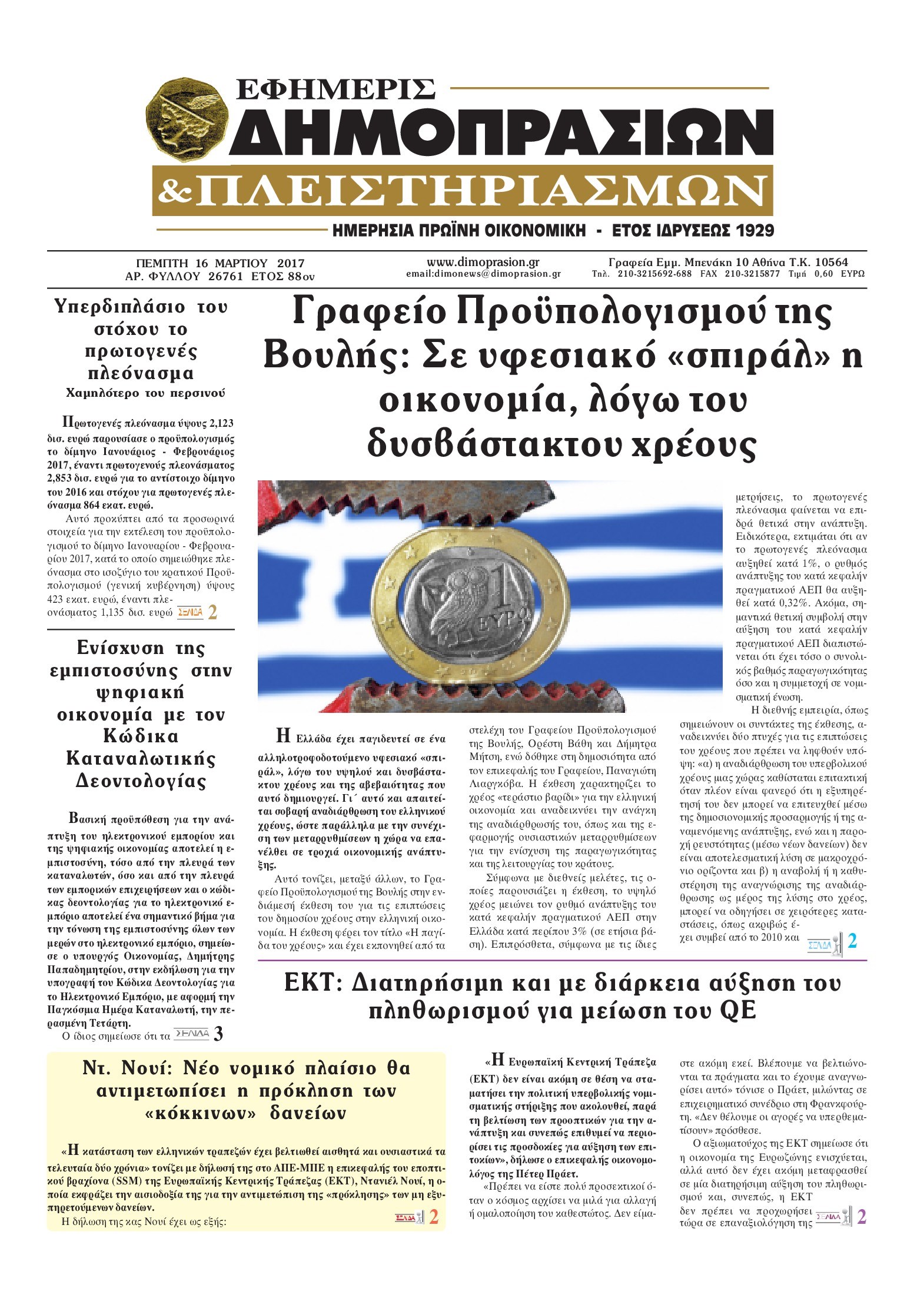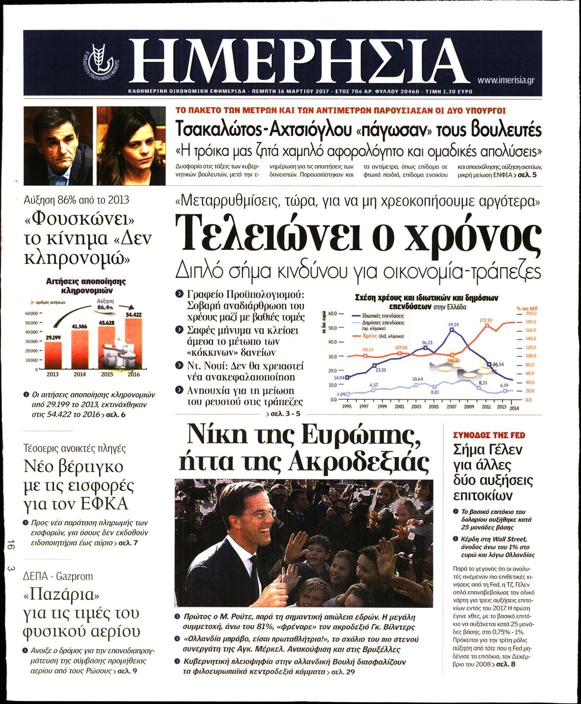 Διαβάστε τα σημερινά πρωτοσέλιδα των οικονομικών εφημερίδων: