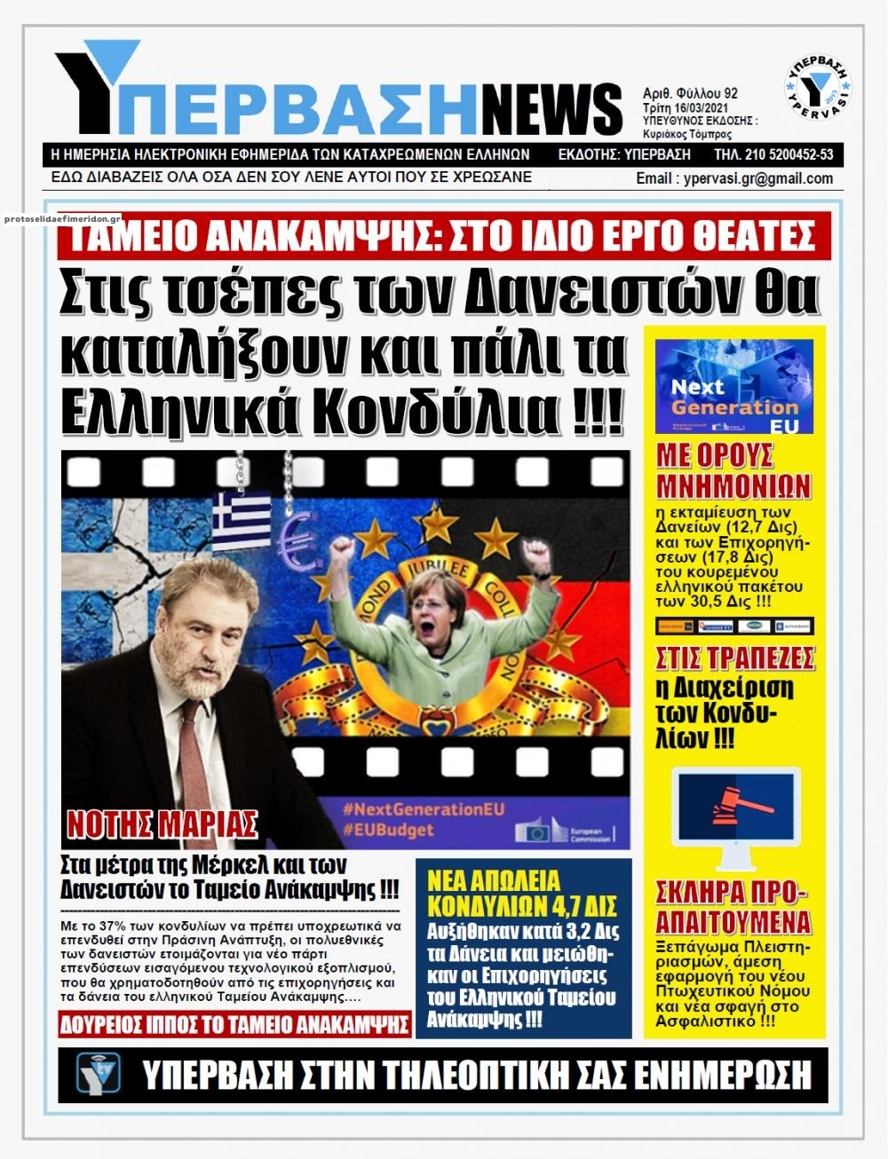 Οι οικονομικές εφημερίδες 16/3/2021 Σήφης Γαρυφαλάκης 06:10, Τρίτη 16 Μαρτίου 2021 Media Διαβάστε τα πρωτοσέλιδα των οικονομικών εφημερίδων… ΑΘΛΗΤΙΚΕΣ ΕΦΗΜΕΡΙΔΕΣ ΕΦΗΜΕΡΙΔΕΣ ΟΙΚΟΝΟΜΙΚΕΣ ΕΦΗΜΕΡΙΔΕΣ ΠΡΩΤΟΣΕΛΙΔΑ ΠΡΩΤΟΣΕΛΙΔΑ ΕΦΗΜΕΡΙΔΩΝ Μοιράσου το: σχολίασε κι εσύ (0 σχόλια) Ακολουθήστε το enikos.gr στο Google News και μάθετε πρώτοι όλες τις ειδήσεις Δείτε όλες τις τελευταίες ειδήσεις από την Ελλάδα και τον Κόσμο στο enikos.gr Ειδήσεις Ροή Ειδήσεων 8 ώρες πριν Μητσοτάκης: Αναγκαία η μεταρρύθμιση του πρωτογενούς τομέα – Τα 6 νέα μέτρα για το στεγαστικό και οι αναφορές σε «Ιθάκη» και «πολιτικούς του καναπέ» 7 ώρες πριν Δάνεια σε ελβετικό φράγκο: Τα βασικά σημεία της ρύθμισης – ανάσας για 40.000 δανειολήπτες – Αναλυτικός οδηγός με ερωτήσεις και απαντήσεις 6 ώρες πριν Κυψέλη: Εξιτήριο πήρε η 14χρονη μαθήτρια που μαχαιρώθηκε από την 16χρονη σε σχολείο – «Θέλω να βοηθήσω το παιδί, έχει μπλέξει με κακές παρέες» 6 ώρες πριν Τραμπ: Γιατί κατέθεσε τώρα την αγωγή κατά του BBC – Πώς η κίνησή του εξυπηρετεί το νέο δόγμα του για «αντίσταση» στην Ευρώπη, υπέρ των συντηρητικών 7 ώρες πριν ΟΠΕΚΕΠΕ – Παράνομες επιδοτήσεις: Ελεύθεροι με περιοριστικούς όρους και οι 7 κατηγορούμενοι που απολογήθηκαν σήμερα 6 ώρες πριν Ανακαλύφθηκε βυθισμένη πέτρινη κατασκευή ανοιχτά της Κριμαίας – Αποτελεί μέρος αρχαίας ελληνικής αποικίας 7 ώρες πριν Ύπνος: Αυτό μπορεί να είναι το χειρότερο λάθος για το βιολογικό ρολόι σας, σύμφωνα με ειδικό 8 ώρες πριν Αριθμολογία: Οι άνθρωποι που έχουν γεννηθεί αυτές τις 3 ημερομηνίες, προσελκύουν μεγάλη τύχη πριν από το τέλος του 2025 10 ώρες πριν Οι 7 συμπεριφορές που μαρτυρούν ότι ένας άνδρας επενδύει μακροπρόθεσμα σε μια σχέση 4 λεπτά πριν Κολομβία: Νεκροί τέσσερις αστυνομικοί σε βομβιστικές επιθέσεις ανταρτών 12 λεπτά πριν Στάση εργασίας 11:00 – 17:00 σήμερα στα λεωφορεία του ΟΑΣΑ – Ποιες γραμμές θα λειτουργήσουν 28 λεπτά πριν Παλαιστινιακό: «Η λύση των δύο κρατών είναι ο μόνος βιώσιμος δρόμος», τόνισε η Ελλάδα στο Συμβούλιο Ασφαλείας του ΟΗΕ 35 λεπτά πριν Ελένη Καρακάση: «Ένιωθα πολύ αδικημένη, δεν μπορούσα να ελέγξω τον εαυτό μου σε δύσκολες στιγμές» 43 λεπτά πριν Κλαούδια Σέινμπαουμ προς Ντόναλντ Τραμπ για φαιντανύλη: Να επιτεθούμε στα αίτια κατανάλωσης αντί να την κατατάσσουμε στα «όπλα μαζικής καταστροφής» ENIKOS NETWORK Αίτημα ΙΣΑ για την εξαίρεση των προσωπικών γιατρών από τις κατ’ οίκον επισκέψεις Η σκανδιναβική μέθοδος στον ύπνο που μπορεί να σώσει έναν γάμο Πιερρακάκης: Ο προϋπολογισμός συμβάλλει ουσιαστικά στην ενίσχυση της αγοραστικής δύναμης της πλειονότητας των εργαζομένων e-ΕΦΚΑ: Παρατείνεται η προθεσμία για την υποβολή ΑΠΔ – Ποιους αφορά Σύγχρονος Νοστράδαμος: Προειδοποιεί για «μεγάλο γεγονός» τους επόμενους μήνες που θα συγκλονίσει τη Βρετανία και τον κόσμο Τεστ παρατηρητικότητας: Μπορείτε να βρείτε τις 3 διαφορές στις εικόνες με έναν πιγκουίνο σε 14 δευτερόλεπτα περισσότερα 20:06 , Τρίτη 16 Δεκεμβρίου 2025 Ο ΣΚΑΙ καταγγέλλει τον ΕΚΚΟΜΕΔ Επιστολή με την οποία καταγράφει την έντονη διαμαρτυρία του προς τον διευθύνοντα σύμβουλο του... 17:40 , Τρίτη 16 Δεκεμβρίου 2025 Eurovision: Στις 4 Ιανουαρίου αποκαλύπτονται τα 28 τραγούδια του ελληνικού τελικού Η αγωνία τελειώνει, η γιορτή της Eurovision αρχίζει στην ΕΡΤ από τις πρώτες ημέρες της νέας χρ... 17:09 , Τρίτη 16 Δεκεμβρίου 2025 Alter Ego Media: Βαθύτατη θλίψη και ειλικρινή συλλυπητήρια για την απώλεια της Ειρήνης Μαρινάκη Τη βαθύτατη θλίψη και 