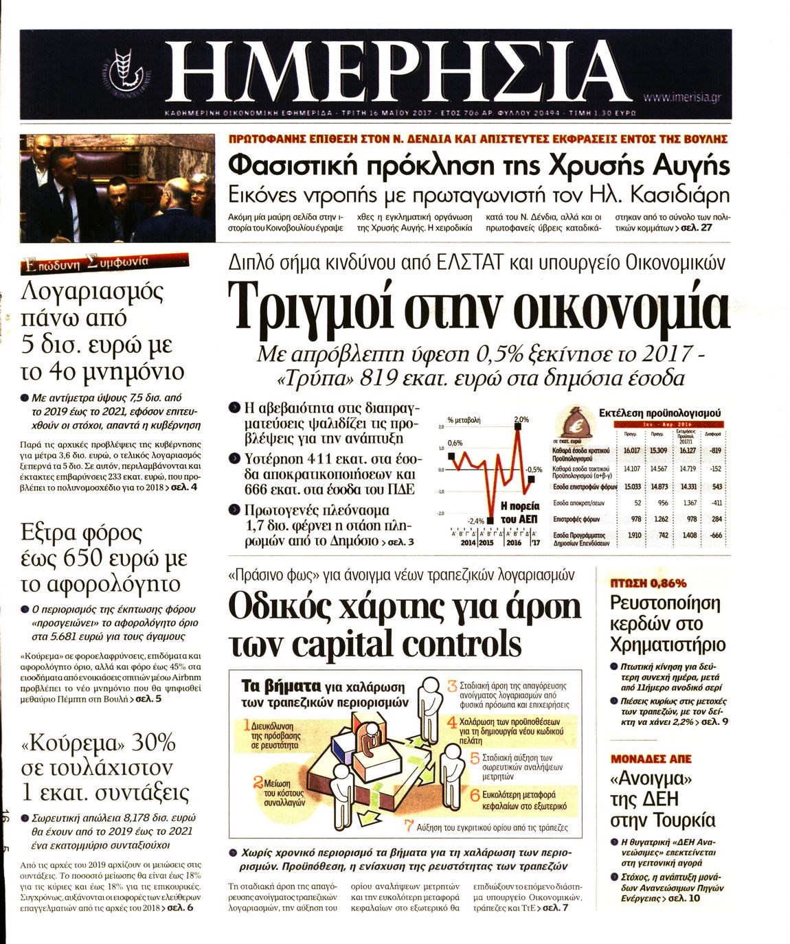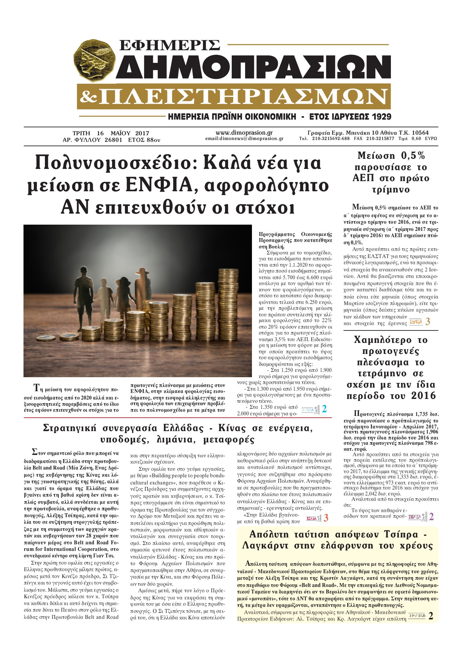 Οι οικονομικές εφημερίδες 16/5/2017 Enikos Newsroom 07:26, Τρίτη 16 Μαΐου 2017 Media Διαβάστε τα σημερινά πρωτοσέλιδα των οικονομικών εφημερίδων: ΟΙΚΟΝΟΜΙΚΕΣ ΕΦΗΜΕΡΙΔΕΣ ΠΡΩΤΟΣΕΛΙΔΑ Μοιράσου το: σχολίασε κι εσύ (0 σχόλια) Ακολουθήστε το enikos.gr στο Google News και μάθετε πρώτοι όλες τις ειδήσεις Δείτε όλες τις τελευταίες ειδήσεις από την Ελλάδα και τον Κόσμο στο enikos.gr Ειδήσεις Ροή Ειδήσεων 55 λεπτά πριν Δημοσκόπηση Metron Analysis: Στις 10 μονάδες η διαφορά ΝΔ-ΠΑΣΟΚ, στην 3η θέση η Πλεύση Ελευθερίας – 8 στους 10 στηρίζουν τον αγώνα των αγροτών 5 ώρες πριν Αγρότες: «Όχι στον διάλογο, μας εμπαίζει η κυβέρνηση» – Αποφάσισαν κλιμάκωση των κινητοποιήσεων, τι θα γίνει τα Χριστούγεννα 43 λεπτά πριν Νίκος Παππάς στον ΑΝΤ1: «Δεν κρύβομαι – Μετά το συμβάν ακολούθησα κανονικά το πρόγραμμά μου» – ΒΙΝΤΕΟ 2 ώρες πριν Αθήνα: Εξαρθρώθηκε εγκληματική οργάνωση που διακινούσε ναρκωτικά σε μορφή σοκολάτας – Δύο τράπερ ανάμεσα στους 4 συλληφθέντες – ΒΙΝΤΕΟ 36 λεπτά πριν Διαμαντής Καραναστάσης: Οδηγούσε υπό την επήρεια αλκοόλ – Του αφαιρέθηκε το δίπλωμα και του επιβλήθηκε πρόστιμο 350 ευρώ 1 ώρα πριν Manifesting: Πώς να συναντήσετε τον σύντροφο της ζωής σας, ανάλογα με τον μήνα γέννησής σας 3 ώρες πριν Γάμος: 11 ψυχρές αλλά ευγενικές φράσεις, που λέει ένας άνδρας όταν σκέφτεται τον χωρισμό 2 ώρες πριν Σφουγγάρισμα: Η συνήθεια που θα σας βοηθήσει να διατηρήσετε το σπίτι σας καθαρό και τακτοποιημένο 2 ημέρες πριν 20 χρόνια τα Χριστούγεννα ξεκινούν στα Public με μεγάλη ποικιλία σε δώρα! 7 λεπτά πριν Ύπνος: Η απλή βραδινή ρουτίνα για να προστατεύσετε τα μαλλιά σας από το κρύο κατά τη διάρκεια του χειμώνα 15 λεπτά πριν Κατερίνα Καινούργιου: «Δεν θα αφήσω κανέναν να χαλάσει τη ζαχαρένια μου στην ομορφότερη περίοδο της ζωής μου» 21 λεπτά πριν Θεσσαλονίκη: Προθεσμία για την επόμενη εβδομάδα έλαβαν οι συλληφθέντες για το κύκλωμα trafficking – Οι οίκοι ανοχής, τα «φρουτάκια» και οι ρόλοι 28 λεπτά πριν Πρίγκιπας Ουίλιαμ – Κέιτ: Η νέα οικογενειακή φωτογραφία για τις Χριστουγεννιάτικες κάρτες του 2025 36 λεπτά πριν Διαμαντής Καραναστάσης: Οδηγούσε υπό την επήρεια αλκοόλ – Του αφαιρέθηκε το δίπλωμα και του επιβλήθηκε πρόστιμο 350 ευρώ ENIKOS NETWORK Σε περίοδο αυξημένης δραστηριότητας η γρίπη στην Ελλάδα-Μέτρα προστασίας από τον ΕΟΔΥ Σκέφτεστε συνέχεια συζητήσεις που έχετε κάνει; Τι σημαίνει αυτό, σύμφωνα με ειδικό ΕΛΤΑ: Αυτό είναι το νέο σχέδιο μετασχηματισμού του Οργανισμού- Τι δήλωσαν Πιερρακάκης και Παπαστεργίου ΕΛΣΤΑΤ: Τι δείχνουν τα νέα στοιχεία για τον μόνιμο πληθυσμό στην Ελλάδα Χαρτογραφώντας το «σημείο χωρίς επιστροφή»: Για πρώτη φορά αποκαλύπτεται με λεπτομέρεια το ακανθώδες όριο της ατμόσφαιρας τ... Η Google καταργεί τη λειτουργία «dark web report» – Πώς θα μπορούν οι χρήστες να διαγράφουν τα δεδομένα τους περισσότερα 17:45 , Πέμπτη 18 Δεκεμβρίου 2025 ROUK ZOUK: Εορταστικό επεισόδιο με καλεσμένους τους πρωταγωνιστές του «Γιατί ρε πατέρα» Το Σάββατο 20 Δεκεμβρίου στις 21:00, η Ζέτα Μακρυπούλια υποδέχεται εκλεκτούς ηθοποιούς που όλο... 17:20 , Πέμπτη 18 Δεκεμβρίου 2025 Άγιος έρωτας: Η Χριστίνα εξομολογείται στον πατέρα Νικόλαο, απόψε στις 21:00 στον Alpha Η Νότα αποφασίζει να εκδικηθεί τον Πέτρο και τον Στέφανο, για χάρη του Λούη, όμως τα πράγματα ... 16:50 , Πέμπτη 18 Δεκεμβρίου 2025 Να μ’ αγαπάς: Ζωή και Φωτεινή συμφιλιώνονται ως μάνα με κόρη, απόψε στις 20:00 Η ταυτότητα του Άγγελου αποκαλύπτεται στο νέο επεισόδιο της σειράς “Να μ’ αγαπάς... 15:52 , Πέμπτη 18 Δεκεμβρίου 2025 