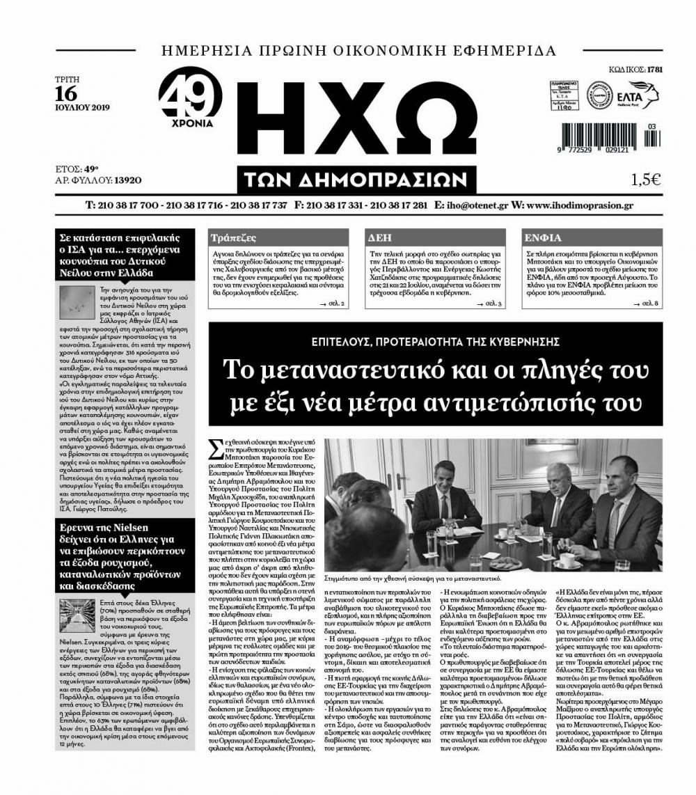 Οι οικονομικές εφημερίδες 16/7/2019 Κώστας Τεό 06:47, Τρίτη 16 Ιουλίου 2019 Media Διαβάστε τα πρωτοσέλιδα των οικονομικών εφημερίδων: ΟΙΚΟΝΟΜΙΚΕΣ ΕΦΗΜΕΡΙΔΕΣ ΠΡΩΤΟΣΕΛΙΔΑ Μοιράσου το: σχολίασε κι εσύ (0 σχόλια) Ακολουθήστε το enikos.gr στο Google News και μάθετε πρώτοι όλες τις ειδήσεις Δείτε όλες τις τελευταίες ειδήσεις από την Ελλάδα και τον Κόσμο στο enikos.gr Ειδήσεις Ροή Ειδήσεων 8 ώρες πριν Χριστούγεννα στα μπλόκα: Επιμένουν στις κινητοποιήσεις τους οι αγρότες – Ανοίγουν τα διόδια το Σαββατοκύριακο 8 ώρες πριν Ουκρανία: Η άνευ προηγουμένου επίθεση σε ρωσικό τάνκερ στη Μεσόγειο και το μήνυμα προς στον Πούτιν – Το «μακρύ χέρι» του Κιέβου 7 ώρες πριν Πούτιν: Τα μηνύματα σε Ευρώπη και ΝΑΤΟ από το μαραθώνιο «σόου» του – Η απαίτηση για «σεβασμό» και η ειρήνη «με τους όρους» της Μόσχας 6 ώρες πριν ΗΠΑ: Η κυβέρνηση του Ντόναλντ Τραμπ άρχισε να δημοσιοποιεί τα αρχεία Έπσταϊν 7 ώρες πριν Άνω Λιόσια: Πυροβολισμοί σε επιχείρηση με χαλιά – Εντοπίστηκαν 10 κάλυκες 14 λεπτά πριν Αυγά: Πόσα μπορείτε να τρώτε την ημέρα με ασφάλεια για μέγιστη πρόσληψη πρωτεΐνης 44 λεπτά πριν Τα ζώδια σήμερα, Σάββατο 20 Δεκεμβρίου: Παρθένοι, το σύμπαν σας δίνει το κλειδί 7 ώρες πριν Ανακαλύφθηκαν αρχαία χρυσά νομίσματα 2.200 ετών που απεικονίζουν τον θεό Απόλλωνα – Η άγνωστη σύνδεση με τον Φίλιππο Β΄ της Μακεδονίας 8 ώρες πριν Ύπνος: Μια κρυφή κατάσταση του εγκεφάλου πριν από τον ύπνο μπορεί να είναι το “κλειδί” για υψηλή ευφυΐα και δημιουργικότητα 5 λεπτά πριν Σαρωτικοί οι έλεγχοι στους δρόμους ενόψει εορτών – Μπλόκα της τροχαίας σε κεντρικές αρτηρίες της Αττικής 14 λεπτά πριν Αυγά: Πόσα μπορείτε να τρώτε την ημέρα με ασφάλεια για μέγιστη πρόσληψη πρωτεΐνης 20 λεπτά πριν Σαν σήμερα 20 Δεκεμβρίου: Τα σημαντικότερα γεγονότα της ημέρας 25 λεπτά πριν Οι οικονομικές εφημερίδες 20/12/2025 30 λεπτά πριν Οι αθλητικές εφημερίδες 20/12/2025 ENIKOS NETWORK Το ΕΚΑΒ τιμήθηκε από την Ακαδημία Αθηνών για τα 40 χρόνια προσφοράς του Έχετε πραγματικά μεγάλη καρδιά; 10 χαρακτηριστικά όσων έχουν καλοσύνη Αναστολή μέτρων αναγκαστικής εκτέλεσης για κτηνοτρόφους που πλήττονται από την ευλογιά των αιγοπροβάτων Πλήρης επάρκεια προϊόντων στις λαϊκές της Αττικής, παρά τις αγροτικές κινητοποιήσεις – Τι απαντούν οι πωλητές Χαρτογραφώντας το «σημείο χωρίς επιστροφή»: Για πρώτη φορά αποκαλύπτεται με λεπτομέρεια το ακανθώδες όριο της ατμόσφαιρας τ... Η Google καταργεί τη λειτουργία «dark web report» – Πώς θα μπορούν οι χρήστες να διαγράφουν τα δεδομένα τους περισσότερα 05:48 , Σάββατο 20 Δεκεμβρίου 2025 Οι οικονομικές εφημερίδες 20/12/2025 Διαβάστε τα πρωτοσέλιδα από τις οικονομικές εφημερίδες, σήμερα 20/12/2025. 05:43 , Σάββατο 20 Δεκεμβρίου 2025 Οι αθλητικές εφημερίδες 20/12/2025 Διαβάστε τα πρωτοσέλιδα από τις αθλητικές εφημερίδες, σήμερα 20/12/2025. 05:38 , Σάββατο 20 Δεκεμβρίου 2025 Οι πολιτικές εφημερίδες 20/12/2025 Διαβάστε τα πρωτοσέλιδα από τις πολιτικές εφημερίδες, σήμερα 20/12/2025. 04:20 , Σάββατο 20 Δεκεμβρίου 2025 Αγγελική Νικολούλη: Τα συλλυπητήρια για την απώλεια της Ειρήνης Μαρινάκη Τα συλληπητήρια στον πρόεδρο του Mega, τον Βαγγέλη Μαρινάκη, για την απώλεια της μητέρας του Ε... ΤΕΛΕΥΤΑΙΕΣ ΕΙΔΗΣΕΙΣ 5 λεπτά πριν Σαρωτικοί οι έλεγχοι στους δρόμους ενόψει εορτών –... 14 λεπτά πριν Αυγά: Πόσα μπορείτε να τρώτε την ημέρα με ασφάλεια για... 20 λεπτά πριν Σαν σήμερα 20 Δεκεμβρίου: Τα σημαντικότερα γεγονότα... 25 λεπτά πριν Οι οικονομικές εφημερίδες 20/12/2025 30 λεπτά πριν Οι αθλητικές εφημερίδες 20/12/2025 35 λ