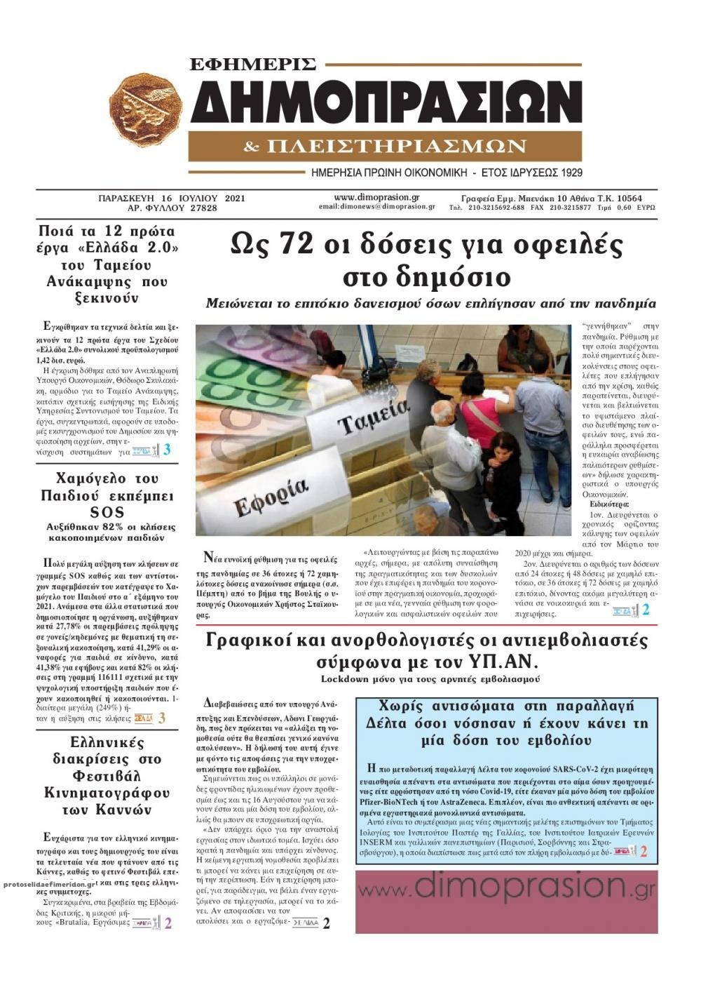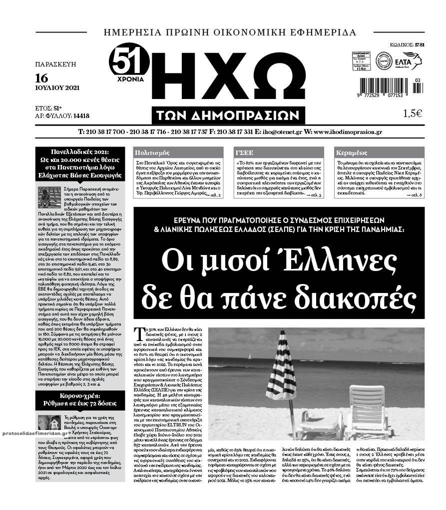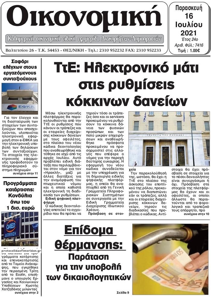 Οι οικονομικές εφημερίδες 16/7/2021 Σήφης Γαρυφαλάκης 06:11, Παρασκευή 16 Ιουλίου 2021 Media Διαβάστε τα πρωτοσέλιδα των οικονομικών εφημερίδων. ΕΦΗΜΕΡΙΔΕΣ ΟΙΚΟΝΟΜΙΚΕΣ ΕΦΗΜΕΡΙΔΕΣ ΠΡΩΤΟΣΕΛΙΔΑ ΠΡΩΤΟΣΕΛΙΔΑ ΕΦΗΜΕΡΙΔΩΝ Μοιράσου το: σχολίασε κι εσύ (0 σχόλια) Ακολουθήστε το enikos.gr στο Google News και μάθετε πρώτοι όλες τις ειδήσεις Δείτε όλες τις τελευταίες ειδήσεις από την Ελλάδα και τον Κόσμο στο enikos.gr Ειδήσεις Ροή Ειδήσεων 5 ώρες πριν Εκτός ευρωομάδας ΣΥΡΙΖΑ ο Νίκος Παππάς μετά την επίθεση στον δημοσιογράφο Νίκο Γιαννόπουλο – Η μήνυση και οι νέες δηλώσεις 6 ώρες πριν «Αγριεύουν» οι αγρότες: «Δεν συντρέχει λόγος συνάντησης με τον πρωθυπουργό» – Ώρα αποφάσεων στη σύσκεψη της Πέμπτης 6 ώρες πριν Κυψέλη: Χωρίς την οικογένειά της δίπλα της απολογήθηκε η 16χρονη – «Της είχε επιτεθεί κάποιος για να την βιάσει, φοβήθηκε και κυκλοφορούσε με μαχαίρι» 5 ώρες πριν Politico: Το πρόβλημα της Ευρώπης δεν είναι το Βέλγιο αλλά ο Ντόναλντ Τραμπ 7 ώρες πριν Αλεξανδρούπολη: Πολυοργανική ανεπάρκεια λόγω υποσιτισμού η αιτία θανάτου του 3χρονου αγοριού 5 ώρες πριν Μυστήριο με τεράστιες κυκλικές πέτρες 200 κιλών – Ανακαλύφθηκαν τυχαία κατά τη διάρκεια οδικών έργων και κανείς δεν ξέρει από πού προέρχονται 6 ώρες πριν Ύπνος: Ειδικός εξηγεί τον πραγματικό λόγο που ξυπνάτε στις 4 τα ξημερώματα – Ο ρόλος των ορμονών και του κιρκάδιου ρυθμού 7 ώρες πριν Αριθμολογία: Οι άνθρωποι που έχουν γεννηθεί αυτές τις 4 ημερομηνίες, είναι τρυφεροί και αγαπούν ανιδιοτελώς 19 ώρες πριν 20 χρόνια τα Χριστούγεννα ξεκινούν στα Public με μεγάλη ποικιλία σε δώρα! 10 λεπτά πριν Νέο αμερικανικό πλήγμα σε σκάφος που φέρεται να μετέφερε ναρκωτικά στον Ειρηνικό – Τέσσερις νεκροί 25 λεπτά πριν Αλ Τσαντίρι Νιουζ: «Λύγισε» ο Δημήτρης Λάλος για τον Δημήτρη Ήμελλο – «Τον μνημονεύω, να ‘ναι καλά εκεί που είναι» 40 λεπτά πριν GNTM: Με δάκρυα τον αποχαιρέτησε η Ηλιάνα Παπαγεωργίου πριν από τον ημιτελικό – «Αισθάνομαι πολύ παράξενα» 55 λεπτά πριν Αμερικανικά στρατεύματα στον Ισημερινό για «προσωρινή» επιχείρηση κατά των ναρκωτικών 1 ώρα πριν Βραζιλία: Το Κογκρέσο ενέκρινε σχέδιο νόμου για τη μείωση της ποινής του πρώην προέδρου Μπολσονάρου ENIKOS NETWORK Αϋπνία: Το κόλπο που θα σας βοηθήσει να κοιμηθείτε απόψε – Είναι απλό και έχει αποτέλεσμα 2,6 εκατομμύρια πολίτες έχουν ήδη εμβολιαστεί κατά της γρίπης ΕΛΣΤΑΤ: Τι δείχνουν τα νέα στοιχεία για τις ηλεκτρονικές παραγγελίες των επιχειρήσεων ΚΕΠΕ: Οι 3 διακριτές συμβολές των ΜμΕ και της μεταποίησης στην ελληνική οικονομία Χαρτογραφώντας το «σημείο χωρίς επιστροφή»: Για πρώτη φορά αποκαλύπτεται με λεπτομέρεια το ακανθώδες όριο της ατμόσφαιρας τ... Η Google καταργεί τη λειτουργία «dark web report» – Πώς θα μπορούν οι χρήστες να διαγράφουν τα δεδομένα τους περισσότερα 02:30 , Πέμπτη 18 Δεκεμβρίου 2025 Αλ Τσαντίρι Νιουζ: Η κόρη της Πάολα στο κοινό – Η ατάκα Λαζόπουλου που την έκανε να «κοκκινήσει» Γιορτινή διάθεση και ευχάριστες στιγμές γέμισε η αποψινή, τελευταία για το 2025, εκπομπή του «... 22:24 , Τετάρτη 17 Δεκεμβρίου 2025 Το Σπίτι Δίπλα Στο Ποτάμι: Σε κίνδυνο η υγεία του Απόστολου – Τι θα δούμε απόψε “Το Σπίτι Δίπλα στο Ποτάμι” ξετυλίγει το νήμα της ζωής των πέντε αδελφών με καταισ... 21:14 , Τετάρτη 17 Δεκεμβρίου 2025 Παιχνίδια Εκδίκησης: Θα καταφέρει ο Χρήστος να κλονίσει την εμπιστοσύνη της Μάγιας απέναντι στον Άγη; Τα «Παιχνίδια Εκδίκησης» έρχονται απόψε στις 22:30, στον Αντ1, με το τελευταίο επεισόδιο της χ... 20:57 , 