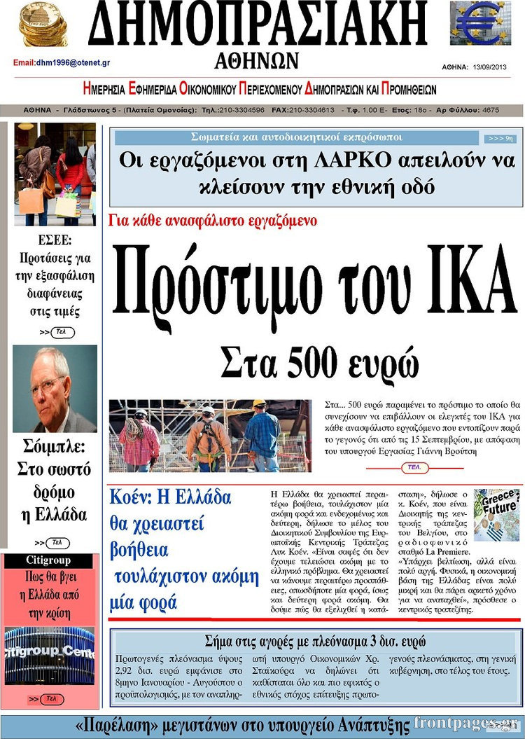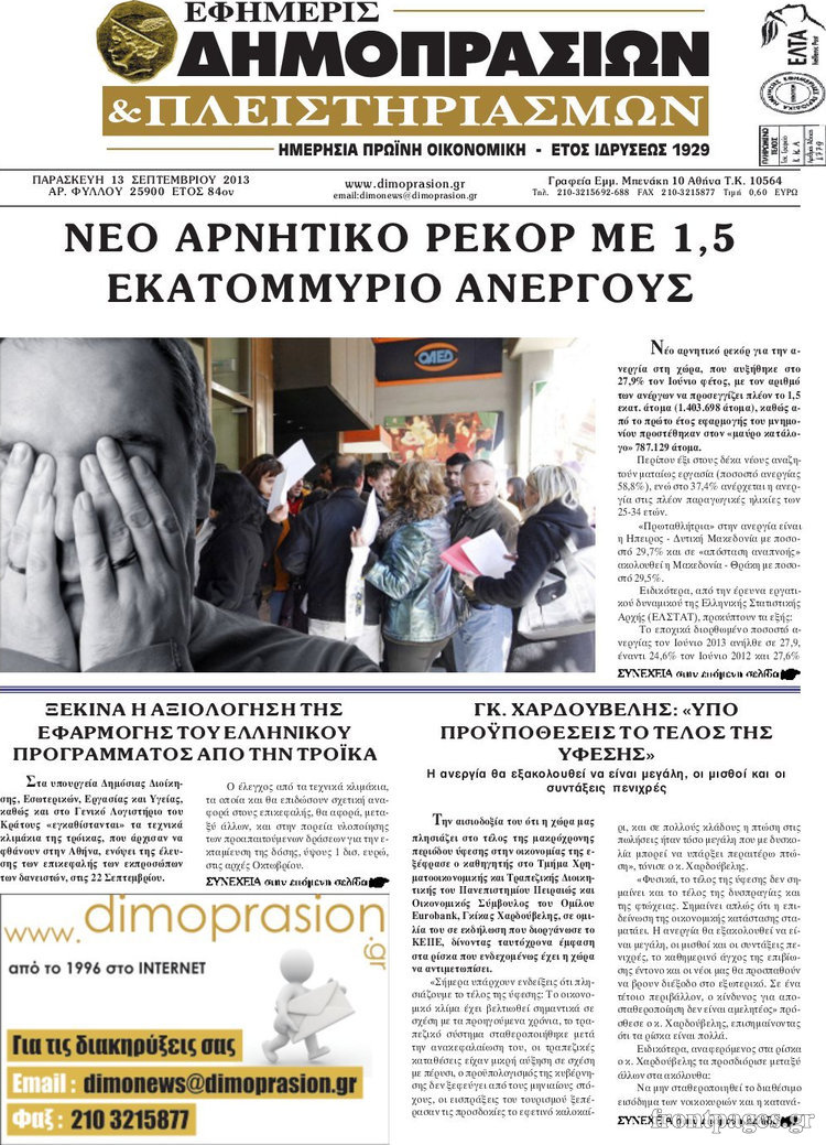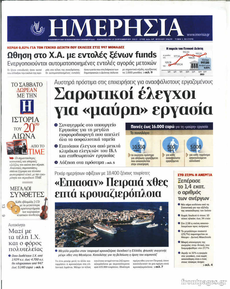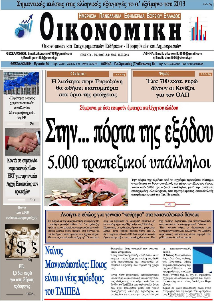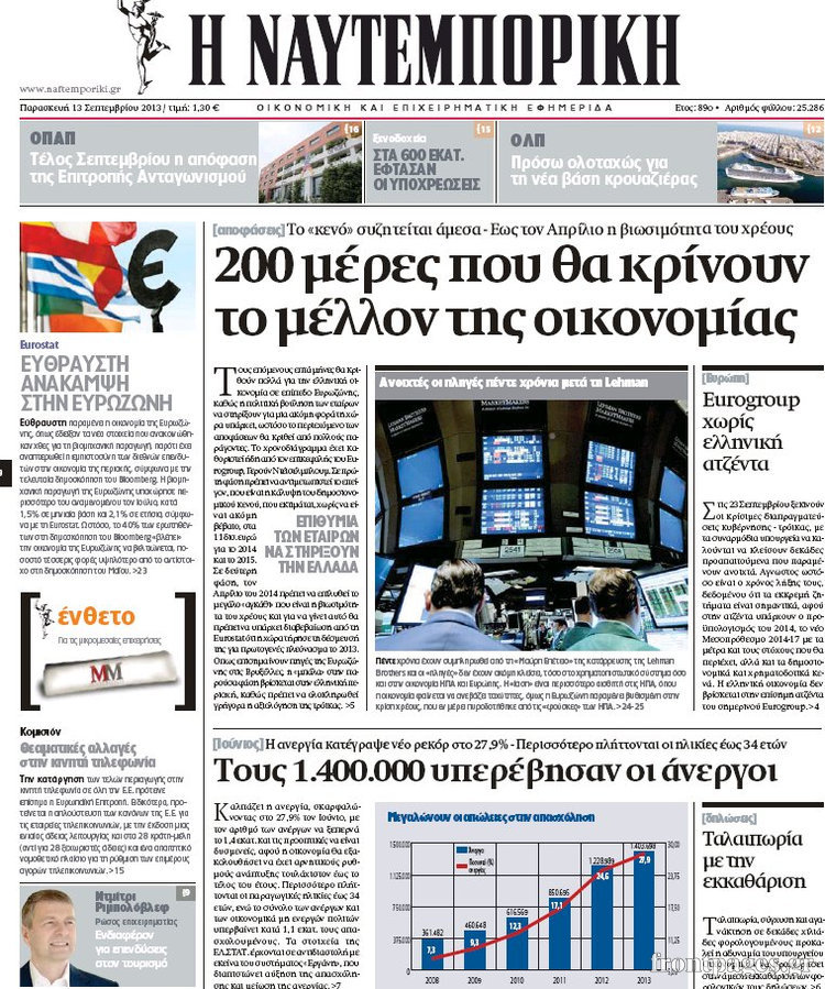 Οι oικονομικές εφημερίδες Enikos Newsroom 08:42, Παρασκευή 13 Σεπτεμβρίου 2013 Media Οι oικονομικές εφημερίδες Διαβάστε τα πρωτοσέλιδα των οικονομικών εφημερίδων: ΕΦΗΜΕΡΙΔΕΣ ΟΙΚΟΝΟΜΙΚΕΣ ΕΦΗΜΕΡΙΔΕΣ ΠΡΩΤΟΣΕΛΙΔΑ Μοιράσου το: σχολίασε κι εσύ (0 σχόλια) Ακολουθήστε το enikos.gr στο Google News και μάθετε πρώτοι όλες τις ειδήσεις Δείτε όλες τις τελευταίες ειδήσεις από την Ελλάδα και τον Κόσμο στο enikos.gr Ειδήσεις Ροή Ειδήσεων 2 ώρες πριν Ευρωπαϊκή Ένωση: Συμφωνία για δάνειο 90 δισ. ευρώ στην Ουκρανία τη διετία 2026-2027 7 ώρες πριν ΟΠΕΚΕΠΕ: Προφυλακιστέος ο φερόμενος αρχηγός και ο λογιστής της εγκληματικής οργάνωσης 8 ώρες πριν Αυξάνουν την πίεση προς την κυβέρνηση οι αγρότες: Κλείνουν παρακαμπτήριους και ανοίγουν διόδια – Τι θα γίνει τις γιορτές 7 ώρες πριν Φοινικούντα: Το Σάββατο απολογείται ο 30χρονος γιος γνωστού επιχειρηματία της Πλάκας που παραδόθηκε – Όσα είπε στους αστυνομικούς και ο ρόλος του στο έγκλημα 6 ώρες πριν ΑΕΚ – Κραϊόβα 3-2: Επική ανατροπή και πρόκριση στους «16» του Conference League η Ένωση 7 ώρες πριν Αρχαιολόγοι ανακάλυψαν ρωμαϊκά τεχνουργήματα από μια πόλη που δεν υπήρξε ποτέ – Τα τρία εντυπωσιακά κτίρια και ο αμφορέας με τις… σαρδέλες 8 ώρες πριν Ύπνος: Η απλή βραδινή ρουτίνα για να προστατεύσετε τα μαλλιά σας από το κρύο κατά τη διάρκεια του χειμώνα 9 ώρες πριν Manifesting: Πώς να συναντήσετε τον σύντροφο της ζωής σας, ανάλογα με τον μήνα γέννησής σας 2 ημέρες πριν 20 χρόνια τα Χριστούγεννα ξεκινούν στα Public με μεγάλη ποικιλία σε δώρα! 7 λεπτά πριν Αθήνα: Βρέθηκε η 16χρονη που είχε εξαφανιστεί από τις 6 Δεκεμβρίου – Η ανακοίνωση από το «Χαμόγελο του Παιδιού» 16 λεπτά πριν Κρύα χέρια και πόδια: Γιατρός εξηγεί ποια είναι η αίτια και πότε πρέπει να ανησυχήσετε 22 λεπτά πριν Σαν σήμερα 19 Δεκεμβρίου: Τα σημαντικότερα γεγονότα της ημέρας 27 λεπτά πριν Οι οικονομικές εφημερίδες 19/12/2025 32 λεπτά πριν Οι αθλητικές εφημερίδες 19/12/2025 ENIKOS NETWORK Σε περίοδο αυξημένης δραστηριότητας η γρίπη στην Ελλάδα-Μέτρα προστασίας από τον ΕΟΔΥ Σκέφτεστε συνέχεια συζητήσεις που έχετε κάνει; Τι σημαίνει αυτό, σύμφωνα με ειδικό Στεγαστικό: Τι λέει η ΠΟΜΙΔΑ για τα νέα μέτρα που ανακοίνωσε ο Κυριάκος Μητσοτάκης Λαγκάρντ: Αισιόδοξη για την ανάπτυξη της Ευρωζώνης, αβέβαιη για τον πληθωρισμό Χαρτογραφώντας το «σημείο χωρίς επιστροφή»: Για πρώτη φορά αποκαλύπτεται με λεπτομέρεια το ακανθώδες όριο της ατμόσφαιρας τ... Η Google καταργεί τη λειτουργία «dark web report» – Πώς θα μπορούν οι χρήστες να διαγράφουν τα δεδομένα τους περισσότερα 05:48 , Παρασκευή 19 Δεκεμβρίου 2025 Οι οικονομικές εφημερίδες 19/12/2025 Διαβάστε τα πρωτοσέλιδα από τις οικονομικές εφημερίδες, σήμερα 19/12/2025. 05:43 , Παρασκευή 19 Δεκεμβρίου 2025 Οι αθλητικές εφημερίδες 19/12/2025 Διαβάστε τα πρωτοσέλιδα από τις αθλητικές εφημερίδες, σήμερα 19/12/2025. 05:38 , Παρασκευή 19 Δεκεμβρίου 2025 Οι πολιτικές εφημερίδες 19/12/2025 Διαβάστε τα πρωτοσέλιδα από τις πολιτικές εφημερίδες, σήμερα 19/12/2025. 02:50 , Παρασκευή 19 Δεκεμβρίου 2025 GNTM: «Κλείδωσαν» οι τέσσερις φιναλίστ – Μεγάλη ανατροπή στις τελευταίες αποχωρήσεις Για προτελευταία φορά εμφανίστηκαν στο πλατό του GNTM οι φιναλίστ του φετινού κύκλου, το βράδυ... ΤΕΛΕΥΤΑΙΕΣ ΕΙΔΗΣΕΙΣ 7 λεπτά πριν Αθήνα: Βρέθηκε η 16χρονη που είχε εξαφανιστεί από τις 6... 16 λεπτά πριν Κρύα χέρια και πόδια: Γιατρός εξηγεί ποια είναι η... 22 λεπτά πριν Σαν σήμερα 19 Δεκεμβρίου: Τα σημαντικότερα γεγονότα... 27 λεπτά πριν Οι οικονομικές εφημερίδες 19/12/2025 32 λεπτά πριν Οι αθλητικές εφημ