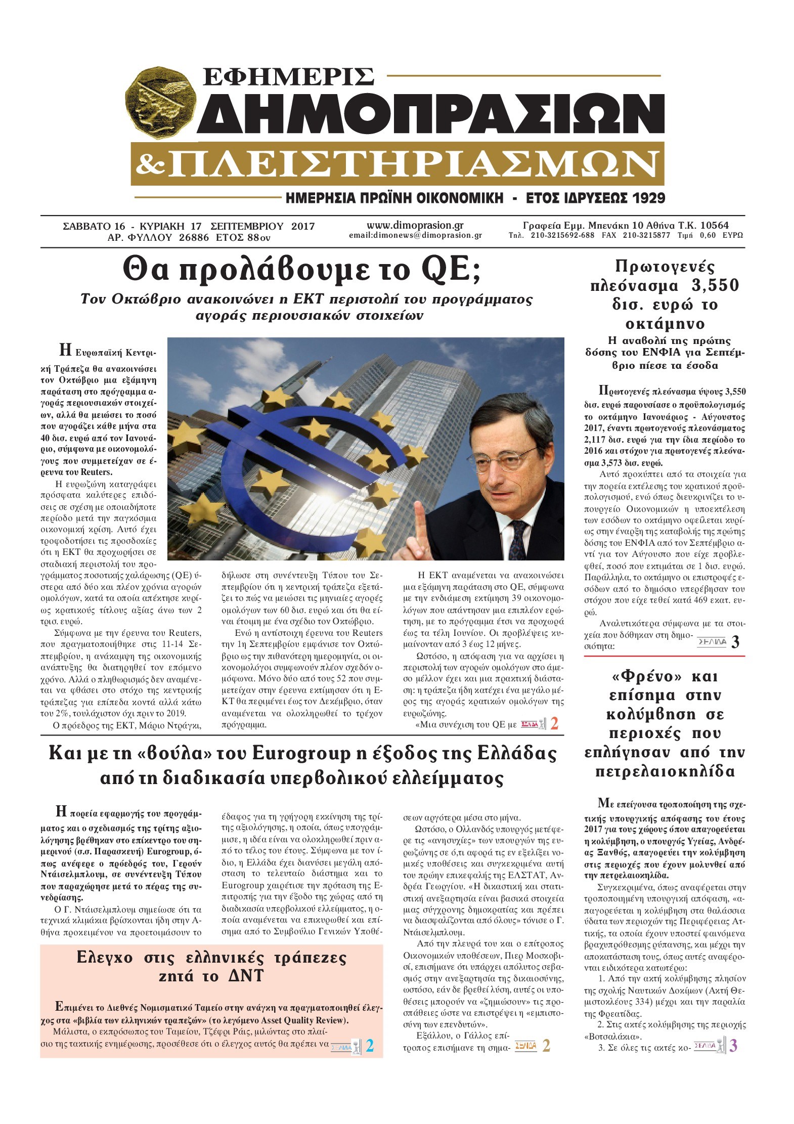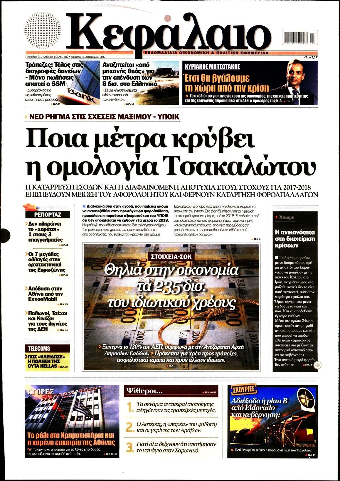 Οι οικονομικές εφημερίδες 16/9/2017 Enikos Newsroom 07:23, Σάββατο 16 Σεπτεμβρίου 2017 Media Διαβάστε τα σημερινά πρωτοσέλιδα των οικονομικών εφημερίδων: ΟΙΚΟΝΟΜΙΚΕΣ ΕΦΗΜΕΡΙΔΕΣ ΠΡΩΤΟΣΕΛΙΔΑ Μοιράσου το: σχολίασε κι εσύ (0 σχόλια) Ακολουθήστε το enikos.gr στο Google News και μάθετε πρώτοι όλες τις ειδήσεις Δείτε όλες τις τελευταίες ειδήσεις από την Ελλάδα και τον Κόσμο στο enikos.gr Ειδήσεις Ροή Ειδήσεων 3 λεπτά πριν Φοροδιαφυγή: Ποιοι φορολογούμενοι κινδυνεύουν να πληρώσουν «τσουχτερά» πρόστιμα 8 ώρες πριν Εκτός ευρωομάδας ΣΥΡΙΖΑ ο Νίκος Παππάς μετά την επίθεση στον δημοσιογράφο Νίκο Γιαννόπουλο – Η μήνυση και οι νέες δηλώσεις 9 ώρες πριν «Αγριεύουν» οι αγρότες: «Δεν συντρέχει λόγος συνάντησης με τον πρωθυπουργό» – Ώρα αποφάσεων στη σύσκεψη της Πέμπτης 9 ώρες πριν Κυψέλη: Χωρίς την οικογένειά της δίπλα της απολογήθηκε η 16χρονη – «Της είχε επιτεθεί κάποιος για να την βιάσει, φοβήθηκε και κυκλοφορούσε με μαχαίρι» 8 ώρες πριν Politico: Το πρόβλημα της Ευρώπης δεν είναι το Βέλγιο αλλά ο Ντόναλντ Τραμπ 1 ώρα πριν Καούρα: Το μπαχαρικό που είναι «εξίσου αποτελεσματικό» με την ομεπραζόλη, σύμφωνα με ειδικούς 2 ώρες πριν Τα ζώδια σήμερα, Πέμπτη 18 Δεκεμβρίου: Λέοντες, η καρδιά σας θέλει να εκφραστεί 8 ώρες πριν Μυστήριο με τεράστιες κυκλικές πέτρες 200 κιλών – Ανακαλύφθηκαν τυχαία κατά τη διάρκεια οδικών έργων και κανείς δεν ξέρει από πού προέρχονται 22 ώρες πριν 20 χρόνια τα Χριστούγεννα ξεκινούν στα Public με μεγάλη ποικιλία σε δώρα! 28 δευτερόλεπτα πριν Καιρός: Ηλιοφάνεια σήμερα με παροδικές νεφώσεις – Αναλυτική πρόγνωση ανά περιοχή 3 λεπτά πριν Φοροδιαφυγή: Ποιοι φορολογούμενοι κινδυνεύουν να πληρώσουν «τσουχτερά» πρόστιμα 15 λεπτά πριν Εορτολόγιο: Ποιοι γιορτάζουν σήμερα 18 Δεκεμβρίου 27 λεπτά πριν Επιχειρήσεις: Έρχονται νέα μέτρα φορολογικών ελαφρύνσεων – Τα σχέδια για την προκαταβολή φόρου και το τέλος επιτηδεύματος 34 λεπτά πριν ΗΠΑ: Οριστική άρση κυρώσεων κατά της Συρίας – Ανοίγει ο δρόμος για επενδύσεις ENIKOS NETWORK Μπορείτε να εντοπίσετε το ποντικάκι που κρύβεται πίσω από όλα τα μανιτάρια; Μόνο όσοι έχουν τα μάτια γερακιού μπορούν να λύ... Το «λουλούδι σκαντζόχοιρος» που μπορεί να ενισχύσει το ανοσοποιητικό, να μειώσει τη φλεγμονή και να ρυθμίσει το σάκχαρο Φοροδιαφυγή: Ποιοι φορολογούμενοι κινδυνεύουν να πληρώσουν «τσουχτερά» πρόστιμα ΕΛΣΤΑΤ: Τι δείχνουν τα νέα στοιχεία για τις ηλεκτρονικές παραγγελίες των επιχειρήσεων Χαρτογραφώντας το «σημείο χωρίς επιστροφή»: Για πρώτη φορά αποκαλύπτεται με λεπτομέρεια το ακανθώδες όριο της ατμόσφαιρας τ... Η Google καταργεί τη λειτουργία «dark web report» – Πώς θα μπορούν οι χρήστες να διαγράφουν τα δεδομένα τους περισσότερα 05:48 , Πέμπτη 18 Δεκεμβρίου 2025 Οι οικονομικές εφημερίδες 18/12/2025 Διαβάστε τα πρωτοσέλιδα από τις οικονομικές εφημερίδες, σήμερα 18/12/2025. 05:43 , Πέμπτη 18 Δεκεμβρίου 2025 Οι αθλητικές εφημερίδες 18/12/2025 Διαβάστε τα πρωτοσέλιδα από τις αθλητικές εφημερίδες, σήμερα 18/12/2025. 05:38 , Πέμπτη 18 Δεκεμβρίου 2025 Οι πολιτικές εφημερίδες 18/12/2025 Διαβάστε τα πρωτοσέλιδα από τις πολιτικές εφημερίδες, σήμερα 18/12/2025. 05:22 , Πέμπτη 18 Δεκεμβρίου 2025 Το Ποντίκι σήμερα Πέμπτη 18/12/2025 Διαβάστε το πρωτοσέλιδο της εφημερίδας «Το Ποντίκι» σήμερα 18/12/2025. ΤΕΛΕΥΤΑΙΕΣ ΕΙΔΗΣΕΙΣ 28 δευτερόλεπτα πριν Καιρός: Ηλιοφάνεια σήμερα με παροδικές νεφώσεις –... 3 λεπτά πριν Φοροδιαφυγή: Ποιοι φορολογούμενοι κινδυνεύουν να... 15 λεπτά πριν Εορτολόγιο: Ποιοι γιορτάζουν σήμερα 18 Δεκεμβρίου 27