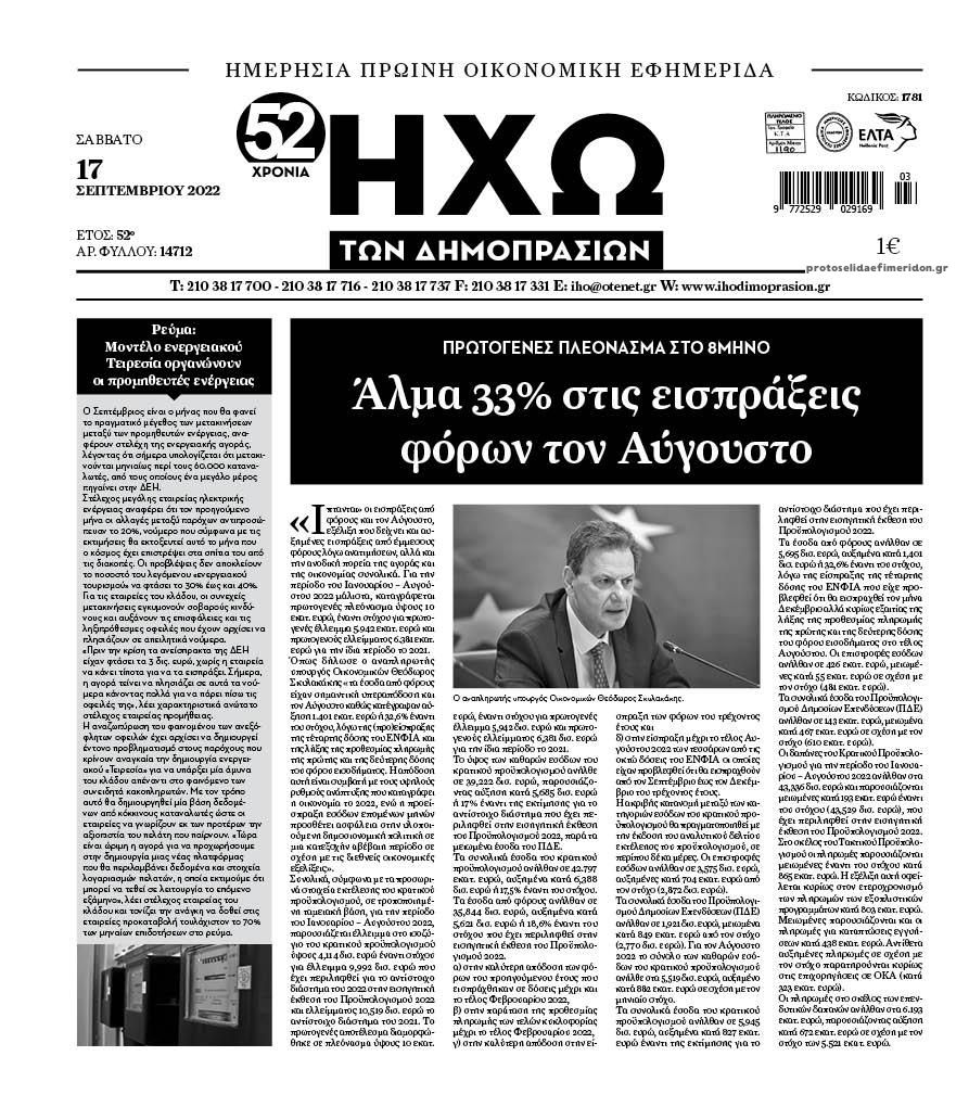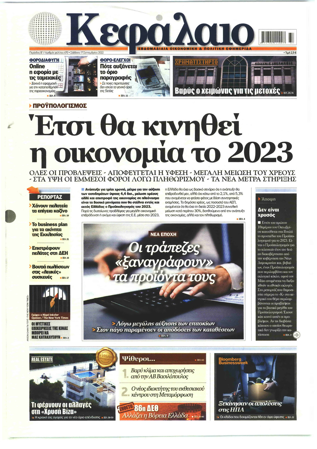 Διαβάστε τα πρωτοσέλιδα από τις οικονομικές εφημερίδες, σήμερα 17/9/2022.