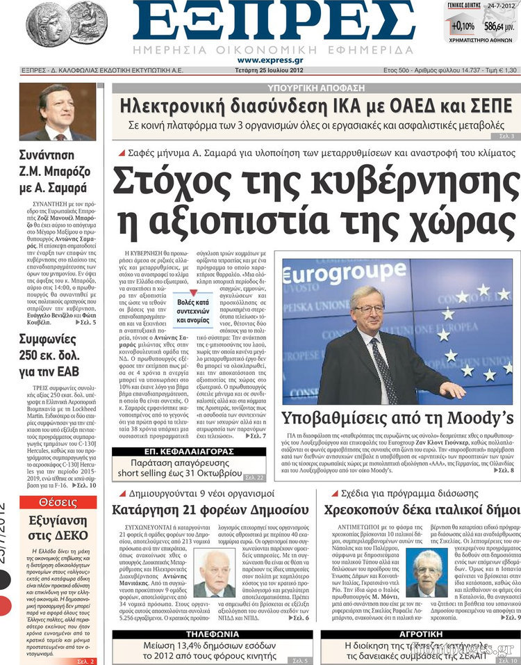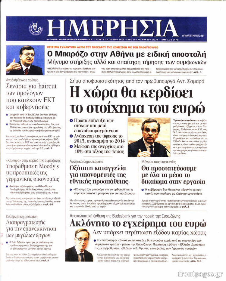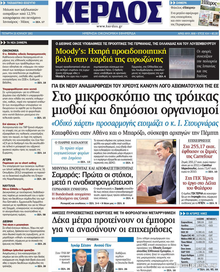 Τα σημερινά πρωτοσέλιδα των οικονομικών εφημερίδων.