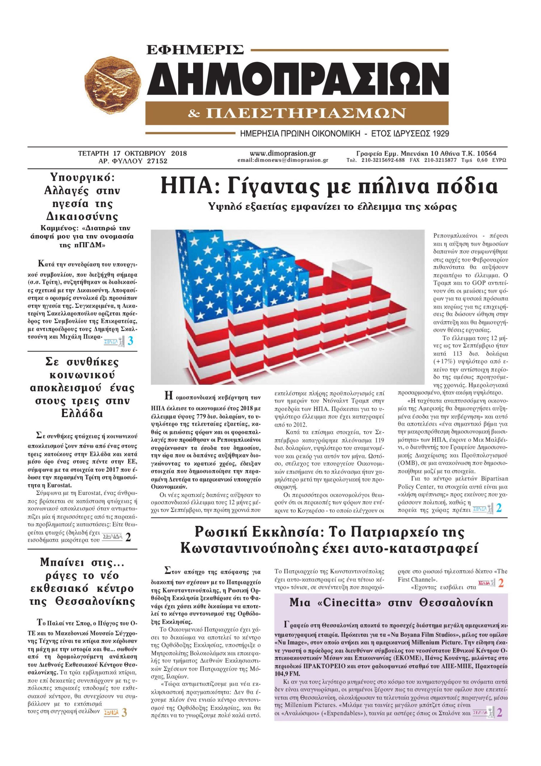 Οι οικονομικές εφημερίδες 17/10/18 Enikos Newsroom 06:35, Τετάρτη 17 Οκτωβρίου 2018 Media Διαβάστε τα πρωτοσέλιδα: ΟΙΚΟΝΟΜΙΚΕΣ ΕΦΗΜΕΡΙΔΕΣ ΠΡΩΤΟΣΕΛΙΔΑ Μοιράσου το: σχολίασε κι εσύ (0 σχόλια) Ακολουθήστε το enikos.gr στο Google News και μάθετε πρώτοι όλες τις ειδήσεις Δείτε όλες τις τελευταίες ειδήσεις από την Ελλάδα και τον Κόσμο στο enikos.gr Ειδήσεις Ροή Ειδήσεων 1 ώρα πριν Ευρωπαϊκή Ένωση: Συμφωνία για δάνειο 90 δισ. ευρώ στην Ουκρανία τη διετία 2026-2027 6 ώρες πριν ΟΠΕΚΕΠΕ: Προφυλακιστέος ο φερόμενος αρχηγός και ο λογιστής της εγκληματικής οργάνωσης 7 ώρες πριν Αυξάνουν την πίεση προς την κυβέρνηση οι αγρότες: Κλείνουν παρακαμπτήριους και ανοίγουν διόδια – Τι θα γίνει τις γιορτές 7 ώρες πριν Φοινικούντα: Το Σάββατο απολογείται ο 30χρονος γιος γνωστού επιχειρηματία της Πλάκας που παραδόθηκε – Όσα είπε στους αστυνομικούς και ο ρόλος του στο έγκλημα 5 ώρες πριν ΑΕΚ – Κραϊόβα 3-2: Επική ανατροπή και πρόκριση στους «16» του Conference League η Ένωση 6 ώρες πριν Αρχαιολόγοι ανακάλυψαν ρωμαϊκά τεχνουργήματα από μια πόλη που δεν υπήρξε ποτέ – Τα τρία εντυπωσιακά κτίρια και ο αμφορέας με τις… σαρδέλες 7 ώρες πριν Ύπνος: Η απλή βραδινή ρουτίνα για να προστατεύσετε τα μαλλιά σας από το κρύο κατά τη διάρκεια του χειμώνα 8 ώρες πριν Manifesting: Πώς να συναντήσετε τον σύντροφο της ζωής σας, ανάλογα με τον μήνα γέννησής σας 2 ημέρες πριν 20 χρόνια τα Χριστούγεννα ξεκινούν στα Public με μεγάλη ποικιλία σε δώρα! 4 λεπτά πριν Εφημερεύοντα φαρμακεία σε Αθήνα και Θεσσαλονίκη (19/12) 11 λεπτά πριν Η TikTok στις ΗΠΑ πωλείται σε Oracle, Silver Lake και MGX – Οι λεπτομέρειες του «deal» 19 λεπτά πριν Αλεξάντερ Λουκασένκο: Η Λευκορωσία βρίσκεται κοντά στην αποκατάσταση των σχέσεών της με τις ΗΠΑ 35 λεπτά πριν Αυστραλία: Κήρυξε την Κυριακή (21/12) ημέρα εθνικού πένθους για τη φονική επίθεση στην παραλία Μπόνταϊ 45 λεπτά πριν Ρόδος: Δάσκαλος καράτε καταδικάστηκε για ασέλγεια σε ανήλικες αθλήτριες – Μαρτυρίες για αγγίγματα σε ευαίσθητα σημεία ENIKOS NETWORK Σε περίοδο αυξημένης δραστηριότητας η γρίπη στην Ελλάδα-Μέτρα προστασίας από τον ΕΟΔΥ Σκέφτεστε συνέχεια συζητήσεις που έχετε κάνει; Τι σημαίνει αυτό, σύμφωνα με ειδικό Στεγαστικό: Τι λέει η ΠΟΜΙΔΑ για τα νέα μέτρα που ανακοίνωσε ο Κυριάκος Μητσοτάκης Λαγκάρντ: Αισιόδοξη για την ανάπτυξη της Ευρωζώνης, αβέβαιη για τον πληθωρισμό Χαρτογραφώντας το «σημείο χωρίς επιστροφή»: Για πρώτη φορά αποκαλύπτεται με λεπτομέρεια το ακανθώδες όριο της ατμόσφαιρας τ... Η Google καταργεί τη λειτουργία «dark web report» – Πώς θα μπορούν οι χρήστες να διαγράφουν τα δεδομένα τους περισσότερα 02:50 , Παρασκευή 19 Δεκεμβρίου 2025 GNTM: «Κλείδωσαν» οι τέσσερις φιναλίστ – Μεγάλη ανατροπή στις τελευταίες αποχωρήσεις Για προτελευταία φορά εμφανίστηκαν στο πλατό του GNTM οι φιναλίστ του φετινού κύκλου, το βράδυ... 17:45 , Πέμπτη 18 Δεκεμβρίου 2025 ROUK ZOUK: Εορταστικό επεισόδιο με καλεσμένους τους πρωταγωνιστές του «Γιατί ρε πατέρα» Το Σάββατο 20 Δεκεμβρίου στις 21:00, η Ζέτα Μακρυπούλια υποδέχεται εκλεκτούς ηθοποιούς που όλο... 17:20 , Πέμπτη 18 Δεκεμβρίου 2025 Άγιος έρωτας: Η Χριστίνα εξομολογείται στον πατέρα Νικόλαο, απόψε στις 21:00 στον Alpha Η Νότα αποφασίζει να εκδικηθεί τον Πέτρο και τον Στέφανο, για χάρη του Λούη, όμως τα πράγματα ... 16:50 , Πέμπτη 18 Δεκεμβρίου 2025 Να μ’ αγαπάς: Ζωή και Φωτεινή συμφιλιώνονται ως μάνα με κόρη, απόψε στις 20:00 Η ταυτότητα του Άγγελου αποκαλύπτεται στο νέο επεισόδιο της σειράς “Να μ’ αγαπάς... ΤΕΛΕΥΤΑΙΕΣ ΕΙΔΗΣΕΙΣ 4 λεπτά πριν Εφ