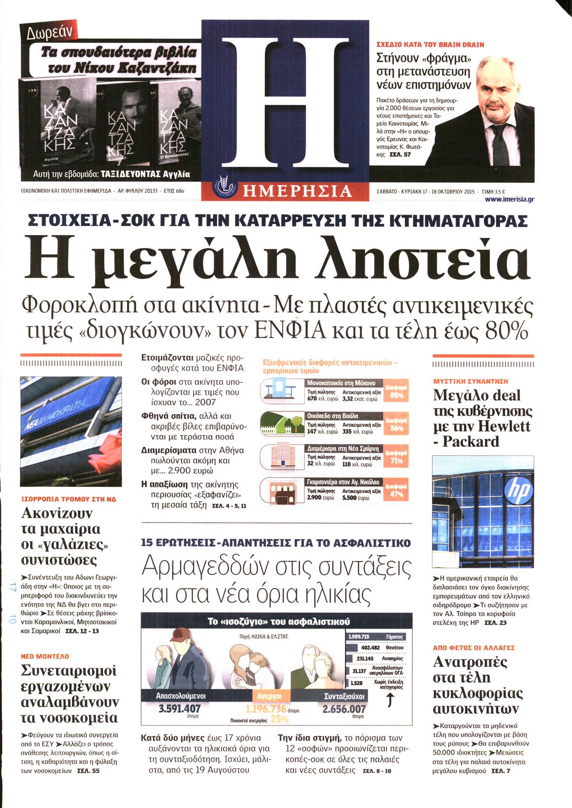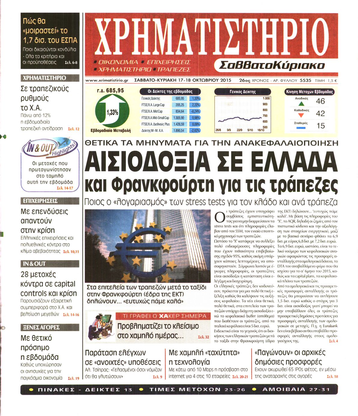 Οι οικονομικές εφημερίδες 17/10/2015 Enikos Newsroom 06:40, Σάββατο 17 Οκτωβρίου 2015 Media Διαβάστε τα σημερινά πρωτοσέλιδα των οικονομικών εφημερίδων: ΟΙΚΟΝΟΜΙΚΕΣ ΕΦΗΜΕΡΙΔΕΣ ΠΡΩΤΟΣΕΛΙΔΑ Μοιράσου το: σχολίασε κι εσύ (0 σχόλια) Ακολουθήστε το enikos.gr στο Google News και μάθετε πρώτοι όλες τις ειδήσεις Δείτε όλες τις τελευταίες ειδήσεις από την Ελλάδα και τον Κόσμο στο enikos.gr Ειδήσεις Ροή Ειδήσεων 13 λεπτά πριν Κλιμακώνουν από σήμερα τις κινητοποιήσεις οι αγρότες: Νέα μπλόκα, κλείσιμο παρακαμπτηρίων και άνοιγμα διοδίων – Το νέο μήνυμα Μητσοτάκη 40 λεπτά πριν Συντάξεις: Οι κερδισμένοι και οι χαμένοι από τις αυξήσεις – Αναλυτικός οδηγός και παραδείγματα 4 ώρες πριν Ευρωπαϊκή Ένωση: Συμφωνία για δάνειο 90 δισ. ευρώ στην Ουκρανία τη διετία 2026-2027 – Μητσοτάκης: Η λύση που προκρίθηκε είναι η ενδεδειγμένη 60 λεπτά πριν Θανατηφόρο τροχαίο στη Νέα Φιλαδέλφεια: Νεκρός 27χρονος οδηγός μηχανής ύστερα από σύγκρουση με τρόλεϊ 8 ώρες πριν ΟΠΕΚΕΠΕ: Προφυλακιστέος ο φερόμενος αρχηγός και ο λογιστής της εγκληματικής οργάνωσης 2 ώρες πριν Οπτική ψευδαίσθηση: Μόνο αν έχεις αετίσια ματιά θα βρεις τον παπαγάλο σε 12 δευτερόλεπτα 2 ώρες πριν Κρύα χέρια και πόδια: Γιατρός εξηγεί ποια είναι η αίτια και πότε πρέπει να ανησυχήσετε 3 ώρες πριν Τα ζώδια σήμερα, Παρασκευή 19 Δεκεμβρίου: Τοξότες, με τη Νέα Σελήνη έρχεται η προσωπική ανανέωσή σας 2 ημέρες πριν 20 χρόνια τα Χριστούγεννα ξεκινούν στα Public με μεγάλη ποικιλία σε δώρα! 13 δευτερόλεπτα πριν Την Κυριακή με τη Realnews: Δωροεπιταγή 10€ 6 λεπτά πριν Πανεπιστήμιο Μπράουν: Νεκρός ο ύποπτος για την επίθεση 12 λεπτά πριν Τέμπη: Συνεχίζεται σήμερα η δίκη για τη διαχείριση του βιντεοληπτικού υλικού 13 λεπτά πριν Κλιμακώνουν από σήμερα τις κινητοποιήσεις οι αγρότες: Νέα μπλόκα, κλείσιμο παρακαμπτηρίων και άνοιγμα διοδίων – Το νέο μήνυμα Μητσοτάκη 21 λεπτά πριν e-ΕΦΚΑ και ΔΥΠΑ: Τελευταία ημέρα πληρωμών σήμερα ENIKOS NETWORK Άνοια: Ειδικοί προειδοποιούν για 5 κοινές συνήθειες που μπορεί να αυξήσουν τον κίνδυνο 6 Χριστουγεννιάτικα δώρα για όσους τα έχουν όλα – Θα τους εκπλήξουν Συντάξεις: Οι κερδισμένοι και οι χαμένοι από τις αυξήσεις – Αναλυτικός οδηγός Στεγαστικό: Τι λέει η ΠΟΜΙΔΑ για τα νέα μέτρα που ανακοίνωσε ο Κυριάκος Μητσοτάκης Χαρτογραφώντας το «σημείο χωρίς επιστροφή»: Για πρώτη φορά αποκαλύπτεται με λεπτομέρεια το ακανθώδες όριο της ατμόσφαιρας τ... Η Google καταργεί τη λειτουργία «dark web report» – Πώς θα μπορούν οι χρήστες να διαγράφουν τα δεδομένα τους περισσότερα 05:48 , Παρασκευή 19 Δεκεμβρίου 2025 Οι οικονομικές εφημερίδες 19/12/2025 Διαβάστε τα πρωτοσέλιδα από τις οικονομικές εφημερίδες, σήμερα 19/12/2025. 05:43 , Παρασκευή 19 Δεκεμβρίου 2025 Οι αθλητικές εφημερίδες 19/12/2025 Διαβάστε τα πρωτοσέλιδα από τις αθλητικές εφημερίδες, σήμερα 19/12/2025. 05:38 , Παρασκευή 19 Δεκεμβρίου 2025 Οι πολιτικές εφημερίδες 19/12/2025 Διαβάστε τα πρωτοσέλιδα από τις πολιτικές εφημερίδες, σήμερα 19/12/2025. 02:50 , Παρασκευή 19 Δεκεμβρίου 2025 GNTM: «Κλείδωσαν» οι τέσσερις φιναλίστ – Μεγάλη ανατροπή στις τελευταίες αποχωρήσεις Για προτελευταία φορά εμφανίστηκαν στο πλατό του GNTM οι φιναλίστ του φετινού κύκλου, το βράδυ... ΤΕΛΕΥΤΑΙΕΣ ΕΙΔΗΣΕΙΣ 6 λεπτά πριν Πανεπιστήμιο Μπράουν: Νεκρός ο ύποπτος για την επίθεση 12 λεπτά πριν Τέμπη: Συνεχίζεται σήμερα η δίκη για τη διαχείριση του... 13 λεπτά πριν Κλιμακώνουν από σήμερα τις κινητοποιήσεις οι αγρότες:... 21 λεπτά πριν e-ΕΦΚΑ και ΔΥΠΑ: Τελευταία ημέρα πληρωμών σήμερα 28 λεπτά πριν Καιρός: Η