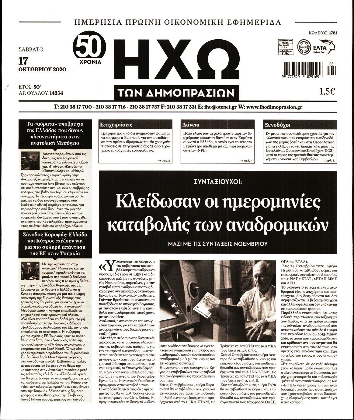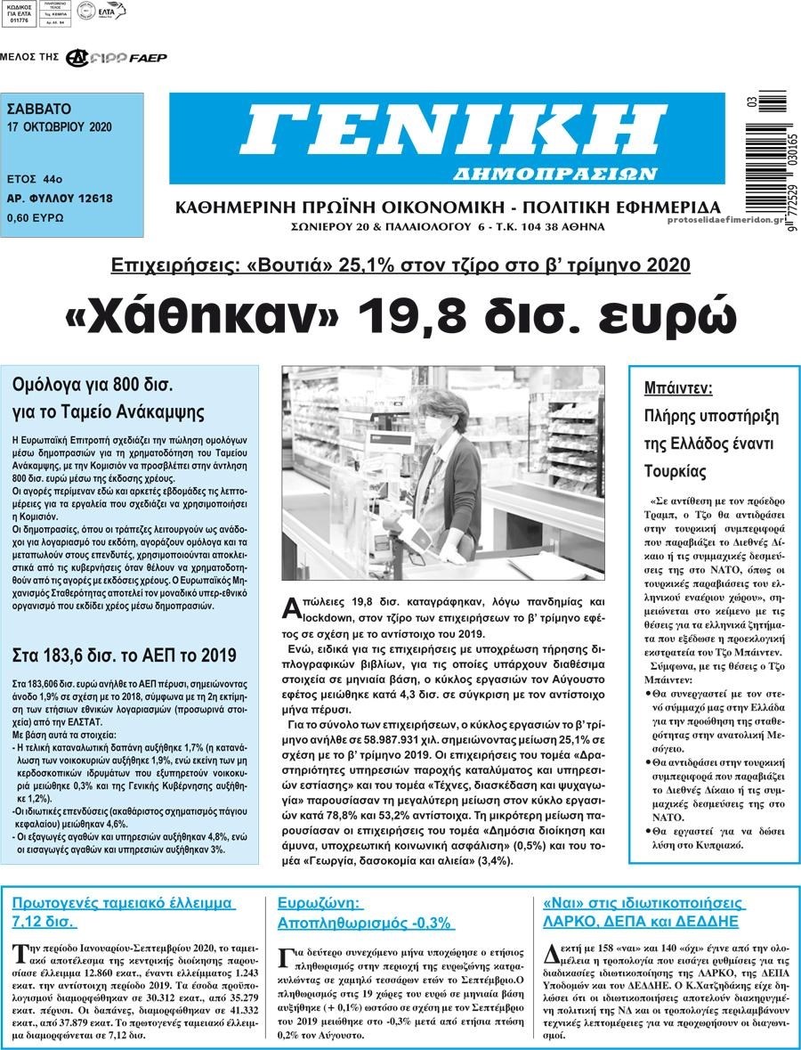 Οι οικονομικές εφημερίδες 17/10/2020 Διονύσης Νίκκας 07:27, Σάββατο 17 Οκτωβρίου 2020 Media Διαβάστε τα πρωτοσέλιδα των οικονομικών εφημερίδων… ΟΙΚΟΝΟΜΙΚΕΣ ΕΦΗΜΕΡΙΔΕΣ Μοιράσου το: σχολίασε κι εσύ (0 σχόλια) Ακολουθήστε το enikos.gr στο Google News και μάθετε πρώτοι όλες τις ειδήσεις Δείτε όλες τις τελευταίες ειδήσεις από την Ελλάδα και τον Κόσμο στο enikos.gr Ειδήσεις Ροή Ειδήσεων 52 λεπτά πριν Αγρότες: Πολύωροι αποκλεισμοί στα τελωνεία Προμαχώνα, Εξοχής, Ευζώνων και Νίκης – Κλείνουν τον κόμβο Φιλώτα οι παραγωγοί στη Δυτική Μακεδονία 23 λεπτά πριν Νίκος Παππάς: Ζητώ συγγνώμη για αυτό το επεισόδιο – Δεν τον γρονθοκόπησα 3 ώρες πριν Ευρωπαϊκό Συμβούλιο: Όλες οι λεπτομέρειες για το δάνειο των 90 δισ. ευρώ στην Ουκρανία – Τα συμπεράσματα της Συνόδου Κορυφής 2 ώρες πριν Αίγιο: 22χρονη κατήγγειλε ότι έπεσε θύμα βιασμού και ληστείας από συγγενικά της πρόσωπα 2 ώρες πριν Σφοδρές βροχές και καταιγίδες πλήττουν τα Ηνωμένα Αραβικά Εμιράτα: Ακυρώσεις πτήσεων, προβλήματα στην κυκλοφορία 1 ώρα πριν Αλλαγή σελίδας για 3 ζώδια – «Μία δύσκολη περίοδος φτάνει στο τέλος της» 3 ώρες πριν Πώς το αρχαίο DNA του κυνηγού – συλλέκτη ξεκλείδωσε τα μυστικά της μακροζωίας 2 ημέρες πριν 20 χρόνια τα Χριστούγεννα ξεκινούν στα Public με μεγάλη ποικιλία σε δώρα! 2 ώρες πριν Ο σύζυγός της συμπεριφέρεται όπως το παιδί τους – «Χρησιμοποιεί αστείες δικαιολογίες για να μην κάνει δουλειές και να ξοδεύει λεφτά» 5 λεπτά πριν Τομ Κρουζ: Χορεύει με ένα φτυάρι στη νέα ταινία του Αλεχάντρο Γκονζάλες Ινιάριτου, «Digger» 10 λεπτά πριν Γεμάτος νεροχύτης; 5 σοβαρές ευθύνες που «φοβίζουν» όσους αφήνουν άπλυτα πιάτα 14 λεπτά πριν Ρόδος: Επεισόδιο μεταξύ ανηλίκων έξω από σχολείο – Απείλησαν με σουγιά 12χρονο 19 λεπτά πριν Γιώργος Μαζωνάκης: Η πρώτη αντίδραση της οικογένειάς του μετά τη μήνυση του Στέφανου Παπαδόπουλου 23 λεπτά πριν Νίκος Παππάς: Ζητώ συγγνώμη για αυτό το επεισόδιο – Δεν τον γρονθοκόπησα ENIKOS NETWORK Καρκίνος του πνεύμονα: Έως 8.000 ζωές μπορούν να σωθούν με την έγκαιρη διάγνωση Καρδιοπαθείς: Οι νέες συστάσεις για τα εμβόλια που πρέπει να κάνουν τον χειμώνα Απειλή για τον Προϋπολογισμό τα ληξιπρόθεσμα χρέη των ιδιωτών προς την εφορία – Τι δείχνουν τα στοιχεία Συντάξεις: Οι κερδισμένοι και οι χαμένοι από τις αυξήσεις – Αναλυτικός οδηγός Χαρτογραφώντας το «σημείο χωρίς επιστροφή»: Για πρώτη φορά αποκαλύπτεται με λεπτομέρεια το ακανθώδες όριο της ατμόσφαιρας τ... Η Google καταργεί τη λειτουργία «dark web report» – Πώς θα μπορούν οι χρήστες να διαγράφουν τα δεδομένα τους περισσότερα 08:00 , Παρασκευή 19 Δεκεμβρίου 2025 Την Κυριακή με τη Realnews: Δωροεπιταγή 10€ Δωροεπιταγή αξίας 10€ για αγορές άνω των 60€ από τα πολυκαταστήματα FactoryOutlet H προσφορά ι... 05:48 , Παρασκευή 19 Δεκεμβρίου 2025 Οι οικονομικές εφημερίδες 19/12/2025 Διαβάστε τα πρωτοσέλιδα από τις οικονομικές εφημερίδες, σήμερα 19/12/2025. 05:43 , Παρασκευή 19 Δεκεμβρίου 2025 Οι αθλητικές εφημερίδες 19/12/2025 Διαβάστε τα πρωτοσέλιδα από τις αθλητικές εφημερίδες, σήμερα 19/12/2025. 05:38 , Παρασκευή 19 Δεκεμβρίου 2025 Οι πολιτικές εφημερίδες 19/12/2025 Διαβάστε τα πρωτοσέλιδα από τις πολιτικές εφημερίδες, σήμερα 19/12/2025. ΤΕΛΕΥΤΑΙΕΣ ΕΙΔΗΣΕΙΣ 5 λεπτά πριν Τομ Κρουζ: Χορεύει με ένα φτυάρι στη νέα ταινία του... 10 λεπτά πριν Γεμάτος νεροχύτης; 5 σοβαρές ευθύνες που «φοβίζουν»... 14 λεπτά πριν Ρόδος: Επεισόδιο μεταξύ ανηλίκων έξω από σχολείο –... 19 λεπτά πριν Γιώργος Μαζωνάκης: Η πρώτη αντίδραση της οικογένειάς... 23 λεπτά πριν Νίκος