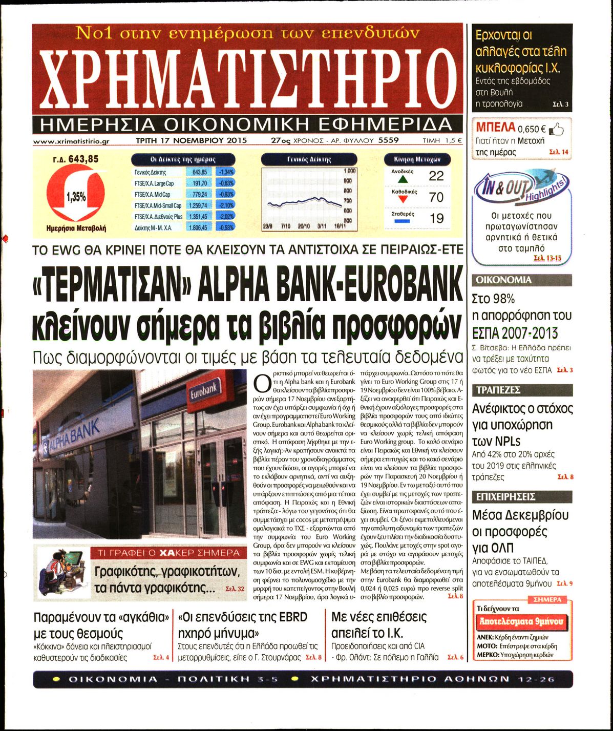 Oι οικονομικές εφημερίδες 17/11/2015 Enikos Newsroom 05:56, Τρίτη 17 Νοεμβρίου 2015 Media Διαβάστε τα σημερινά πρωτοσέλιδα των οικονομικών εφημερίδων: ΟΙΚΟΝΟΜΙΚΕΣ ΕΦΗΜΕΡΙΔΕΣ ΠΡΩΤΟΣΕΛΙΔΑ Μοιράσου το: σχολίασε κι εσύ (0 σχόλια) Ακολουθήστε το enikos.gr στο Google News και μάθετε πρώτοι όλες τις ειδήσεις Δείτε όλες τις τελευταίες ειδήσεις από την Ελλάδα και τον Κόσμο στο enikos.gr Ειδήσεις Ροή Ειδήσεων 1 ώρα πριν Αγρότες: «Όχι στον διάλογο, μας εμπαίζει η κυβέρνηση» – Αποφάσισαν κλιμάκωση των κινητοποιήσεων, τι θα γίνει τα Χριστούγεννα 2 ώρες πριν Την πρώτη Belharra παρέλαβε η χώρα μας, υψώθηκε η ελληνική σημαία στη φρεγάτα «Κίμων» – Δένδιας: «Το ισχυρότερο Πολεμικό Ναυτικό που είχε ποτέ ο ελληνισμός» 4 ώρες πριν Γιώργος Μαζωνάκης: «Δεν ζήτησα χρήματα, παρά μόνο ηθική δικαίωση» – Οι πρώτες δηλώσεις του 21χρονου μετά την κατάθεση της μήνυσης 53 λεπτά πριν Μιχάλης Χουρδάκης: «Είμαι διαθέσιμος να συμβάλω στην προσωρινή κάλυψη του ιατρείου της Ψερίμου» – Η επιστολή στον Άδωνι Γεωργιάδη 1 ώρα πριν Εξώδικο Γεωργιάδη στην Κωνσταντοπούλου – «Με κατηγόρησε ότι έχω καταδικαστεί για παιδεραστία» 2 ώρες πριν Τα 5 ζώδια που θα ευνοηθούν στα οικονομικά τους το 2026 – «Τραβούν το χρήμα σαν μαγνήτες» 7 ώρες πριν Αν κάνετε συνεχώς αυτά τα 8 πράγματα με τα κατοικίδιά σας, σας λείπει η ανθρώπινη επαφή 3 ώρες πριν Αυτό που κρύβεται κάτω από τη Γροιλανδία θα μπορούσε να ανατρέψει όσα γνωρίζουμε για την άνοδο της στάθμης των θαλασσών 1 ημέρα πριν 20 χρόνια τα Χριστούγεννα ξεκινούν στα Public με μεγάλη ποικιλία σε δώρα! 2 λεπτά πριν Δίκη για υποκλοπές: Τη βίαιη προσαγωγή δύο μαρτύρων διέταξε το δικαστήριο – Τι κατέθεσε ο Τάσος Τέλλογλου 7 λεπτά πριν Σύνοδος Κορυφής: Οι Ευρωπαίοι συμφώνησαν να εξετάσουν την χρήση των ρωσικών περιουσιακών για την χρηματοδότηση της Ουκρανίας – Η δήλωση Ζελένσκι 12 λεπτά πριν Δένδιας: Έναρξη διαπραγματεύσεων για την ταχύτερη ανανέωση της Στρατηγικής Εταιρικής Σχέσης Ελλάδας – Γαλλίας 16 λεπτά πριν ROUK ZOUK: Εορταστικό επεισόδιο με καλεσμένους τους πρωταγωνιστές του «Γιατί ρε πατέρα» 22 λεπτά πριν Φιντάν: «Η Κυπριακή Δημοκρατία μας παρεμποδίζει όπου βρει την ευκαιρία» – Η πονηρή πρόταση που ανοίγει τον δρόμο για δύο κράτη ENIKOS NETWORK ΕΟΔΥ: Δωρεάν τεστ για HIV, Ηπατίτιδες, Σύφιλη, Χλαμύδια, Γονόρροια 100 χρόνια ΠΙΣ: Ένας αιώνας προσφοράς στην Ιατρική και την κοινωνία Χριστούγεννα και Πρωτοχρονιά: Δείτε πόσα χρήματα θα πάρουν ως αμοιβή όσοι εργαστούν Κρατική επιχορήγηση έως 14.500 ευρώ: Ποιοι θα λάβουν από σήμερα την προκαταβολή στον τραπεζικό λογαριασμό τους Χαρτογραφώντας το «σημείο χωρίς επιστροφή»: Για πρώτη φορά αποκαλύπτεται με λεπτομέρεια το ακανθώδες όριο της ατμόσφαιρας τ... Η Google καταργεί τη λειτουργία «dark web report» – Πώς θα μπορούν οι χρήστες να διαγράφουν τα δεδομένα τους περισσότερα 17:45 , Πέμπτη 18 Δεκεμβρίου 2025 ROUK ZOUK: Εορταστικό επεισόδιο με καλεσμένους τους πρωταγωνιστές του «Γιατί ρε πατέρα» Το Σάββατο 20 Δεκεμβρίου στις 21:00, η Ζέτα Μακρυπούλια υποδέχεται εκλεκτούς ηθοποιούς που όλο... 17:20 , Πέμπτη 18 Δεκεμβρίου 2025 Άγιος έρωτας: Η Χριστίνα εξομολογείται στον πατέρα Νικόλαο, απόψε στις 21:00 στον Alpha Η Νότα αποφασίζει να εκδικηθεί τον Πέτρο και τον Στέφανο, για χάρη του Λούη, όμως τα πράγματα ... 16:50 , Πέμπτη 18 Δεκεμβρίου 2025 Να μ’ αγαπάς: Ζωή και Φωτεινή συμφιλιώνονται ως μάνα με κόρη, απόψε στις 20:00 Η ταυτότητα του Άγγελου αποκαλύπτεται στο νέο επεισόδιο της σειράς “Να μ’ αγαπάς... 15:52 , 