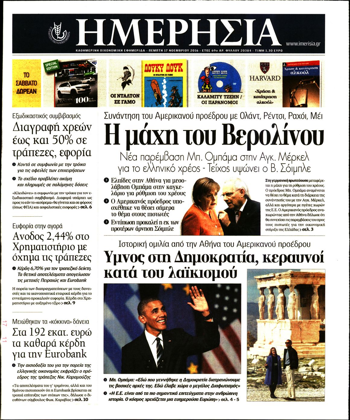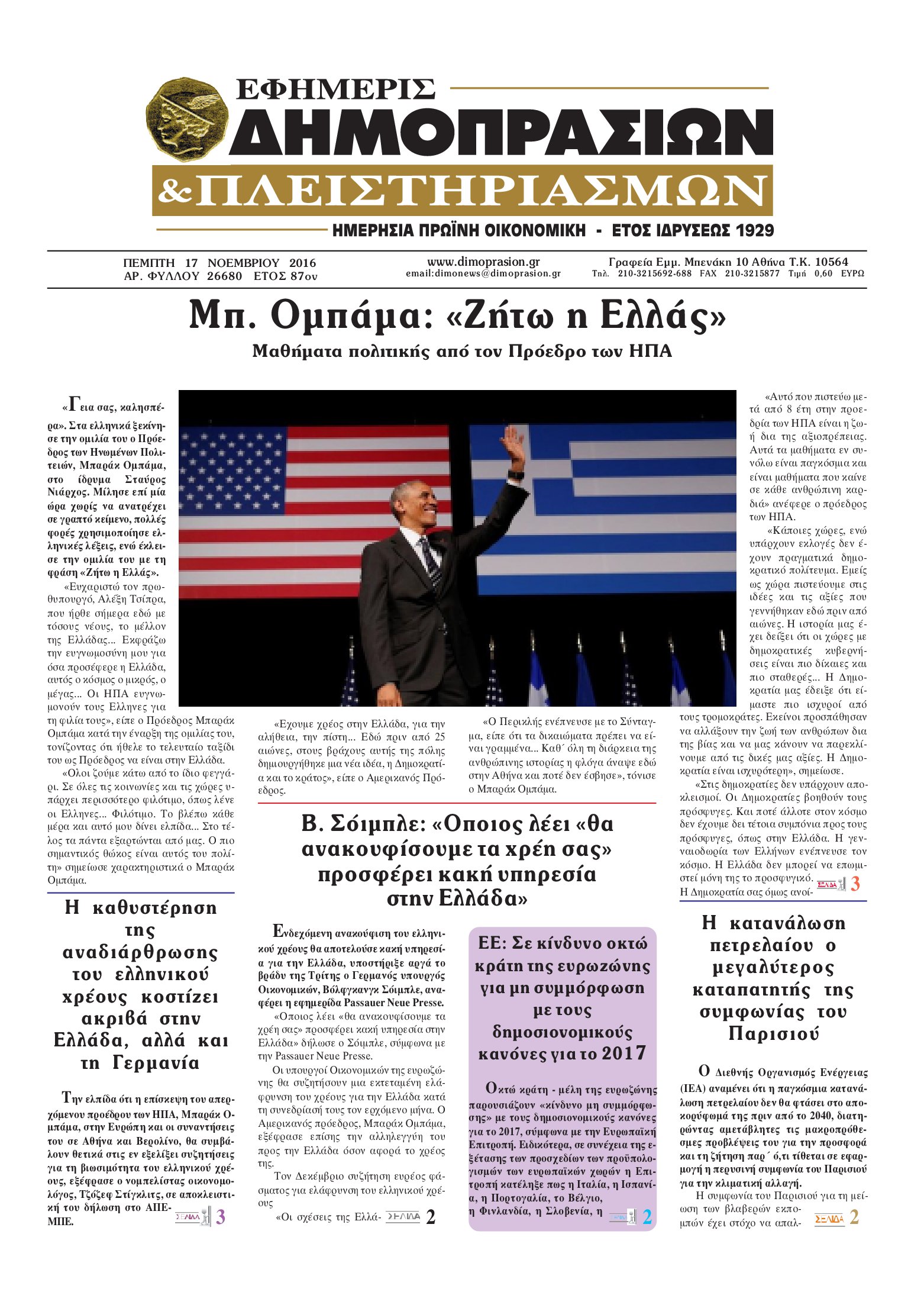 Οι οικονομικές εφημερίδες 17/11/2016 Enikos Newsroom 02:33, Πέμπτη 17 Νοεμβρίου 2016 Media Διαβάστε τα σημερινά πρωτοσέλιδα των οικονομικών εφημερίδων: ΟΙΚΟΝΟΜΙΚΕΣ ΕΦΗΜΕΡΙΔΕΣ ΠΡΩΤΟΣΕΛΙΔΑ Μοιράσου το: σχολίασε κι εσύ (0 σχόλια) Ακολουθήστε το enikos.gr στο Google News και μάθετε πρώτοι όλες τις ειδήσεις Δείτε όλες τις τελευταίες ειδήσεις από την Ελλάδα και τον Κόσμο στο enikos.gr Ειδήσεις Ροή Ειδήσεων 2 ώρες πριν ΣΥΡΙΖΑ: Διαγράφεται ο ευρωβουλευτής Νίκος Παππάς μετά την μήνυση δημοσιογράφου για ξυλοδαρμό 48 λεπτά πριν Τουρκία: Επιδιώκει την επιστροφή των S-400 στη Ρωσία – Οι αμερικανικές πιέσεις 59 λεπτά πριν ΟΠΕΚΕΠΕ: Ελεύθερες με όρους η σύζυγος και η αδελφή του φερόμενου αρχηγού – Τι υποστήριξαν 3 ώρες πριν Πώς στήθηκε η επιχείρηση «Ίπαλλος» που οδήγησε στη σύλληψη του «Έλληνα Εσκομπάρ» – «Ο πόλεμος ενάντια στους εμπόρους ναρκωτικών θα συνεχιστεί» 3 ώρες πριν Κυψέλη: Στη φυλακή η 16χρονη που μαχαίρωσε συμμαθήτριά της 3 ώρες πριν Τα 3 ζώδια που θα δουν τη ζωή τους να αλλάζει ριζικά το 2026 – «Όλα γίνονται καλύτερα σταδιακά» 8 ώρες πριν «Δεν είχα κλάψει από τότε που διαγνώστηκα με καρκίνο, ώσπου ένα τηλεφώνημα με έκανε να λυγίσω» – Η συγκλονιστική εξομολόγηση ενός άνδρα 4 ώρες πριν Ο σπάνιος σεισμός που έλυσε τα χέρια των επιστημόνων – Αποκάλυψε ακριβώς όσα αναζητούσαν 10 ώρες πριν 20 χρόνια τα Χριστούγεννα ξεκινούν στα Public με μεγάλη ποικιλία σε δώρα! 5 λεπτά πριν Οι άνθρωποι που θυμούνται τα όνειρά τους, συνήθως μοιράζονται αυτά τα 6 σπάνια χαρακτηριστικά 9 λεπτά πριν ΑΑΔΕ: Καταβλήθηκε η τέταρτη δόση επιστροφής ΕΦΚ αγροτικού πετρελαίου – Οδηγίες για τη διόρθωση παραστατικών 14 λεπτά πριν Μητσοτάκης: Το γούρι με τα αρχικά του για το 2026 που έδωσε στους βουλευτές της ΝΔ – ΦΩΤΟ 19 λεπτά πριν Καβάλα – Παναθηναϊκός 1-2: Ο Ταμπόρδα έστειλε τους Πράσινους απευθείας στα προημιτελικά του Κυπέλλου Ελλάδας 23 λεπτά πριν Δημήτρης Ήμελλος: Η συγκινητική ανάρτηση της αδελφής του, για τον ένα χρόνο από τον θάνατό του – «Πήγες στον Θεό για να μας θυμίσεις…» ENIKOS NETWORK 2,6 εκατομμύρια πολίτες έχουν ήδη εμβολιαστεί κατά της γρίπης Σοβαροί κίνδυνοι από τη λάθος χορήγηση φαρμάκου για τις αιμορραγίες-Συστάσεις προς τους γιατρούς Υπουργείο Εργασίας: Ο οδικός χάρτης για την ενίσχυση του πλαισίου των Συλλογικών Διαπραγματεύσεων – Οι 5 άξονες του σχεδίου... Έρχεται νέα ενίσχυση 17.500 ευρώ από τη ΔΥΠΑ για ανέργους- Όλες οι λεπτομέρειες Χαρτογραφώντας το «σημείο χωρίς επιστροφή»: Για πρώτη φορά αποκαλύπτεται με λεπτομέρεια το ακανθώδες όριο της ατμόσφαιρας τ... Η Google καταργεί τη λειτουργία «dark web report» – Πώς θα μπορούν οι χρήστες να διαγράφουν τα δεδομένα τους περισσότερα 12:35 , Τετάρτη 17 Δεκεμβρίου 2025 Μίρκα Παπακωνσταντίνου: «Δεν ήμουν αισιόδοξη για τα νούμερα – Είμαι ρεαλίστρια» Στα γυρίσματα του εορταστικού επεισοδίου της αγαπημένης σειράς “Το Σόι Σου”, βρέθηκε η κάμερα ... 12:12 , Τετάρτη 17 Δεκεμβρίου 2025 Ακούστε την εκπομπή του Νίκου Χατζηνικολάου 17/12/2025 Ακούστε την εκπομπή του Νίκου Χατζηνικολάου στον ραδιοφωνικό σταθμό RealFm 97,8, την Τετάρτη 1... 11:35 , Τετάρτη 17 Δεκεμβρίου 2025 Home Alone: Το σπίτι της ταινίας θα ανακαινιστεί – Επιστροφή στην αισθητική της δεκαετίας του ’90 Οι νέοι ιδιοκτήτες του πραγματικού σπιτιού που παρουσιάζεται στην κλασική ταινία του 1990 «Hom... 11:25 , Τετάρτη 17 Δεκεμβρίου 2025 Grand Hotel: Απόψε το τελευταίο επεισόδιο της χρονιάς – Όλα τα μυστικά μένουν εδώ Το τελευταίο επεισόδιο της χρονιάς της σειράς «Gran