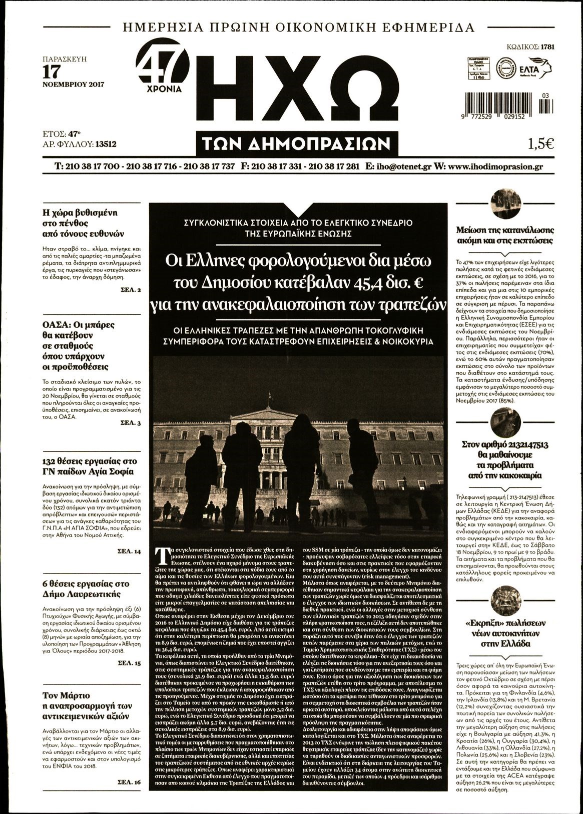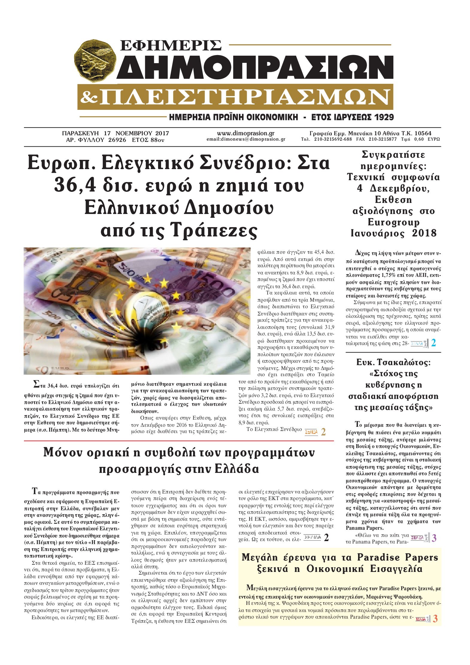 Οι οικονομικές εφημερίδες 17/11/2017 Enikos Newsroom 07:13, Παρασκευή 17 Νοεμβρίου 2017 Media Διαβάστε τα σημερινά πρωτοσέλιδα των οικονομικών εφημερίδων: ΟΙΚΟΝΟΜΙΚΕΣ ΕΦΗΜΕΡΙΔΕΣ ΠΡΩΤΟΣΕΛΙΔΑ Μοιράσου το: σχολίασε κι εσύ (0 σχόλια) Ακολουθήστε το enikos.gr στο Google News και μάθετε πρώτοι όλες τις ειδήσεις Δείτε όλες τις τελευταίες ειδήσεις από την Ελλάδα και τον Κόσμο στο enikos.gr Ειδήσεις Ροή Ειδήσεων 1 ώρα πριν Αγρότες: «Όχι στον διάλογο, μας εμπαίζει η κυβέρνηση» – Αποφάσισαν κλιμάκωση των κινητοποιήσεων, τι θα γίνει τα Χριστούγεννα 2 ώρες πριν Την πρώτη Belharra παρέλαβε η χώρα μας, υψώθηκε η ελληνική σημαία στη φρεγάτα «Κίμων» – Δένδιας: «Το ισχυρότερο Πολεμικό Ναυτικό που είχε ποτέ ο ελληνισμός» 4 ώρες πριν Γιώργος Μαζωνάκης: «Δεν ζήτησα χρήματα, παρά μόνο ηθική δικαίωση» – Οι πρώτες δηλώσεις του 21χρονου μετά την κατάθεση της μήνυσης 53 λεπτά πριν Μιχάλης Χουρδάκης: «Είμαι διαθέσιμος να συμβάλω στην προσωρινή κάλυψη του ιατρείου της Ψερίμου» – Η επιστολή στον Άδωνι Γεωργιάδη 1 ώρα πριν Εξώδικο Γεωργιάδη στην Κωνσταντοπούλου – «Με κατηγόρησε ότι έχω καταδικαστεί για παιδεραστία» 2 ώρες πριν Τα 5 ζώδια που θα ευνοηθούν στα οικονομικά τους το 2026 – «Τραβούν το χρήμα σαν μαγνήτες» 7 ώρες πριν Αν κάνετε συνεχώς αυτά τα 8 πράγματα με τα κατοικίδιά σας, σας λείπει η ανθρώπινη επαφή 3 ώρες πριν Αυτό που κρύβεται κάτω από τη Γροιλανδία θα μπορούσε να ανατρέψει όσα γνωρίζουμε για την άνοδο της στάθμης των θαλασσών 1 ημέρα πριν 20 χρόνια τα Χριστούγεννα ξεκινούν στα Public με μεγάλη ποικιλία σε δώρα! 2 λεπτά πριν Δίκη για υποκλοπές: Τη βίαιη προσαγωγή δύο μαρτύρων διέταξε το δικαστήριο – Τι κατέθεσε ο Τάσος Τέλλογλου 7 λεπτά πριν Σύνοδος Κορυφής: Οι Ευρωπαίοι συμφώνησαν να εξετάσουν την χρήση των ρωσικών περιουσιακών για την χρηματοδότηση της Ουκρανίας – Η δήλωση Ζελένσκι 12 λεπτά πριν Δένδιας: Έναρξη διαπραγματεύσεων για την ταχύτερη ανανέωση της Στρατηγικής Εταιρικής Σχέσης Ελλάδας – Γαλλίας 17 λεπτά πριν ROUK ZOUK: Εορταστικό επεισόδιο με καλεσμένους τους πρωταγωνιστές του «Γιατί ρε πατέρα» 22 λεπτά πριν Φιντάν: «Η Κυπριακή Δημοκρατία μας παρεμποδίζει όπου βρει την ευκαιρία» – Η πονηρή πρόταση που ανοίγει τον δρόμο για δύο κράτη ENIKOS NETWORK ΕΟΔΥ: Δωρεάν τεστ για HIV, Ηπατίτιδες, Σύφιλη, Χλαμύδια, Γονόρροια 100 χρόνια ΠΙΣ: Ένας αιώνας προσφοράς στην Ιατρική και την κοινωνία Χριστούγεννα και Πρωτοχρονιά: Δείτε πόσα χρήματα θα πάρουν ως αμοιβή όσοι εργαστούν Κρατική επιχορήγηση έως 14.500 ευρώ: Ποιοι θα λάβουν από σήμερα την προκαταβολή στον τραπεζικό λογαριασμό τους Χαρτογραφώντας το «σημείο χωρίς επιστροφή»: Για πρώτη φορά αποκαλύπτεται με λεπτομέρεια το ακανθώδες όριο της ατμόσφαιρας τ... Η Google καταργεί τη λειτουργία «dark web report» – Πώς θα μπορούν οι χρήστες να διαγράφουν τα δεδομένα τους περισσότερα 17:45 , Πέμπτη 18 Δεκεμβρίου 2025 ROUK ZOUK: Εορταστικό επεισόδιο με καλεσμένους τους πρωταγωνιστές του «Γιατί ρε πατέρα» Το Σάββατο 20 Δεκεμβρίου στις 21:00, η Ζέτα Μακρυπούλια υποδέχεται εκλεκτούς ηθοποιούς που όλο... 17:20 , Πέμπτη 18 Δεκεμβρίου 2025 Άγιος έρωτας: Η Χριστίνα εξομολογείται στον πατέρα Νικόλαο, απόψε στις 21:00 στον Alpha Η Νότα αποφασίζει να εκδικηθεί τον Πέτρο και τον Στέφανο, για χάρη του Λούη, όμως τα πράγματα ... 16:50 , Πέμπτη 18 Δεκεμβρίου 2025 Να μ’ αγαπάς: Ζωή και Φωτεινή συμφιλιώνονται ως μάνα με κόρη, απόψε στις 20:00 Η ταυτότητα του Άγγελου αποκαλύπτεται στο νέο επεισόδιο της σειράς “Να μ’ αγαπάς... 