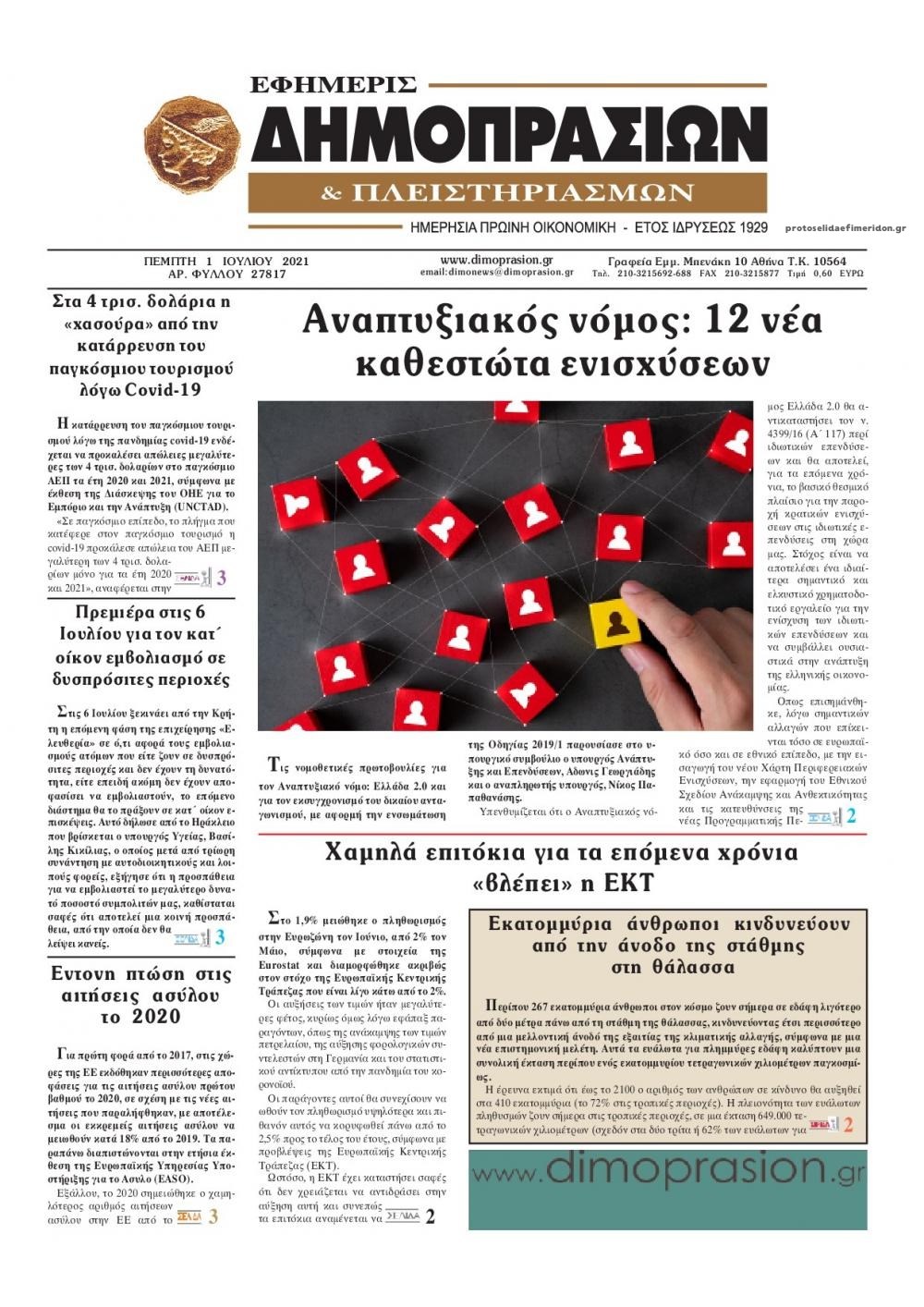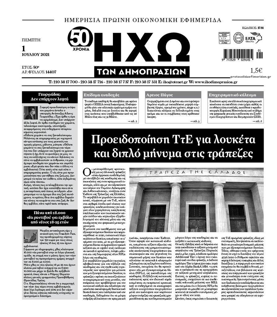 Οι οικονομικές εφημερίδες 1/7/2021 Διονύσης Νίκκας 06:40, Πέμπτη 01 Ιουλίου 2021 Media Διαβάστε τα πρωτοσέλιδα των οικονομικών εφημερίδων… ΟΙΚΟΝΟΜΙΚΕΣ ΕΦΗΜΕΡΙΔΕΣ Μοιράσου το: σχολίασε κι εσύ (0 σχόλια) Ακολουθήστε το enikos.gr στο Google News και μάθετε πρώτοι όλες τις ειδήσεις Δείτε όλες τις τελευταίες ειδήσεις από την Ελλάδα και τον Κόσμο στο enikos.gr Ειδήσεις Ροή Ειδήσεων 4 ώρες πριν Αυξάνουν την πίεση προς την κυβέρνηση οι αγρότες: Κλείνουν παρακαμπτήριους και ανοίγουν διόδια – Τι θα γίνει τις γιορτές 3 ώρες πριν ΟΠΕΚΕΠΕ: Προφυλακιστέος ο φερόμενος αρχηγός και ο λογιστής της εγκληματικής οργάνωσης 4 ώρες πριν Φοινικούντα: Το Σάββατο απολογείται ο 30χρονος γιος γνωστού επιχειρηματία της Πλάκας που παραδόθηκε – Όσα είπε στους αστυνομικούς και ο ρόλος του στο έγκλημα 3 ώρες πριν Μπορεί ο Μαδούρο να αντέξει τον αποκλεισμό του Τραμπ; Τι θα χρειαστεί η Ουάσινγκτον για να τον ανατρέψει 2 ώρες πριν ΑΕΚ – Κραϊόβα 3-2: Επική ανατροπή και πρόκριση στους «16» του Conference League η Ένωση 3 ώρες πριν Αρχαιολόγοι ανακάλυψαν ρωμαϊκά τεχνουργήματα από μια πόλη που δεν υπήρξε ποτέ – Τα τρία εντυπωσιακά κτίρια και ο αμφορέας με τις… σαρδέλες 4 ώρες πριν Ύπνος: Η απλή βραδινή ρουτίνα για να προστατεύσετε τα μαλλιά σας από το κρύο κατά τη διάρκεια του χειμώνα 5 ώρες πριν Manifesting: Πώς να συναντήσετε τον σύντροφο της ζωής σας, ανάλογα με τον μήνα γέννησής σας 2 ημέρες πριν 20 χρόνια τα Χριστούγεννα ξεκινούν στα Public με μεγάλη ποικιλία σε δώρα! 4 λεπτά πριν Πόλεμος στην Ουκρανία: Ρωσικά drones έπληξαν την Οδησσό – Μία νεκρή και ζημιές σε ενεργειακές υποδομές 11 λεπτά πριν ΑΕΚ-Κραϊόβα: Τα highlights της μυθικής ανατροπής της «Ένωσης» 26 λεπτά πριν Μιχάλης Χρυσοχοΐδης από την Κωνσταντινούπολη: Κοινές επιχειρήσεις Ελλάδας – Τουρκίας ενάντια στο οργανωμένο έγκλημα 49 λεπτά πριν Μάρκο Νίκολιτς: «Είμαι περήφανος για τους παίκτες μου, όποιος αντίπαλος και να έρθει θα προετοιμαστούμε» 58 λεπτά πριν ΟΗΕ: Την εκλογή του νέου ύπατου αρμοστή για τους Πρόσφυγες Μπαρχάμ Άχμεντ Σαλίχ χαιρέτησε ο Αντόνιο Γκουτέρες ENIKOS NETWORK Σε περίοδο αυξημένης δραστηριότητας η γρίπη στην Ελλάδα-Μέτρα προστασίας από τον ΕΟΔΥ Σκέφτεστε συνέχεια συζητήσεις που έχετε κάνει; Τι σημαίνει αυτό, σύμφωνα με ειδικό Στεγαστικό: Τι λέει η ΠΟΜΙΔΑ για τα νέα μέτρα που ανακοίνωσε ο Κυριάκος Μητσοτάκης Λαγκάρντ: Αισιόδοξη για την ανάπτυξη της Ευρωζώνης, αβέβαιη για τον πληθωρισμό Χαρτογραφώντας το «σημείο χωρίς επιστροφή»: Για πρώτη φορά αποκαλύπτεται με λεπτομέρεια το ακανθώδες όριο της ατμόσφαιρας τ... Η Google καταργεί τη λειτουργία «dark web report» – Πώς θα μπορούν οι χρήστες να διαγράφουν τα δεδομένα τους περισσότερα 17:45 , Πέμπτη 18 Δεκεμβρίου 2025 ROUK ZOUK: Εορταστικό επεισόδιο με καλεσμένους τους πρωταγωνιστές του «Γιατί ρε πατέρα» Το Σάββατο 20 Δεκεμβρίου στις 21:00, η Ζέτα Μακρυπούλια υποδέχεται εκλεκτούς ηθοποιούς που όλο... 17:20 , Πέμπτη 18 Δεκεμβρίου 2025 Άγιος έρωτας: Η Χριστίνα εξομολογείται στον πατέρα Νικόλαο, απόψε στις 21:00 στον Alpha Η Νότα αποφασίζει να εκδικηθεί τον Πέτρο και τον Στέφανο, για χάρη του Λούη, όμως τα πράγματα ... 16:50 , Πέμπτη 18 Δεκεμβρίου 2025 Να μ’ αγαπάς: Ζωή και Φωτεινή συμφιλιώνονται ως μάνα με κόρη, απόψε στις 20:00 Η ταυτότητα του Άγγελου αποκαλύπτεται στο νέο επεισόδιο της σειράς “Να μ’ αγαπάς... 15:52 , Πέμπτη 18 Δεκεμβρίου 2025 Το Σπίτι Δίπλα Στο Ποτάμι: Το καθηλωτικό τελευταίο επεισόδιο για το 2025 απόψε στις 22:30 Καθηλώνει το σημερινό επεισόδιο 