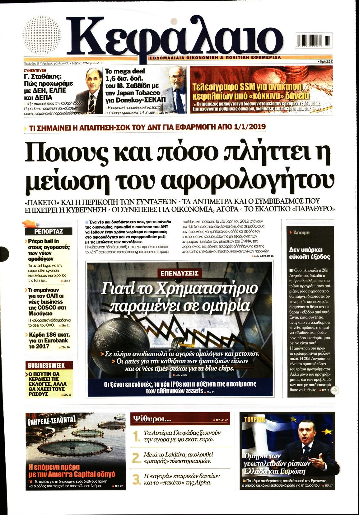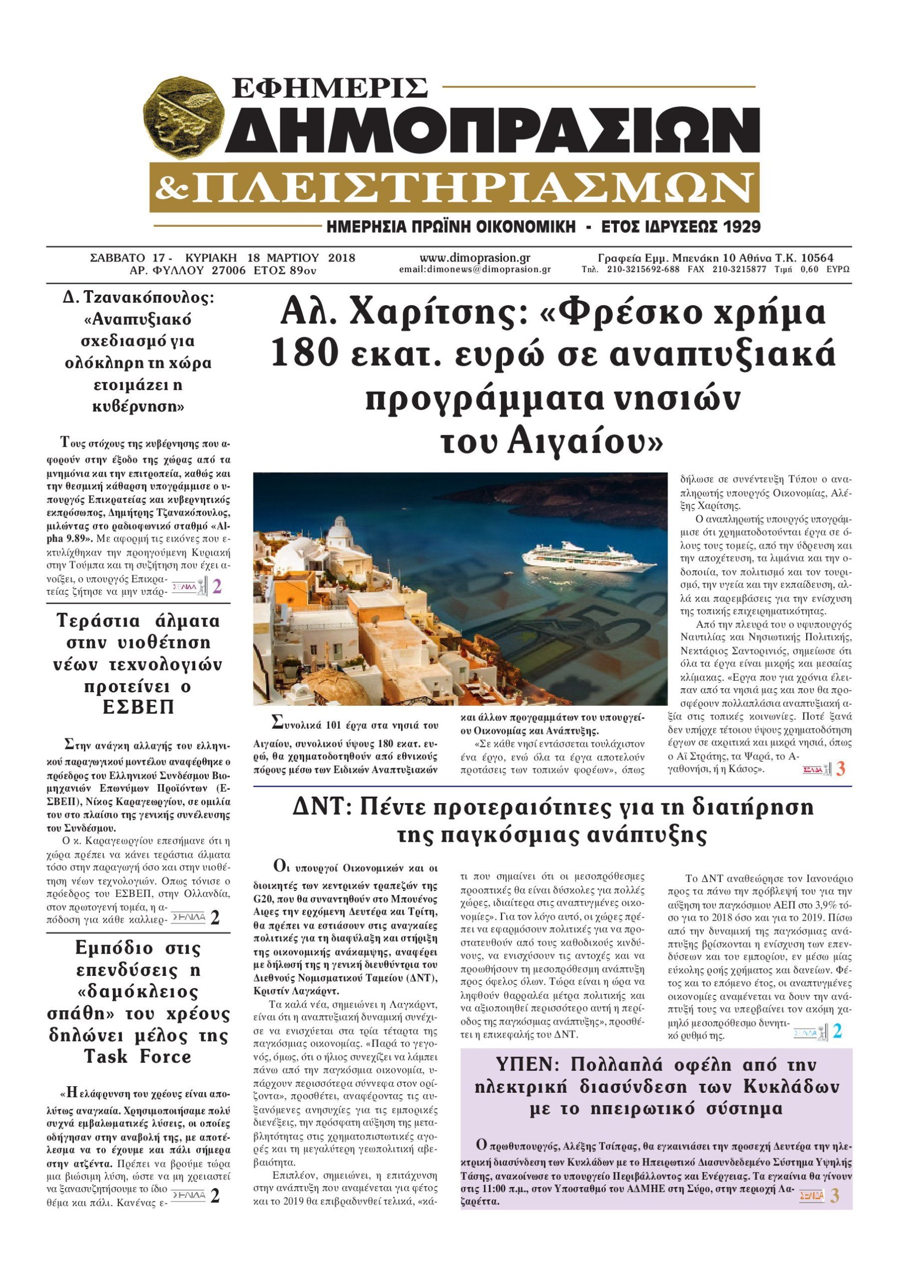 Οι οικονομικές εφημερίδες 17/3/2018 Enikos Newsroom 07:20, Σάββατο 17 Μαρτίου 2018 Media Διαβάστε τα σημερινά πρωτοσέλιδα των οικονομικών εφημερίδων: ΟΙΚΟΝΟΜΙΚΕΣ ΕΦΗΜΕΡΙΔΕΣ ΠΡΩΤΟΣΕΛΙΔΑ Μοιράσου το: σχολίασε κι εσύ (0 σχόλια) Ακολουθήστε το enikos.gr στο Google News και μάθετε πρώτοι όλες τις ειδήσεις Δείτε όλες τις τελευταίες ειδήσεις από την Ελλάδα και τον Κόσμο στο enikos.gr Ειδήσεις Ροή Ειδήσεων 43 λεπτά πριν Ευρωπαϊκή Ένωση: Χωρίς συμφωνία, για την μακροπρόθεσμη χρηματοδότηση της Ουκρανίας, ολοκληρώθηκε η Σύνοδος Κορυφής στις Βρυξέλλες 4 ώρες πριν ΟΠΕΚΕΠΕ: Προφυλακιστέος ο φερόμενος αρχηγός και ο λογιστής της εγκληματικής οργάνωσης 5 ώρες πριν Αυξάνουν την πίεση προς την κυβέρνηση οι αγρότες: Κλείνουν παρακαμπτήριους και ανοίγουν διόδια – Τι θα γίνει τις γιορτές 5 ώρες πριν Φοινικούντα: Το Σάββατο απολογείται ο 30χρονος γιος γνωστού επιχειρηματία της Πλάκας που παραδόθηκε – Όσα είπε στους αστυνομικούς και ο ρόλος του στο έγκλημα 4 ώρες πριν ΑΕΚ – Κραϊόβα 3-2: Επική ανατροπή και πρόκριση στους «16» του Conference League η Ένωση 5 ώρες πριν Αρχαιολόγοι ανακάλυψαν ρωμαϊκά τεχνουργήματα από μια πόλη που δεν υπήρξε ποτέ – Τα τρία εντυπωσιακά κτίρια και ο αμφορέας με τις… σαρδέλες 6 ώρες πριν Ύπνος: Η απλή βραδινή ρουτίνα για να προστατεύσετε τα μαλλιά σας από το κρύο κατά τη διάρκεια του χειμώνα 7 ώρες πριν Manifesting: Πώς να συναντήσετε τον σύντροφο της ζωής σας, ανάλογα με τον μήνα γέννησής σας 2 ημέρες πριν 20 χρόνια τα Χριστούγεννα ξεκινούν στα Public με μεγάλη ποικιλία σε δώρα! 3 λεπτά πριν Σίσσυ Τουμάση: «Είμαι ασθενοφοβική πάρα πολύ και με πιάνει μια παράνοια μ’ αυτό» 27 λεπτά πριν Ντόναλντ Τραμπ: Δεν χρειάζομαι την έγκριση του Κογκρέσου για να διατάξω στρατιωτικά πλήγματα στη Βενεζουέλα 43 λεπτά πριν Ευρωπαϊκή Ένωση: Χωρίς συμφωνία, για την μακροπρόθεσμη χρηματοδότηση της Ουκρανίας, ολοκληρώθηκε η Σύνοδος Κορυφής στις Βρυξέλλες 58 λεπτά πριν GNTM: «Κλείδωσαν» οι τέσσερις φιναλίστ – Μεγάλη ανατροπή στις τελευταίες αποχωρήσεις 1 ώρα πριν Γιώργος Μαζωνάκης: Αποθεώθηκε στην πρεμιέρα του στην «Ακτή Πειραιώς» λίγες ώρες μετά τις καταγγελίες – «Είμαι αληθινός», είπε με νόημα ENIKOS NETWORK Σε περίοδο αυξημένης δραστηριότητας η γρίπη στην Ελλάδα-Μέτρα προστασίας από τον ΕΟΔΥ Σκέφτεστε συνέχεια συζητήσεις που έχετε κάνει; Τι σημαίνει αυτό, σύμφωνα με ειδικό Στεγαστικό: Τι λέει η ΠΟΜΙΔΑ για τα νέα μέτρα που ανακοίνωσε ο Κυριάκος Μητσοτάκης Λαγκάρντ: Αισιόδοξη για την ανάπτυξη της Ευρωζώνης, αβέβαιη για τον πληθωρισμό Χαρτογραφώντας το «σημείο χωρίς επιστροφή»: Για πρώτη φορά αποκαλύπτεται με λεπτομέρεια το ακανθώδες όριο της ατμόσφαιρας τ... Η Google καταργεί τη λειτουργία «dark web report» – Πώς θα μπορούν οι χρήστες να διαγράφουν τα δεδομένα τους περισσότερα 02:50 , Παρασκευή 19 Δεκεμβρίου 2025 GNTM: «Κλείδωσαν» οι τέσσερις φιναλίστ – Μεγάλη ανατροπή στις τελευταίες αποχωρήσεις Για προτελευταία φορά εμφανίστηκαν στο πλατό του GNTM οι φιναλίστ του φετινού κύκλου, το βράδυ... 17:45 , Πέμπτη 18 Δεκεμβρίου 2025 ROUK ZOUK: Εορταστικό επεισόδιο με καλεσμένους τους πρωταγωνιστές του «Γιατί ρε πατέρα» Το Σάββατο 20 Δεκεμβρίου στις 21:00, η Ζέτα Μακρυπούλια υποδέχεται εκλεκτούς ηθοποιούς που όλο... 17:20 , Πέμπτη 18 Δεκεμβρίου 2025 Άγιος έρωτας: Η Χριστίνα εξομολογείται στον πατέρα Νικόλαο, απόψε στις 21:00 στον Alpha Η Νότα αποφασίζει να εκδικηθεί τον Πέτρο και τον Στέφανο, για χάρη του Λούη, όμως τα πράγματα ... 16:50 , Πέμπτη 18 Δεκεμβρίου 2025 Να 