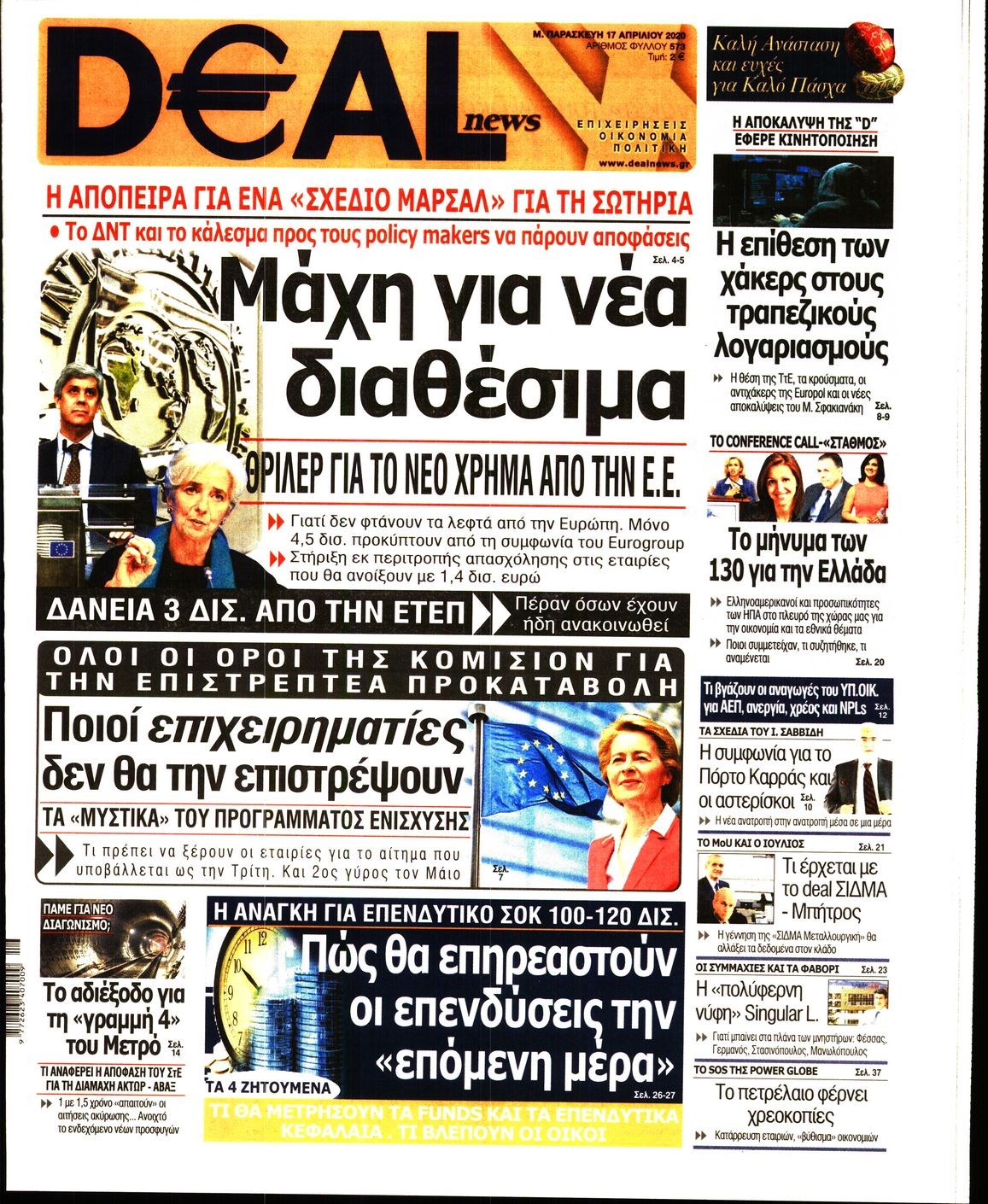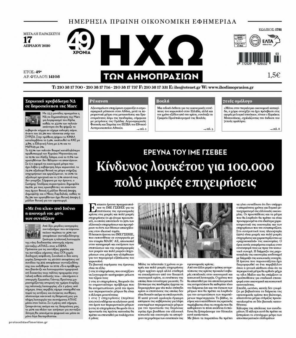 Οι οικονομικές εφημερίδες 17/4/2020 Διονύσης Νίκκας 06:43, Παρασκευή 17 Απριλίου 2020 Media Διαβάστε τα πρωτοσέλιδα των οικονομικών εφημερίδων… ΟΙΚΟΝΟΜΙΚΕΣ ΕΦΗΜΕΡΙΔΕΣ ΠΡΩΤΟΣΕΛΙΔΑ Μοιράσου το: σχολίασε κι εσύ (0 σχόλια) Ακολουθήστε το enikos.gr στο Google News και μάθετε πρώτοι όλες τις ειδήσεις Δείτε όλες τις τελευταίες ειδήσεις από την Ελλάδα και τον Κόσμο στο enikos.gr Ειδήσεις Ροή Ειδήσεων 4 ώρες πριν Χριστούγεννα στα μπλόκα: Επιμένουν στις κινητοποιήσεις τους οι αγρότες – Ανοίγουν τα διόδια το Σαββατοκύριακο 5 ώρες πριν Ουκρανία: Η άνευ προηγουμένου επίθεση σε ρωσικό τάνκερ στη Μεσόγειο και το μήνυμα προς στον Πούτιν – Το «μακρύ χέρι» του Κιέβου 4 ώρες πριν Πούτιν: Τα μηνύματα σε Ευρώπη και ΝΑΤΟ από το μαραθώνιο «σόου» του – Η απαίτηση για «σεβασμό» και η ειρήνη «με τους όρους» της Μόσχας 5 ώρες πριν Τραμπ: Δεν αποκλείει την πιθανότητα ενός πολέμου στη Βενεζουέλα – «Ο Μαδούρο ξέρει καλύτερα από τον καθένα τι ακριβώς θέλω» 5 ώρες πριν Συνεχίζει να προκαλεί ο Μίτσκοσκι: «Για μένα το όνομα Μακεδονία είναι ιερό» 4 ώρες πριν Ανακαλύφθηκαν αρχαία χρυσά νομίσματα 2.200 ετών που απεικονίζουν τον θεό Απόλλωνα – Η άγνωστη σύνδεση με τον Φίλιππο Β΄ της Μακεδονίας 5 ώρες πριν Ύπνος: Μια κρυφή κατάσταση του εγκεφάλου πριν από τον ύπνο μπορεί να είναι το “κλειδί” για υψηλή ευφυΐα και δημιουργικότητα 6 ώρες πριν Αριθμολογία: Οι άνθρωποι που έχουν γεννηθεί αυτές τις 4 ημερομηνίες, συχνά παρεξηγούνται – «Η καλοσύνη τους κρύβει τεράστια δύναμη» 7 ώρες πριν Ξεχάστε το καθάρισμα το Σαββατοκύριακο: Ο «κανόνας των 20 λεπτών» που θα σας λύσει τα χέρια 21 λεπτά πριν Θεσσαλονίκη: Εξαφανίστηκε 13χρονος από χώρο φιλοξενίας ασυνόδευτων ανηλίκων στο Ωραιόκαστρο 31 λεπτά πριν Ντόναλντ Τραμπ: «Πολύ βαριά αντίποινα» στη Συρία – «Πλήττουμε πολύ δυνατά οχυρά του Ισλαμικού Κράτους» 46 λεπτά πριν Εξάρχεια: Ένταση με μολότοφ, χημικά και κρότου λάμψης 1 ώρα πριν ΗΠΑ: Τραγωδία στην Αλαμπάμα – Σκότωσε την δημοσιογράφο σύζυγό του και αυτοκτόνησε μπροστά στον 3χρονο γιο τους 1 ώρα πριν Πρόταση γάμου στο ΣΕΦ κατά την διάρκεια του αγώνα Ολυμπιακός-Βιλερμπάν – Δείτε βίντεο ENIKOS NETWORK Το ΕΚΑΒ τιμήθηκε από την Ακαδημία Αθηνών για τα 40 χρόνια προσφοράς του Έχετε πραγματικά μεγάλη καρδιά; 10 χαρακτηριστικά όσων έχουν καλοσύνη Αναστολή μέτρων αναγκαστικής εκτέλεσης για κτηνοτρόφους που πλήττονται από την ευλογιά των αιγοπροβάτων Πλήρης επάρκεια προϊόντων στις λαϊκές της Αττικής, παρά τις αγροτικές κινητοποιήσεις – Τι απαντούν οι πωλητές Χαρτογραφώντας το «σημείο χωρίς επιστροφή»: Για πρώτη φορά αποκαλύπτεται με λεπτομέρεια το ακανθώδες όριο της ατμόσφαιρας τ... Η Google καταργεί τη λειτουργία «dark web report» – Πώς θα μπορούν οι χρήστες να διαγράφουν τα δεδομένα τους περισσότερα 22:42 , Παρασκευή 19 Δεκεμβρίου 2025 Γιώργος Γιαννόπουλος για “Το σόι σου”: “Είναι ευτυχία και ευλογία αυτή η σειρά” «Είναι ευτυχία και ευλογία η συγκυρία αυτής της σειράς», θα πει ο Γιώργος Γιαννόπουλος -ο αγαπ... 20:37 , Παρασκευή 19 Δεκεμβρίου 2025 Don’t Forget The Lyrics: Η Έλλη Κοκκίνου υποδέχεται 4 παίκτες που θα κάνουν τα πάντα για να μη χάσουν ούτε… μισή λέξη από τους στίχους Το «Don’t Forget The Lyrics» επιστρέφει απόψε, Παρασκευή 19 Δεκεμβρίου, στις 21:00 με νέο επει... 19:31 , Παρασκευή 19 Δεκεμβρίου 2025 GNTM: Απόψε ο μεγάλος τελικός για τους 4 φιναλίστ Έπειτα από μήνες γεμάτους μόδα, δημιουργία και έντονες αναμετρήσεις, το GNTM 2025 κορυφώνεται,... 18:11 , Παρασκευή 19 Δεκεμβρίου