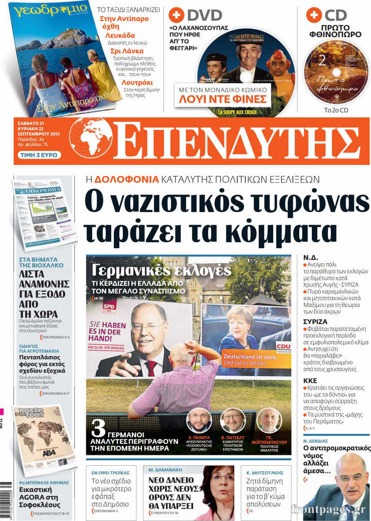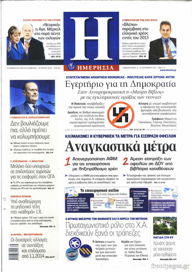 Οι οικονομικές εφημερίδες Enikos Newsroom 09:26, Σάββατο 21 Σεπτεμβρίου 2013 Media Οι oικονομικές εφημερίδες Διαβάστε τα πρωτοσέλιδα των οικονομικών εφημερίδων: ΕΦΗΜΕΡΙΔΕΣ ΟΙΚΟΝΟΜΙΚΕΣ ΕΦΗΜΕΡΙΔΕΣ ΠΡΩΤΟΣΕΛΙΔΑ Μοιράσου το: σχολίασε κι εσύ (0 σχόλια) Ακολουθήστε το enikos.gr στο Google News και μάθετε πρώτοι όλες τις ειδήσεις Δείτε όλες τις τελευταίες ειδήσεις από την Ελλάδα και τον Κόσμο στο enikos.gr Ειδήσεις Ροή Ειδήσεων 24 λεπτά πριν Δολοφονία στη Νέα Πέραμο: Με 10 σφαίρες πισώπλατα εκτέλεσαν τον 27χρονο – Τον κράτησαν 6 μέρες όμηρο; 6 ώρες πριν Κυριάκος Μητσοτάκης: Πρόθεσή μας είναι μία γενναία, μία τολμηρή Συνταγματική Αναθεώρηση – Είναι καιρός για μεγάλες τομές 59 λεπτά πριν Κτηνοτρόφοι σε απόγνωση: Διαμαρτυρίες ότι δεν εφαρμόζεται στην πράξη η αναστολή πληρωμής φόρων και εισφορών παρά τη θανάτωση των ζώων τους 2 ώρες πριν Καραμανλής από Καλαμάτα: Να ακούμε τους πιο έμπειρους, αντί να τους διαγράφουμε κυριολεκτικά ή μεταφορικά 4 ώρες πριν Μαρινάκης για Αλεξοπούλου: «Απευθυνόταν στην αντιπολίτευση, όχι στους πολίτες» – Αντιδράσεις για «το τζάμπα πέθανε» 1 ώρα πριν Τα 3 ζώδια που θα έχουν την τύχη με το μέρος τους έως τις 8 Φεβρουαρίου – «Αρπάξτε τις ευκαιρίες για το επόμενο βήμα στη ζωή σας» 6 ώρες πριν Γυναίκα αποκαλύπτει πώς έχασε 10 κιλά χωρίς στερήσεις – Το «σύστημα ανταμοιβής» που έκανε πιο εύκολη την απώλεια βάρους 5 ώρες πριν Γιατί βάζεις πολλά ξυπνητήρια για να σηκωθείς; Τα 8 χαρακτηριστικά που διαθέτουν οι άνθρωποι που δίνουν «μάχη» στο κρεβάτι 2 ώρες πριν Ο φλοιός της Γης αψηφά τους κανόνες και οι επιστήμονες μόλις ανακάλυψαν τον λόγο 8 λεπτά πριν Ιράκ: Δικαστικές έρευνες για πάνω από 1.300 κρατούμενους, μέλη του Ισλαμικού Κράτους 14 λεπτά πριν ΚΚΕ για συνταγματική αναθεώρηση: Θα καταθέσουμε τις δικές μας προτάσεις με κριτήριο την στήριξη των εργατικών λαϊκών δικαιωμάτων 19 λεπτά πριν Στο νοσοκομείο ο Κώστας Σόμμερ – «Προσέξτε την υγεία σας» 24 λεπτά πριν Δολοφονία στη Νέα Πέραμο: Με 10 σφαίρες πισώπλατα εκτέλεσαν τον 27χρονο – Τον κράτησαν 6 μέρες όμηρο; 29 λεπτά πριν Συνάντηση Τσιάρα με εκπροσώπους των αγροτικών μπλόκων της Καρδίτσας – Στόχος έως το καλοκαίρι να έχουν κλείσει βασικά ζητήματα ENIKOS NETWORK 5,2 εκατομμύρια Έλληνες έχουν κάνει προληπτικές εξετάσεις – Νέο πρόγραμμα «Προλαμβάνω» για τη νεφρική υγεία Ξαναπαίρνουμε το βάρος μετά τη διαλειμματική νηστεία; Τι αποκαλύπτει ειδικός του Harvard ΑΑΔΕ – Προσοχή απάτη: Μην ανοίξετε αυτά τα sms – Τι γράφουν τα παραπλανητικά μηνύματα Λογαριασμοί ρεύματος Φεβρουαρίου 2026: Ανακοινώθηκαν τα πράσινα τιμολόγια – Δείτε αναλυτικά τις χρεώσεις ανά πάροχο Ευπάθεια στο moltbook ai αποκαλύπτει email, tokens σύνδεσης και api keys Αυτός είναι ο ρόλος της μικρής τρύπας στους νυχοκόπτες – «Είμαι ο μόνος που δεν το ήξερε;»» περισσότερα 16:30 , Δευτέρα 02 Φεβρουαρίου 2026 Οδύσσεια: Αναφορές ότι η Λουπίτα Νιόγκο θα υποδυθεί την «Ωραία Ελένη» – Έξαλλος ο Μασκ με τον Νόλαν Την έντονη αντίδραση του Έλον Μασκ προκάλεσαν δημοσιεύματα που κυκλοφορούν τις τελευταίες ώρες... 10:54 , Δευτέρα 02 Φεβρουαρίου 2026 Ακούστε το σχόλιο του Νίκου Χατζηνικολάου 2/2/2026 Ακούστε το σχόλιο του Νίκου Χατζηνικολάου στον ραδιοφωνικό σταθμό Realfm 97,8, τη Δευτέρα 2 Φε... 09:02 , Δευτέρα 02 Φεβρουαρίου 2026 Τα πάνω-κάτω στην ΕΡΤ λόγω Μουντιάλ Αλλαγή δεδομένων φέρνει το Παγκόσμιο Κύπελλο ποδοσφαίρου λόγω υψηλού κόστους. Το «Καλά θα πάει... 08:18 , Δευτέρα 02 Φεβρουαρίου 2026 Grammy 2026: Οι καλλιτέχνες στράφηκα