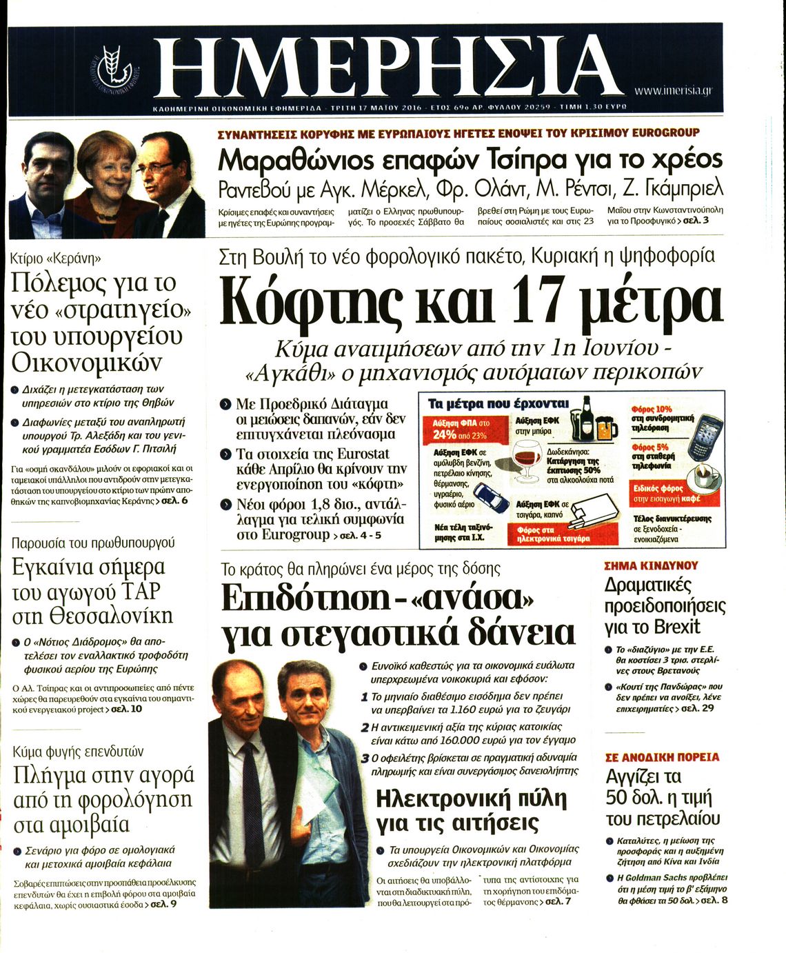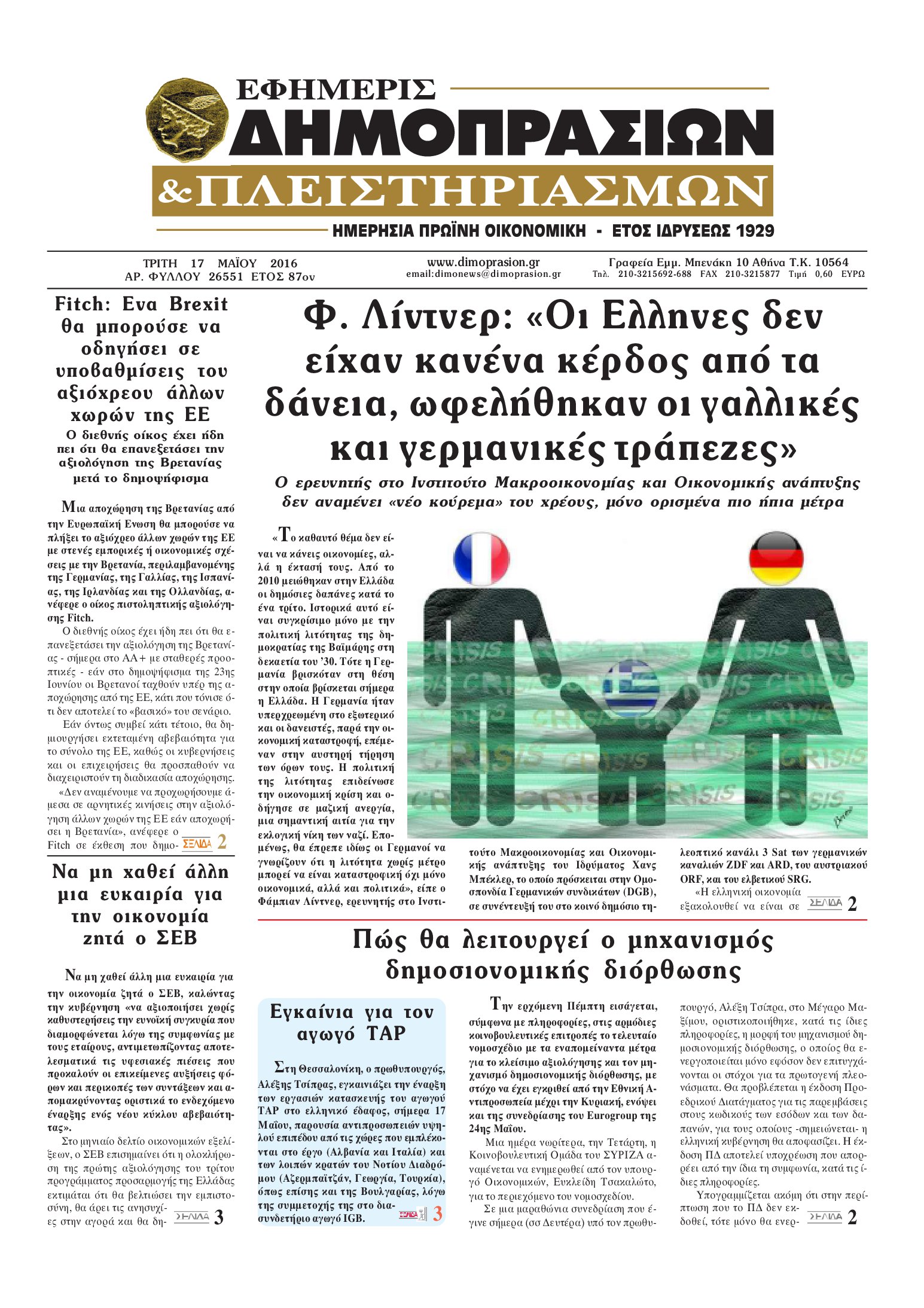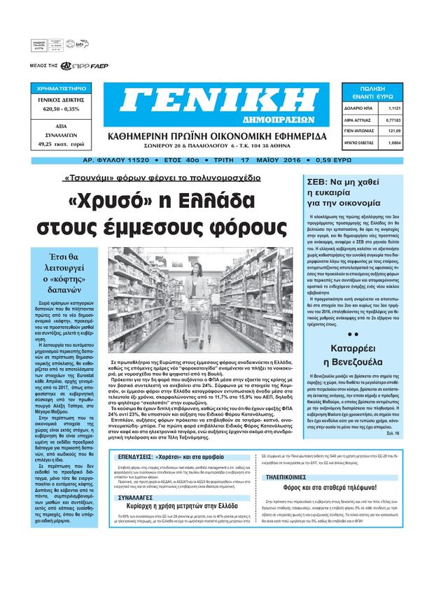 Oι οικονομικές εφημερίδες 17/5/2016 Enikos Newsroom 05:18, Τρίτη 17 Μαΐου 2016 Media Διαβάστε τα σημερινά πρωτοσέλιδα των οικονομικών εφημερίδων: ΟΙΚΟΝΟΜΙΚΕΣ ΕΦΗΜΕΡΙΔΕΣ ΠΡΩΤΟΣΕΛΙΔΑ Μοιράσου το: σχολίασε κι εσύ (0 σχόλια) Ακολουθήστε το enikos.gr στο Google News και μάθετε πρώτοι όλες τις ειδήσεις Δείτε όλες τις τελευταίες ειδήσεις από την Ελλάδα και τον Κόσμο στο enikos.gr Ειδήσεις Ροή Ειδήσεων 4 ώρες πριν Αυξάνουν την πίεση προς την κυβέρνηση οι αγρότες: Κλείνουν παρακαμπτήριους και ανοίγουν διόδια – Τι θα γίνει τις γιορτές 3 ώρες πριν ΟΠΕΚΕΠΕ: Προφυλακιστέος ο φερόμενος αρχηγός και ο λογιστής της εγκληματικής οργάνωσης 4 ώρες πριν Φοινικούντα: Το Σάββατο απολογείται ο 30χρονος γιος γνωστού επιχειρηματία της Πλάκας που παραδόθηκε – Όσα είπε στους αστυνομικούς και ο ρόλος του στο έγκλημα 3 ώρες πριν Μπορεί ο Μαδούρο να αντέξει τον αποκλεισμό του Τραμπ; Τι θα χρειαστεί η Ουάσινγκτον για να τον ανατρέψει 2 ώρες πριν ΑΕΚ – Κραϊόβα 3-2: Επική ανατροπή και πρόκριση στους «16» του Conference League η Ένωση 3 ώρες πριν Αρχαιολόγοι ανακάλυψαν ρωμαϊκά τεχνουργήματα από μια πόλη που δεν υπήρξε ποτέ – Τα τρία εντυπωσιακά κτίρια και ο αμφορέας με τις… σαρδέλες 4 ώρες πριν Ύπνος: Η απλή βραδινή ρουτίνα για να προστατεύσετε τα μαλλιά σας από το κρύο κατά τη διάρκεια του χειμώνα 5 ώρες πριν Manifesting: Πώς να συναντήσετε τον σύντροφο της ζωής σας, ανάλογα με τον μήνα γέννησής σας 2 ημέρες πριν 20 χρόνια τα Χριστούγεννα ξεκινούν στα Public με μεγάλη ποικιλία σε δώρα! 7 λεπτά πριν Πόλεμος στην Ουκρανία: Ρωσικά drones έπληξαν την Οδησσό – Μία νεκρή και ζημιές σε ενεργειακές υποδομές 14 λεπτά πριν ΑΕΚ-Κραϊόβα: Τα highlights της μυθικής ανατροπής της «Ένωσης» 29 λεπτά πριν Μιχάλης Χρυσοχοΐδης από την Κωνσταντινούπολη: Κοινές επιχειρήσεις Ελλάδας – Τουρκίας ενάντια στο οργανωμένο έγκλημα 52 λεπτά πριν Μάρκο Νίκολιτς: «Είμαι περήφανος για τους παίκτες μου, όποιος αντίπαλος και να έρθει θα προετοιμαστούμε» 1 ώρα πριν ΟΗΕ: Την εκλογή του νέου ύπατου αρμοστή για τους Πρόσφυγες Μπαρχάμ Άχμεντ Σαλίχ χαιρέτησε ο Αντόνιο Γκουτέρες ENIKOS NETWORK Σε περίοδο αυξημένης δραστηριότητας η γρίπη στην Ελλάδα-Μέτρα προστασίας από τον ΕΟΔΥ Σκέφτεστε συνέχεια συζητήσεις που έχετε κάνει; Τι σημαίνει αυτό, σύμφωνα με ειδικό Στεγαστικό: Τι λέει η ΠΟΜΙΔΑ για τα νέα μέτρα που ανακοίνωσε ο Κυριάκος Μητσοτάκης Λαγκάρντ: Αισιόδοξη για την ανάπτυξη της Ευρωζώνης, αβέβαιη για τον πληθωρισμό Χαρτογραφώντας το «σημείο χωρίς επιστροφή»: Για πρώτη φορά αποκαλύπτεται με λεπτομέρεια το ακανθώδες όριο της ατμόσφαιρας τ... Η Google καταργεί τη λειτουργία «dark web report» – Πώς θα μπορούν οι χρήστες να διαγράφουν τα δεδομένα τους περισσότερα 17:45 , Πέμπτη 18 Δεκεμβρίου 2025 ROUK ZOUK: Εορταστικό επεισόδιο με καλεσμένους τους πρωταγωνιστές του «Γιατί ρε πατέρα» Το Σάββατο 20 Δεκεμβρίου στις 21:00, η Ζέτα Μακρυπούλια υποδέχεται εκλεκτούς ηθοποιούς που όλο... 17:20 , Πέμπτη 18 Δεκεμβρίου 2025 Άγιος έρωτας: Η Χριστίνα εξομολογείται στον πατέρα Νικόλαο, απόψε στις 21:00 στον Alpha Η Νότα αποφασίζει να εκδικηθεί τον Πέτρο και τον Στέφανο, για χάρη του Λούη, όμως τα πράγματα ... 16:50 , Πέμπτη 18 Δεκεμβρίου 2025 Να μ’ αγαπάς: Ζωή και Φωτεινή συμφιλιώνονται ως μάνα με κόρη, απόψε στις 20:00 Η ταυτότητα του Άγγελου αποκαλύπτεται στο νέο επεισόδιο της σειράς “Να μ’ αγαπάς... 15:52 , Πέμπτη 18 Δεκεμβρίου 2025 Το Σπίτι Δίπλα Στο Ποτάμι: Το καθηλωτικό τελευταίο επεισόδιο για το 2025 απόψε στις 22:30 Καθηλώνει το σημερινό επε