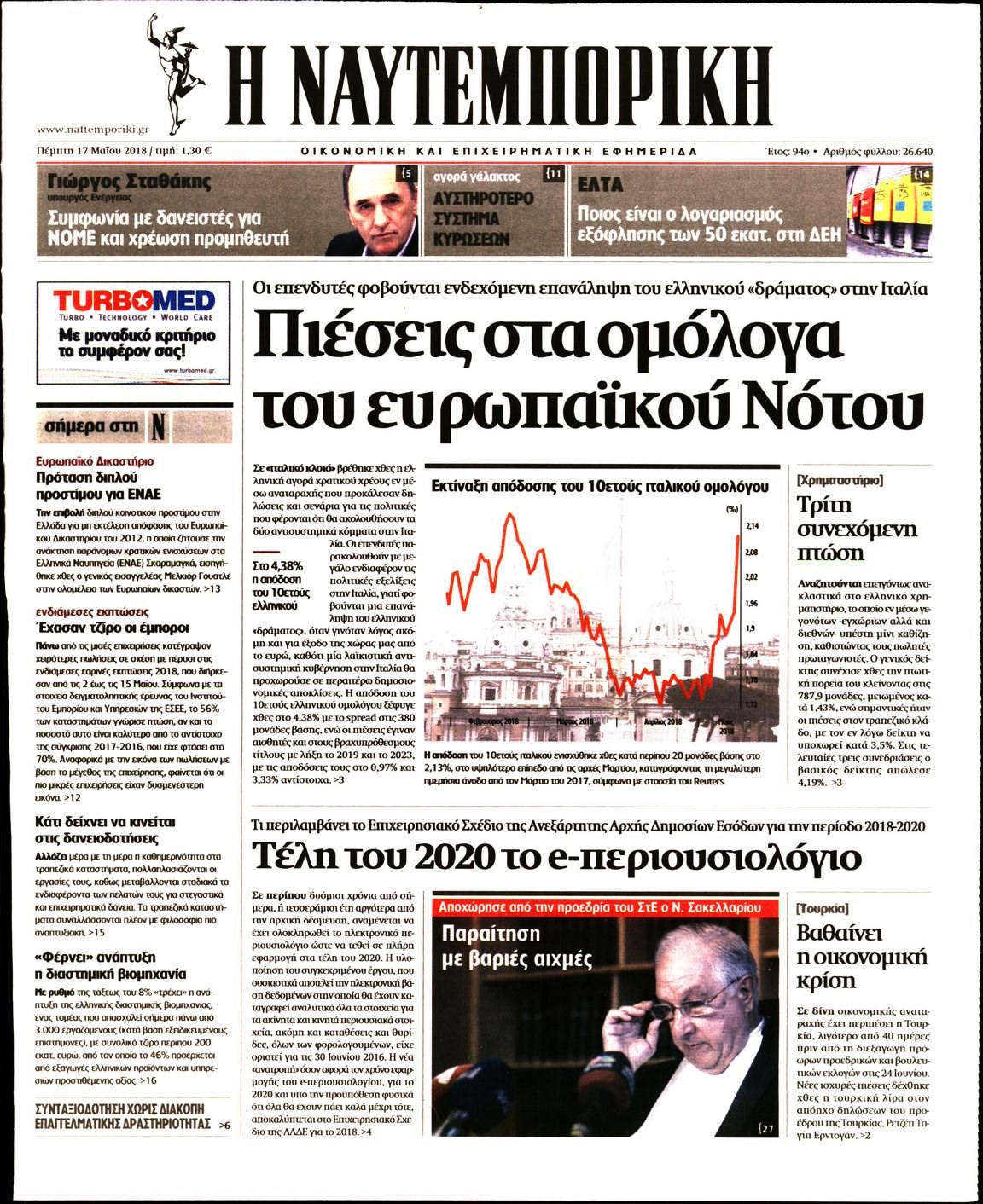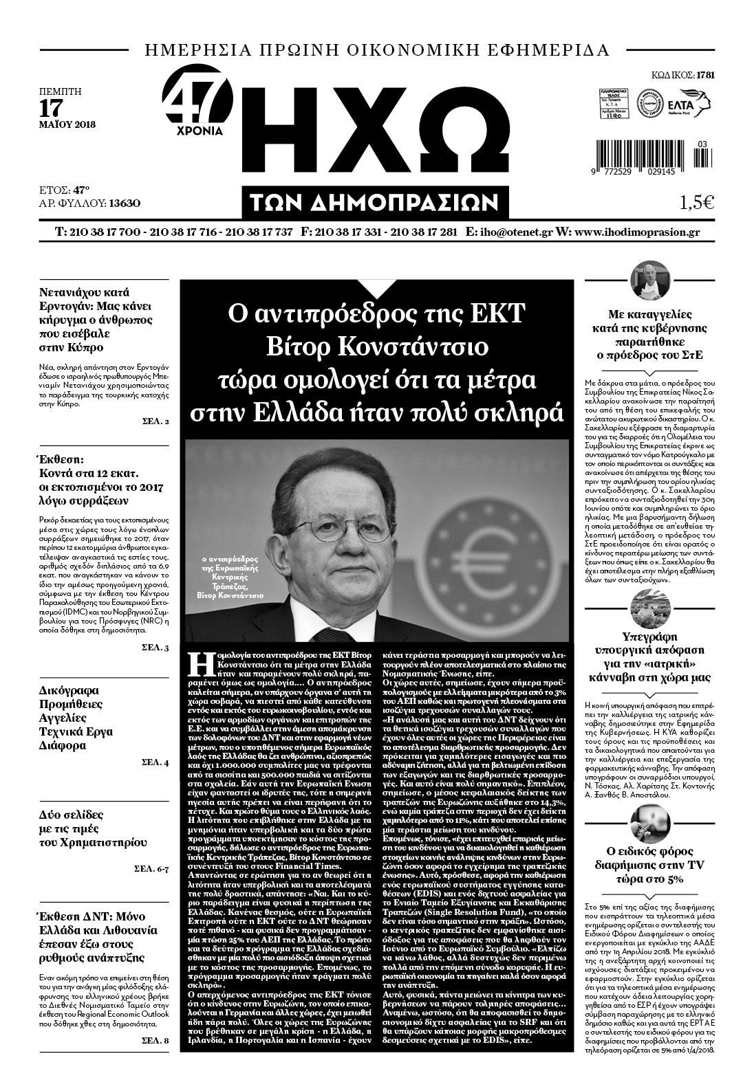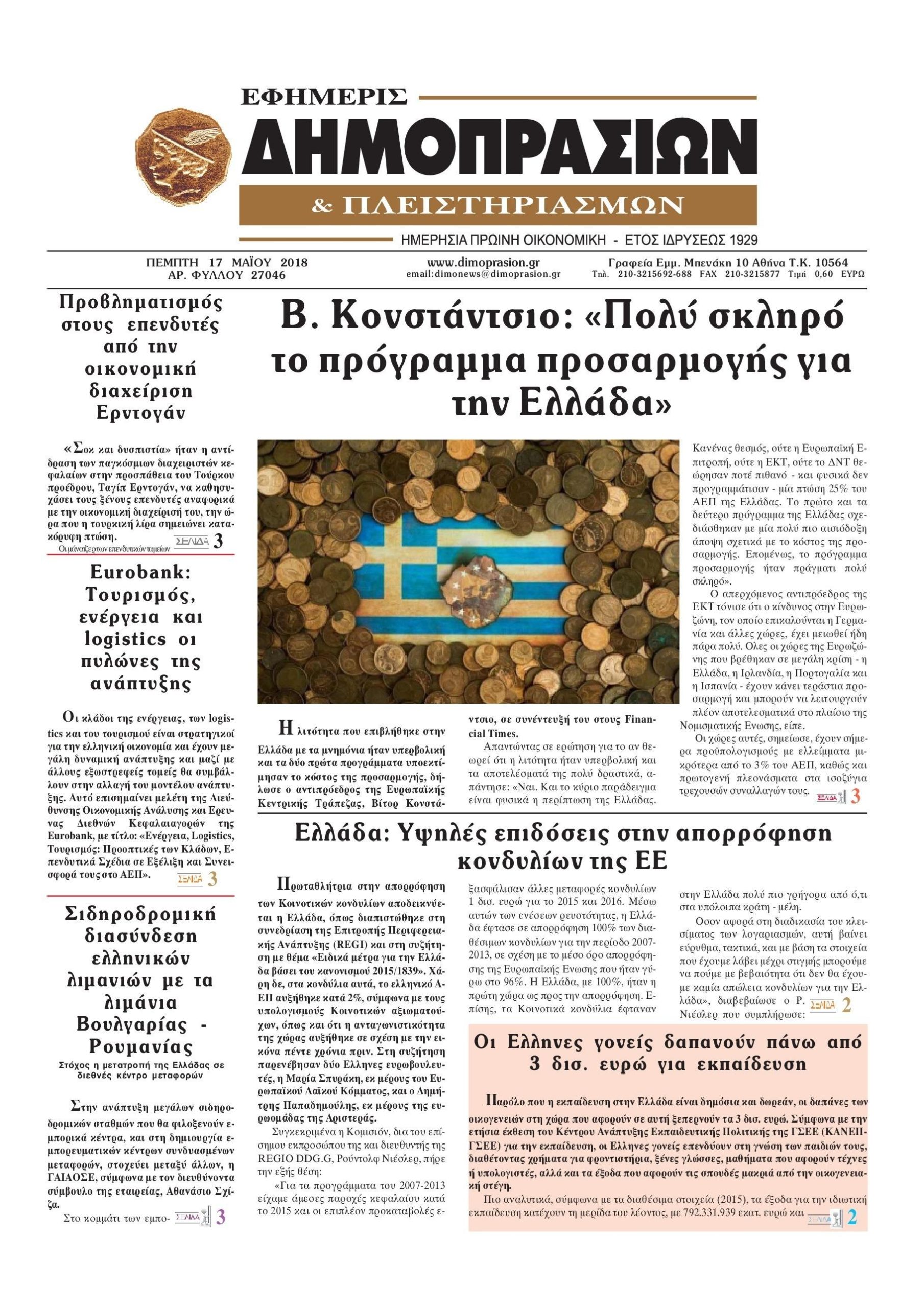 Οι οικονομικές εφημερίδες 17/5/2018 Κώστας Τεό 06:53, Πέμπτη 17 Μαΐου 2018 Media Διαβάστε τα σημερινά πρωτοσέλιδα των οικονομικών εφημερίδων: ΟΙΚΟΝΟΜΙΚΕΣ ΕΦΗΜΕΡΙΔΕΣ ΠΡΩΤΟΣΕΛΙΔΑ Μοιράσου το: σχολίασε κι εσύ (0 σχόλια) Ακολουθήστε το enikos.gr στο Google News και μάθετε πρώτοι όλες τις ειδήσεις Δείτε όλες τις τελευταίες ειδήσεις από την Ελλάδα και τον Κόσμο στο enikos.gr Ειδήσεις Ροή Ειδήσεων 9 λεπτά πριν Ουκρανία: Xτύπησε με drones ρωσικό τάνκερ στη Μεσόγειο 2 ώρες πριν Πούτιν: Η Ουκρανία δεν είναι έτοιμη για ειρηνευτικές συνομιλίες – ο ρωσικός στρατός προελαύνει σε όλα τα μέτωπα 3 ώρες πριν Νίκος Παππάς: Ζητώ συγγνώμη για αυτό το επεισόδιο – Δεν τον γρονθοκόπησα 51 λεπτά πριν Θεσσαλονίκη: Άφησαν τα ανήλικα παιδιά τους να κοιμούνται στην αυλή – Κάτοικος ειδοποίησε το «Χαμόγελο του Παιδιού» 12 λεπτά πριν Βουλή: Υπερψηφίστηκε το νομοσχέδιο για την ένταξη του ΟΠΕΚΕΠΕ στην ΑΑΔΕ 4 ώρες πριν Αλλαγή σελίδας για 3 ζώδια – «Μία δύσκολη περίοδος φτάνει στο τέλος της» 2 ημέρες πριν 20 χρόνια τα Χριστούγεννα ξεκινούν στα Public με μεγάλη ποικιλία σε δώρα! 3 ώρες πριν Γεμάτος νεροχύτης; 5 σοβαρές ευθύνες που «φοβίζουν» όσους αφήνουν άπλυτα πιάτα 2 ώρες πριν Ειδικός μοιράζεται 6 κόλπα για να διατηρείστε σε φόρμα με πάνω από 40 ώρες εργασίας την εβδομάδα: «Προπονηθείτε πριν από τη δουλειά, όχι μετά» 5 λεπτά πριν Ανδρουλάκης για ΕΛΤΑ: Το σκάνδαλο αυτό είναι η ωμή εκδοχή του κράτους-λάφυρου 9 λεπτά πριν Ουκρανία: Xτύπησε με drones ρωσικό τάνκερ στη Μεσόγειο 10 λεπτά πριν Βουλή: Εγκρίθηκε ο διορισμός της νέας διοικήτριας της Ανεξάρτητης Αρχής Ελέγχου της Αγοράς και Προστασίας του Καταναλωτή 12 λεπτά πριν Βουλή: Υπερψηφίστηκε το νομοσχέδιο για την ένταξη του ΟΠΕΚΕΠΕ στην ΑΑΔΕ 16 λεπτά πριν Θεσσαλονίκη: Οδηγός μηχανής εμβόλισε ηλεκτρικό πατίνι και γρονθοκόπησε τον αναβάτη ENIKOS NETWORK Τάξη στις ιατρικές διαφημίσεις για την προστασία των πολιτών βάζει ο ΙΣΑ Μακροζωία: Τι παίζει πιο σημαντικό ρόλο ακόμα και από την διατροφή και την άσκηση, σύμφωνα με μελέτη e-ΕΦΚΑ: Νέα παράταση της προθεσμίας υποβολής για τις ΑΠΔ – Ποιες επιχειρήσεις αφορά Αγορά πολυτελών κατοικιών: Αυτές είναι οι προτεραιότητες των αγοραστών – Σε ποιες περιοχές στρέφονται και τι επιλέγουν Χαρτογραφώντας το «σημείο χωρίς επιστροφή»: Για πρώτη φορά αποκαλύπτεται με λεπτομέρεια το ακανθώδες όριο της ατμόσφαιρας τ... Η Google καταργεί τη λειτουργία «dark web report» – Πώς θα μπορούν οι χρήστες να διαγράφουν τα δεδομένα τους περισσότερα 08:00 , Παρασκευή 19 Δεκεμβρίου 2025 Την Κυριακή με τη Realnews: Δωροεπιταγή 10€ Δωροεπιταγή αξίας 10€ για αγορές άνω των 60€ από τα πολυκαταστήματα FactoryOutlet H προσφορά ι... 05:48 , Παρασκευή 19 Δεκεμβρίου 2025 Οι οικονομικές εφημερίδες 19/12/2025 Διαβάστε τα πρωτοσέλιδα από τις οικονομικές εφημερίδες, σήμερα 19/12/2025. 05:43 , Παρασκευή 19 Δεκεμβρίου 2025 Οι αθλητικές εφημερίδες 19/12/2025 Διαβάστε τα πρωτοσέλιδα από τις αθλητικές εφημερίδες, σήμερα 19/12/2025. 05:38 , Παρασκευή 19 Δεκεμβρίου 2025 Οι πολιτικές εφημερίδες 19/12/2025 Διαβάστε τα πρωτοσέλιδα από τις πολιτικές εφημερίδες, σήμερα 19/12/2025. ΤΕΛΕΥΤΑΙΕΣ ΕΙΔΗΣΕΙΣ 5 λεπτά πριν Ανδρουλάκης για ΕΛΤΑ: Το σκάνδαλο αυτό είναι η ωμή... 9 λεπτά πριν Ουκρανία: Xτύπησε με drones ρωσικό τάνκερ στη Μεσόγειο 10 λεπτά πριν Βουλή: Εγκρίθηκε ο διορισμός της νέας διοικήτριας της... 12 λεπτά πριν Βουλή: Υπερψηφίστηκε το νομοσχέδιο για την ένταξη του... 16 λεπτά πριν Θεσσαλονίκη: Οδηγός μηχανής εμβόλισε ηλεκτρικό... 21 λεπτά πριν Κατερίνα Καιν