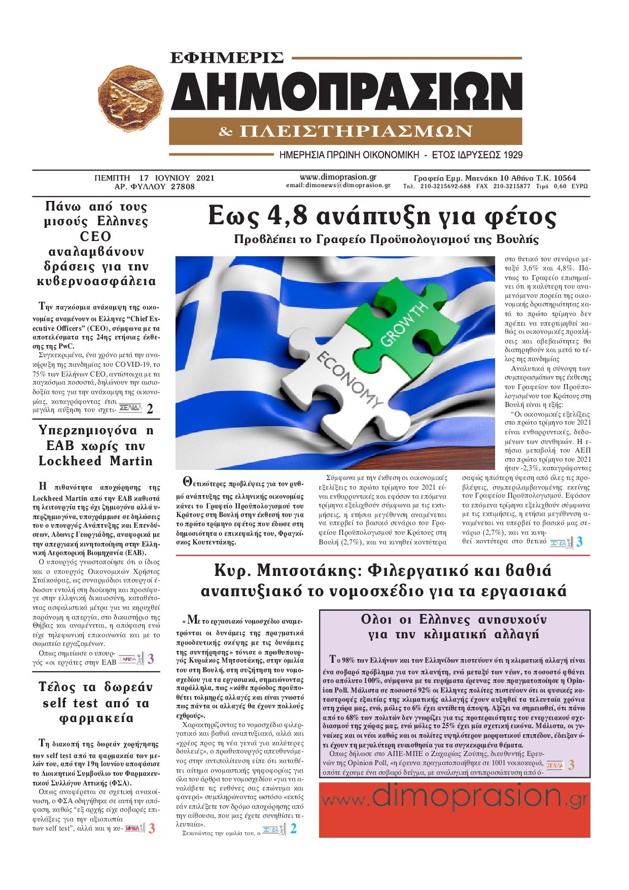 Οι οικονομικές εφημερίδες 17/6/2021 Διονύσης Νίκκας 06:32, Πέμπτη 17 Ιουνίου 2021 Media Διαβάστε τα πρωτοσέλιδα των οικονομικών εφημερίδων… ΟΙΚΟΝΟΜΙΚΕΣ ΕΦΗΜΕΡΙΔΕΣ Μοιράσου το: σχολίασε κι εσύ (0 σχόλια) Ακολουθήστε το enikos.gr στο Google News και μάθετε πρώτοι όλες τις ειδήσεις Δείτε όλες τις τελευταίες ειδήσεις από την Ελλάδα και τον Κόσμο στο enikos.gr Ειδήσεις Ροή Ειδήσεων 3 λεπτά πριν ΟΠΕΚΕΠΕ: Προφυλακιστέος ο φερόμενος αρχηγός και ο λογιστής της εγκληματικής οργάνωσης 1 ώρα πριν Αυξάνουν την πίεση προς την κυβέρνηση οι αγρότες: Κλείνουν παρακαμπτήριους και ανοίγουν διόδια – Τι θα γίνει τις γιορτές 1 ώρα πριν Φοινικούντα: Το Σάββατο απολογείται ο 30χρονος γιος γνωστού επιχειρηματία της Πλάκας που παραδόθηκε – Όσα είπε στους αστυνομικούς και ο ρόλος του στο έγκλημα 44 λεπτά πριν Μπορεί ο Μαδούρο να αντέξει τον αποκλεισμό του Τραμπ; Τι θα χρειαστεί η Ουάσινγκτον για να τον ανατρέψει 2 ώρες πριν Πρίγκιπας Ουίλιαμ – Κέιτ: Η νέα οικογενειακή φωτογραφία για τις Χριστουγεννιάτικες κάρτες του 2025 2 ώρες πριν Ύπνος: Η απλή βραδινή ρουτίνα για να προστατεύσετε τα μαλλιά σας από το κρύο κατά τη διάρκεια του χειμώνα 3 ώρες πριν Manifesting: Πώς να συναντήσετε τον σύντροφο της ζωής σας, ανάλογα με τον μήνα γέννησής σας 2 ημέρες πριν 20 χρόνια τα Χριστούγεννα ξεκινούν στα Public με μεγάλη ποικιλία σε δώρα! 48 λεπτά πριν Αρχαιολόγοι ανακάλυψαν ρωμαϊκά τεχνουργήματα από μια πόλη που δεν υπήρξε ποτέ – Τα τρία εντυπωσιακά κτίρια και ο αμφορέας με τις… σαρδέλες 4 λεπτά πριν ΟΠΕΚΕΠΕ: Προφυλακιστέος ο φερόμενος αρχηγός και ο λογιστής της εγκληματικής οργάνωσης 14 λεπτά πριν Αθηνά Μαξίμου: Η τρυφερή ανάρτηση για τα γενέθλια του Αιμίλιου Χειλάκη – «Είναι η εκλεκτική συγγένειά μου, η επιλογή και η ευθύνη μου» 29 λεπτά πριν Παναθηναϊκός – Χάποελ Τελ Αβίβ 93-82: Με… φόρα από την Κωνσταντινούπολη 44 λεπτά πριν Μπορεί ο Μαδούρο να αντέξει τον αποκλεισμό του Τραμπ; Τι θα χρειαστεί η Ουάσινγκτον για να τον ανατρέψει 48 λεπτά πριν Αρχαιολόγοι ανακάλυψαν ρωμαϊκά τεχνουργήματα από μια πόλη που δεν υπήρξε ποτέ – Τα τρία εντυπωσιακά κτίρια και ο αμφορέας με τις… σαρδέλες ENIKOS NETWORK Σε περίοδο αυξημένης δραστηριότητας η γρίπη στην Ελλάδα-Μέτρα προστασίας από τον ΕΟΔΥ Σκέφτεστε συνέχεια συζητήσεις που έχετε κάνει; Τι σημαίνει αυτό, σύμφωνα με ειδικό Στεγαστικό: Τι λέει η ΠΟΜΙΔΑ για τα νέα μέτρα που ανακοίνωσε ο Κυριάκος Μητσοτάκης Λαγκάρντ: Αισιόδοξη για την ανάπτυξη της Ευρωζώνης, αβέβαιη για τον πληθωρισμό Χαρτογραφώντας το «σημείο χωρίς επιστροφή»: Για πρώτη φορά αποκαλύπτεται με λεπτομέρεια το ακανθώδες όριο της ατμόσφαιρας τ... Η Google καταργεί τη λειτουργία «dark web report» – Πώς θα μπορούν οι χρήστες να διαγράφουν τα δεδομένα τους περισσότερα 17:45 , Πέμπτη 18 Δεκεμβρίου 2025 ROUK ZOUK: Εορταστικό επεισόδιο με καλεσμένους τους πρωταγωνιστές του «Γιατί ρε πατέρα» Το Σάββατο 20 Δεκεμβρίου στις 21:00, η Ζέτα Μακρυπούλια υποδέχεται εκλεκτούς ηθοποιούς που όλο... 17:20 , Πέμπτη 18 Δεκεμβρίου 2025 Άγιος έρωτας: Η Χριστίνα εξομολογείται στον πατέρα Νικόλαο, απόψε στις 21:00 στον Alpha Η Νότα αποφασίζει να εκδικηθεί τον Πέτρο και τον Στέφανο, για χάρη του Λούη, όμως τα πράγματα ... 16:50 , Πέμπτη 18 Δεκεμβρίου 2025 Να μ’ αγαπάς: Ζωή και Φωτεινή συμφιλιώνονται ως μάνα με κόρη, απόψε στις 20:00 Η ταυτότητα του Άγγελου αποκαλύπτεται στο νέο επεισόδιο της σειράς “Να μ’ αγαπάς... 15:52 , Πέμπτη 18 Δεκεμβρίου 2025 Το Σπίτι Δίπλα Στο Ποτάμι: Το καθηλωτικό τελευτα