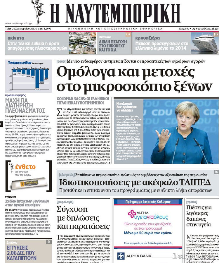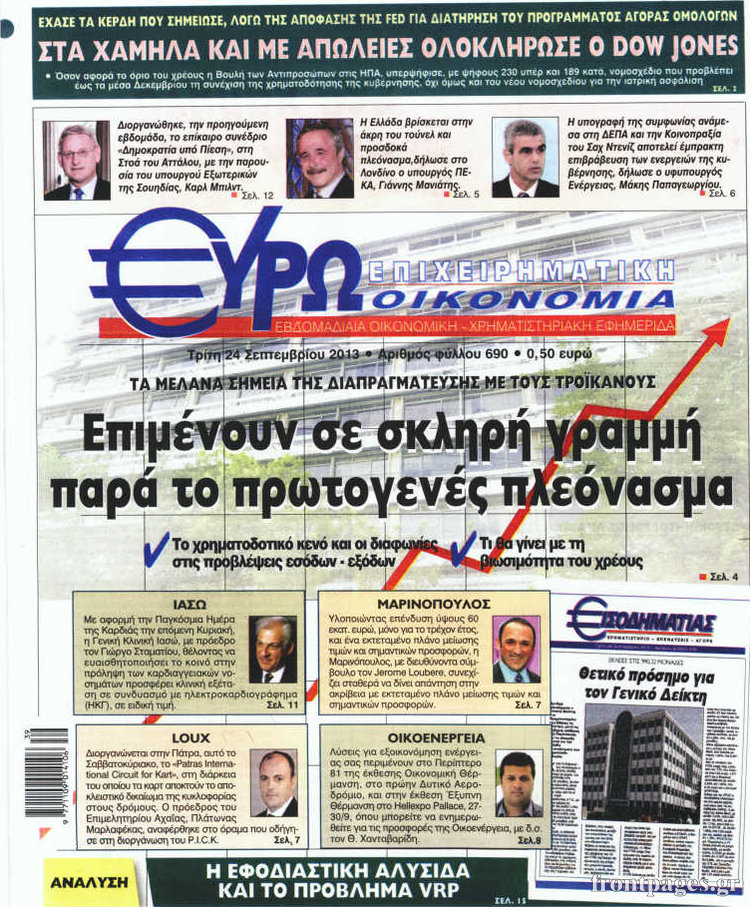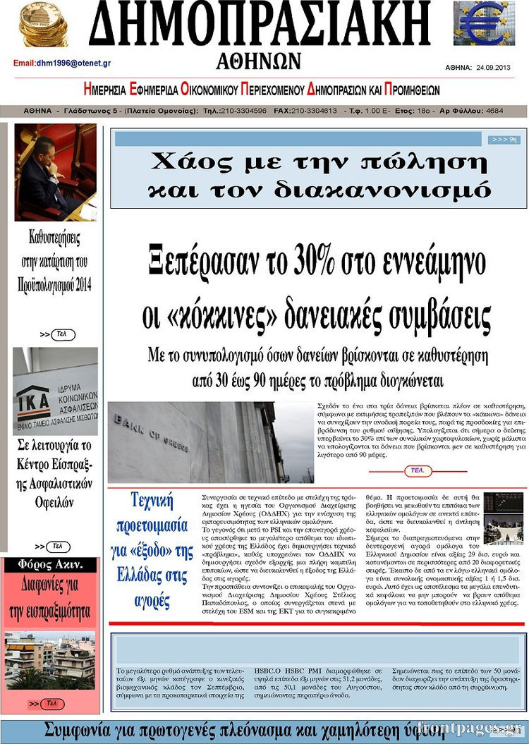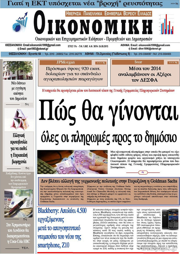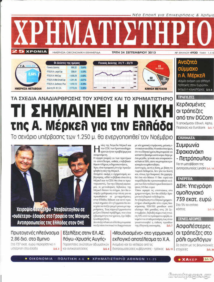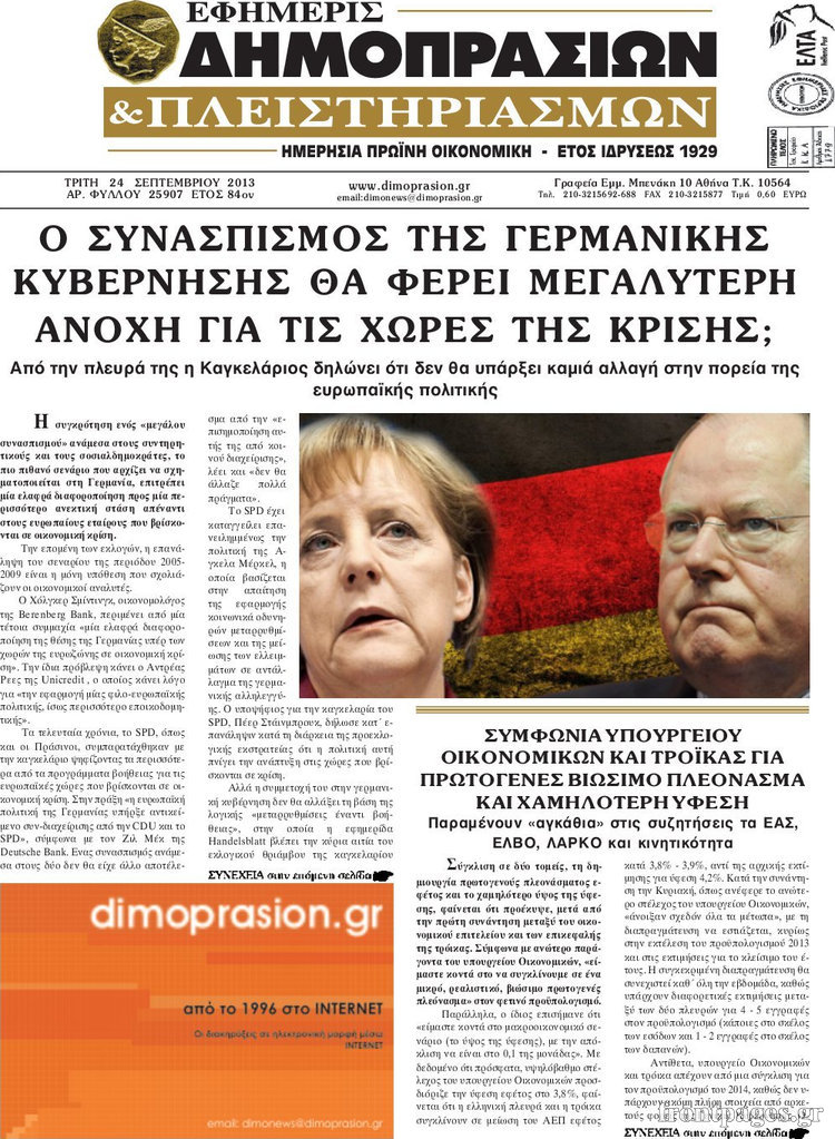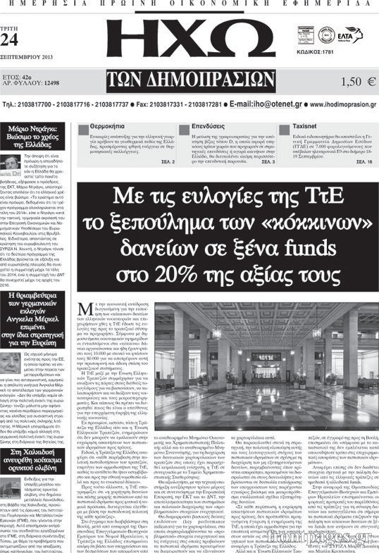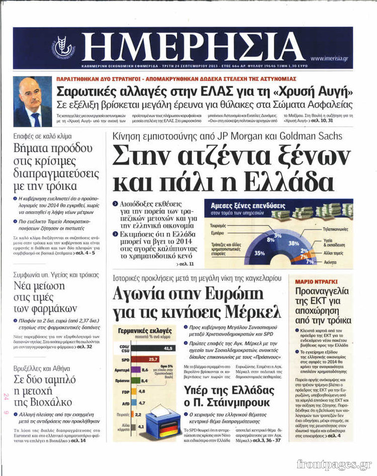 Οι oικονομικές εφημερίδες Enikos Newsroom 09:22, Τρίτη 24 Σεπτεμβρίου 2013 Media Οι oικονομικές εφημερίδες Διαβάστε τα πρωτοσέλιδα των οικονομικών εφημερίδων: ΕΦΗΜΕΡΙΔΕΣ ΟΙΚΟΝΟΜΙΚΕΣ ΕΦΗΜΕΡΙΔΕΣ ΠΡΩΤΟΣΕΛΙΔΑ Μοιράσου το: σχολίασε κι εσύ (0 σχόλια) Ακολουθήστε το enikos.gr στο Google News και μάθετε πρώτοι όλες τις ειδήσεις Δείτε όλες τις τελευταίες ειδήσεις από την Ελλάδα και τον Κόσμο στο enikos.gr Ειδήσεις Ροή Ειδήσεων 7 ώρες πριν Μητσοτάκης: Αναγκαία η μεταρρύθμιση του πρωτογενούς τομέα – Τα 6 νέα μέτρα για το στεγαστικό και οι αναφορές σε «Ιθάκη» και «πολιτικούς του καναπέ» 6 ώρες πριν Δάνεια σε ελβετικό φράγκο: Τα βασικά σημεία της ρύθμισης – ανάσας για 40.000 δανειολήπτες – Αναλυτικός οδηγός με ερωτήσεις και απαντήσεις 6 ώρες πριν Κυψέλη: Εξιτήριο πήρε η 14χρονη μαθήτρια που μαχαιρώθηκε από την 16χρονη σε σχολείο – «Θέλω να βοηθήσω το παιδί, έχει μπλέξει με κακές παρέες» 6 ώρες πριν Τραμπ: Γιατί κατέθεσε τώρα την αγωγή κατά του BBC – Πώς η κίνησή του εξυπηρετεί το νέο δόγμα του για «αντίσταση» στην Ευρώπη, υπέρ των συντηρητικών 7 ώρες πριν ΟΠΕΚΕΠΕ – Παράνομες επιδοτήσεις: Ελεύθεροι με περιοριστικούς όρους και οι 7 κατηγορούμενοι που απολογήθηκαν σήμερα 6 ώρες πριν Ανακαλύφθηκε βυθισμένη πέτρινη κατασκευή ανοιχτά της Κριμαίας – Αποτελεί μέρος αρχαίας ελληνικής αποικίας 7 ώρες πριν Ύπνος: Αυτό μπορεί να είναι το χειρότερο λάθος για το βιολογικό ρολόι σας, σύμφωνα με ειδικό 8 ώρες πριν Αριθμολογία: Οι άνθρωποι που έχουν γεννηθεί αυτές τις 3 ημερομηνίες, προσελκύουν μεγάλη τύχη πριν από το τέλος του 2025 10 ώρες πριν Οι 7 συμπεριφορές που μαρτυρούν ότι ένας άνδρας επενδύει μακροπρόθεσμα σε μια σχέση 10 λεπτά πριν Παλαιστινιακό: «Η λύση των δύο κρατών είναι ο μόνος βιώσιμος δρόμος», τόνισε η Ελλάδα στο Συμβούλιο Ασφαλείας του ΟΗΕ 17 λεπτά πριν Ελένη Καρακάση: «Ένιωθα πολύ αδικημένη, δεν μπορούσα να ελέγξω τον εαυτό μου σε δύσκολες στιγμές» 26 λεπτά πριν Κλαούδια Σέινμπαουμ προς Ντόναλντ Τραμπ για φαιντανύλη: Να επιτεθούμε στα αίτια κατανάλωσης αντί να την κατατάσσουμε στα «όπλα μαζικής καταστροφής» 34 λεπτά πριν Ρωσία: Ουκρανική επίθεση με drones στο Κρασνοντάρ – Δύο τραυματίες, ζημιές σε σπίτια και διακοπή ρεύματος 42 λεπτά πριν Αντόνιο Ταγιάνι: Νομικά εμπόδια για τη χρήση των ρωσικών κεφαλαίων υπέρ της Ουκρανίας ENIKOS NETWORK Αίτημα ΙΣΑ για την εξαίρεση των προσωπικών γιατρών από τις κατ’ οίκον επισκέψεις Η σκανδιναβική μέθοδος στον ύπνο που μπορεί να σώσει έναν γάμο Πιερρακάκης: Ο προϋπολογισμός συμβάλλει ουσιαστικά στην ενίσχυση της αγοραστικής δύναμης της πλειονότητας των εργαζομένων e-ΕΦΚΑ: Παρατείνεται η προθεσμία για την υποβολή ΑΠΔ – Ποιους αφορά Σύγχρονος Νοστράδαμος: Προειδοποιεί για «μεγάλο γεγονός» τους επόμενους μήνες που θα συγκλονίσει τη Βρετανία και τον κόσμο Τεστ παρατηρητικότητας: Μπορείτε να βρείτε τις 3 διαφορές στις εικόνες με έναν πιγκουίνο σε 14 δευτερόλεπτα περισσότερα 20:06 , Τρίτη 16 Δεκεμβρίου 2025 Ο ΣΚΑΙ καταγγέλλει τον ΕΚΚΟΜΕΔ Επιστολή με την οποία καταγράφει την έντονη διαμαρτυρία του προς τον διευθύνοντα σύμβουλο του... 17:40 , Τρίτη 16 Δεκεμβρίου 2025 Eurovision: Στις 4 Ιανουαρίου αποκαλύπτονται τα 28 τραγούδια του ελληνικού τελικού Η αγωνία τελειώνει, η γιορτή της Eurovision αρχίζει στην ΕΡΤ από τις πρώτες ημέρες της νέας χρ... 17:09 , Τρίτη 16 Δεκεμβρίου 2025 Alter Ego Media: Βαθύτατη θλίψη και ειλικρινή συλλυπητήρια για την απώλεια της Ειρήνης Μαρινάκη Τη βαθύτατη θλίψη και τα ε