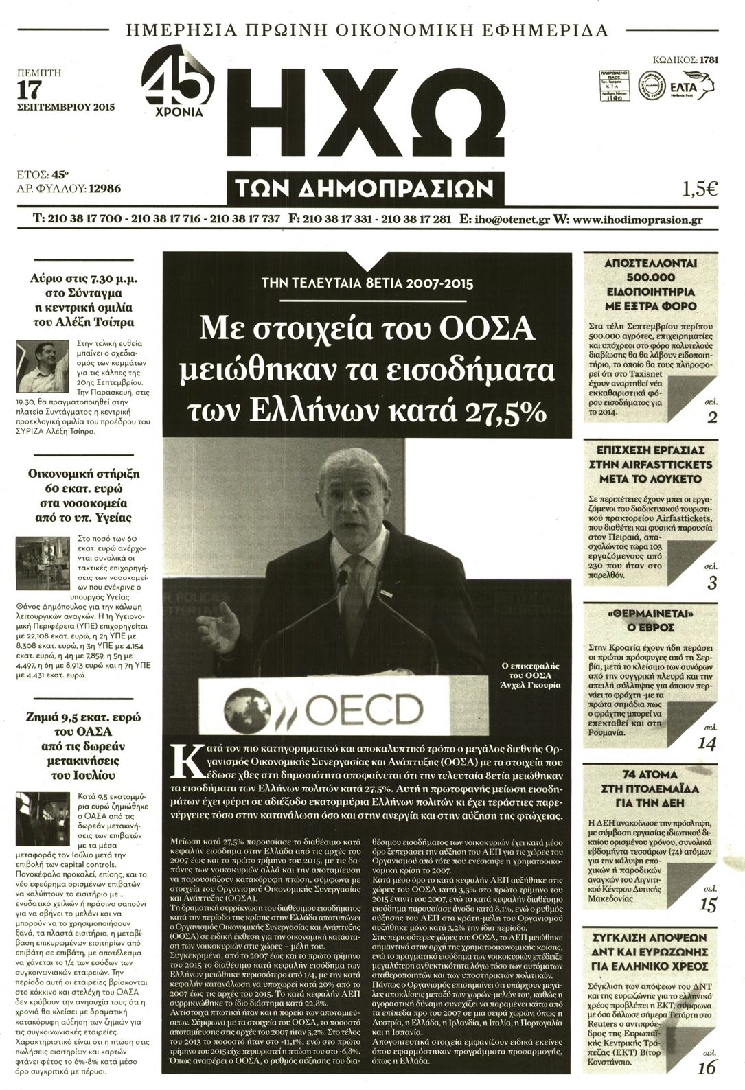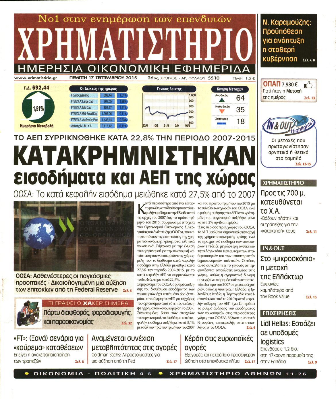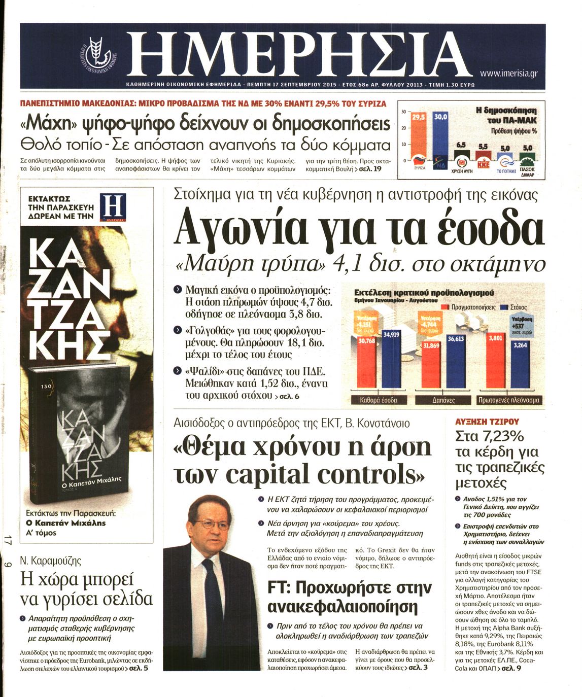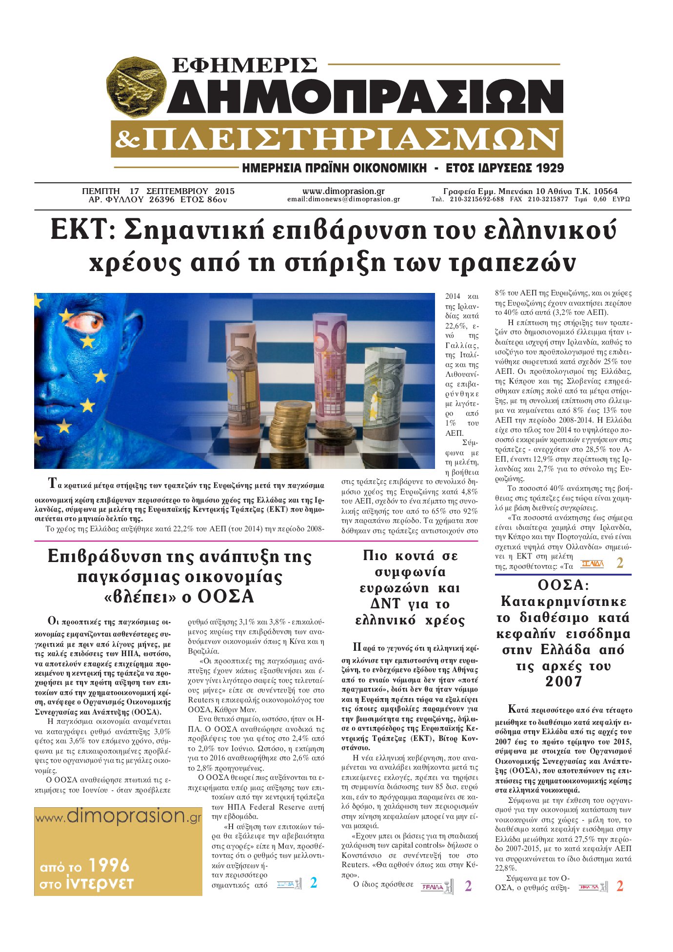 Οι οικονομικές εφημερίδες 17/9/2015 Enikos Newsroom 08:05, Πέμπτη 17 Σεπτεμβρίου 2015 Media Διαβάστε τα σημερινά πρωτοσέλιδα των οικονομικών εφημερίδων: ΟΙΚΟΝΟΜΙΚΕΣ ΕΦΗΜΕΡΙΔΕΣ ΠΡΩΤΟΣΕΛΙΔΑ Μοιράσου το: σχολίασε κι εσύ (0 σχόλια) Ακολουθήστε το enikos.gr στο Google News και μάθετε πρώτοι όλες τις ειδήσεις Δείτε όλες τις τελευταίες ειδήσεις από την Ελλάδα και τον Κόσμο στο enikos.gr Ειδήσεις Ροή Ειδήσεων 4 ώρες πριν Εκτός ευρωομάδας ΣΥΡΙΖΑ ο Νίκος Παππάς μετά την επίθεση στον δημοσιογράφο Νίκο Γιαννόπουλο – Η μήνυση και οι νέες δηλώσεις 5 ώρες πριν «Αγριεύουν» οι αγρότες: «Δεν συντρέχει λόγος συνάντησης με τον πρωθυπουργό» – Ώρα αποφάσεων στη σύσκεψη της Πέμπτης 5 ώρες πριν Κυψέλη: Χωρίς την οικογένειά της δίπλα της απολογήθηκε η 16χρονη – «Της είχε επιτεθεί κάποιος για να την βιάσει, φοβήθηκε και κυκλοφορούσε με μαχαίρι» 4 ώρες πριν Politico: Το πρόβλημα της Ευρώπης δεν είναι το Βέλγιο αλλά ο Ντόναλντ Τραμπ 6 ώρες πριν Αλεξανδρούπολη: Πολυοργανική ανεπάρκεια λόγω υποσιτισμού η αιτία θανάτου του 3χρονου αγοριού 4 ώρες πριν Μυστήριο με τεράστιες κυκλικές πέτρες 200 κιλών – Ανακαλύφθηκαν τυχαία κατά τη διάρκεια οδικών έργων και κανείς δεν ξέρει από πού προέρχονται 5 ώρες πριν Ύπνος: Ειδικός εξηγεί τον πραγματικό λόγο που ξυπνάτε στις 4 τα ξημερώματα – Ο ρόλος των ορμονών και του κιρκάδιου ρυθμού 6 ώρες πριν Αριθμολογία: Οι άνθρωποι που έχουν γεννηθεί αυτές τις 4 ημερομηνίες, είναι τρυφεροί και αγαπούν ανιδιοτελώς 18 ώρες πριν 20 χρόνια τα Χριστούγεννα ξεκινούν στα Public με μεγάλη ποικιλία σε δώρα! 14 λεπτά πριν Βραζιλία: Το Κογκρέσο ενέκρινε σχέδιο νόμου για τη μείωση της ποινής του πρώην προέδρου Μπολσονάρου 28 λεπτά πριν Ένταση στο περιφερειακό συμβούλιο Δυτικής Μακεδονίας: Φωνές, σπρωξιές και διακοπή – Δείτε βίντεο 43 λεπτά πριν Σουδάν: Επιδρομή drone σε χωριό του Νότιου Κορντοφάν – Οκτώ νεκροί 58 λεπτά πριν Αλ Τσαντίρι Νιουζ: Η κόρη της Πάολα στο κοινό – Η ατάκα Λαζόπουλου που την έκανε να «κοκκινήσει» 1 ώρα πριν Ρωσία: Ουκρανικές δυνάμεις έπληξαν πλοίο στο λιμάνι του Ροστόφ – Αναφορές για θύματα ENIKOS NETWORK Αϋπνία: Το κόλπο που θα σας βοηθήσει να κοιμηθείτε απόψε – Είναι απλό και έχει αποτέλεσμα 2,6 εκατομμύρια πολίτες έχουν ήδη εμβολιαστεί κατά της γρίπης ΕΛΣΤΑΤ: Τι δείχνουν τα νέα στοιχεία για τις ηλεκτρονικές παραγγελίες των επιχειρήσεων ΚΕΠΕ: Οι 3 διακριτές συμβολές των ΜμΕ και της μεταποίησης στην ελληνική οικονομία Χαρτογραφώντας το «σημείο χωρίς επιστροφή»: Για πρώτη φορά αποκαλύπτεται με λεπτομέρεια το ακανθώδες όριο της ατμόσφαιρας τ... Η Google καταργεί τη λειτουργία «dark web report» – Πώς θα μπορούν οι χρήστες να διαγράφουν τα δεδομένα τους περισσότερα 02:30 , Πέμπτη 18 Δεκεμβρίου 2025 Αλ Τσαντίρι Νιουζ: Η κόρη της Πάολα στο κοινό – Η ατάκα Λαζόπουλου που την έκανε να «κοκκινήσει» Γιορτινή διάθεση και ευχάριστες στιγμές γέμισε η αποψινή, τελευταία για το 2025, εκπομπή του «... 22:24 , Τετάρτη 17 Δεκεμβρίου 2025 Το Σπίτι Δίπλα Στο Ποτάμι: Σε κίνδυνο η υγεία του Απόστολου – Τι θα δούμε απόψε “Το Σπίτι Δίπλα στο Ποτάμι” ξετυλίγει το νήμα της ζωής των πέντε αδελφών με καταισ... 21:14 , Τετάρτη 17 Δεκεμβρίου 2025 Παιχνίδια Εκδίκησης: Θα καταφέρει ο Χρήστος να κλονίσει την εμπιστοσύνη της Μάγιας απέναντι στον Άγη; Τα «Παιχνίδια Εκδίκησης» έρχονται απόψε στις 22:30, στον Αντ1, με το τελευταίο επεισόδιο της χ... 20:57 , Τετάρτη 17 Δεκεμβρίου 2025 Άγιος Έρωτας: Η Χλόη καταθέτει εναντίον του πατέρα της και ο Χάρης αποκαλύπτ