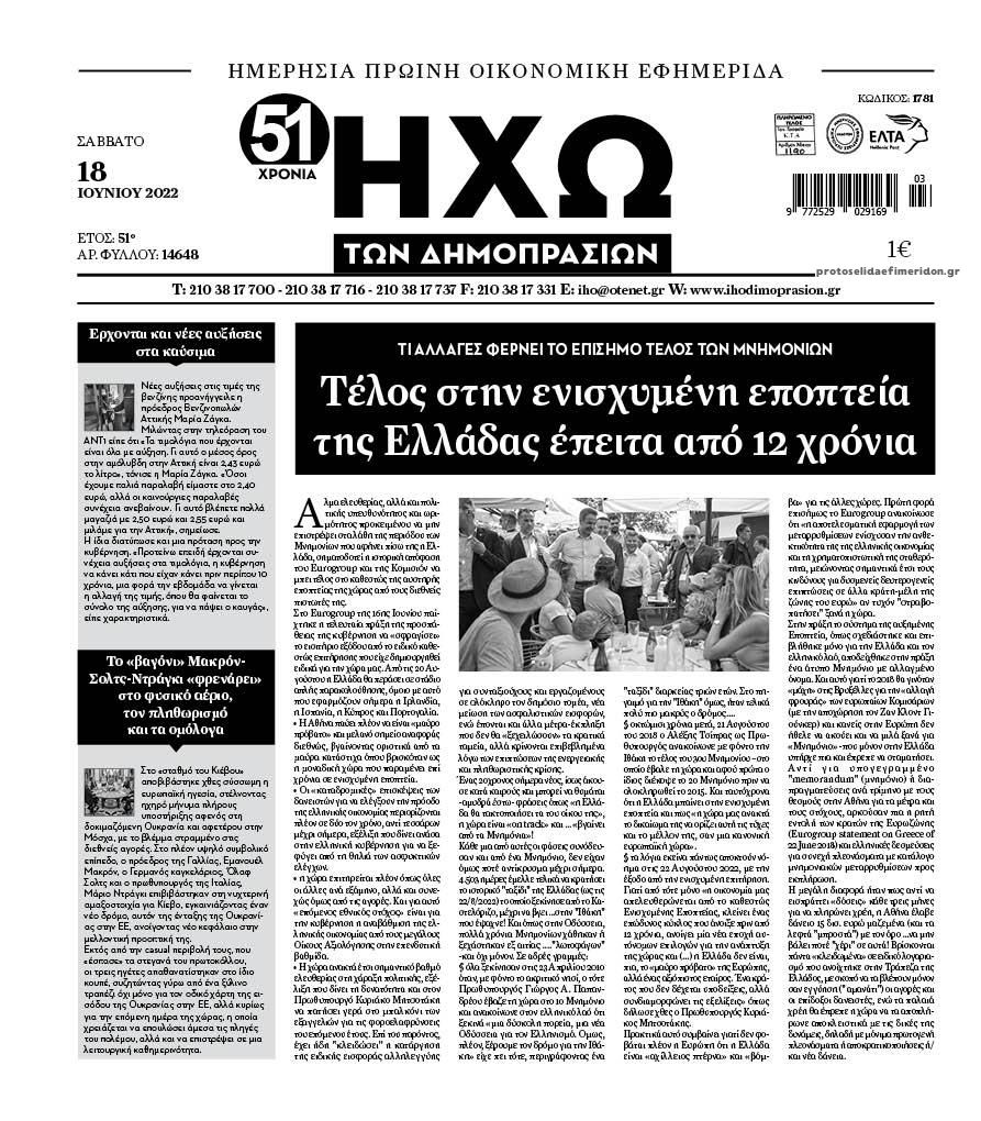 Οι οικονομικές εφημερίδες 18/6/2022 Σταύρος Ιωακείμ 07:33, Σάββατο 18 Ιουνίου 2022 Media Διαβάστε τα πρωτοσέλιδα από τις οικονομικές εφημερίδες, σήμερα 18/6/2022. ΕΦΗΜΕΡΙΔΕΣ ΟΙΚΟΝΟΜΙΚΕΣ ΕΦΗΜΕΡΙΔΕΣ ΠΡΩΤΟΣΕΛΙΔΑ Μοιράσου το: Αφγανιστάν: Ένας νεκρός, 7 τραυματίες σε επίθεση εναντίον ισλαμικού τεμένους Δήμητρα Αλεξανδράκη: Πέταξε τα βέλη της στην παραγωγή του My Style Rocks – «Ήθελαν να φαίνομαι κακιά» Χαλκίδα: Σοβαρό τροχαίο στον δρόμο προς Αρτάκη – Ένας τραυματίας – ΦΩΤΟ σχολίασε κι εσύ (0 σχόλια) Ακολουθήστε το enikos.gr στο Google News και μάθετε πρώτοι όλες τις ειδήσεις Δείτε όλες τις τελευταίες ειδήσεις από την Ελλάδα και τον Κόσμο στο enikos.gr Ειδήσεις Ροή Ειδήσεων 6 ώρες πριν Εκτός ευρωομάδας ΣΥΡΙΖΑ ο Νίκος Παππάς μετά την επίθεση στον δημοσιογράφο Νίκο Γιαννόπουλο – Η μήνυση και οι νέες δηλώσεις 6 ώρες πριν «Αγριεύουν» οι αγρότες: «Δεν συντρέχει λόγος συνάντησης με τον πρωθυπουργό» – Ώρα αποφάσεων στη σύσκεψη της Πέμπτης 6 ώρες πριν Κυψέλη: Χωρίς την οικογένειά της δίπλα της απολογήθηκε η 16χρονη – «Της είχε επιτεθεί κάποιος για να την βιάσει, φοβήθηκε και κυκλοφορούσε με μαχαίρι» 6 ώρες πριν Politico: Το πρόβλημα της Ευρώπης δεν είναι το Βέλγιο αλλά ο Ντόναλντ Τραμπ 7 ώρες πριν Αλεξανδρούπολη: Πολυοργανική ανεπάρκεια λόγω υποσιτισμού η αιτία θανάτου του 3χρονου αγοριού 6 ώρες πριν Μυστήριο με τεράστιες κυκλικές πέτρες 200 κιλών – Ανακαλύφθηκαν τυχαία κατά τη διάρκεια οδικών έργων και κανείς δεν ξέρει από πού προέρχονται 7 ώρες πριν Ύπνος: Ειδικός εξηγεί τον πραγματικό λόγο που ξυπνάτε στις 4 τα ξημερώματα – Ο ρόλος των ορμονών και του κιρκάδιου ρυθμού 8 ώρες πριν Αριθμολογία: Οι άνθρωποι που έχουν γεννηθεί αυτές τις 4 ημερομηνίες, είναι τρυφεροί και αγαπούν ανιδιοτελώς 19 ώρες πριν 20 χρόνια τα Χριστούγεννα ξεκινούν στα Public με μεγάλη ποικιλία σε δώρα! 6 λεπτά πριν Ντόναλντ Τραμπ: Παρουσίασε τα επιτεύγματα της διακυβέρνησής του – Σκληρή κριτική στον Τζο Μπάιντεν 21 λεπτά πριν Κτηνοτρόφοι: Με δάκρυα στα μάτια ζουν τον εφιάλτη των άδειων στάβλων – «Καταστράφηκαν οι ζωές μας» 35 λεπτά πριν Νέο αμερικανικό πλήγμα σε σκάφος που φέρεται να μετέφερε ναρκωτικά στον Ειρηνικό – Τέσσερις νεκροί 51 λεπτά πριν Αλ Τσαντίρι Νιουζ: «Λύγισε» ο Δημήτρης Λάλος για τον Δημήτρη Ήμελλο – «Τον μνημονεύω, να ‘ναι καλά εκεί που είναι» 1 ώρα πριν GNTM: Με δάκρυα τον αποχαιρέτησε η Ηλιάνα Παπαγεωργίου πριν από τον ημιτελικό – «Αισθάνομαι πολύ παράξενα» ENIKOS NETWORK Αϋπνία: Το κόλπο που θα σας βοηθήσει να κοιμηθείτε απόψε – Είναι απλό και έχει αποτέλεσμα 2,6 εκατομμύρια πολίτες έχουν ήδη εμβολιαστεί κατά της γρίπης ΕΛΣΤΑΤ: Τι δείχνουν τα νέα στοιχεία για τις ηλεκτρονικές παραγγελίες των επιχειρήσεων ΚΕΠΕ: Οι 3 διακριτές συμβολές των ΜμΕ και της μεταποίησης στην ελληνική οικονομία Χαρτογραφώντας το «σημείο χωρίς επιστροφή»: Για πρώτη φορά αποκαλύπτεται με λεπτομέρεια το ακανθώδες όριο της ατμόσφαιρας τ... Η Google καταργεί τη λειτουργία «dark web report» – Πώς θα μπορούν οι χρήστες να διαγράφουν τα δεδομένα τους περισσότερα 02:30 , Πέμπτη 18 Δεκεμβρίου 2025 Αλ Τσαντίρι Νιουζ: Η κόρη της Πάολα στο κοινό – Η ατάκα Λαζόπουλου που την έκανε να «κοκκινήσει» Γιορτινή διάθεση και ευχάριστες στιγμές γέμισε η αποψινή, τελευταία για το 2025, εκπομπή του «... 22:24 , Τετάρτη 17 Δεκεμβρίου 2025 Το Σπίτι Δίπλα Στο Ποτάμι: Σε κίνδυνο η υγεία του Απόστολου – Τι θα δούμε απόψε “Το Σπίτι Δίπλα στο Ποτάμι” ξετυλίγει το νήμα της ζωής των πέντε αδε