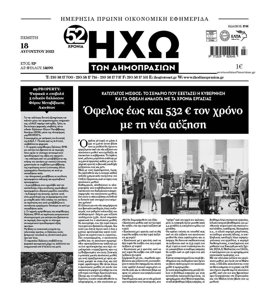 Οι οικονομικές εφημερίδες 18/8/2022 Σήφης Γαρυφαλάκης 06:08, Πέμπτη 18 Αυγούστου 2022 Media Διαβάστε τα πρωτοσέλιδα από τις οικονομικές εφημερίδες, σήμερα 18/08/2022. ΕΦΗΜΕΡΙΔΕΣ ΟΙΚΟΝΟΜΙΚΕΣ ΕΦΗΜΕΡΙΔΕΣ ΠΡΩΤΟΣΕΛΙΔΑ Μοιράσου το: Οι οικονομικές εφημερίδες 17/8/2022 Οι οικονομικές εφημερίδες 16/8/2022 Οι οικονομικές εφημερίδες 13/8/2022 σχολίασε κι εσύ (0 σχόλια) Ακολουθήστε το enikos.gr στο Google News και μάθετε πρώτοι όλες τις ειδήσεις Δείτε όλες τις τελευταίες ειδήσεις από την Ελλάδα και τον Κόσμο στο enikos.gr Ειδήσεις Ροή Ειδήσεων 8 ώρες πριν Μητσοτάκης: Αναγκαία η μεταρρύθμιση του πρωτογενούς τομέα – Τα 6 νέα μέτρα για το στεγαστικό και οι αναφορές σε «Ιθάκη» και «πολιτικούς του καναπέ» 7 ώρες πριν Δάνεια σε ελβετικό φράγκο: Τα βασικά σημεία της ρύθμισης – ανάσας για 40.000 δανειολήπτες – Αναλυτικός οδηγός με ερωτήσεις και απαντήσεις 7 ώρες πριν Κυψέλη: Εξιτήριο πήρε η 14χρονη μαθήτρια που μαχαιρώθηκε από την 16χρονη σε σχολείο – «Θέλω να βοηθήσω το παιδί, έχει μπλέξει με κακές παρέες» 7 ώρες πριν Τραμπ: Γιατί κατέθεσε τώρα την αγωγή κατά του BBC – Πώς η κίνησή του εξυπηρετεί το νέο δόγμα του για «αντίσταση» στην Ευρώπη, υπέρ των συντηρητικών 7 ώρες πριν ΟΠΕΚΕΠΕ – Παράνομες επιδοτήσεις: Ελεύθεροι με περιοριστικούς όρους και οι 7 κατηγορούμενοι που απολογήθηκαν σήμερα 7 ώρες πριν Ανακαλύφθηκε βυθισμένη πέτρινη κατασκευή ανοιχτά της Κριμαίας – Αποτελεί μέρος αρχαίας ελληνικής αποικίας 8 ώρες πριν Ύπνος: Αυτό μπορεί να είναι το χειρότερο λάθος για το βιολογικό ρολόι σας, σύμφωνα με ειδικό 9 ώρες πριν Αριθμολογία: Οι άνθρωποι που έχουν γεννηθεί αυτές τις 3 ημερομηνίες, προσελκύουν μεγάλη τύχη πριν από το τέλος του 2025 11 ώρες πριν Οι 7 συμπεριφορές που μαρτυρούν ότι ένας άνδρας επενδύει μακροπρόθεσμα σε μια σχέση 6 λεπτά πριν Τα ζώδια σήμερα, Τετάρτη 17 Δεκεμβρίου: Κριοί, η αυτοπεποίθησή σας ενισχύεται 14 λεπτά πριν Εφημερεύοντα φαρμακεία σε Αθήνα και Θεσσαλονίκη (17/12) 20 λεπτά πριν Κόστα Ρίκα: Το Κογκρέσο απέρριψε το αίτημα για άρση της ασυλίας του προέδρου Τσάβες 28 λεπτά πριν Κολομβία: Νεκροί τέσσερις αστυνομικοί σε βομβιστικές επιθέσεις ανταρτών 36 λεπτά πριν Στάση εργασίας 11:00 – 17:00 σήμερα στα λεωφορεία του ΟΑΣΑ – Ποιες γραμμές θα λειτουργήσουν ENIKOS NETWORK Αίτημα ΙΣΑ για την εξαίρεση των προσωπικών γιατρών από τις κατ’ οίκον επισκέψεις Η σκανδιναβική μέθοδος στον ύπνο που μπορεί να σώσει έναν γάμο Πιερρακάκης: Ο προϋπολογισμός συμβάλλει ουσιαστικά στην ενίσχυση της αγοραστικής δύναμης της πλειονότητας των εργαζομένων e-ΕΦΚΑ: Παρατείνεται η προθεσμία για την υποβολή ΑΠΔ – Ποιους αφορά Σύγχρονος Νοστράδαμος: Προειδοποιεί για «μεγάλο γεγονός» τους επόμενους μήνες που θα συγκλονίσει τη Βρετανία και τον κόσμο Τεστ παρατηρητικότητας: Μπορείτε να βρείτε τις 3 διαφορές στις εικόνες με έναν πιγκουίνο σε 14 δευτερόλεπτα περισσότερα 20:06 , Τρίτη 16 Δεκεμβρίου 2025 Ο ΣΚΑΙ καταγγέλλει τον ΕΚΚΟΜΕΔ Επιστολή με την οποία καταγράφει την έντονη διαμαρτυρία του προς τον διευθύνοντα σύμβουλο του... 17:40 , Τρίτη 16 Δεκεμβρίου 2025 Eurovision: Στις 4 Ιανουαρίου αποκαλύπτονται τα 28 τραγούδια του ελληνικού τελικού Η αγωνία τελειώνει, η γιορτή της Eurovision αρχίζει στην ΕΡΤ από τις πρώτες ημέρες της νέας χρ... 17:09 , Τρίτη 16 Δεκεμβρίου 2025 Alter Ego Media: Βαθύτατη θλίψη και ειλικρινή συλλυπητήρια για την απώλεια της Ειρήνης Μαρινάκη Τη βαθύτατη θλίψη και τα ειλικρινή συλλυπητήριά της εκφράζει η Alter Ego Media για τον θάνατο ... 13:00 , Τρίτη 16 Δε