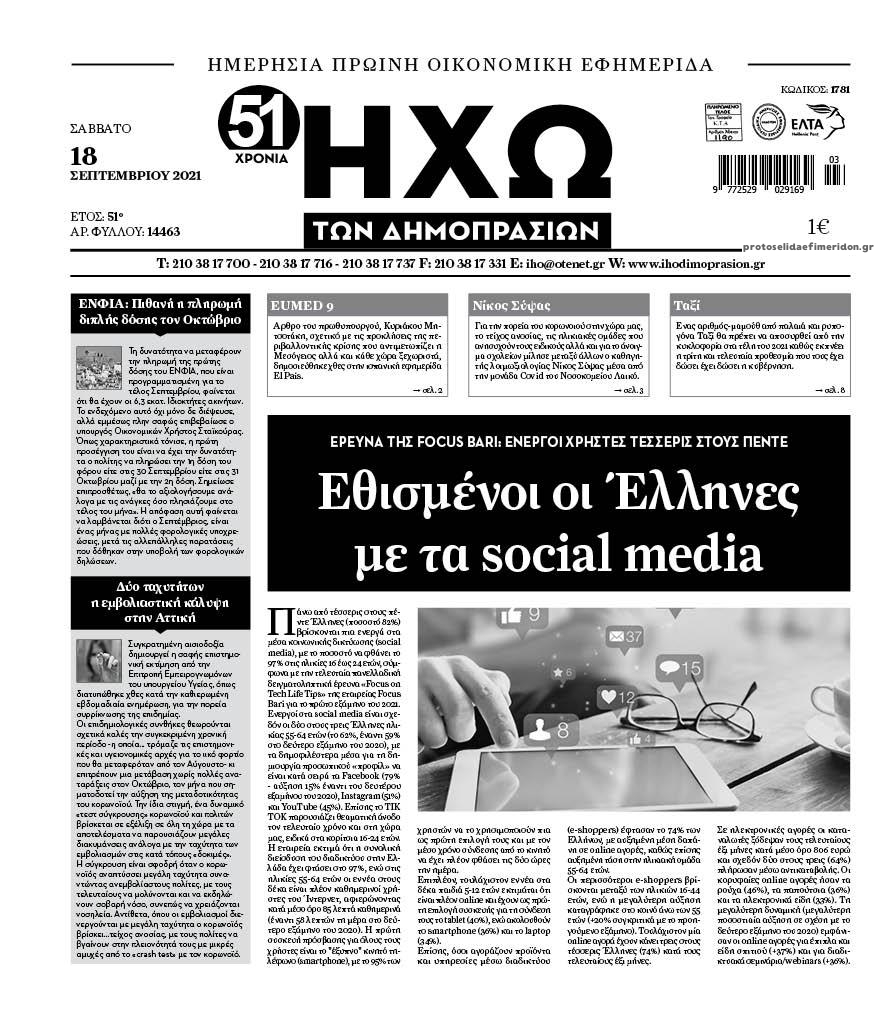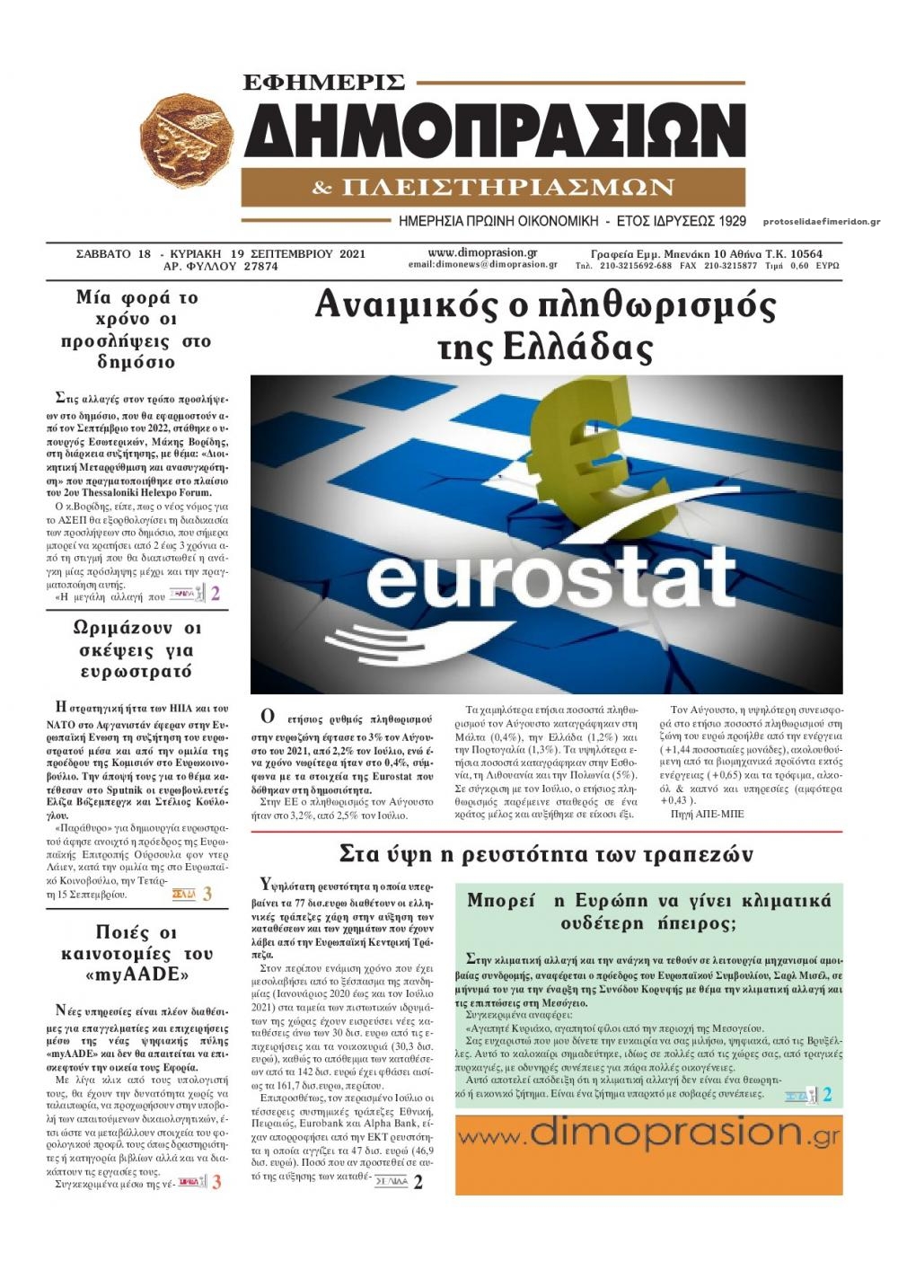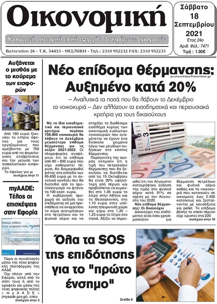Οι οικονομικές εφημερίδες 18/9/2021 Διονύσης Νίκκας 07:37, Σάββατο 18 Σεπτεμβρίου 2021 Media Διαβάστε τα πρωτοσέλιδα από τις οικονομικές εφημερίδες… ΟΙΚΟΝΟΜΙΚΕΣ ΕΦΗΜΕΡΙΔΕΣ Μοιράσου το: σχολίασε κι εσύ (0 σχόλια) Ακολουθήστε το enikos.gr στο Google News και μάθετε πρώτοι όλες τις ειδήσεις Δείτε όλες τις τελευταίες ειδήσεις από την Ελλάδα και τον Κόσμο στο enikos.gr Ειδήσεις Ροή Ειδήσεων 2 ώρες πριν Με εκτροπές η έξοδος των εκδρομέων για τις γιορτές – Τι ισχύει με τα μπλόκα των αγροτών, άνοιξαν 2 λωρίδες προς Αθήνα στα Μάλγαρα 4 ώρες πριν Μητσοτάκης στο Υπουργικό Συμβούλιο για αγροτικές κινητοποιήσεις: Η κυβέρνηση δεν πρόκειται να υποκύψει σε εκβιασμούς 2 ώρες πριν Μπλόκα της Τροχαίας: «Λερναία Ύδρα» τα γκρουπ στο Viber που προειδοποιούν για ελέγχους – Το «γκρίζο» νομικό τοπίο και οι νόμιμες εφαρμογές 3 ώρες πριν Ιλίσια: Έπεσε ασανσέρ σε σούπερ μάρκετ – Σοβαρά τραυματισμένος ο συντηρητής 54 λεπτά πριν Έπσταϊν: Οι νέες αποκαλύψεις που «καίνε» τον πρώην πρίγκιπα Άντριου – Το email από το Μπαλμόραλ στη Μάξγουελ για να βρει «ακατάλληλους φίλους» 6 ώρες πριν Αυτά τα 4 ζώδια έχουν πολλά να περιμένουν μετά τη σημερινή ημέρα – «Έρχονται υπέροχα νέα» 5 ώρες πριν Αν πίνετε τον καφέ σας σκέτο, πιθανότατα διαθέτετε αυτά τα 7 ισχυρά χαρακτηριστικά 1 ώρα πριν Μυστήριο στο Διάστημα: Επιστήμονες εντόπισαν ένα «πρωτοφανές φαινόμενο» γύρω από το «Μάτι του Σάουρον», μόλις 25 έτη φωτός από τη Γη 7 ώρες πριν Η Coca-Cola και ο Ελληνικός Ερυθρός Σταυρός μαζί αυτά τα Χριστούγεννα: Μια μεγάλη αγκαλιά για τους συνανθρώπους μας που έχουν ανάγκη 4 λεπτά πριν Οδηγοί ψάχνουν διέξοδο στους χωματόδρομους στην Αθηνών – Λαμίας – Δείτε βίντεο 8 λεπτά πριν Καλύβια: Είχε χάσει 30 κιλά το «πιστόλι» του Έντικ για να μην αναγνωρίζεται – Πώς εντόπισε τον 35χρονο το ελληνικό FBI 14 λεπτά πριν Τα 4 ζώδια που θα λάβουν όλα όσα ζητήσουν από το σύμπαν το 2026 -«Οι ευχές σας γίνονται πραγματικότητα» 18 λεπτά πριν CNN: Το νέο φαραωνικό σχέδιο του Τραμπ μπορεί να καταστίσει πανίσχυρο το Ναυτικό των ΗΠΑ – Ή να το βυθίσει 24 λεπτά πριν Αλεξανδρούπολη: Προφυλακίστηκε η μητέρα του 3χρονου που πέθανε από ασιτία – Τι λέει η δικηγόρος της ENIKOS NETWORK Συγκίνηση στα εγκαίνια του ανακαινισμένου Κέντρου Υγείας στο Αμύνταιο ΕΦΕΤ: Οδηγίες για το τραπέζι των Χριστουγέννων – Τι πρέπει να προσέξουν οι καταναλωτές Έρευνα της Deloitte αποκαλύπτει πως η οικονομική αβεβαιότητα οδηγεί σε πιο στοχευμένη κατανάλωση Διεθνής Αερολιμένα Αθηνών: Νέο ρεκόρ στην επιβατική κίνηση το 2025 – Δείτε αναλυτικά τα στοιχεία Ο Google Assistant θα παραμείνει λίγο περισσότερο για ορισμένους χρήστες Android Τεστ προσωπικότητας: Το βάζο που θα επιλέξετε αποκαλύπτει πώς λύνετε προβλήματα στη ζωή σας περισσότερα 14:03 , Τρίτη 23 Δεκεμβρίου 2025 Έξοδος εκδρομέων για τα Χριστούγεννα: Στείλε βίντεο ή φωτογραφίες στο enikos.gr – Αποθήκευσε τον αριθμό 6944 05 05 05 Πολλοί έχουν επιλέξει να περάσουν τις γιορτές εκτός πόλης, ωστόσο και φέτος η μαζική έξοδος απ... 10:34 , Τρίτη 23 Δεκεμβρίου 2025 Την Κυριακή με τη Realnews: Ό,τι και αν αγοράσεις, σκανάρεις και κερδίζεις! Την Κυριακή με τη Realnews: Ό,τι και αν αγοράσεις, σκανάρεις και κερδίζεις! Με το PADU app, το... 07:01 , Τρίτη 23 Δεκεμβρίου 2025 Την Κυριακή με τη Realnews: Δωροεπιταγή 10€ Την Κυριακή με τη Realnews: Δωροεπιταγή 10€ Δωροεπιταγή αξίας 10€ για αγορές άνω των 60€ από τ... 20:16 , Δευτέρα 22 Δεκεμβρίου 2025 «Το παιδί από την αρχή»: Special edition επεισόδια της επιτυχημένης σειράς αρχίζουν από σήμερα στη