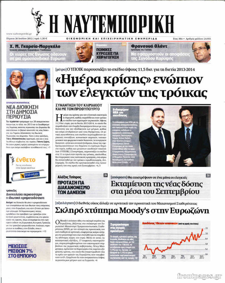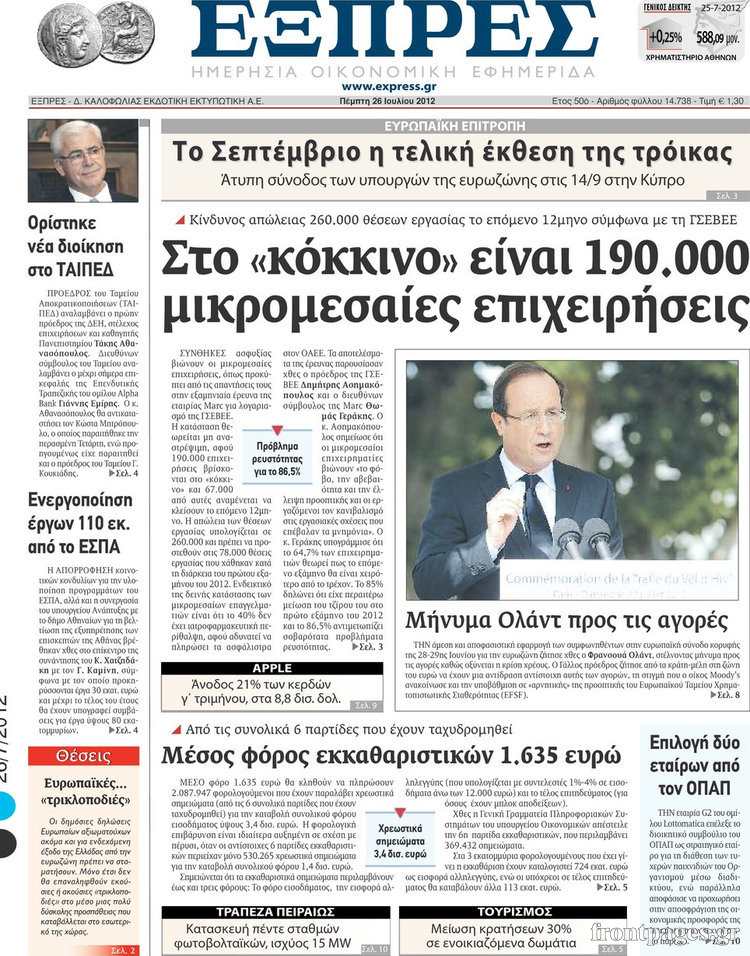 Τα σημερινά πρωτοσέλιδα των οικονιμικών εφημερίδων