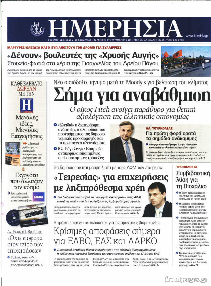 Οι oικονομικές εφημερίδες Enikos Newsroom 09:02, Παρασκευή 27 Σεπτεμβρίου 2013 Media Οι oικονομικές εφημερίδες Διαβάστε τα πρωτοσέλιδα των οικονομικών εφημερίδων: ΕΦΗΜΕΡΙΔΕΣ ΟΙΚΟΝΟΜΙΚΕΣ ΕΦΗΜΕΡΙΔΕΣ ΠΡΩΤΟΣΕΛΙΔΑ Μοιράσου το: σχολίασε κι εσύ (0 σχόλια) Ακολουθήστε το enikos.gr στο Google News και μάθετε πρώτοι όλες τις ειδήσεις Δείτε όλες τις τελευταίες ειδήσεις από την Ελλάδα και τον Κόσμο στο enikos.gr Ειδήσεις Ροή Ειδήσεων 24 λεπτά πριν Δολοφονία στη Νέα Πέραμο: Με 10 σφαίρες πισώπλατα εκτέλεσαν τον 27χρονο – Τον κράτησαν 6 μέρες όμηρο; 6 ώρες πριν Κυριάκος Μητσοτάκης: Πρόθεσή μας είναι μία γενναία, μία τολμηρή Συνταγματική Αναθεώρηση – Είναι καιρός για μεγάλες τομές 59 λεπτά πριν Κτηνοτρόφοι σε απόγνωση: Διαμαρτυρίες ότι δεν εφαρμόζεται στην πράξη η αναστολή πληρωμής φόρων και εισφορών παρά τη θανάτωση των ζώων τους 2 ώρες πριν Καραμανλής από Καλαμάτα: Να ακούμε τους πιο έμπειρους, αντί να τους διαγράφουμε κυριολεκτικά ή μεταφορικά 4 ώρες πριν Μαρινάκης για Αλεξοπούλου: «Απευθυνόταν στην αντιπολίτευση, όχι στους πολίτες» – Αντιδράσεις για «το τζάμπα πέθανε» 1 ώρα πριν Τα 3 ζώδια που θα έχουν την τύχη με το μέρος τους έως τις 8 Φεβρουαρίου – «Αρπάξτε τις ευκαιρίες για το επόμενο βήμα στη ζωή σας» 6 ώρες πριν Γυναίκα αποκαλύπτει πώς έχασε 10 κιλά χωρίς στερήσεις – Το «σύστημα ανταμοιβής» που έκανε πιο εύκολη την απώλεια βάρους 5 ώρες πριν Γιατί βάζεις πολλά ξυπνητήρια για να σηκωθείς; Τα 8 χαρακτηριστικά που διαθέτουν οι άνθρωποι που δίνουν «μάχη» στο κρεβάτι 2 ώρες πριν Ο φλοιός της Γης αψηφά τους κανόνες και οι επιστήμονες μόλις ανακάλυψαν τον λόγο 8 λεπτά πριν Ιράκ: Δικαστικές έρευνες για πάνω από 1.300 κρατούμενους, μέλη του Ισλαμικού Κράτους 14 λεπτά πριν ΚΚΕ για συνταγματική αναθεώρηση: Θα καταθέσουμε τις δικές μας προτάσεις με κριτήριο την στήριξη των εργατικών λαϊκών δικαιωμάτων 19 λεπτά πριν Στο νοσοκομείο ο Κώστας Σόμμερ – «Προσέξτε την υγεία σας» 24 λεπτά πριν Δολοφονία στη Νέα Πέραμο: Με 10 σφαίρες πισώπλατα εκτέλεσαν τον 27χρονο – Τον κράτησαν 6 μέρες όμηρο; 29 λεπτά πριν Συνάντηση Τσιάρα με εκπροσώπους των αγροτικών μπλόκων της Καρδίτσας – Στόχος έως το καλοκαίρι να έχουν κλείσει βασικά ζητήματα ENIKOS NETWORK 5,2 εκατομμύρια Έλληνες έχουν κάνει προληπτικές εξετάσεις – Νέο πρόγραμμα «Προλαμβάνω» για τη νεφρική υγεία Ξαναπαίρνουμε το βάρος μετά τη διαλειμματική νηστεία; Τι αποκαλύπτει ειδικός του Harvard ΑΑΔΕ – Προσοχή απάτη: Μην ανοίξετε αυτά τα sms – Τι γράφουν τα παραπλανητικά μηνύματα Λογαριασμοί ρεύματος Φεβρουαρίου 2026: Ανακοινώθηκαν τα πράσινα τιμολόγια – Δείτε αναλυτικά τις χρεώσεις ανά πάροχο Ευπάθεια στο moltbook ai αποκαλύπτει email, tokens σύνδεσης και api keys Αυτός είναι ο ρόλος της μικρής τρύπας στους νυχοκόπτες – «Είμαι ο μόνος που δεν το ήξερε;»» περισσότερα 16:30 , Δευτέρα 02 Φεβρουαρίου 2026 Οδύσσεια: Αναφορές ότι η Λουπίτα Νιόγκο θα υποδυθεί την «Ωραία Ελένη» – Έξαλλος ο Μασκ με τον Νόλαν Την έντονη αντίδραση του Έλον Μασκ προκάλεσαν δημοσιεύματα που κυκλοφορούν τις τελευταίες ώρες... 10:54 , Δευτέρα 02 Φεβρουαρίου 2026 Ακούστε το σχόλιο του Νίκου Χατζηνικολάου 2/2/2026 Ακούστε το σχόλιο του Νίκου Χατζηνικολάου στον ραδιοφωνικό σταθμό Realfm 97,8, τη Δευτέρα 2 Φε... 09:02 , Δευτέρα 02 Φεβρουαρίου 2026 Τα πάνω-κάτω στην ΕΡΤ λόγω Μουντιάλ Αλλαγή δεδομένων φέρνει το Παγκόσμιο Κύπελλο ποδοσφαίρου λόγω υψηλού κόστους. Το «Καλά θα πάει... 08:18 , Δευτέρα 02 Φεβρουαρίου 2026 Grammy 2026: Οι καλλιτέχνες στράφη