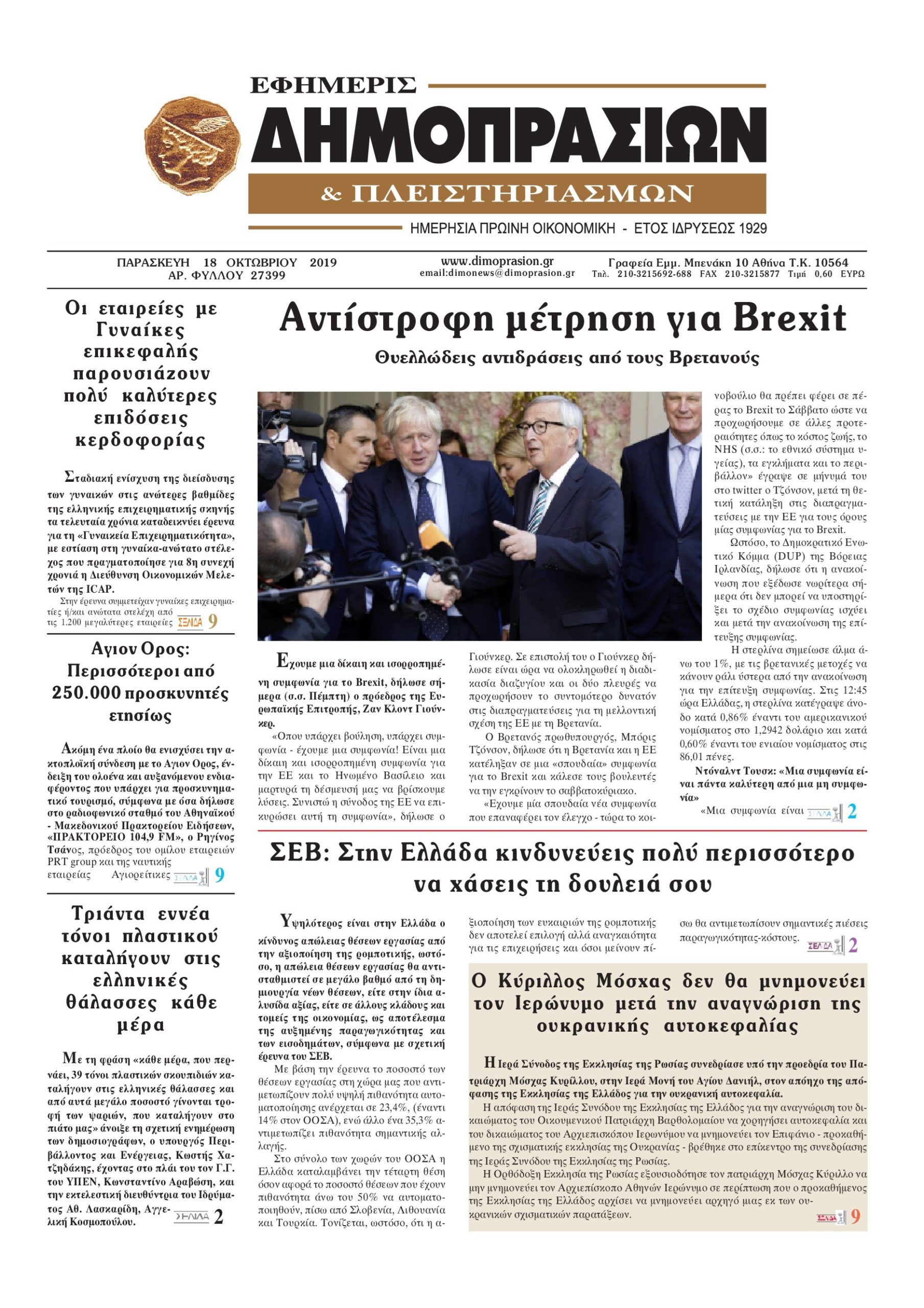 Οι οικονομικές εφημερίδες 18/10/19 Διονύσης Νίκκας 06:46, Παρασκευή 18 Οκτωβρίου 2019 Media Διαβάστε τα πρωτοσέλιδα των οικονομικών εφημερίδων… ΕΦΗΜΕΡΙΔΕΣ ΟΙΚΟΝΟΜΙΚΕΣ Μοιράσου το: σχολίασε κι εσύ (0 σχόλια) Ακολουθήστε το enikos.gr στο Google News και μάθετε πρώτοι όλες τις ειδήσεις Δείτε όλες τις τελευταίες ειδήσεις από την Ελλάδα και τον Κόσμο στο enikos.gr Ειδήσεις Ροή Ειδήσεων 35 λεπτά πριν Πώς στήθηκε η επιχείρηση «Ίπαλλος» που οδήγησε στη σύλληψη του «Έλληνα Εσκομπάρ» – «Ο πόλεμος ενάντια στους εμπόρους ναρκωτικών θα συνεχιστεί» 20 λεπτά πριν Δίκη Χρυσής Αυγής: Την ενοχή και των 42 κατηγορουμένων ζητά η εισαγγελέας 40 λεπτά πριν Κυψέλη: Στη φυλακή η 16χρονη που μαχαίρωσε συμμαθήτριά της 3 ώρες πριν Αμοργός: «Θα προσπαθήσω να το κάνω κάθε μέρα» – Ποιος είναι ο αγρότης που έστησε μόνος του το πρώτο μπλόκο στο νησί 2 ώρες πριν Τραγωδία στην Αλεξανδρούπολη: Παιδάκι 3 ετών μεταφέρθηκε νεκρό από τη μητέρα του στο νοσοκομείο 46 λεπτά πριν Τα 3 ζώδια που θα δουν τη ζωή τους να αλλάζει ριζικά το 2026 – «Όλα γίνονται καλύτερα σταδιακά» 6 ώρες πριν «Δεν είχα κλάψει από τότε που διαγνώστηκα με καρκίνο, ώσπου ένα τηλεφώνημα με έκανε να λυγίσω» – Η συγκλονιστική εξομολόγηση ενός άνδρα 2 ώρες πριν Ο σπάνιος σεισμός που έλυσε τα χέρια των επιστημόνων – Αποκάλυψε ακριβώς όσα αναζητούσαν 7 ώρες πριν 20 χρόνια τα Χριστούγεννα ξεκινούν στα Public με μεγάλη ποικιλία σε δώρα! 7 λεπτά πριν Θεσσαλονίκη: Ακυρώνονται τρεις παραστάσεις του ΚΘΒΕ λόγω στάσης εργασίας των εργαζομένων 14 λεπτά πριν Τραγωδία στην Αχαΐα: 48χρονος κατέρρευσε στο κυνήγι μπροστά στα μάτια του πατέρα του 20 λεπτά πριν Δίκη Χρυσής Αυγής: Την ενοχή και των 42 κατηγορουμένων ζητά η εισαγγελέας 21 λεπτά πριν Μαρκέλλα Γιαννάτου: «Είμαι κοντά στα 14 χρόνια σε ψυχανάλυση – Είχα αρχίσει να έχω κρίσεις άγχους, νόμιζα ότι θα πεθάνω» 28 λεπτά πριν Υπουργείο Αγροτικής Ανάπτυξης: Πώς θα γίνει η πληρωμή αγροτεμαχίων έως 20 στρέμματα παρά τα ζητήματα ΚΑΕΚ ENIKOS NETWORK Σοβαροί κίνδυνοι από τη λάθος χορήγηση φαρμάκου για τις αιμορραγίες-Συστάσεις προς τους γιατρούς 5 πράγματα που αποφεύγει γαστρεντερολόγος για να μειώσει τον κίνδυνο καρκίνου του εντέρου Eurostat: Κάτω από την αρχική εκτίμηση της Υπηρεσίας ο πληθωρισμός στην Ελλάδα τον Νοέμβριο του 2025 – Tα στοιχεία για την ... Συντάξεις Ιανουαρίου 2026: Σε ποιους θα πιστωθούν την Πέμπτη τα χρήματα και τι αυξήσεις θα δοθούν – Δείτε αναλυτικά παραδεί... Χαρτογραφώντας το «σημείο χωρίς επιστροφή»: Για πρώτη φορά αποκαλύπτεται με λεπτομέρεια το ακανθώδες όριο της ατμόσφαιρας τ... Η Google καταργεί τη λειτουργία «dark web report» – Πώς θα μπορούν οι χρήστες να διαγράφουν τα δεδομένα τους περισσότερα 12:35 , Τετάρτη 17 Δεκεμβρίου 2025 Μίρκα Παπακωνσταντίνου: «Δεν ήμουν αισιόδοξη για τα νούμερα – Είμαι ρεαλίστρια» Στα γυρίσματα του εορταστικού επεισοδίου της αγαπημένης σειράς “Το Σόι Σου”, βρέθηκε η κάμερα ... 12:12 , Τετάρτη 17 Δεκεμβρίου 2025 Ακούστε την εκπομπή του Νίκου Χατζηνικολάου 17/12/2025 Ακούστε την εκπομπή του Νίκου Χατζηνικολάου στον ραδιοφωνικό σταθμό RealFm 97,8, την Τετάρτη 1... 11:35 , Τετάρτη 17 Δεκεμβρίου 2025 Home Alone: Το σπίτι της ταινίας θα ανακαινιστεί – Επιστροφή στην αισθητική της δεκαετίας του ’90 Οι νέοι ιδιοκτήτες του πραγματικού σπιτιού που παρουσιάζεται στην κλασική ταινία του 1990 «Hom... 11:25 , Τετάρτη 17 Δεκεμβρίου 2025 Grand Hotel: Απόψε το τελευταίο επεισόδιο της χρονιάς – Όλα τα μυστικά μένουν εδώ Το τελευταίο επεισόδιο της 