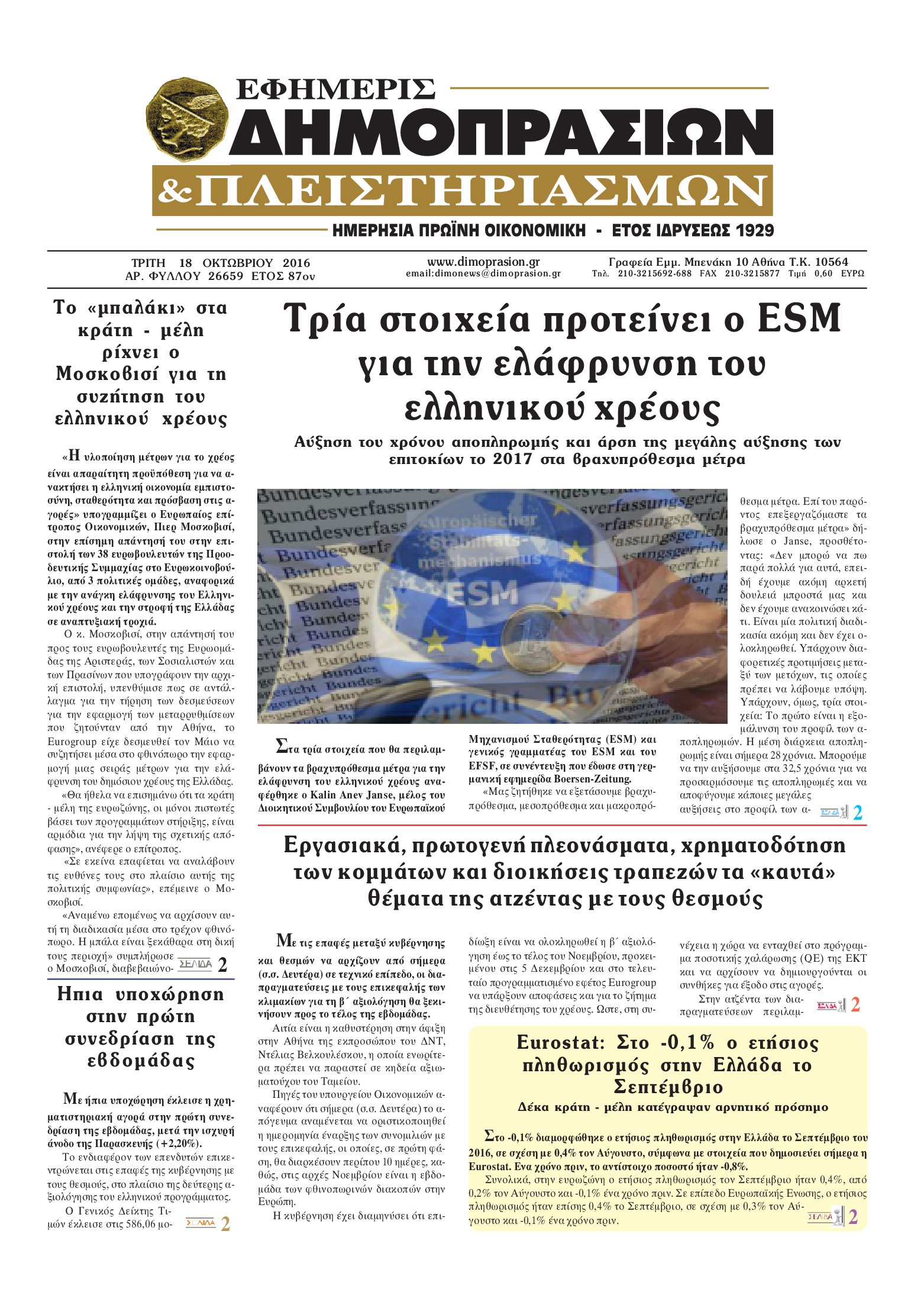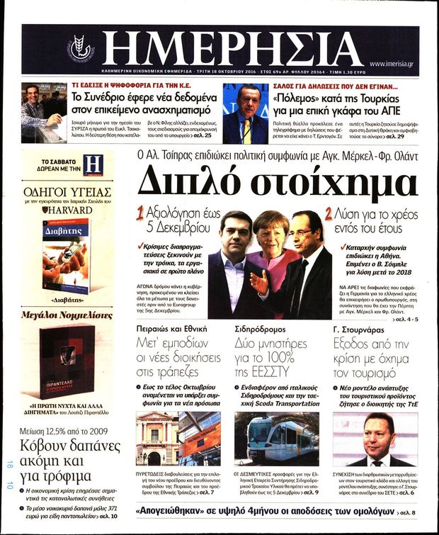 Οι οικονομικές εφημερίδες 18/10/2016 Κώστας Τεό 05:24, Τρίτη 18 Οκτωβρίου 2016 Media Διαβάστε τα σημερινά πρωτοσέλιδα των οικονομικών εφημερίδων: ΟΙΚΟΝΟΜΙΚΕΣ ΕΦΗΜΕΡΙΔΕΣ ΠΡΩΤΟΣΕΛΙΔΑ Μοιράσου το: σχολίασε κι εσύ (0 σχόλια) Ακολουθήστε το enikos.gr στο Google News και μάθετε πρώτοι όλες τις ειδήσεις Δείτε όλες τις τελευταίες ειδήσεις από την Ελλάδα και τον Κόσμο στο enikos.gr Ειδήσεις Ροή Ειδήσεων 8 ώρες πριν Μητσοτάκης: Αναγκαία η μεταρρύθμιση του πρωτογενούς τομέα – Τα 6 νέα μέτρα για το στεγαστικό και οι αναφορές σε «Ιθάκη» και «πολιτικούς του καναπέ» 7 ώρες πριν Δάνεια σε ελβετικό φράγκο: Τα βασικά σημεία της ρύθμισης – ανάσας για 40.000 δανειολήπτες – Αναλυτικός οδηγός με ερωτήσεις και απαντήσεις 7 ώρες πριν Κυψέλη: Εξιτήριο πήρε η 14χρονη μαθήτρια που μαχαιρώθηκε από την 16χρονη σε σχολείο – «Θέλω να βοηθήσω το παιδί, έχει μπλέξει με κακές παρέες» 6 ώρες πριν Τραμπ: Γιατί κατέθεσε τώρα την αγωγή κατά του BBC – Πώς η κίνησή του εξυπηρετεί το νέο δόγμα του για «αντίσταση» στην Ευρώπη, υπέρ των συντηρητικών 7 ώρες πριν ΟΠΕΚΕΠΕ – Παράνομες επιδοτήσεις: Ελεύθεροι με περιοριστικούς όρους και οι 7 κατηγορούμενοι που απολογήθηκαν σήμερα 6 ώρες πριν Ανακαλύφθηκε βυθισμένη πέτρινη κατασκευή ανοιχτά της Κριμαίας – Αποτελεί μέρος αρχαίας ελληνικής αποικίας 7 ώρες πριν Ύπνος: Αυτό μπορεί να είναι το χειρότερο λάθος για το βιολογικό ρολόι σας, σύμφωνα με ειδικό 8 ώρες πριν Αριθμολογία: Οι άνθρωποι που έχουν γεννηθεί αυτές τις 3 ημερομηνίες, προσελκύουν μεγάλη τύχη πριν από το τέλος του 2025 10 ώρες πριν Οι 7 συμπεριφορές που μαρτυρούν ότι ένας άνδρας επενδύει μακροπρόθεσμα σε μια σχέση 7 λεπτά πριν Εφημερεύοντα φαρμακεία σε Αθήνα και Θεσσαλονίκη (17/12) 12 λεπτά πριν Κόστα Ρίκα: Το Κογκρέσο απέρριψε το αίτημα για άρση της ασυλίας του προέδρου Τσάβες 20 λεπτά πριν Κολομβία: Νεκροί τέσσερις αστυνομικοί σε βομβιστικές επιθέσεις ανταρτών 28 λεπτά πριν Στάση εργασίας 11:00 – 17:00 σήμερα στα λεωφορεία του ΟΑΣΑ – Ποιες γραμμές θα λειτουργήσουν 44 λεπτά πριν Παλαιστινιακό: «Η λύση των δύο κρατών είναι ο μόνος βιώσιμος δρόμος», τόνισε η Ελλάδα στο Συμβούλιο Ασφαλείας του ΟΗΕ ENIKOS NETWORK Αίτημα ΙΣΑ για την εξαίρεση των προσωπικών γιατρών από τις κατ’ οίκον επισκέψεις Η σκανδιναβική μέθοδος στον ύπνο που μπορεί να σώσει έναν γάμο Πιερρακάκης: Ο προϋπολογισμός συμβάλλει ουσιαστικά στην ενίσχυση της αγοραστικής δύναμης της πλειονότητας των εργαζομένων e-ΕΦΚΑ: Παρατείνεται η προθεσμία για την υποβολή ΑΠΔ – Ποιους αφορά Σύγχρονος Νοστράδαμος: Προειδοποιεί για «μεγάλο γεγονός» τους επόμενους μήνες που θα συγκλονίσει τη Βρετανία και τον κόσμο Τεστ παρατηρητικότητας: Μπορείτε να βρείτε τις 3 διαφορές στις εικόνες με έναν πιγκουίνο σε 14 δευτερόλεπτα περισσότερα 20:06 , Τρίτη 16 Δεκεμβρίου 2025 Ο ΣΚΑΙ καταγγέλλει τον ΕΚΚΟΜΕΔ Επιστολή με την οποία καταγράφει την έντονη διαμαρτυρία του προς τον διευθύνοντα σύμβουλο του... 17:40 , Τρίτη 16 Δεκεμβρίου 2025 Eurovision: Στις 4 Ιανουαρίου αποκαλύπτονται τα 28 τραγούδια του ελληνικού τελικού Η αγωνία τελειώνει, η γιορτή της Eurovision αρχίζει στην ΕΡΤ από τις πρώτες ημέρες της νέας χρ... 17:09 , Τρίτη 16 Δεκεμβρίου 2025 Alter Ego Media: Βαθύτατη θλίψη και ειλικρινή συλλυπητήρια για την απώλεια της Ειρήνης Μαρινάκη Τη βαθύτατη θλίψη και τα ειλικρινή συλλυπητήριά της εκφράζει η Alter Ego Media για τον θάνατο ... 13:00 , Τρίτη 16 Δεκεμβρίου 2025 «Στο Παρά Πέντε – 20 Χρόνια Μετά»: Κυκλοφόρησε το τρέιλερ του επετειακού 