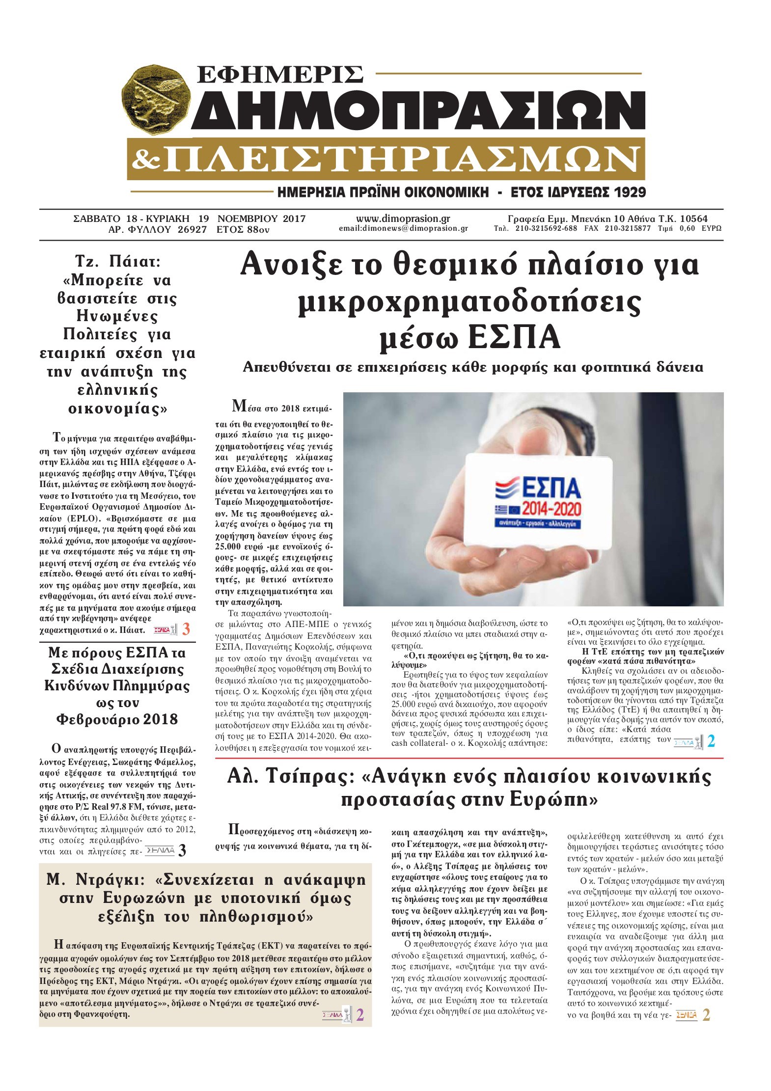 Οι οικονομικές εφημερίδες 18/11/2017 Enikos Newsroom 07:20, Σάββατο 18 Νοεμβρίου 2017 Media Διαβάστε τα σημερινά πρωτοσέλιδα των οικονομικών εφημερίδων: ΟΙΚΟΝΟΜΙΚΕΣ ΕΦΗΜΕΡΙΔΕΣ ΠΡΩΤΟΣΕΛΙΔΑ Μοιράσου το: σχολίασε κι εσύ (0 σχόλια) Ακολουθήστε το enikos.gr στο Google News και μάθετε πρώτοι όλες τις ειδήσεις Δείτε όλες τις τελευταίες ειδήσεις από την Ελλάδα και τον Κόσμο στο enikos.gr Ειδήσεις Ροή Ειδήσεων 57 λεπτά πριν Δημοσκόπηση Metron Analysis: Στις 10 μονάδες η διαφορά ΝΔ-ΠΑΣΟΚ, στην 3η θέση η Πλεύση Ελευθερίας – 8 στους 10 στηρίζουν τον αγώνα των αγροτών 5 ώρες πριν Αγρότες: «Όχι στον διάλογο, μας εμπαίζει η κυβέρνηση» – Αποφάσισαν κλιμάκωση των κινητοποιήσεων, τι θα γίνει τα Χριστούγεννα 45 λεπτά πριν Νίκος Παππάς στον ΑΝΤ1: «Δεν κρύβομαι – Μετά το συμβάν ακολούθησα κανονικά το πρόγραμμά μου» – ΒΙΝΤΕΟ 2 ώρες πριν Αθήνα: Εξαρθρώθηκε εγκληματική οργάνωση που διακινούσε ναρκωτικά σε μορφή σοκολάτας – Δύο τράπερ ανάμεσα στους 4 συλληφθέντες – ΒΙΝΤΕΟ 38 λεπτά πριν Διαμαντής Καραναστάσης: Οδηγούσε υπό την επήρεια αλκοόλ – Του αφαιρέθηκε το δίπλωμα και του επιβλήθηκε πρόστιμο 350 ευρώ 1 ώρα πριν Manifesting: Πώς να συναντήσετε τον σύντροφο της ζωής σας, ανάλογα με τον μήνα γέννησής σας 3 ώρες πριν Γάμος: 11 ψυχρές αλλά ευγενικές φράσεις, που λέει ένας άνδρας όταν σκέφτεται τον χωρισμό 2 ώρες πριν Σφουγγάρισμα: Η συνήθεια που θα σας βοηθήσει να διατηρήσετε το σπίτι σας καθαρό και τακτοποιημένο 2 ημέρες πριν 20 χρόνια τα Χριστούγεννα ξεκινούν στα Public με μεγάλη ποικιλία σε δώρα! 40 δευτερόλεπτα πριν Κλήρωση ΤΖΟΚΕΡ 18/12/2025: Αυτοί είναι οι τυχεροί αριθμοί 3 λεπτά πριν Τραμπ: Ζητεί από την Ουκρανία να “κινηθεί γρήγορα” στις διαπραγματεύσεις για το τέλος της σύγκρουσης 9 λεπτά πριν Ύπνος: Η απλή βραδινή ρουτίνα για να προστατεύσετε τα μαλλιά σας από το κρύο κατά τη διάρκεια του χειμώνα 17 λεπτά πριν Κατερίνα Καινούργιου: «Δεν θα αφήσω κανέναν να χαλάσει τη ζαχαρένια μου στην ομορφότερη περίοδο της ζωής μου» 23 λεπτά πριν Θεσσαλονίκη: Προθεσμία για την επόμενη εβδομάδα έλαβαν οι συλληφθέντες για το κύκλωμα trafficking – Οι οίκοι ανοχής, τα «φρουτάκια» και οι ρόλοι ENIKOS NETWORK Σε περίοδο αυξημένης δραστηριότητας η γρίπη στην Ελλάδα-Μέτρα προστασίας από τον ΕΟΔΥ Σκέφτεστε συνέχεια συζητήσεις που έχετε κάνει; Τι σημαίνει αυτό, σύμφωνα με ειδικό ΕΛΤΑ: Αυτό είναι το νέο σχέδιο μετασχηματισμού του Οργανισμού- Τι δήλωσαν Πιερρακάκης και Παπαστεργίου ΕΛΣΤΑΤ: Τι δείχνουν τα νέα στοιχεία για τον μόνιμο πληθυσμό στην Ελλάδα Χαρτογραφώντας το «σημείο χωρίς επιστροφή»: Για πρώτη φορά αποκαλύπτεται με λεπτομέρεια το ακανθώδες όριο της ατμόσφαιρας τ... Η Google καταργεί τη λειτουργία «dark web report» – Πώς θα μπορούν οι χρήστες να διαγράφουν τα δεδομένα τους περισσότερα 17:45 , Πέμπτη 18 Δεκεμβρίου 2025 ROUK ZOUK: Εορταστικό επεισόδιο με καλεσμένους τους πρωταγωνιστές του «Γιατί ρε πατέρα» Το Σάββατο 20 Δεκεμβρίου στις 21:00, η Ζέτα Μακρυπούλια υποδέχεται εκλεκτούς ηθοποιούς που όλο... 17:20 , Πέμπτη 18 Δεκεμβρίου 2025 Άγιος έρωτας: Η Χριστίνα εξομολογείται στον πατέρα Νικόλαο, απόψε στις 21:00 στον Alpha Η Νότα αποφασίζει να εκδικηθεί τον Πέτρο και τον Στέφανο, για χάρη του Λούη, όμως τα πράγματα ... 16:50 , Πέμπτη 18 Δεκεμβρίου 2025 Να μ’ αγαπάς: Ζωή και Φωτεινή συμφιλιώνονται ως μάνα με κόρη, απόψε στις 20:00 Η ταυτότητα του Άγγελου αποκαλύπτεται στο νέο επεισόδιο της σειράς “Να μ’ αγαπάς... 15:52 , Πέμπτη 18 Δεκεμβρίου 2025 Το Σπίτι Δίπλα Στο Ποτάμι: Το καθηλωτικό τελευταί