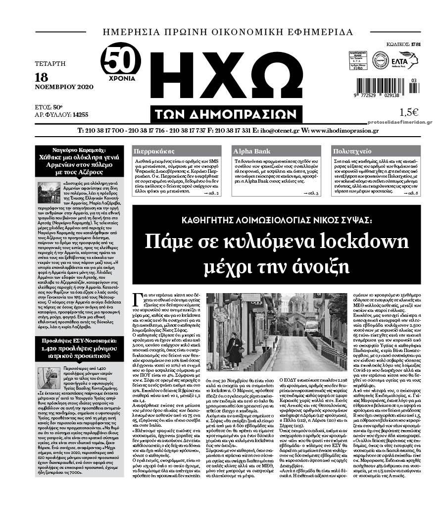 Οι οικονομικές εφημερίδες 18/11/2020 Διονύσης Νίκκας 06:33, Τετάρτη 18 Νοεμβρίου 2020 Media Διαβάστε τα πρωτοσέλιδα των οικονομικών εφημερίδων… ΟΙΚΟΝΟΜΙΚΕΣ ΕΦΗΜΕΡΙΔΕΣ Μοιράσου το: σχολίασε κι εσύ (0 σχόλια) Ακολουθήστε το enikos.gr στο Google News και μάθετε πρώτοι όλες τις ειδήσεις Δείτε όλες τις τελευταίες ειδήσεις από την Ελλάδα και τον Κόσμο στο enikos.gr Ειδήσεις Ροή Ειδήσεων 1 ώρα πριν Ευρωπαϊκή Ένωση: Συμφωνία για δάνειο 90 δισ. ευρώ στην Ουκρανία τη διετία 2026-2027 6 ώρες πριν ΟΠΕΚΕΠΕ: Προφυλακιστέος ο φερόμενος αρχηγός και ο λογιστής της εγκληματικής οργάνωσης 7 ώρες πριν Αυξάνουν την πίεση προς την κυβέρνηση οι αγρότες: Κλείνουν παρακαμπτήριους και ανοίγουν διόδια – Τι θα γίνει τις γιορτές 7 ώρες πριν Φοινικούντα: Το Σάββατο απολογείται ο 30χρονος γιος γνωστού επιχειρηματία της Πλάκας που παραδόθηκε – Όσα είπε στους αστυνομικούς και ο ρόλος του στο έγκλημα 5 ώρες πριν ΑΕΚ – Κραϊόβα 3-2: Επική ανατροπή και πρόκριση στους «16» του Conference League η Ένωση 6 ώρες πριν Αρχαιολόγοι ανακάλυψαν ρωμαϊκά τεχνουργήματα από μια πόλη που δεν υπήρξε ποτέ – Τα τρία εντυπωσιακά κτίρια και ο αμφορέας με τις… σαρδέλες 7 ώρες πριν Ύπνος: Η απλή βραδινή ρουτίνα για να προστατεύσετε τα μαλλιά σας από το κρύο κατά τη διάρκεια του χειμώνα 8 ώρες πριν Manifesting: Πώς να συναντήσετε τον σύντροφο της ζωής σας, ανάλογα με τον μήνα γέννησής σας 2 ημέρες πριν 20 χρόνια τα Χριστούγεννα ξεκινούν στα Public με μεγάλη ποικιλία σε δώρα! 4 λεπτά πριν Εφημερεύοντα φαρμακεία σε Αθήνα και Θεσσαλονίκη (19/12) 11 λεπτά πριν Η TikTok στις ΗΠΑ πωλείται σε Oracle, Silver Lake και MGX – Οι λεπτομέρειες του «deal» 20 λεπτά πριν Αλεξάντερ Λουκασένκο: Η Λευκορωσία βρίσκεται κοντά στην αποκατάσταση των σχέσεών της με τις ΗΠΑ 35 λεπτά πριν Αυστραλία: Κήρυξε την Κυριακή (21/12) ημέρα εθνικού πένθους για τη φονική επίθεση στην παραλία Μπόνταϊ 45 λεπτά πριν Ρόδος: Δάσκαλος καράτε καταδικάστηκε για ασέλγεια σε ανήλικες αθλήτριες – Μαρτυρίες για αγγίγματα σε ευαίσθητα σημεία ENIKOS NETWORK Σε περίοδο αυξημένης δραστηριότητας η γρίπη στην Ελλάδα-Μέτρα προστασίας από τον ΕΟΔΥ Σκέφτεστε συνέχεια συζητήσεις που έχετε κάνει; Τι σημαίνει αυτό, σύμφωνα με ειδικό Στεγαστικό: Τι λέει η ΠΟΜΙΔΑ για τα νέα μέτρα που ανακοίνωσε ο Κυριάκος Μητσοτάκης Λαγκάρντ: Αισιόδοξη για την ανάπτυξη της Ευρωζώνης, αβέβαιη για τον πληθωρισμό Χαρτογραφώντας το «σημείο χωρίς επιστροφή»: Για πρώτη φορά αποκαλύπτεται με λεπτομέρεια το ακανθώδες όριο της ατμόσφαιρας τ... Η Google καταργεί τη λειτουργία «dark web report» – Πώς θα μπορούν οι χρήστες να διαγράφουν τα δεδομένα τους περισσότερα 02:50 , Παρασκευή 19 Δεκεμβρίου 2025 GNTM: «Κλείδωσαν» οι τέσσερις φιναλίστ – Μεγάλη ανατροπή στις τελευταίες αποχωρήσεις Για προτελευταία φορά εμφανίστηκαν στο πλατό του GNTM οι φιναλίστ του φετινού κύκλου, το βράδυ... 17:45 , Πέμπτη 18 Δεκεμβρίου 2025 ROUK ZOUK: Εορταστικό επεισόδιο με καλεσμένους τους πρωταγωνιστές του «Γιατί ρε πατέρα» Το Σάββατο 20 Δεκεμβρίου στις 21:00, η Ζέτα Μακρυπούλια υποδέχεται εκλεκτούς ηθοποιούς που όλο... 17:20 , Πέμπτη 18 Δεκεμβρίου 2025 Άγιος έρωτας: Η Χριστίνα εξομολογείται στον πατέρα Νικόλαο, απόψε στις 21:00 στον Alpha Η Νότα αποφασίζει να εκδικηθεί τον Πέτρο και τον Στέφανο, για χάρη του Λούη, όμως τα πράγματα ... 16:50 , Πέμπτη 18 Δεκεμβρίου 2025 Να μ’ αγαπάς: Ζωή και Φωτεινή συμφιλιώνονται ως μάνα με κόρη, απόψε στις 20:00 Η ταυτότητα του Άγγελου αποκαλύπτεται στο νέο επεισόδιο της σειράς “Να μ’ αγαπάς... ΤΕΛΕΥΤΑΙΕ