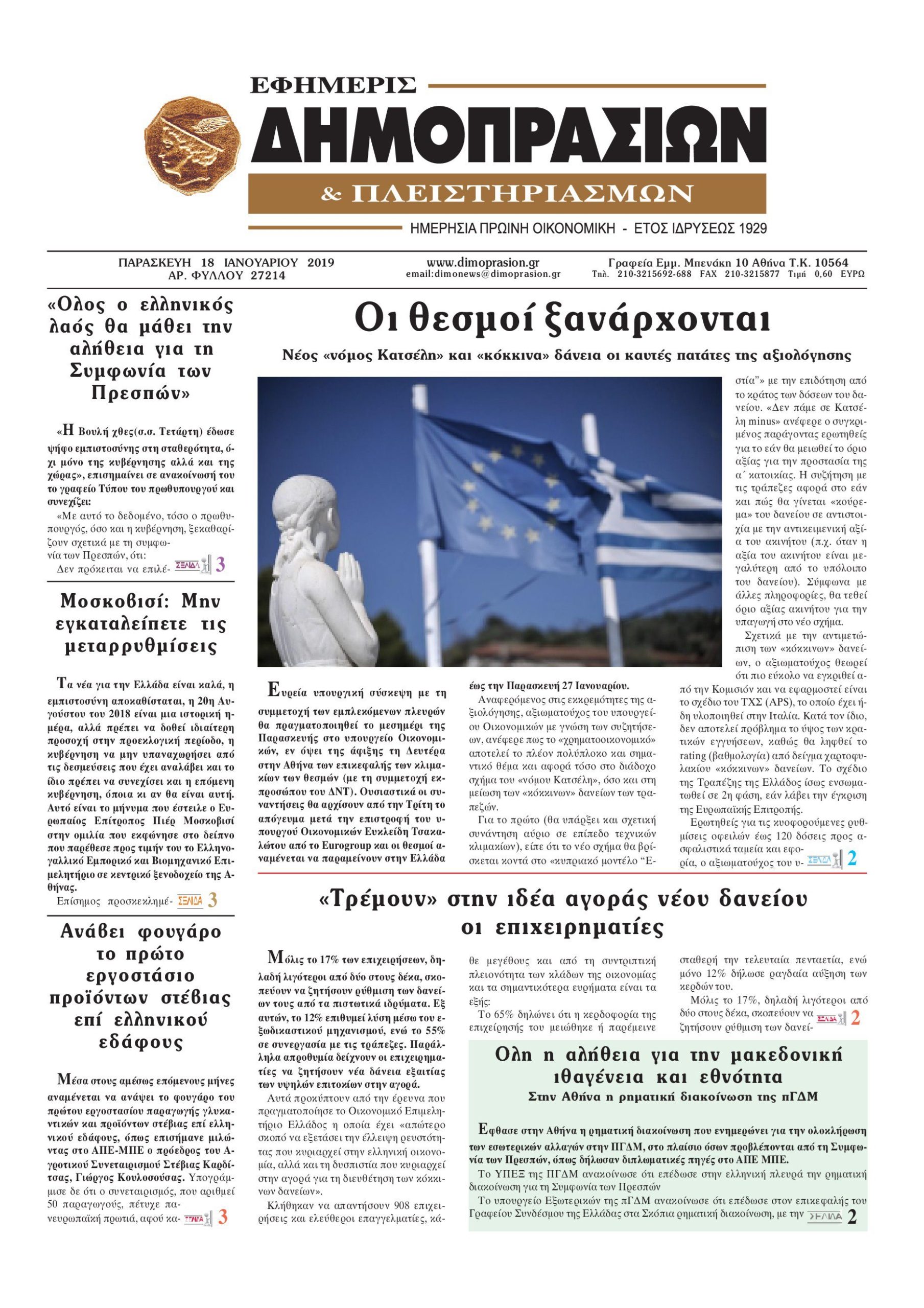 Οι οικονομικές εφημερίδες 18/1/19 Enikos Newsroom 06:43, Παρασκευή 18 Ιανουαρίου 2019 Media Διαβάστε τα πρωτοσέλιδα των οικονομικών εφημερίδων: ΟΙΚΟΝΟΜΙΚΕΣ ΕΦΗΜΕΡΙΔΕΣ ΠΡΩΤΟΣΕΛΙΔΑ Μοιράσου το: σχολίασε κι εσύ (0 σχόλια) Ακολουθήστε το enikos.gr στο Google News και μάθετε πρώτοι όλες τις ειδήσεις Δείτε όλες τις τελευταίες ειδήσεις από την Ελλάδα και τον Κόσμο στο enikos.gr Ειδήσεις Ροή Ειδήσεων 55 λεπτά πριν Αγρότες: Πολύωροι αποκλεισμοί στα τελωνεία Προμαχώνα, Εξοχής, Ευζώνων και Νίκης – Κλείνουν τον κόμβο Φιλώτα οι παραγωγοί στη Δυτική Μακεδονία 26 λεπτά πριν Νίκος Παππάς: Ζητώ συγγνώμη για αυτό το επεισόδιο – Δεν τον γρονθοκόπησα 3 ώρες πριν Ευρωπαϊκό Συμβούλιο: Όλες οι λεπτομέρειες για το δάνειο των 90 δισ. ευρώ στην Ουκρανία – Τα συμπεράσματα της Συνόδου Κορυφής 2 ώρες πριν Αίγιο: 22χρονη κατήγγειλε ότι έπεσε θύμα βιασμού και ληστείας από συγγενικά της πρόσωπα 2 ώρες πριν Σφοδρές βροχές και καταιγίδες πλήττουν τα Ηνωμένα Αραβικά Εμιράτα: Ακυρώσεις πτήσεων, προβλήματα στην κυκλοφορία 1 ώρα πριν Αλλαγή σελίδας για 3 ζώδια – «Μία δύσκολη περίοδος φτάνει στο τέλος της» 3 ώρες πριν Πώς το αρχαίο DNA του κυνηγού – συλλέκτη ξεκλείδωσε τα μυστικά της μακροζωίας 2 ημέρες πριν 20 χρόνια τα Χριστούγεννα ξεκινούν στα Public με μεγάλη ποικιλία σε δώρα! 2 ώρες πριν Ο σύζυγός της συμπεριφέρεται όπως το παιδί τους – «Χρησιμοποιεί αστείες δικαιολογίες για να μην κάνει δουλειές και να ξοδεύει λεφτά» 3 λεπτά πριν TikTok: Ο ιδιοκτήτης του υπέγραψε συμφωνία για να αποφύγει την απαγόρευση στις ΗΠΑ 8 λεπτά πριν Τομ Κρουζ: Χορεύει με ένα φτυάρι στη νέα ταινία του Αλεχάντρο Γκονζάλες Ινιάριτου, «Digger» 13 λεπτά πριν Γεμάτος νεροχύτης; 5 σοβαρές ευθύνες που «φοβίζουν» όσους αφήνουν άπλυτα πιάτα 17 λεπτά πριν Ρόδος: Επεισόδιο μεταξύ ανηλίκων έξω από σχολείο – Απείλησαν με σουγιά 12χρονο 22 λεπτά πριν Γιώργος Μαζωνάκης: Η πρώτη αντίδραση της οικογένειάς του μετά τη μήνυση του Στέφανου Παπαδόπουλου ENIKOS NETWORK Καρκίνος του πνεύμονα: Έως 8.000 ζωές μπορούν να σωθούν με την έγκαιρη διάγνωση Καρδιοπαθείς: Οι νέες συστάσεις για τα εμβόλια που πρέπει να κάνουν τον χειμώνα Απειλή για τον Προϋπολογισμό τα ληξιπρόθεσμα χρέη των ιδιωτών προς την εφορία – Τι δείχνουν τα στοιχεία Συντάξεις: Οι κερδισμένοι και οι χαμένοι από τις αυξήσεις – Αναλυτικός οδηγός Χαρτογραφώντας το «σημείο χωρίς επιστροφή»: Για πρώτη φορά αποκαλύπτεται με λεπτομέρεια το ακανθώδες όριο της ατμόσφαιρας τ... Η Google καταργεί τη λειτουργία «dark web report» – Πώς θα μπορούν οι χρήστες να διαγράφουν τα δεδομένα τους περισσότερα 08:00 , Παρασκευή 19 Δεκεμβρίου 2025 Την Κυριακή με τη Realnews: Δωροεπιταγή 10€ Δωροεπιταγή αξίας 10€ για αγορές άνω των 60€ από τα πολυκαταστήματα FactoryOutlet H προσφορά ι... 05:48 , Παρασκευή 19 Δεκεμβρίου 2025 Οι οικονομικές εφημερίδες 19/12/2025 Διαβάστε τα πρωτοσέλιδα από τις οικονομικές εφημερίδες, σήμερα 19/12/2025. 05:43 , Παρασκευή 19 Δεκεμβρίου 2025 Οι αθλητικές εφημερίδες 19/12/2025 Διαβάστε τα πρωτοσέλιδα από τις αθλητικές εφημερίδες, σήμερα 19/12/2025. 05:38 , Παρασκευή 19 Δεκεμβρίου 2025 Οι πολιτικές εφημερίδες 19/12/2025 Διαβάστε τα πρωτοσέλιδα από τις πολιτικές εφημερίδες, σήμερα 19/12/2025. ΤΕΛΕΥΤΑΙΕΣ ΕΙΔΗΣΕΙΣ 3 λεπτά πριν TikTok: Ο ιδιοκτήτης του υπέγραψε συμφωνία για να... 8 λεπτά πριν Τομ Κρουζ: Χορεύει με ένα φτυάρι στη νέα ταινία του... 13 λεπτά πριν Γεμάτος νεροχύτης; 5 σοβαρές ευθύνες που «φοβίζουν»... 17 λεπτά πριν Ρόδος: Επεισόδιο μεταξύ ανηλίκων έξω από σχολείο –... 22 λεπτά πριν Γ